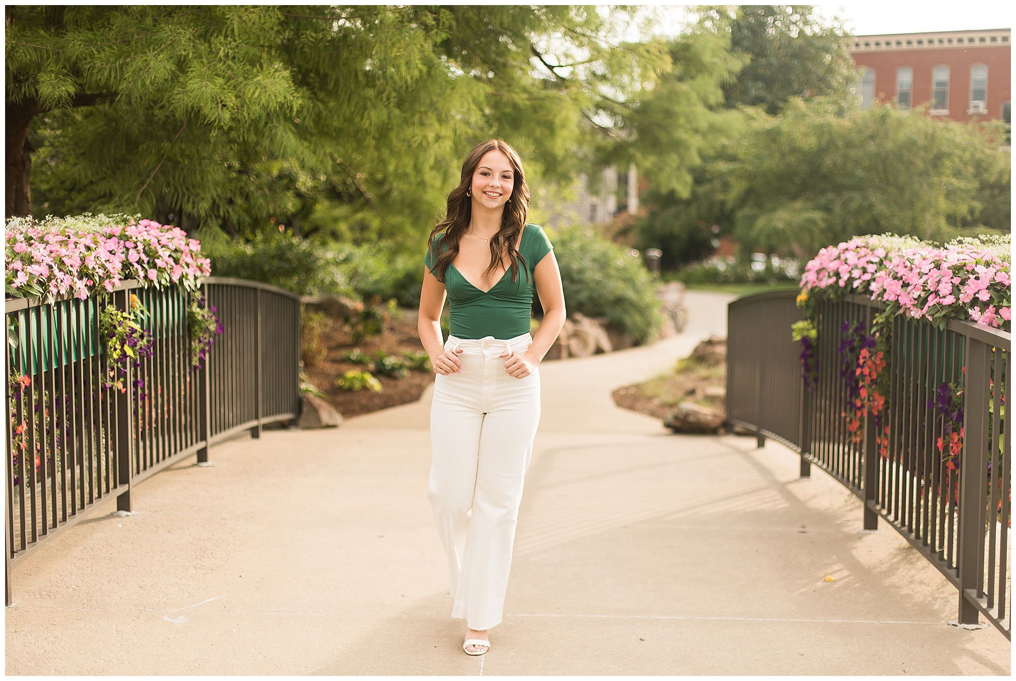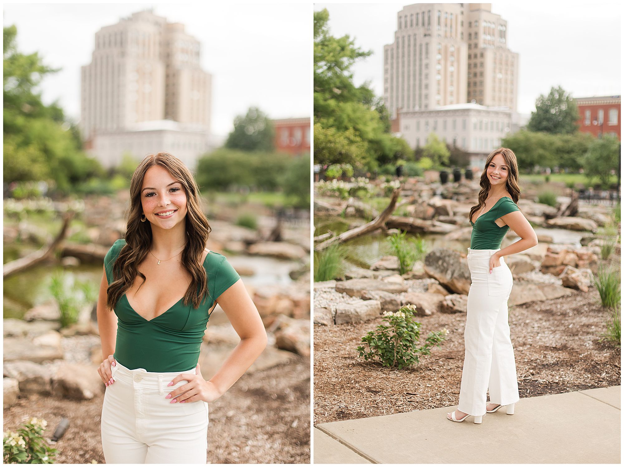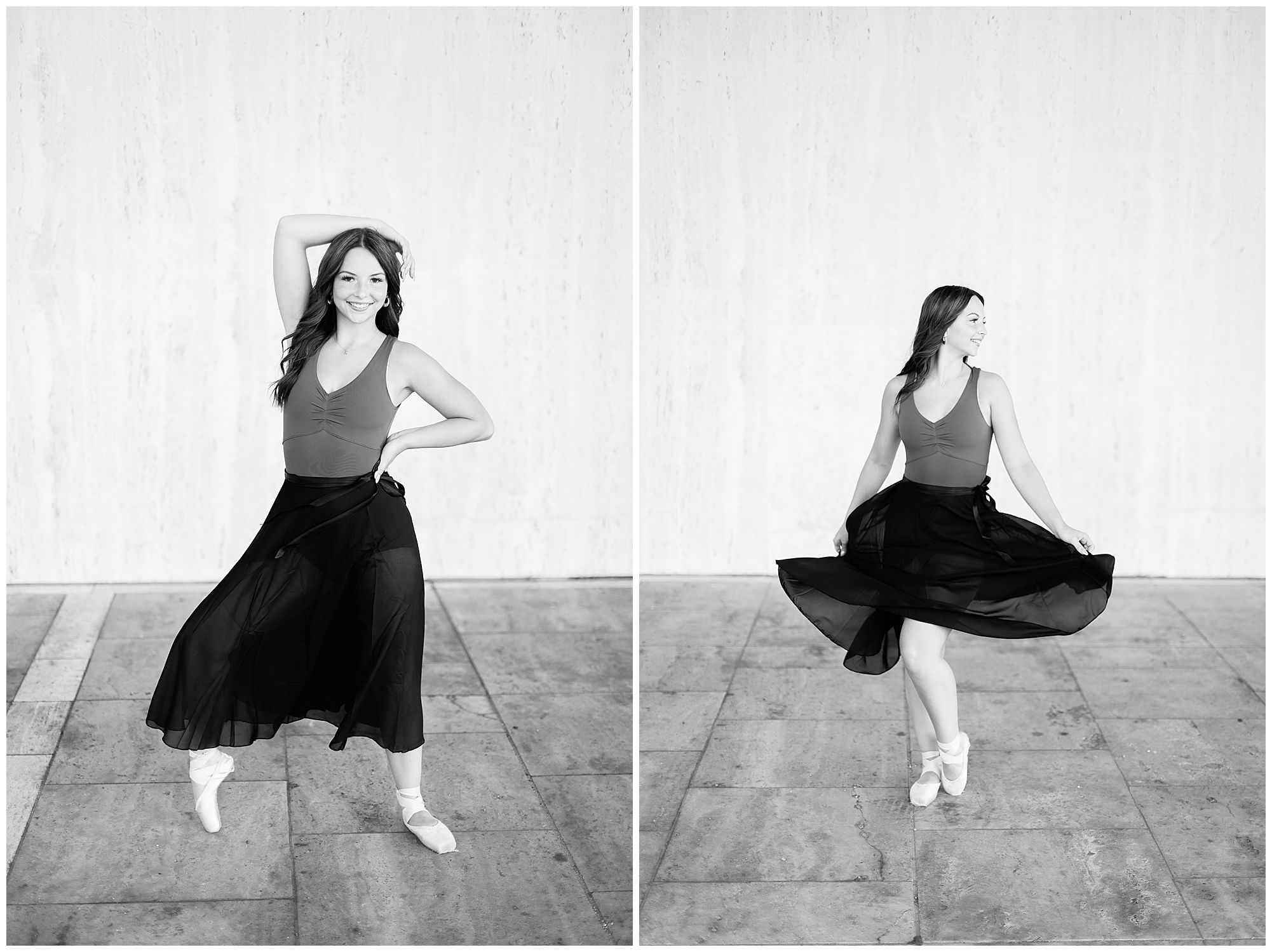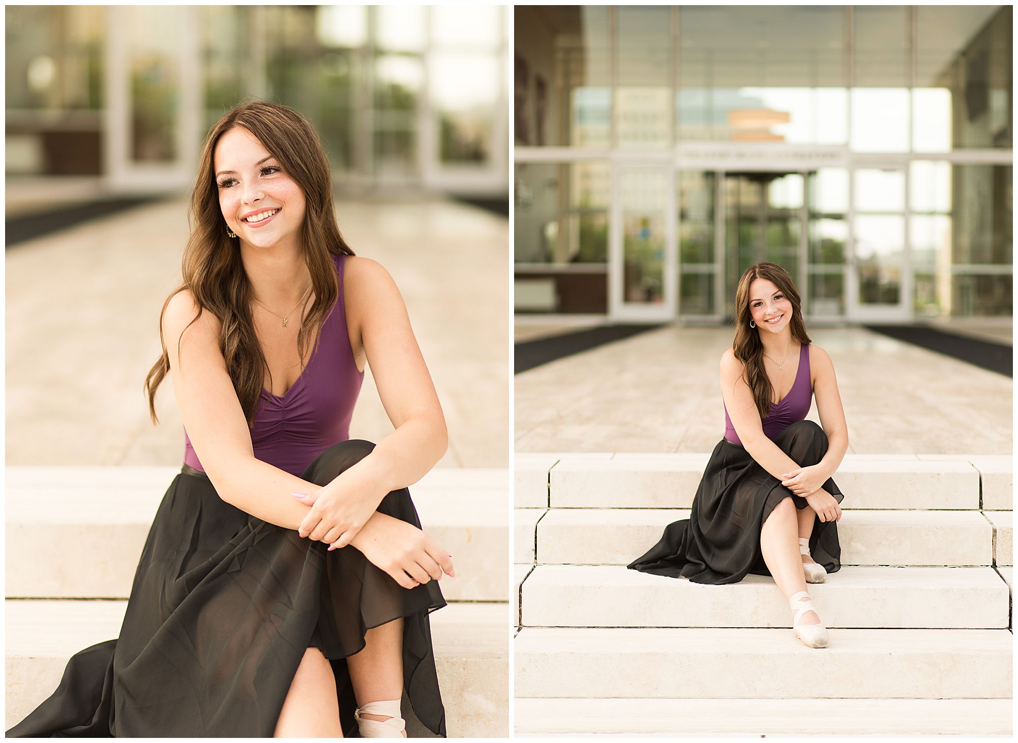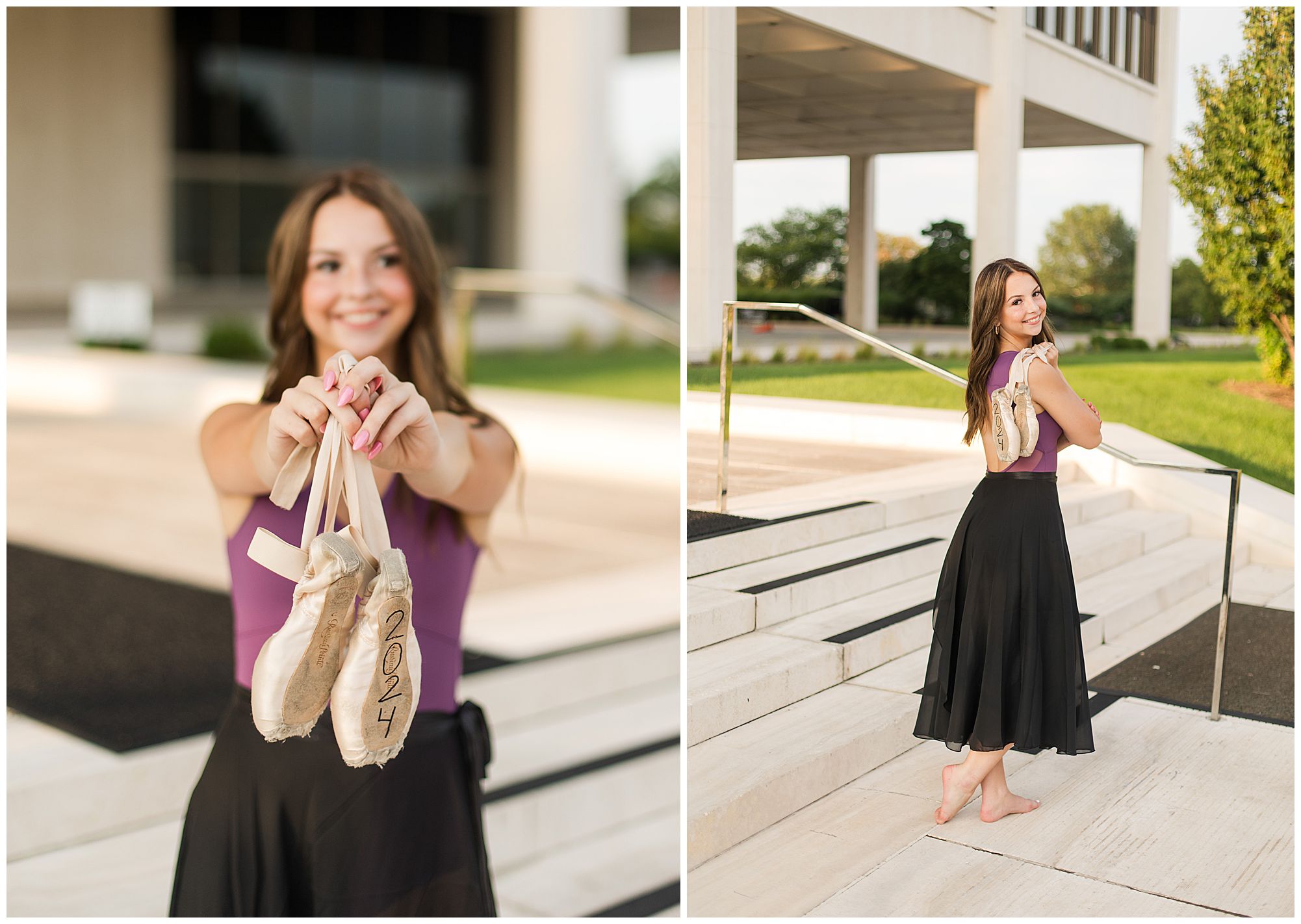 Kaylee is a sweet soul who is up for anything! She is full of energy, grace, and ready to take the world by storm! I met up with Kaylee in downtown Springfield, Illinois for her senior session. She is a Chatham Glenwood High School senior, who loves to dance for her school as well competitively! Kaylee started off in an amazing emerald green top and white pants as we wandered around the Horace Mann building with the pond and marble facade. And of course, she was simply stunning! Kaylee did a quick outfit change into her dance attire and she looked incredible! We had fun playing around with her point shoes and her flowy black skirt. She twirled, kicked, and showed off her moves in the most graceful way! A true dancer, for sure!