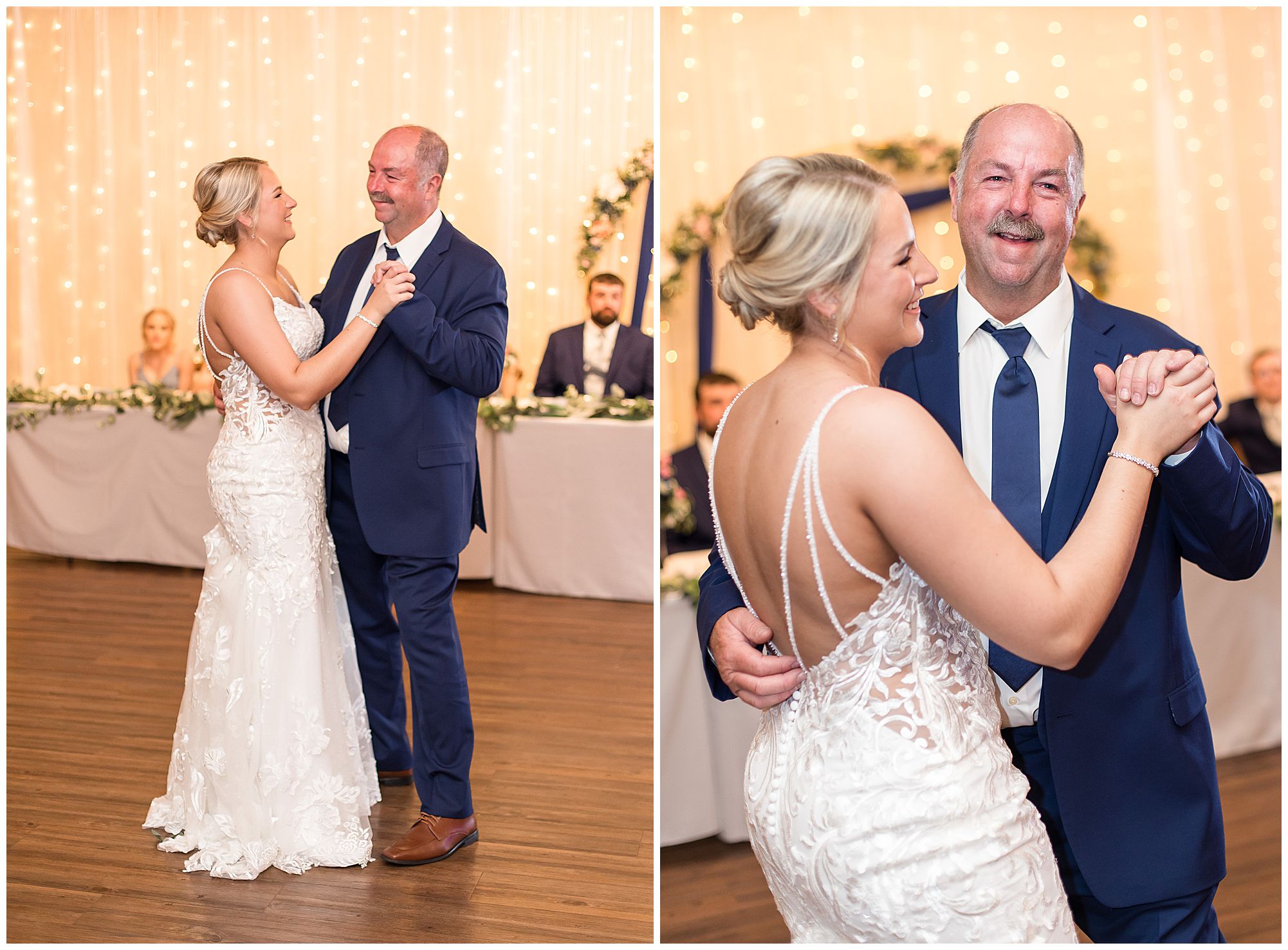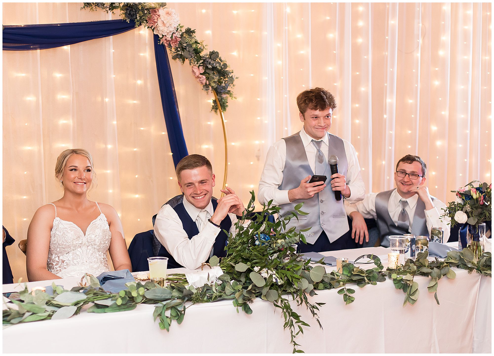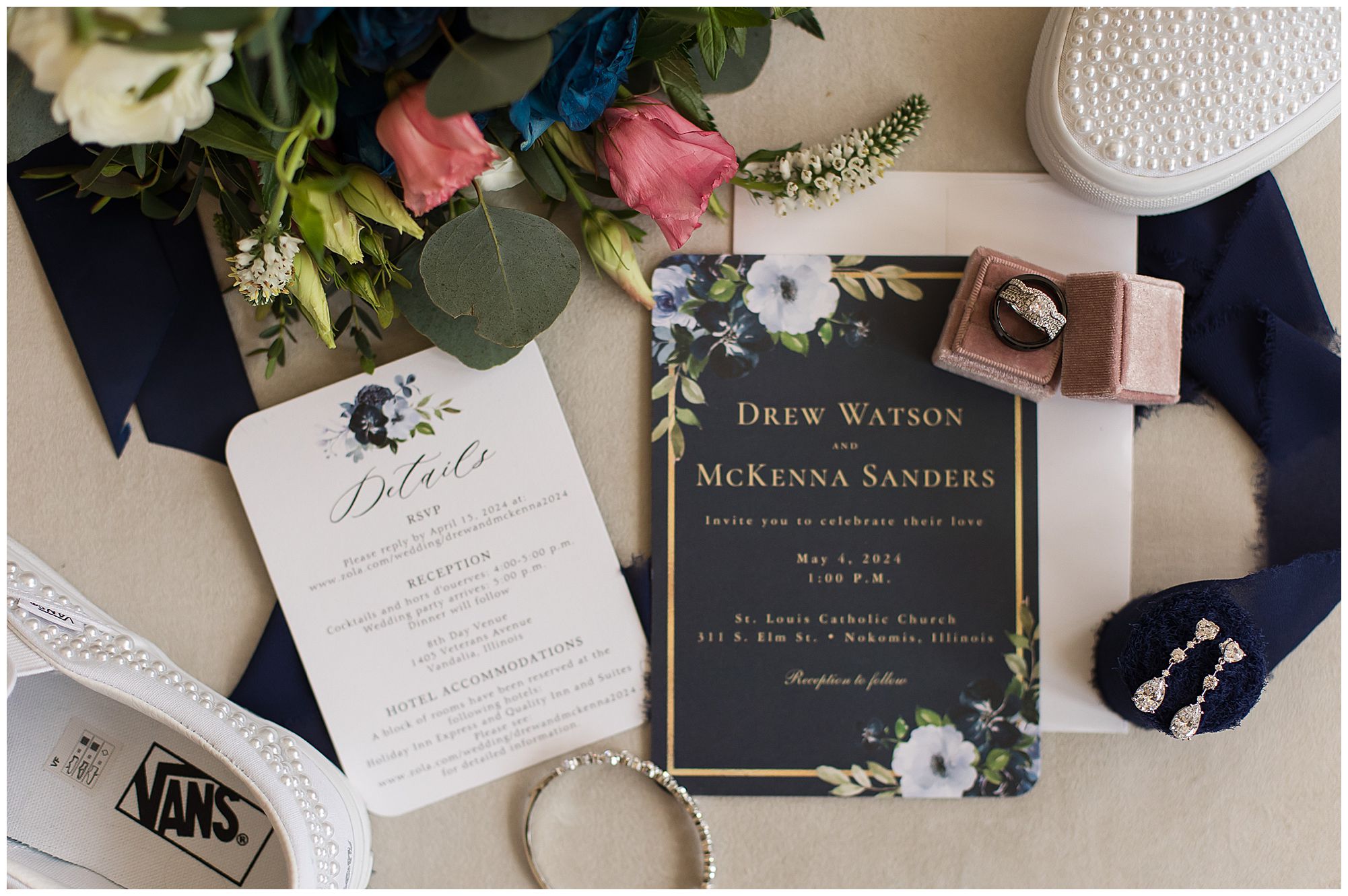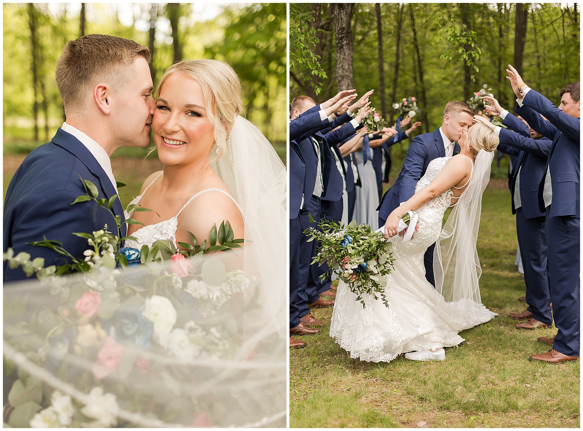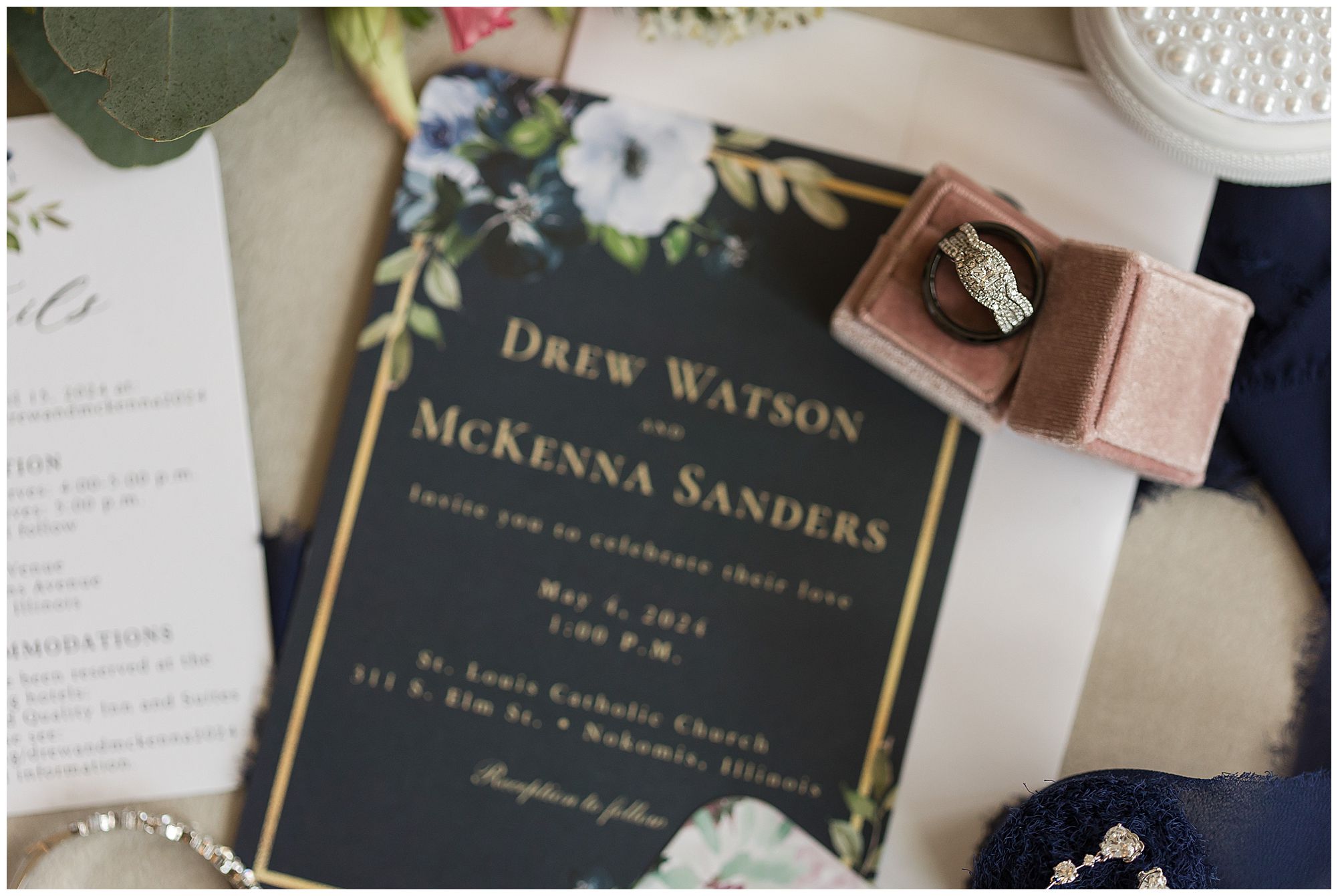 McKenna and Drew held their nuptials at the magnificent St. Louis Catholic Church in Nokomis surrounded by loved ones, who packed the pews. McKenna and her father made her big walk down the aisle towards Drew as the organ played and it really was a moment. This couple chose to get married on this meaningful date of May 4th for a reason. And if their guests listened carefully during the ceremony, they would hear McKenna and Drew weren’t only exchanging rings and vows, but they were actually celebrating their one year anniversary! Yes, I said that right! SURPRISE!!! McKenna and Drew technically tied the knot a year to the day at the same church surrounded by immediate family in an intimate lovely ceremony unbeknownst to many friends. Drew was only days away from being deployed as a firefighter in the U.S. Army (Thank You so much for your service, Drew). I had the pleasure of photographing this beautiful couple as they pledged their lives to one another and become Mr. & Mrs. Watson in this exact spot a year previous. They kept this their little secret until a year later when they could share it with the world! McKenna and Drew renewed their vows and sealed it all with a kiss! Congrats to this wonderful couple!