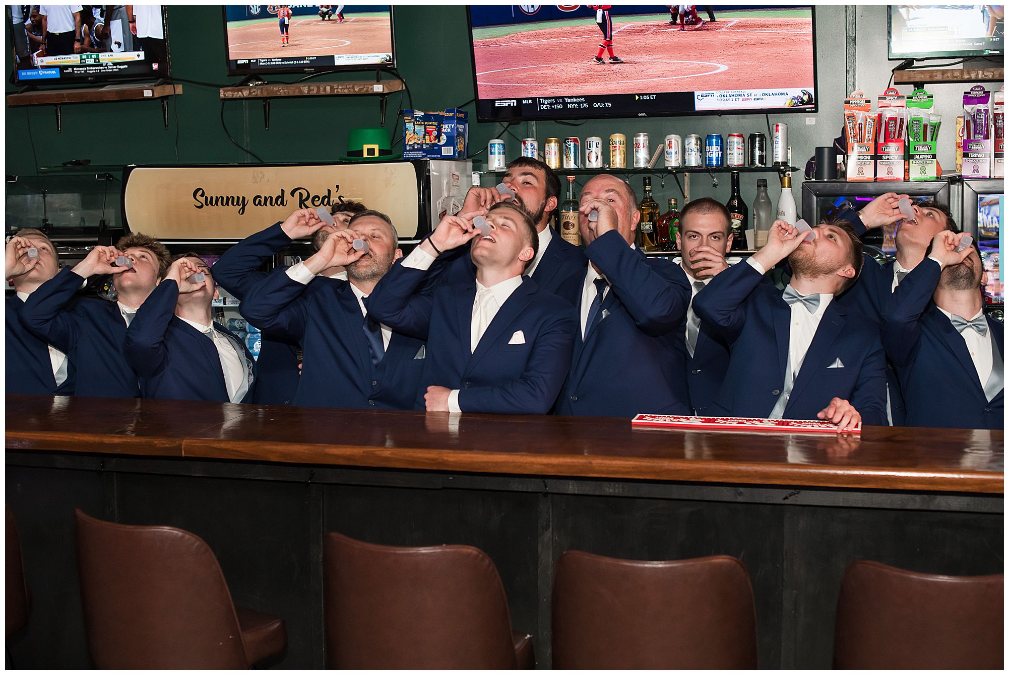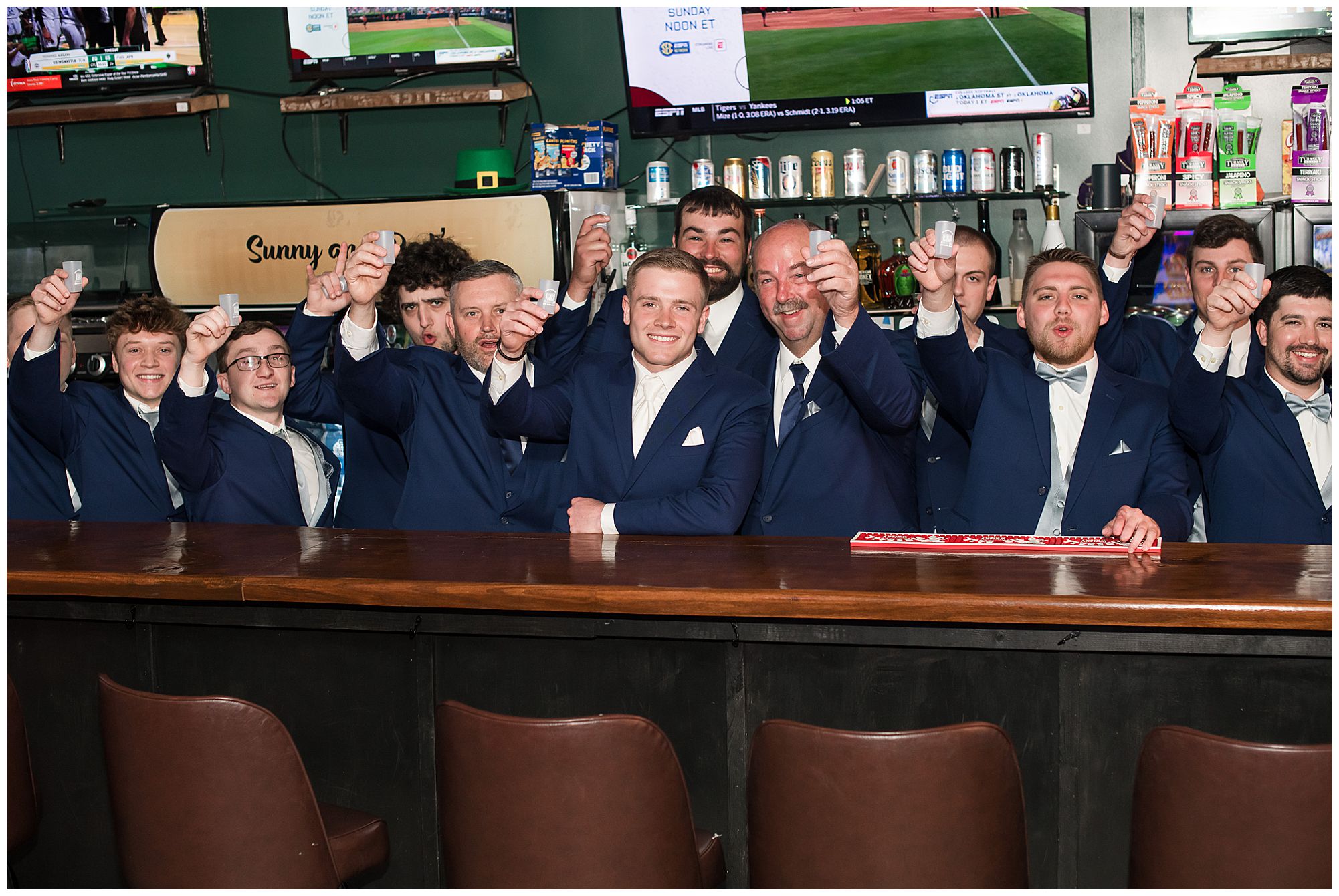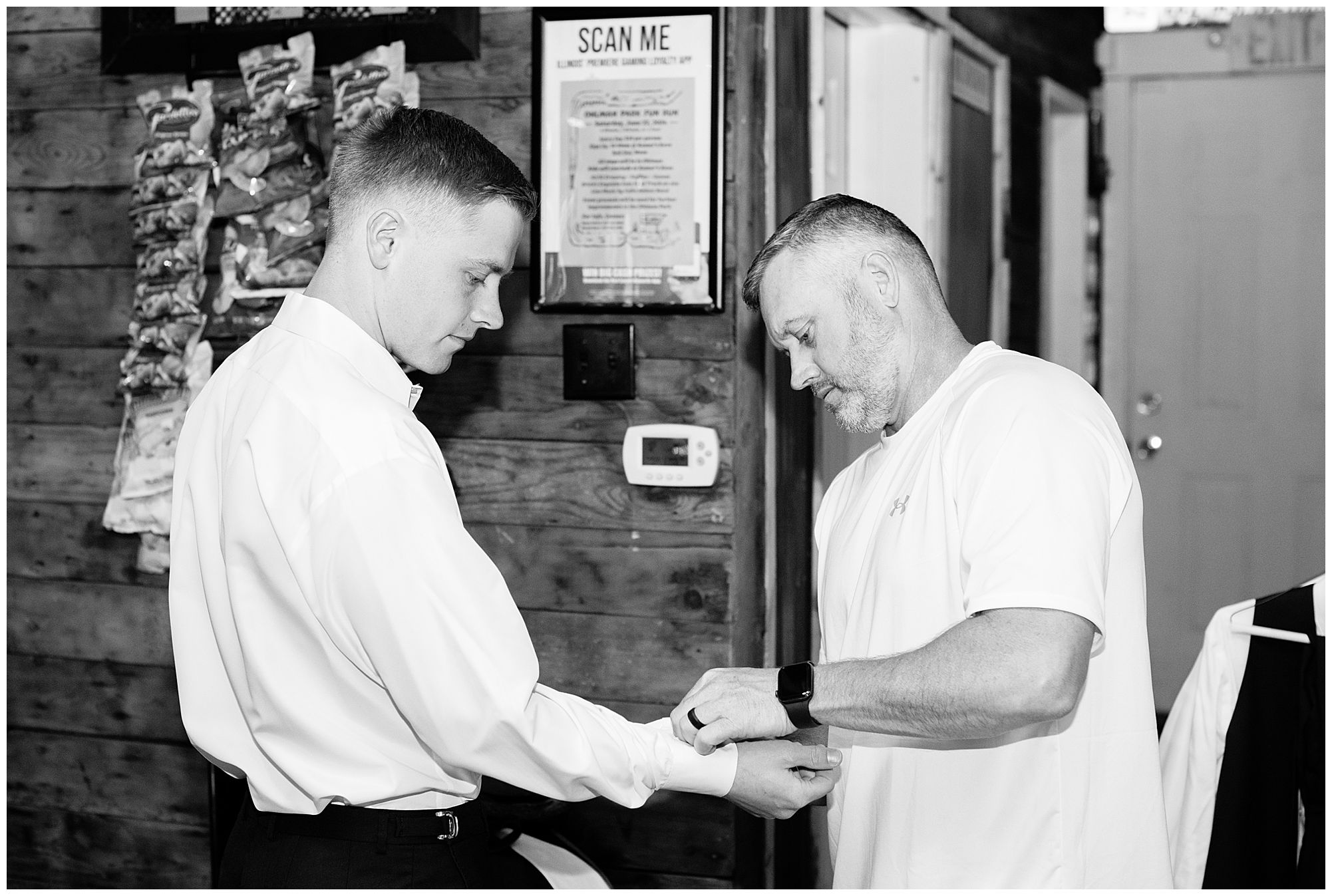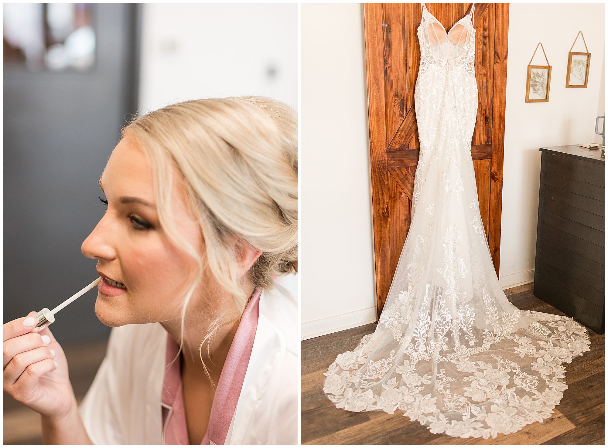 McKenna and her ladies were relaxed and in high spirits at the salon where they were getting hair and makeup done the morning of the big day. They were ahead of schedule, which made everyone happy, including myself, bringing any type of stress level way down. McKenna was laid back and enjoying her time with her bridesmaids along with her mom and Drew’s mom. When it came time for McKenna to step into her gown she was an absolute vision! Her lace dress fit her perfectly and she was simply stunning by every sense of the word! Across the street in the little town of Nokomis, Drew and his guys were hanging out at a local bar, playing games, and enjoying one another’s company on this special day. Drew couldn’t let his bride outshine him too much and cleaned up pretty well in his navy suit and white tie. Now that these two are looking incredible, let’s get them to the church!