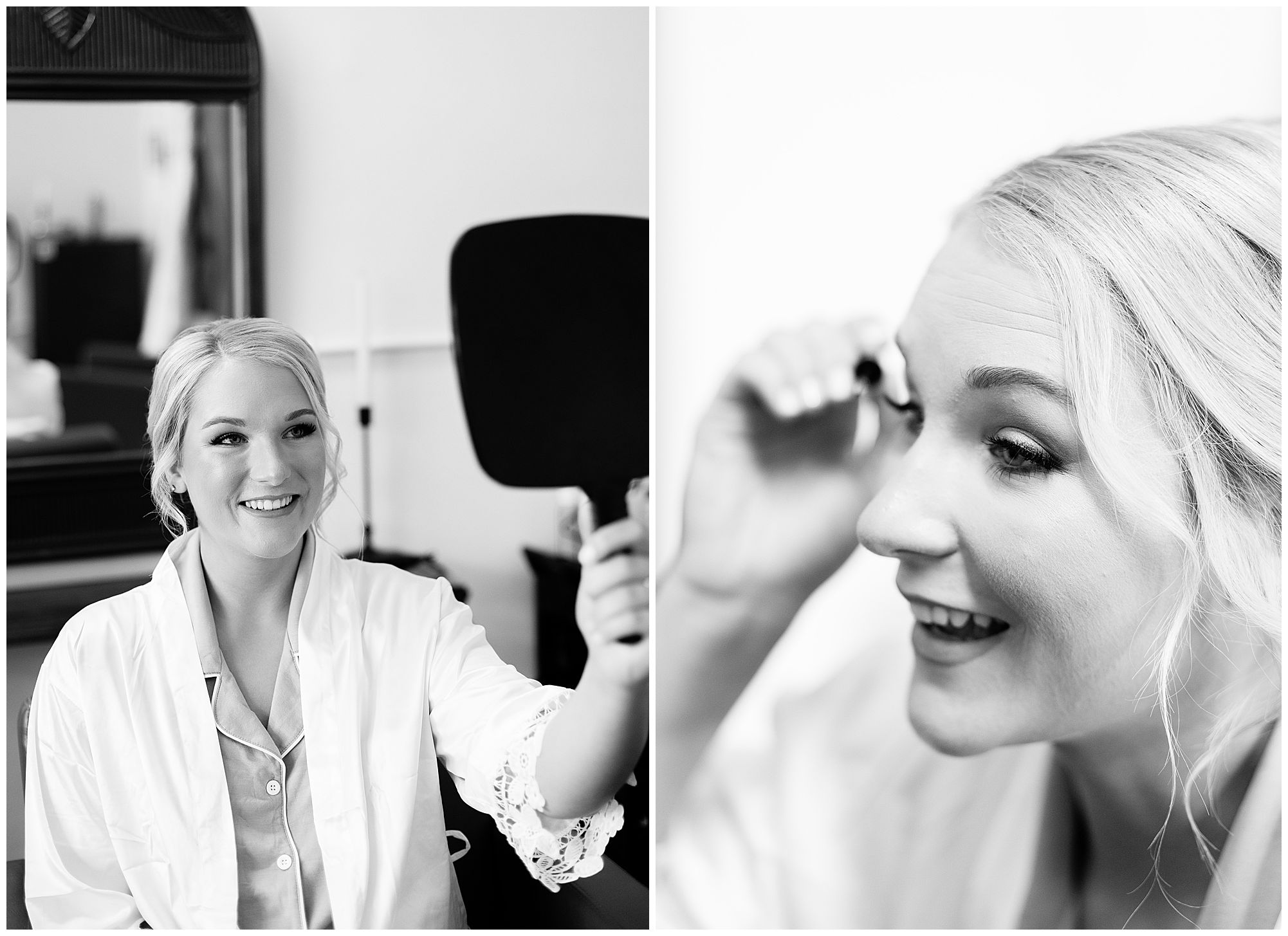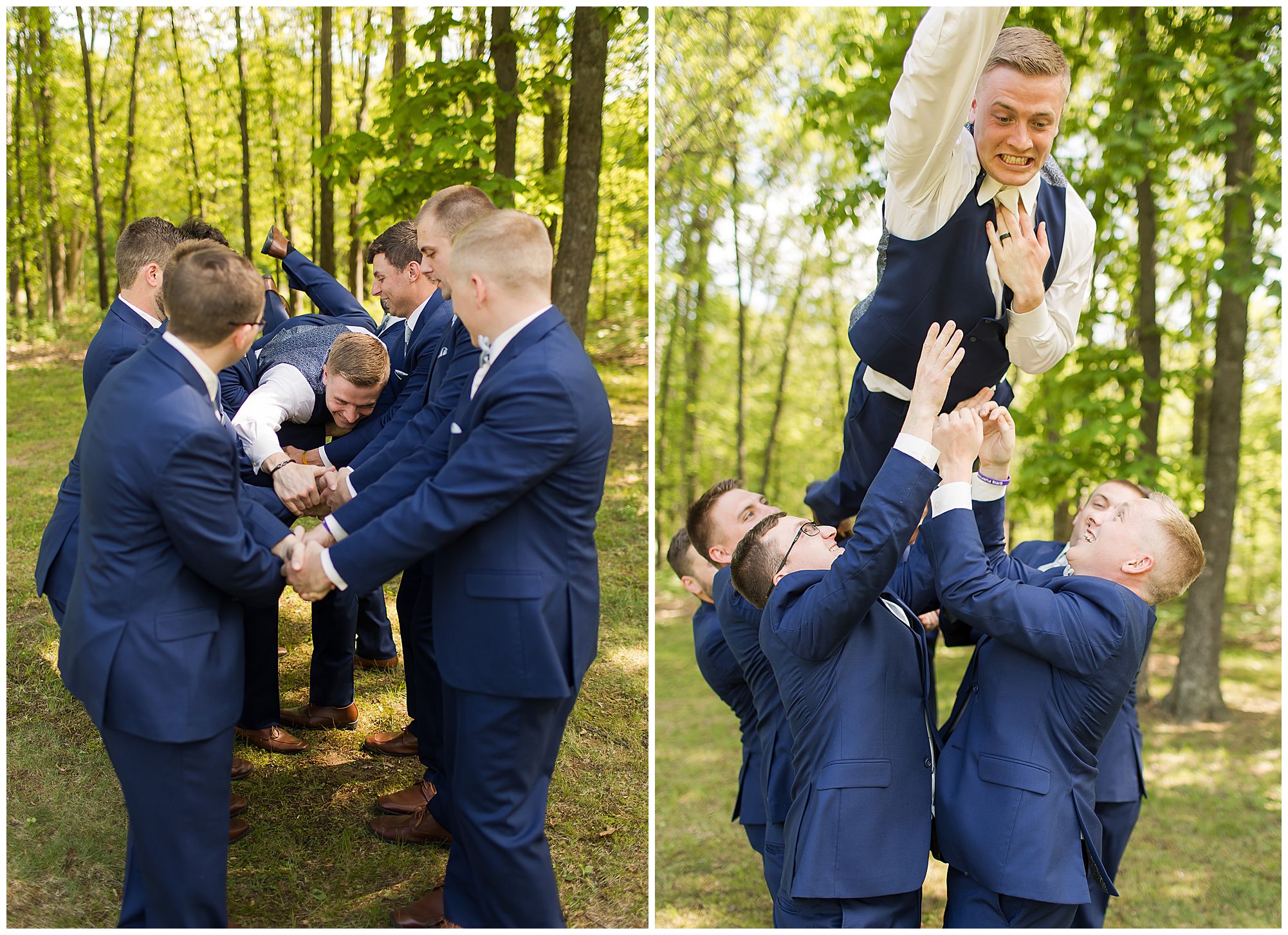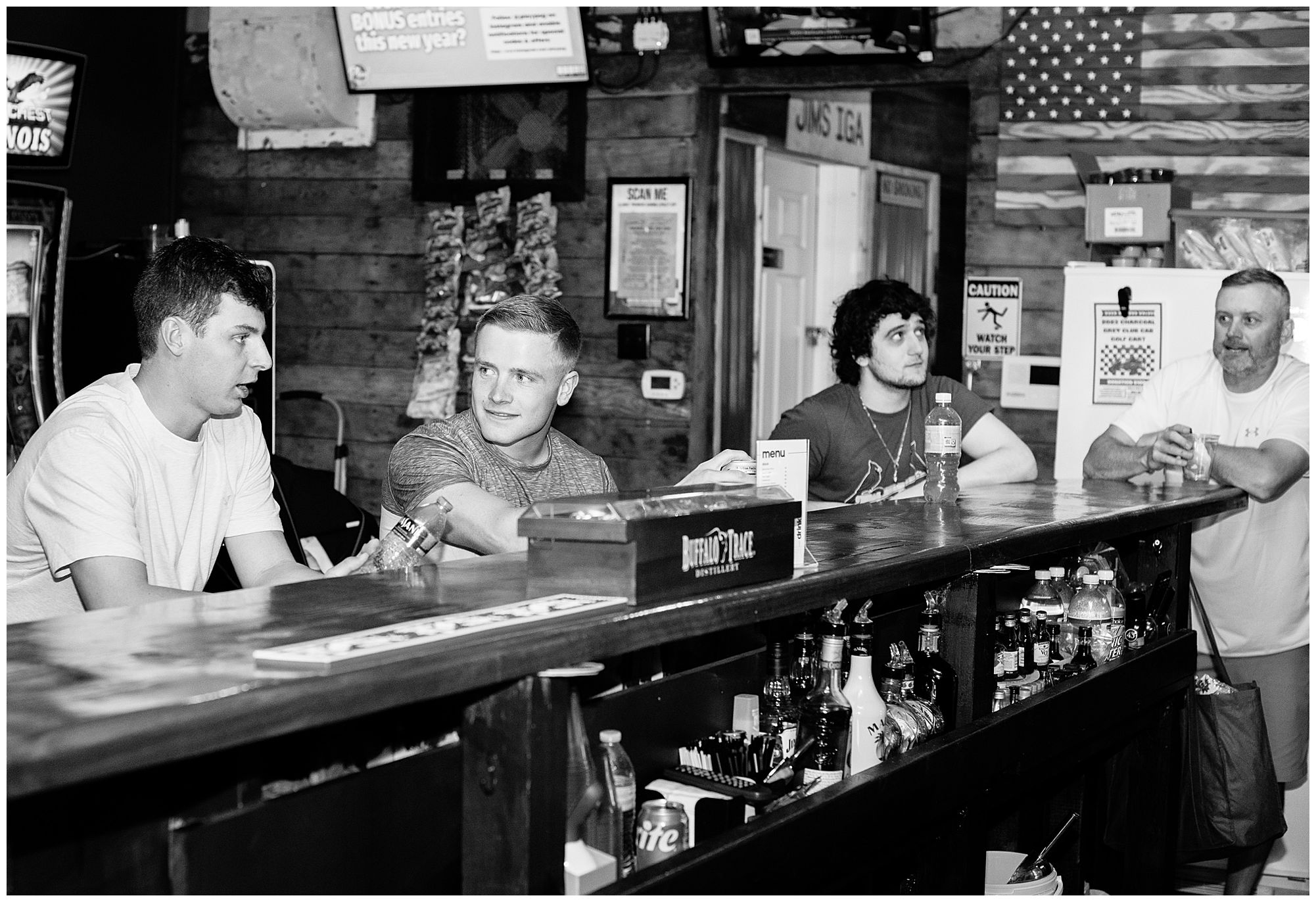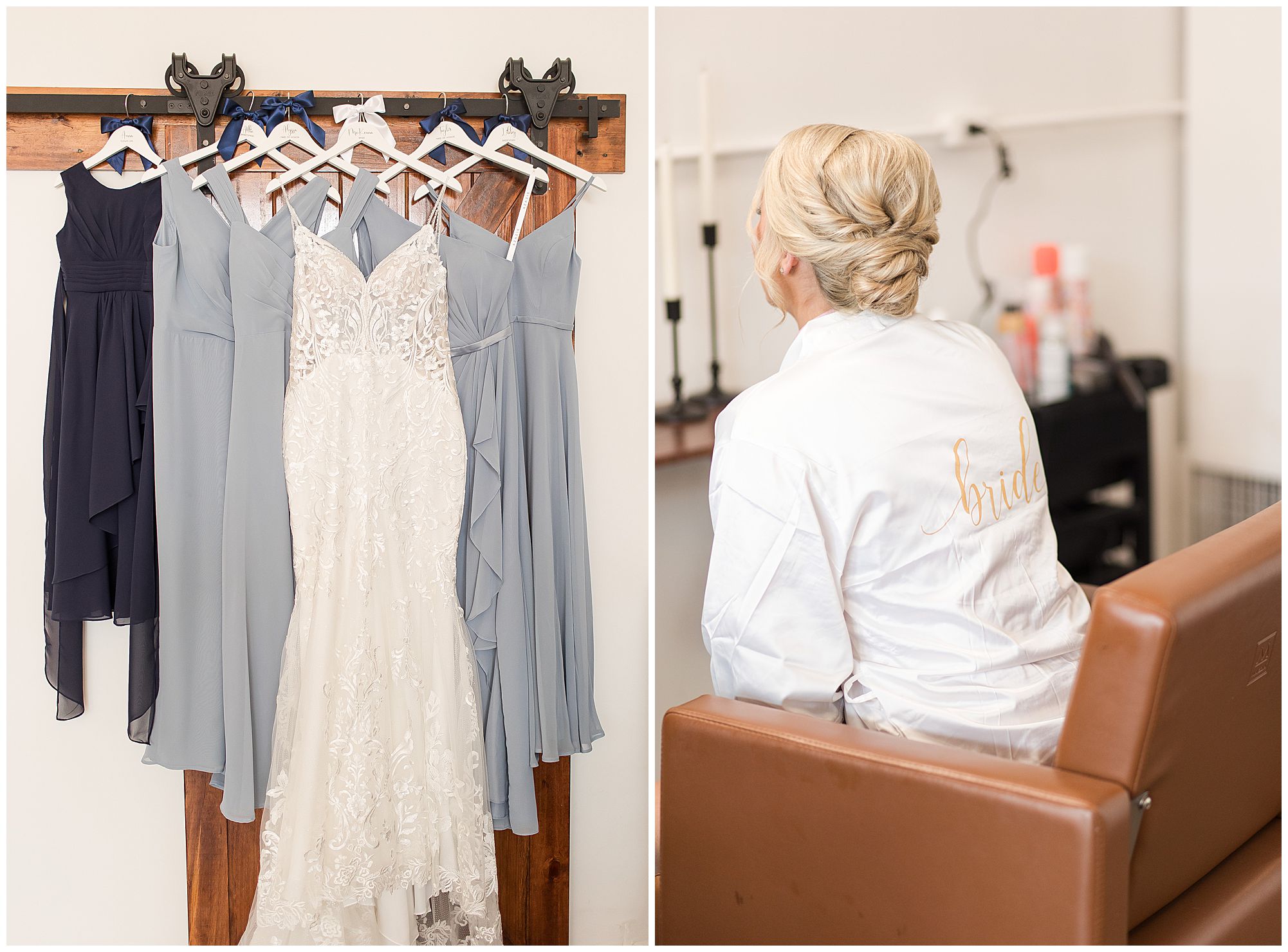 McKenna and her ladies were relaxed and in high spirits at the salon where they were getting hair and makeup done the morning of the big day. They were ahead of schedule, which made everyone happy, including myself, bringing any type of stress level way down. McKenna was laid back and enjoying her time with her bridesmaids along with her mom and Drew’s mom. When it came time for McKenna to step into her gown she was an absolute vision! Her lace dress fit her perfectly and she was simply stunning by every sense of the word! Across the street in the little town of Nokomis, Drew and his guys were hanging out at a local bar, playing games, and enjoying one another’s company on this special day. Drew couldn’t let his bride outshine him too much and cleaned up pretty well in his navy suit and white tie. Now that these two are looking incredible, let’s get them to the church!