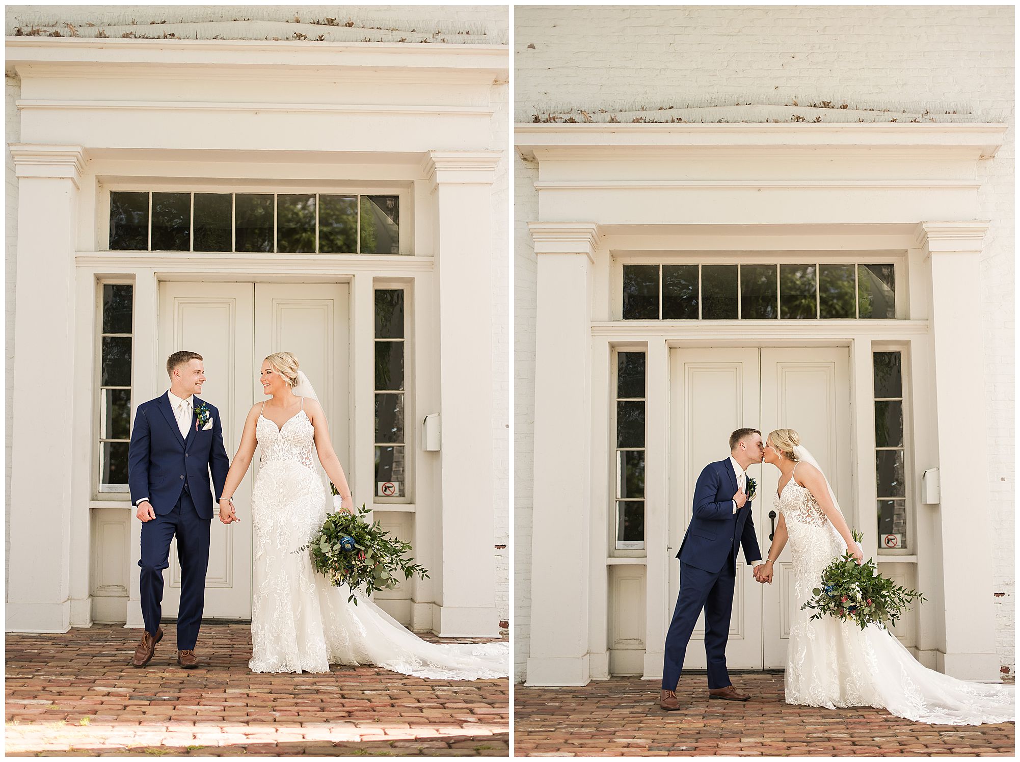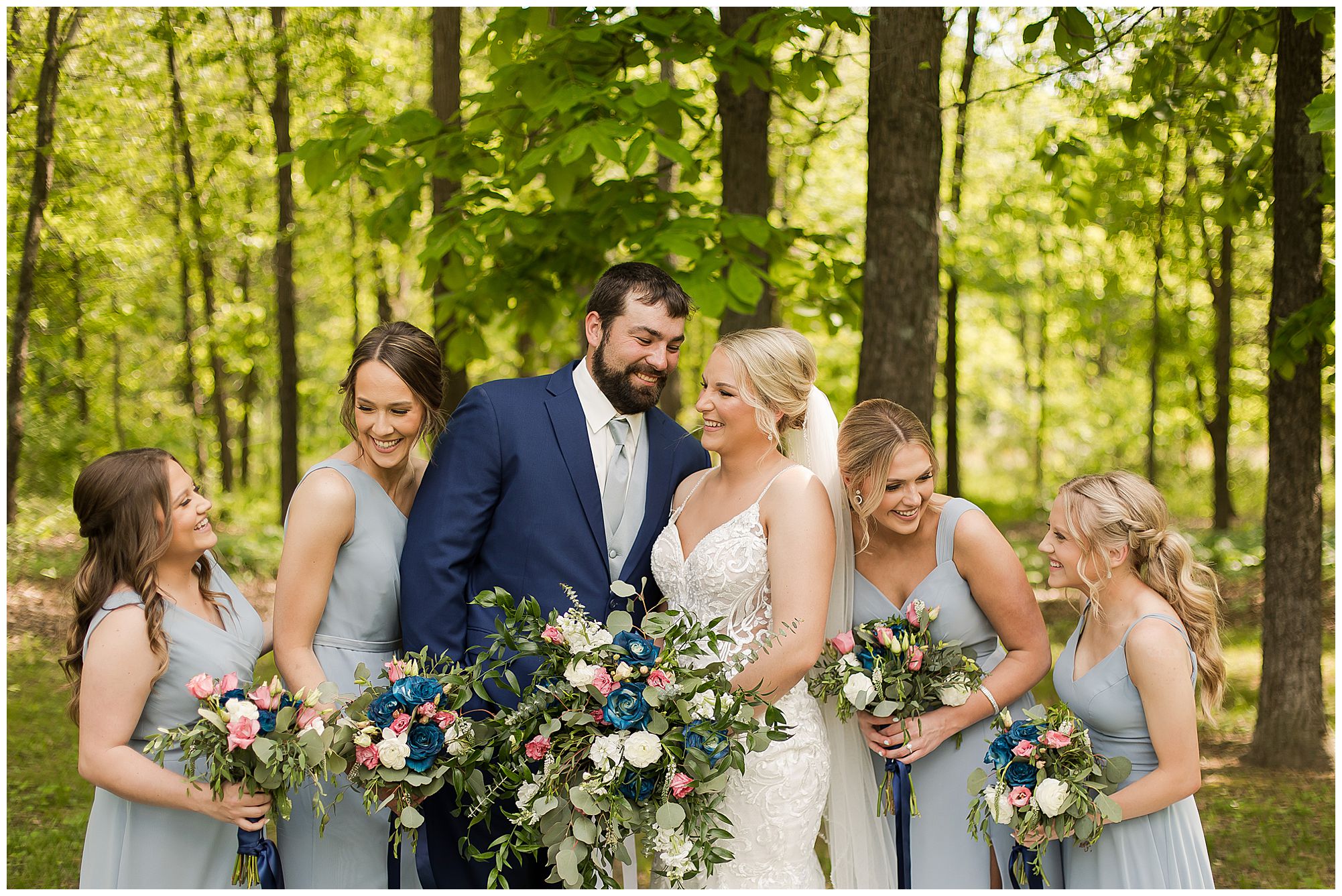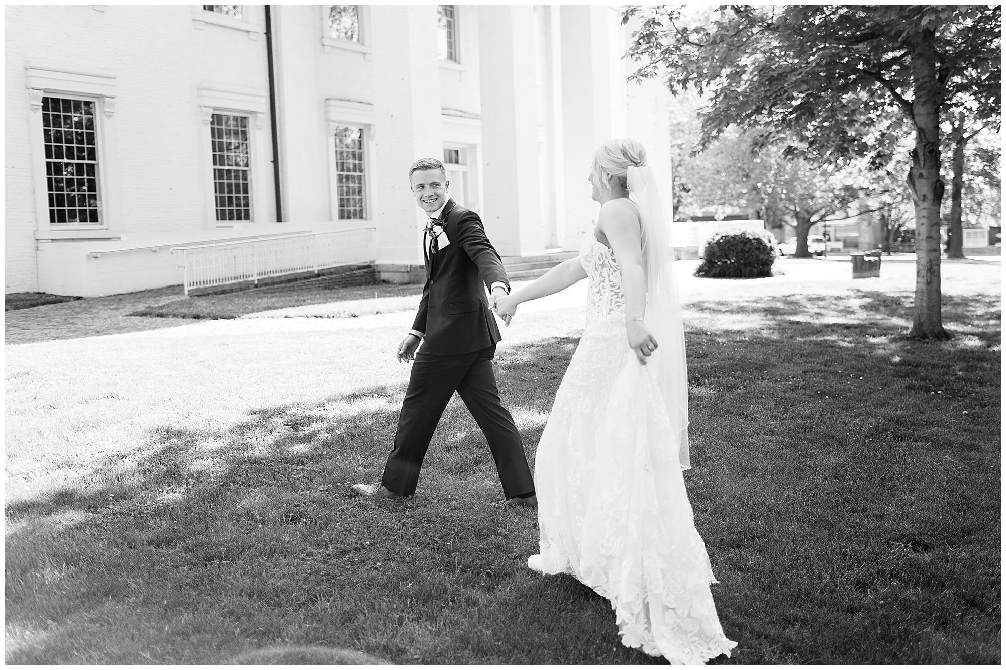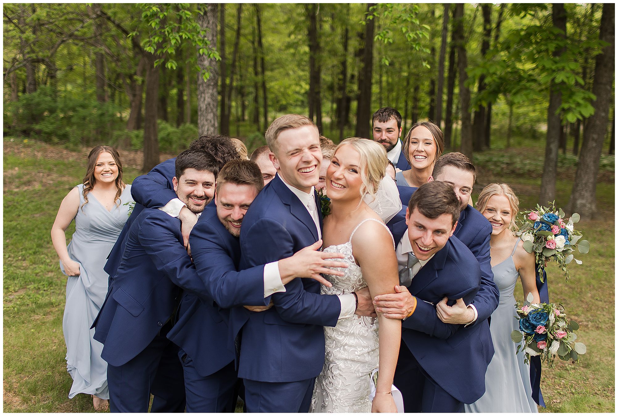 Following the ceremony, the bridal party headed to Ramsey Lake State Park, which was in between Nokomis and Vandalia (where the reception was held). This lovely park was also meaningful to McKenna and Drew as this was where he popped the question! We had a blast with their energetic bridal party with the girls in their dusty shade of blue and the gentlemen in their navy. There was so much laughter and love shared throughout this group filled with siblings and friends. Then getting the opportunity to spend more time with the newlyweds was just a joy! McKenna and Drew are easy going and adore being in one another’s company. We had some extra time, so before heading to the reception hall we took a quick stop at the Vandalia Municipal Courthouse to grab a few more photos of The Watsons! What a statement these made with the large columns and the happy couple making their way around the grounds! Absolutely incredible!