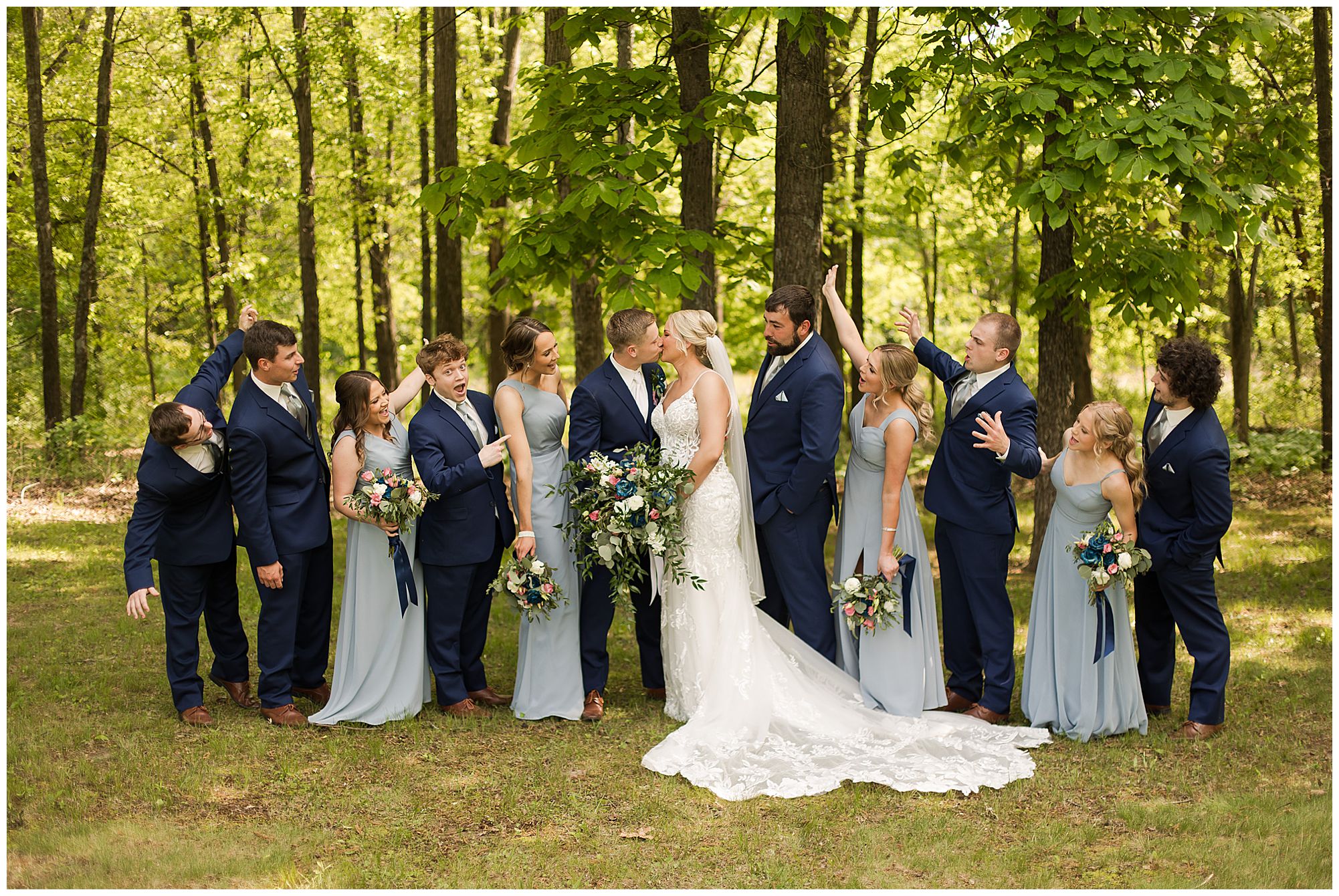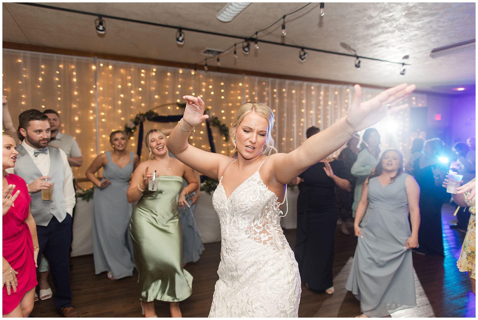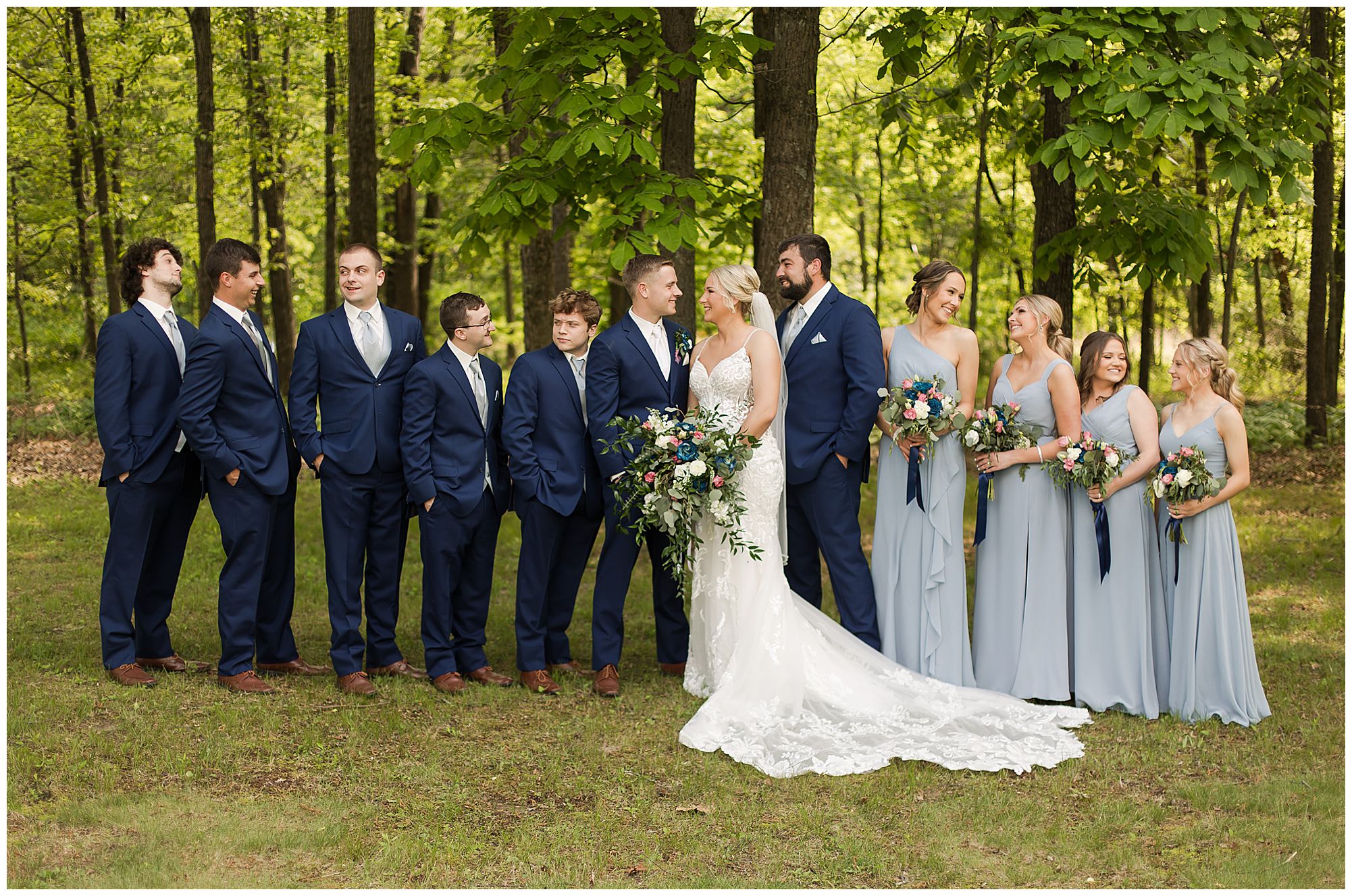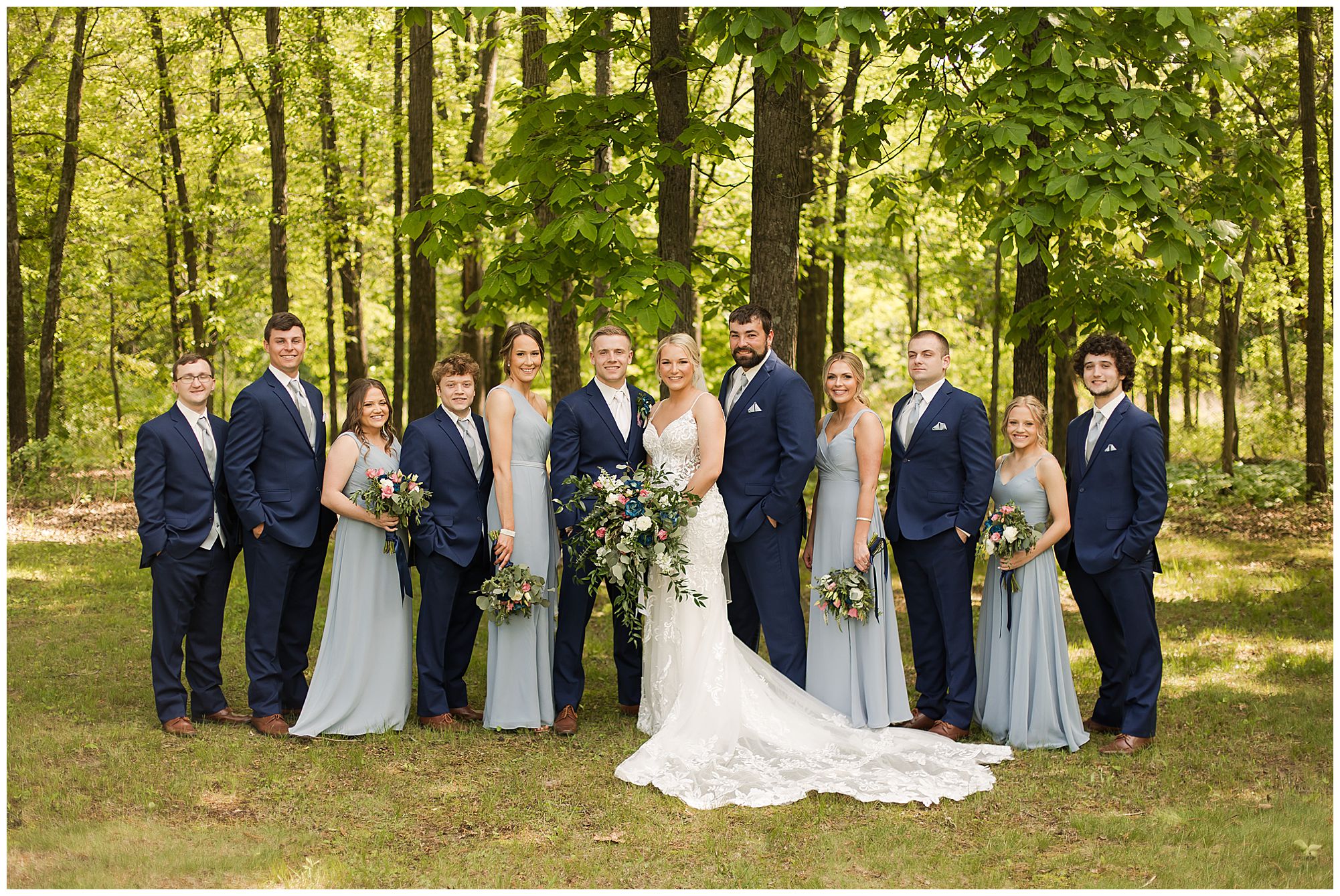 Following the ceremony, the bridal party headed to Ramsey Lake State Park, which was in between Nokomis and Vandalia (where the reception was held). This lovely park was also meaningful to McKenna and Drew as this was where he popped the question! We had a blast with their energetic bridal party with the girls in their dusty shade of blue and the gentlemen in their navy. There was so much laughter and love shared throughout this group filled with siblings and friends. Then getting the opportunity to spend more time with the newlyweds was just a joy! McKenna and Drew are easy going and adore being in one another’s company. We had some extra time, so before heading to the reception hall we took a quick stop at the Vandalia Municipal Courthouse to grab a few more photos of The Watsons! What a statement these made with the large columns and the happy couple making their way around the grounds! Absolutely incredible!