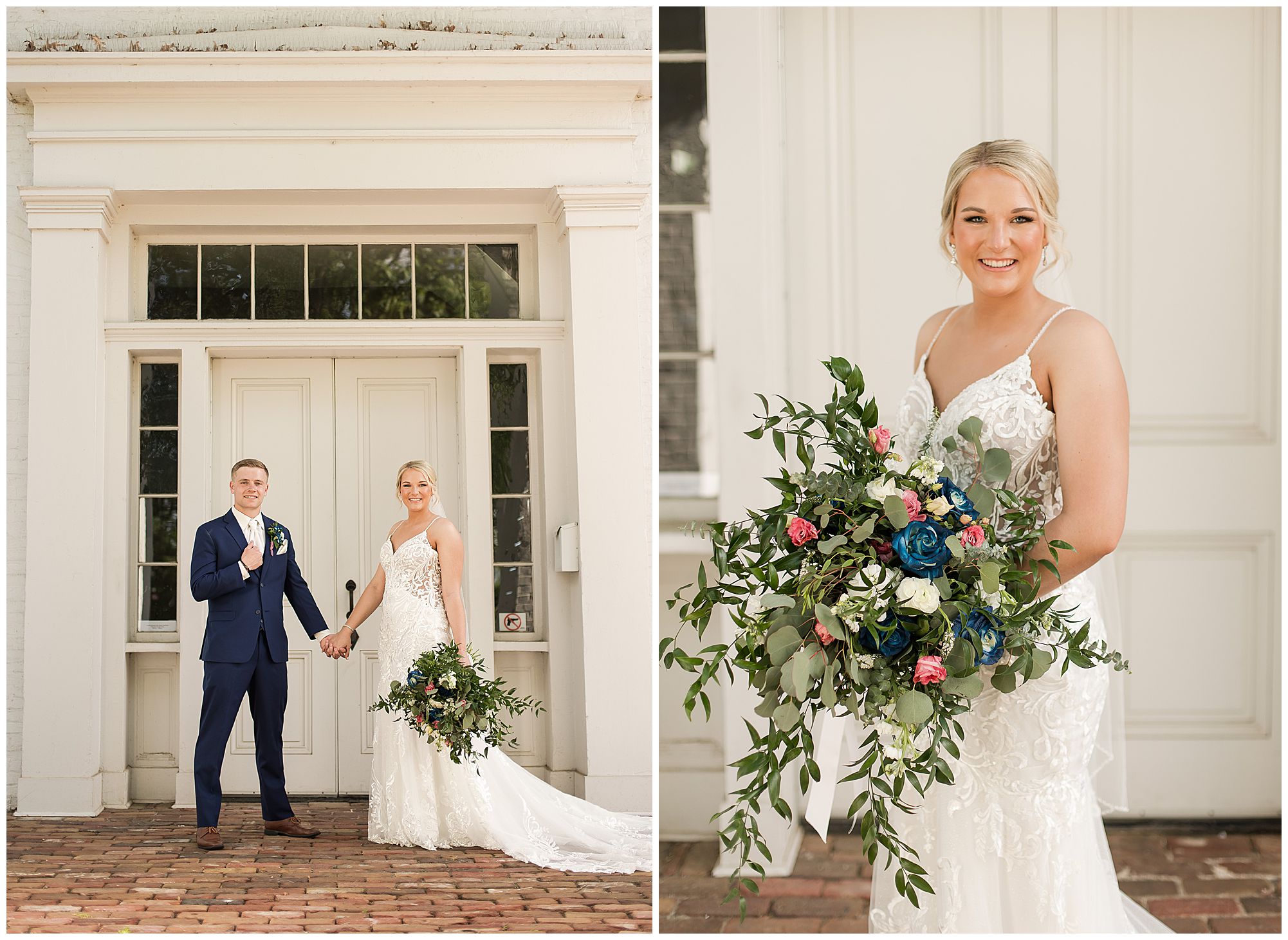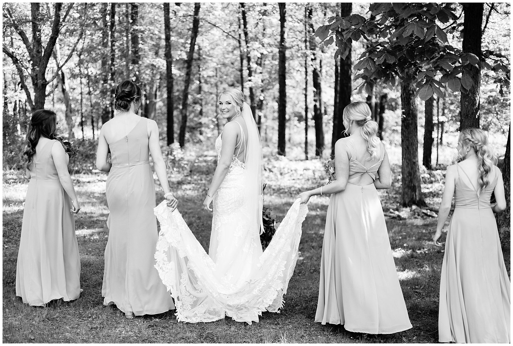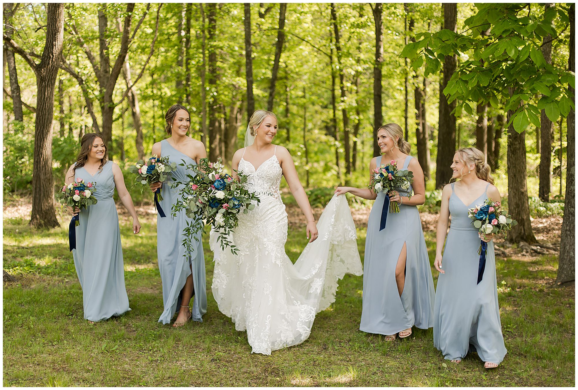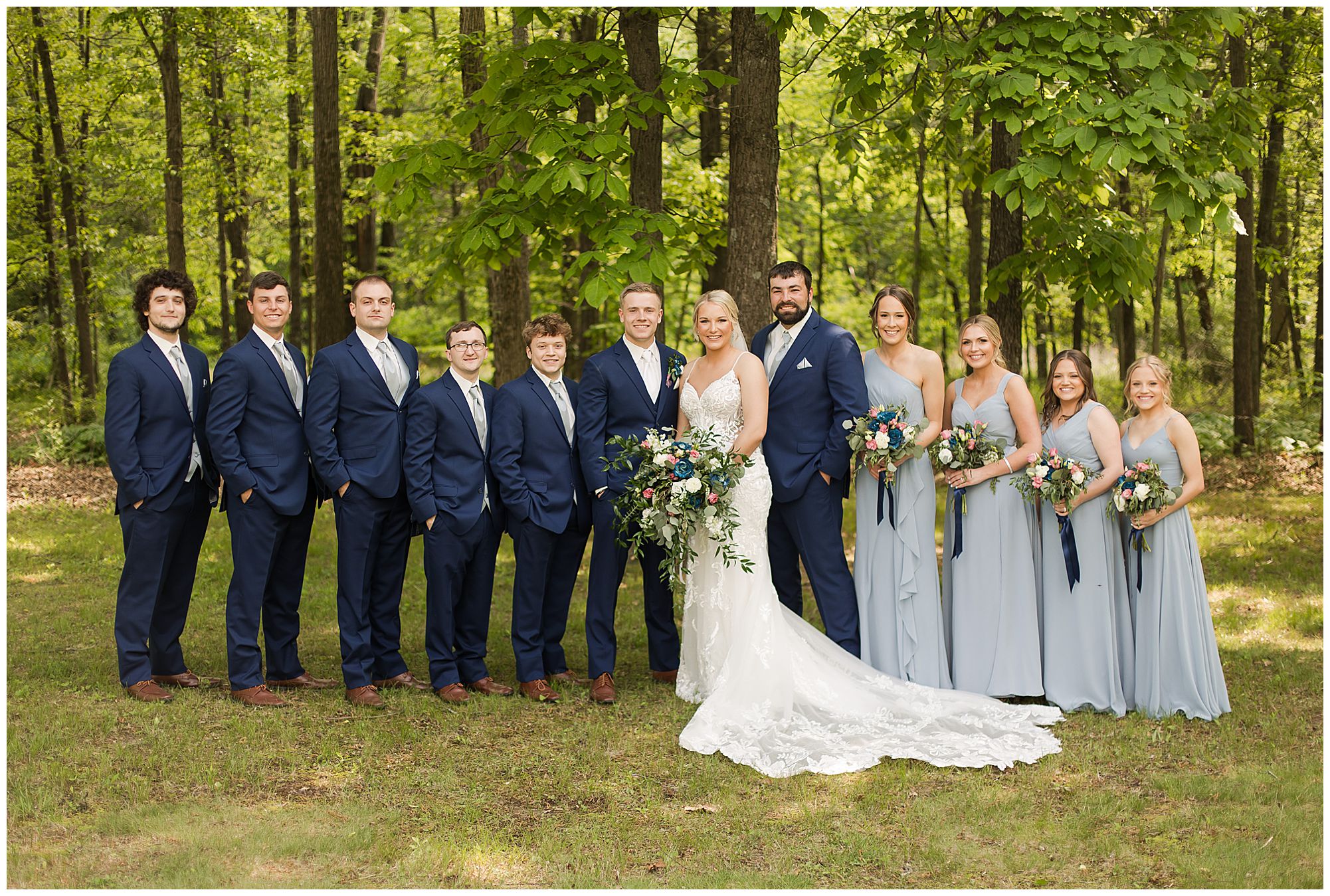 Following the ceremony, the bridal party headed to Ramsey Lake State Park, which was in between Nokomis and Vandalia (where the reception was held). This lovely park was also meaningful to McKenna and Drew as this was where he popped the question! We had a blast with their energetic bridal party with the girls in their dusty shade of blue and the gentlemen in their navy. There was so much laughter and love shared throughout this group filled with siblings and friends. Then getting the opportunity to spend more time with the newlyweds was just a joy! McKenna and Drew are easy going and adore being in one another’s company. We had some extra time, so before heading to the reception hall we took a quick stop at the Vandalia Municipal Courthouse to grab a few more photos of The Watsons! What a statement these made with the large columns and the happy couple making their way around the grounds! Absolutely incredible!
