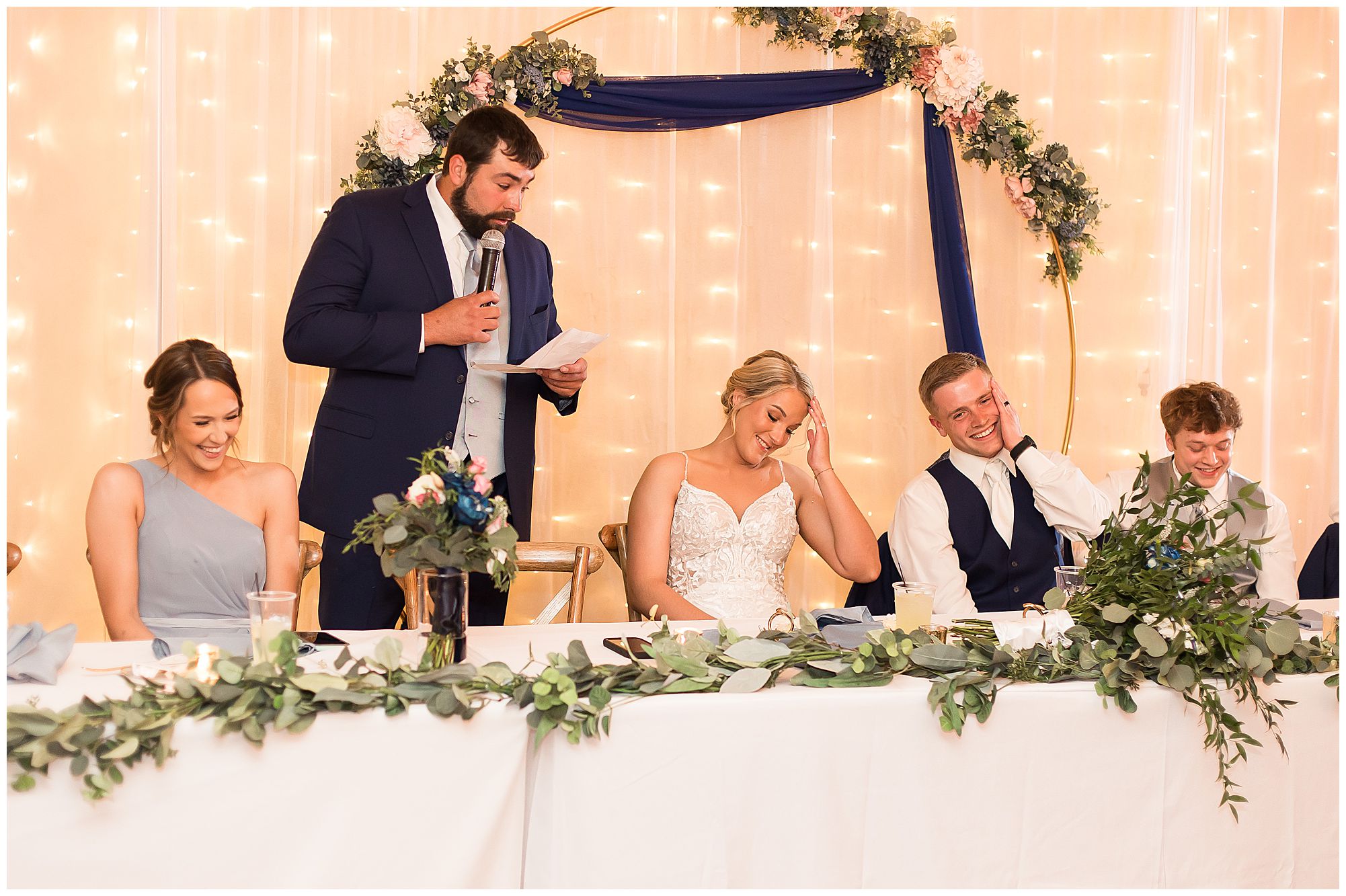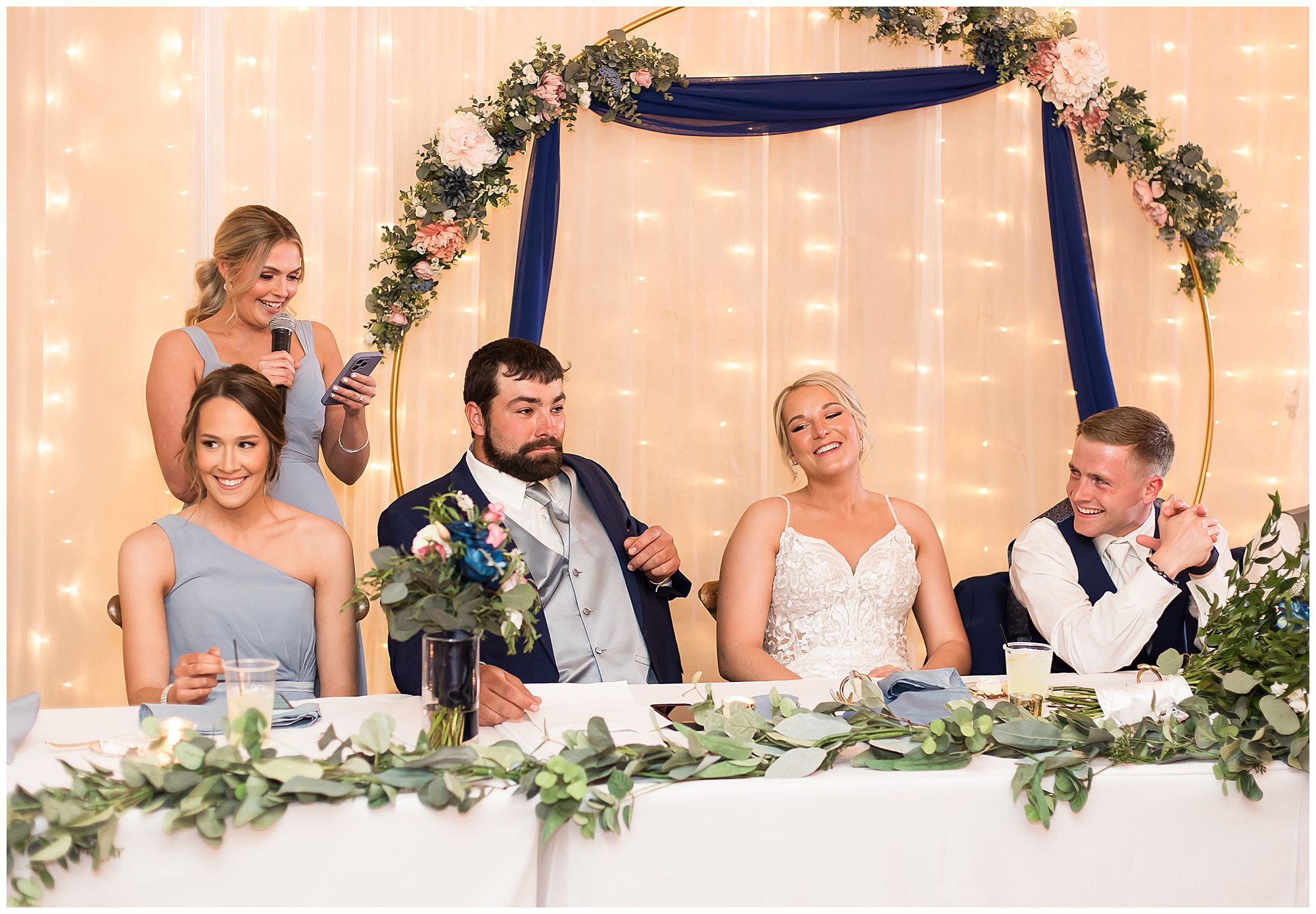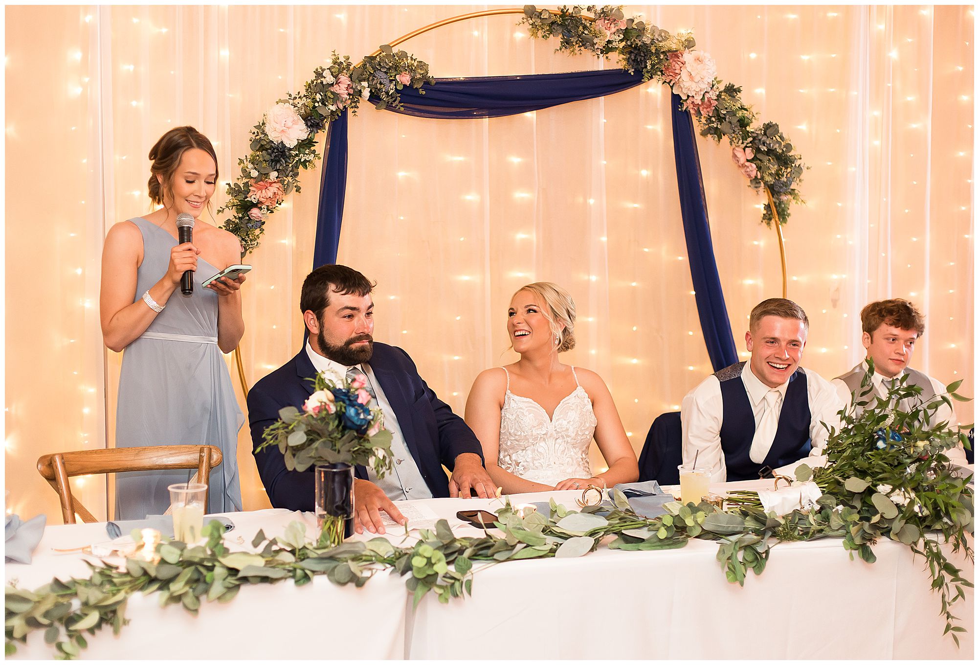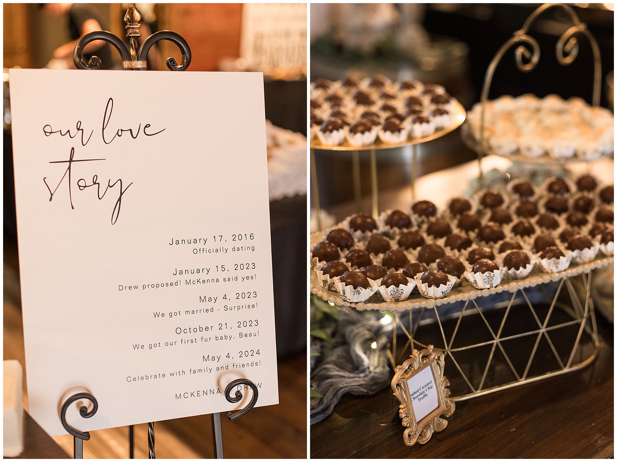 McKenna and Drew’s reception was gorgeous at 8th Day Venue with lovely touches of rustic, gold glam, and of course so much fun! They shared delightful dances as Mr. & Mrs. as well as McKenna with her father and Drew with his mother. McKenna and her mom even busted out a fun line dance and invited bridesmaids and guests to join! How amazing! And can I just tell you about their sweet table?! McKenna and Drew didn’t just cut the cake…The cut a cheesecake! And their sweet table was filled with truffles, cookies, and mini cheesecakes! I’m mean, delicious!!! I may have snuck a few home with me! We tried to sneak McKenna and Drew outside for any type of sunset photos before the impending storm (that luckily stayed at bay all day for us) rolled into town. Unfortunately, by the time they finished dinner and we went to walk out the front door, the winds kicked up and for safety we called it off! Yet, the dance floor was filled all evening and the party was on in celebration for this awesome couple! So can’t be mad at that! I’m so honored I not only could be a part of celebrating the marriage of McKenna and Drew once, but twice on their one year anniversary! I’m wishing them many more years of blessings! Cheers to The Watsons!