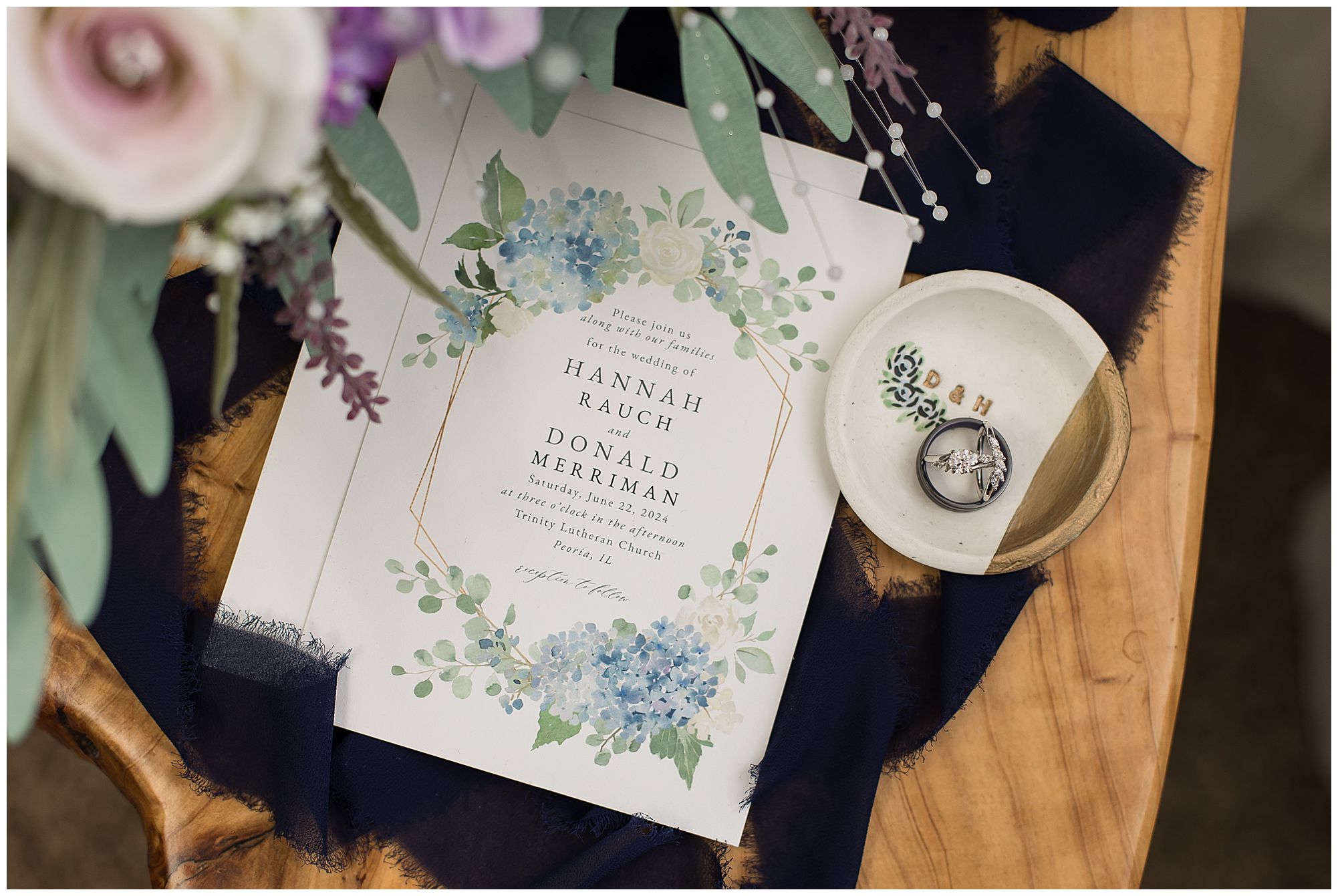 Hannah and Don chose to hold their nuptials at a church that is near and dear to Hannah and her family’s heart. She grew up in the Trinity Lutheran Church and her father played many important roles within the church so it was very important this be the spot they tied the knot. It was a gorgeous setting for Hannah to make her way down a flower lined aisle with her father to her awaiting groom. The ceremony was filled with meaningful scriptures, prayers for the couple, and traditions. Hannah and Don exchanged rings plus their vows then sealed it all with a kiss. Congrats to Mr. & Mrs. Merriman.