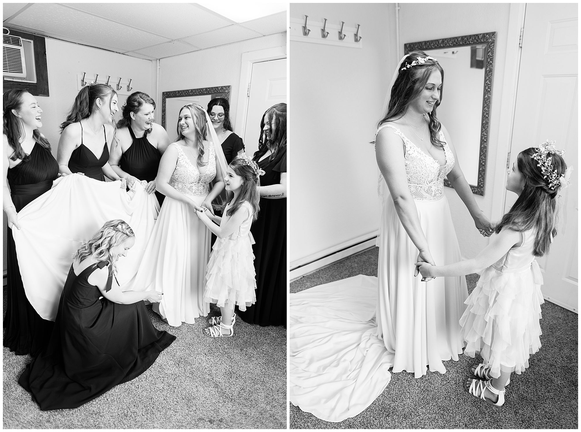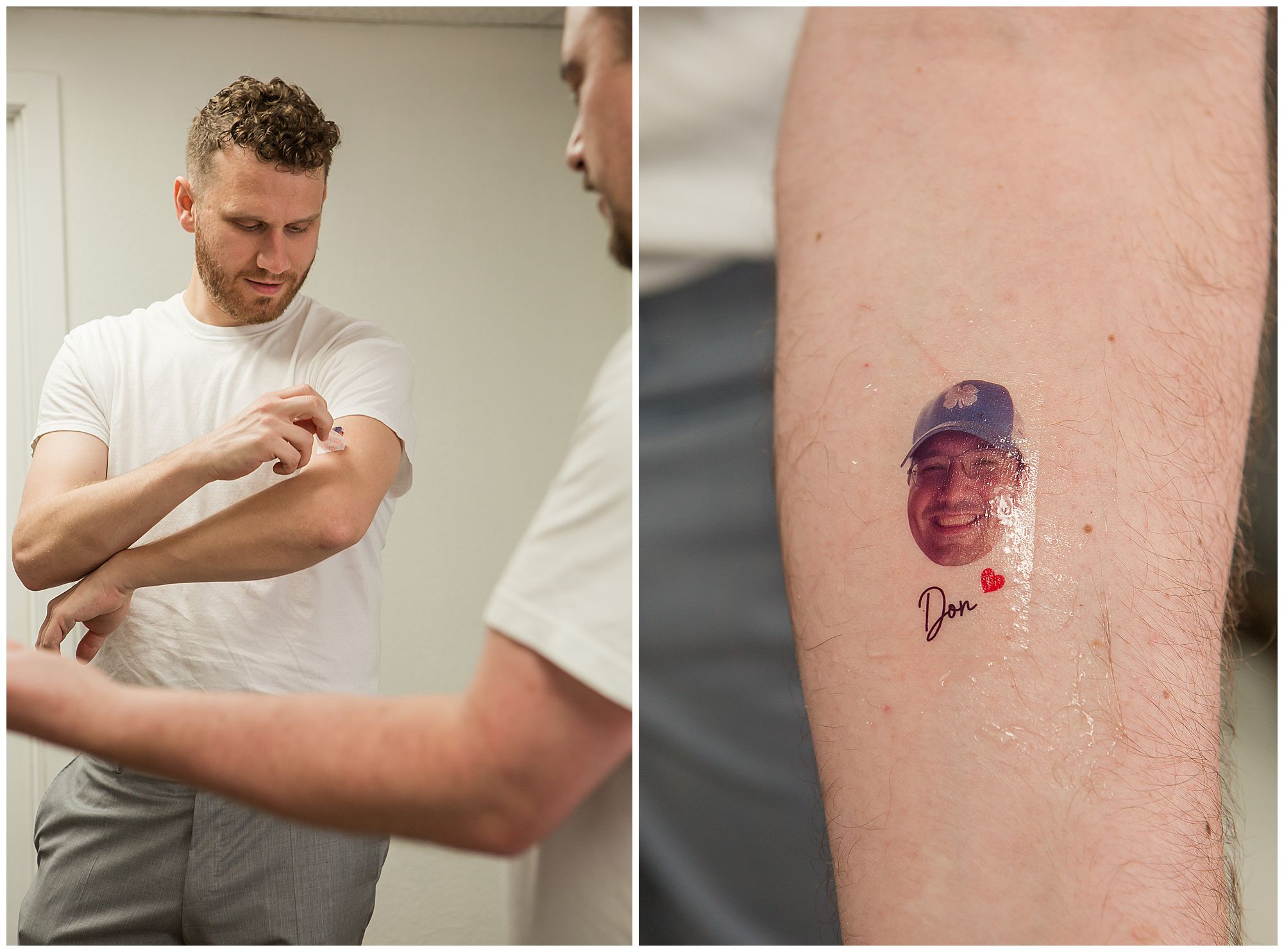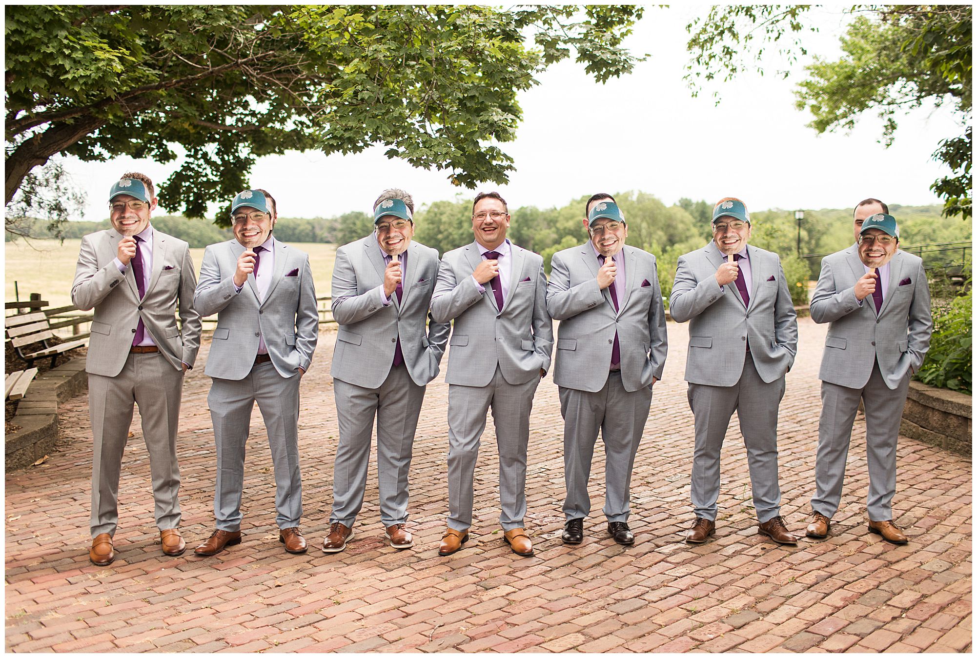 Hannah and her ladies were full of so much energy and excitement in the morning as they were getting hair and makeup done. They were reminiscing back on memories and their friendships. And while the girls were primping in one room at the park, Don and his groomsmen were literally in the room right next door prepping their game day fits! But, before the guys got in their suits they added one special detail which was very important…Temporary tattoos of Don’s face! These matched the “Fat Head Don’s” they brought to portraits later as a surprise, which was absolutely hilarious! This crew definitely kept me laughing all day! But, before we technically started bridal party photos, we had to let this bride and groom see each other first. They were both a little nervous, but so ready to see their best friend to help calm those nerves. Once Don turned to see Hannah you couldn’t have wiped the smile off his face if you tried. These two truly get so much joy in each other’s arms.