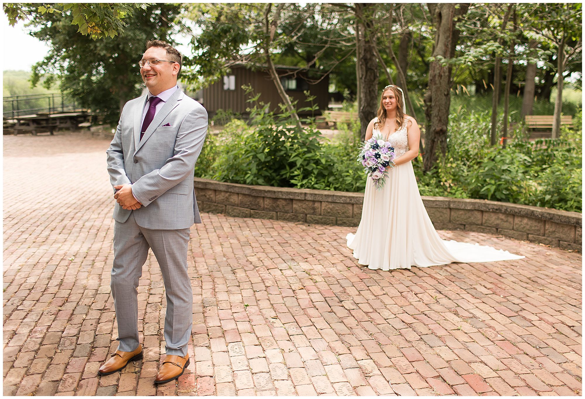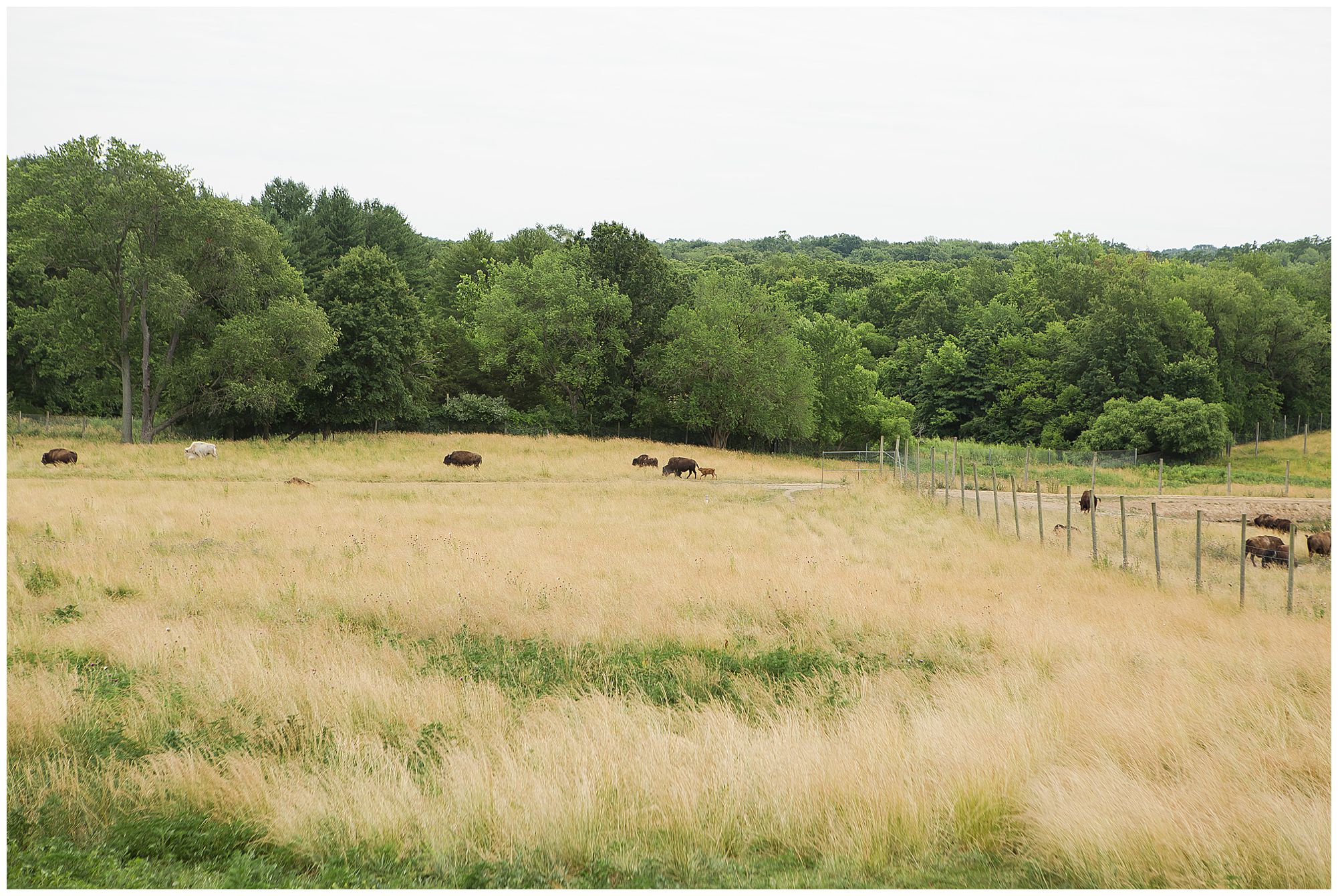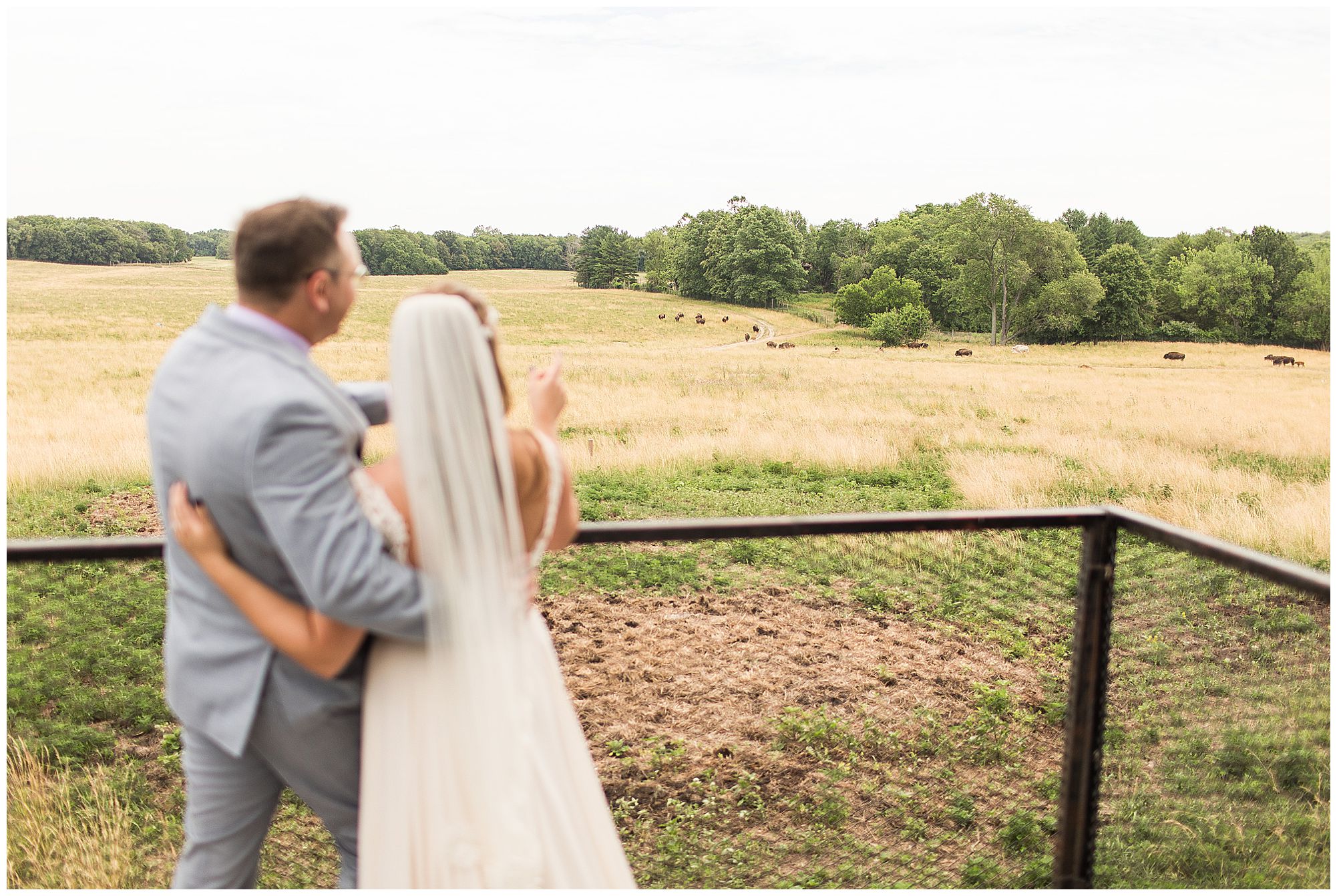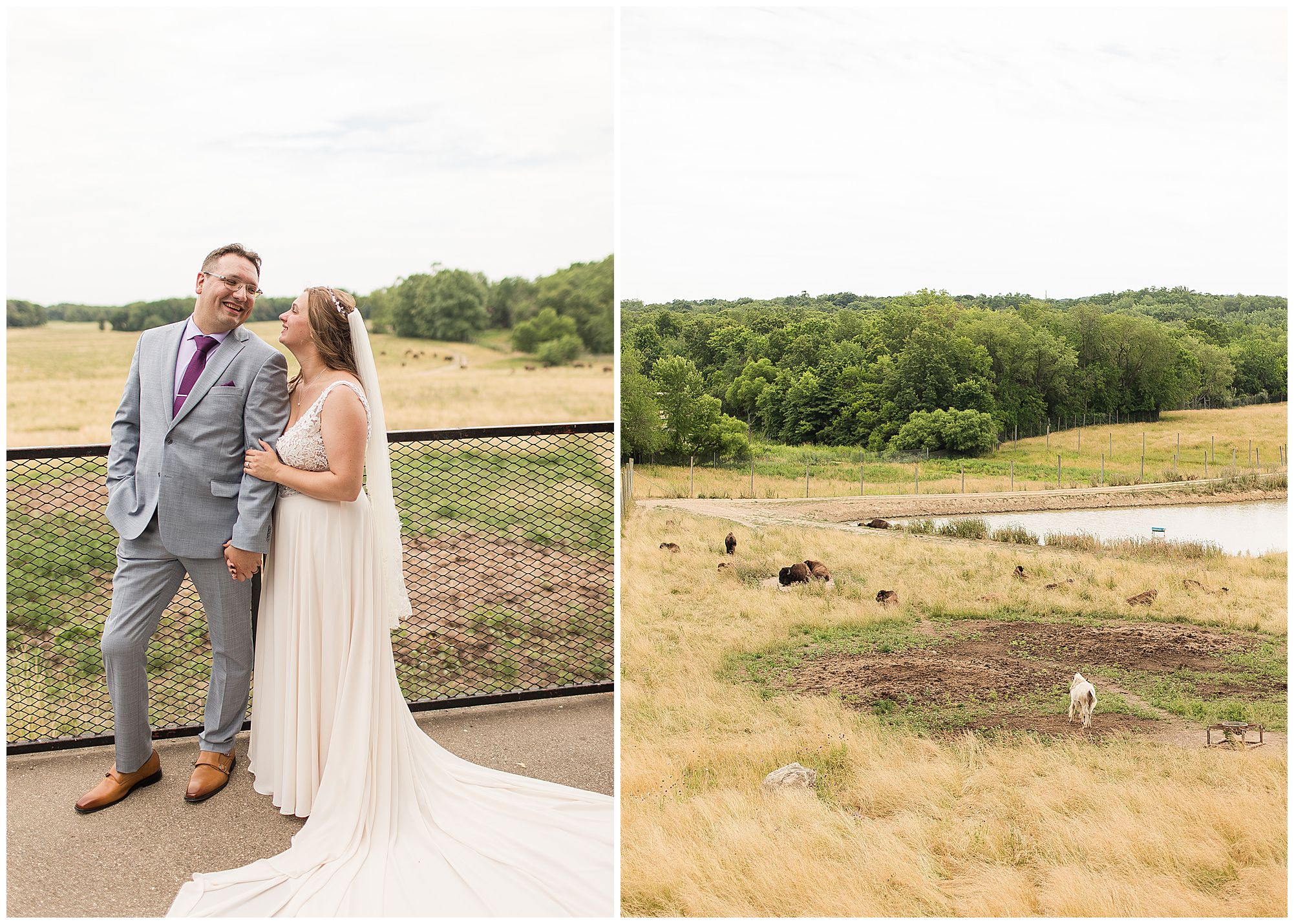 Looking back on Hannah and Don’s lovely summer wedding day at the Wildlife Prairie Park in Hanna City, Illinois I can’t help but think about how deeply in love these two are. So many times we were finished with a photo of this beautiful couple and they were still taking in every moment of their new spouse. Exactly what I love about my job! Their mid-June day was definitely a typical one with HOT weather. Yet, what was unique about this day (and the venue in particular) is the backdrop for this couple and their guests to gaze upon was a rolling pasture with a herd of Bison and Elk. How cool, right?!