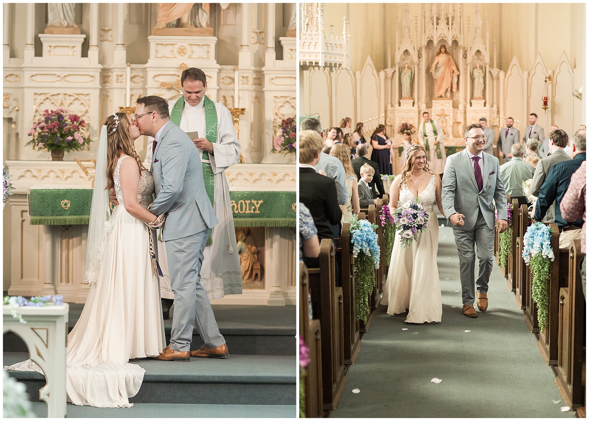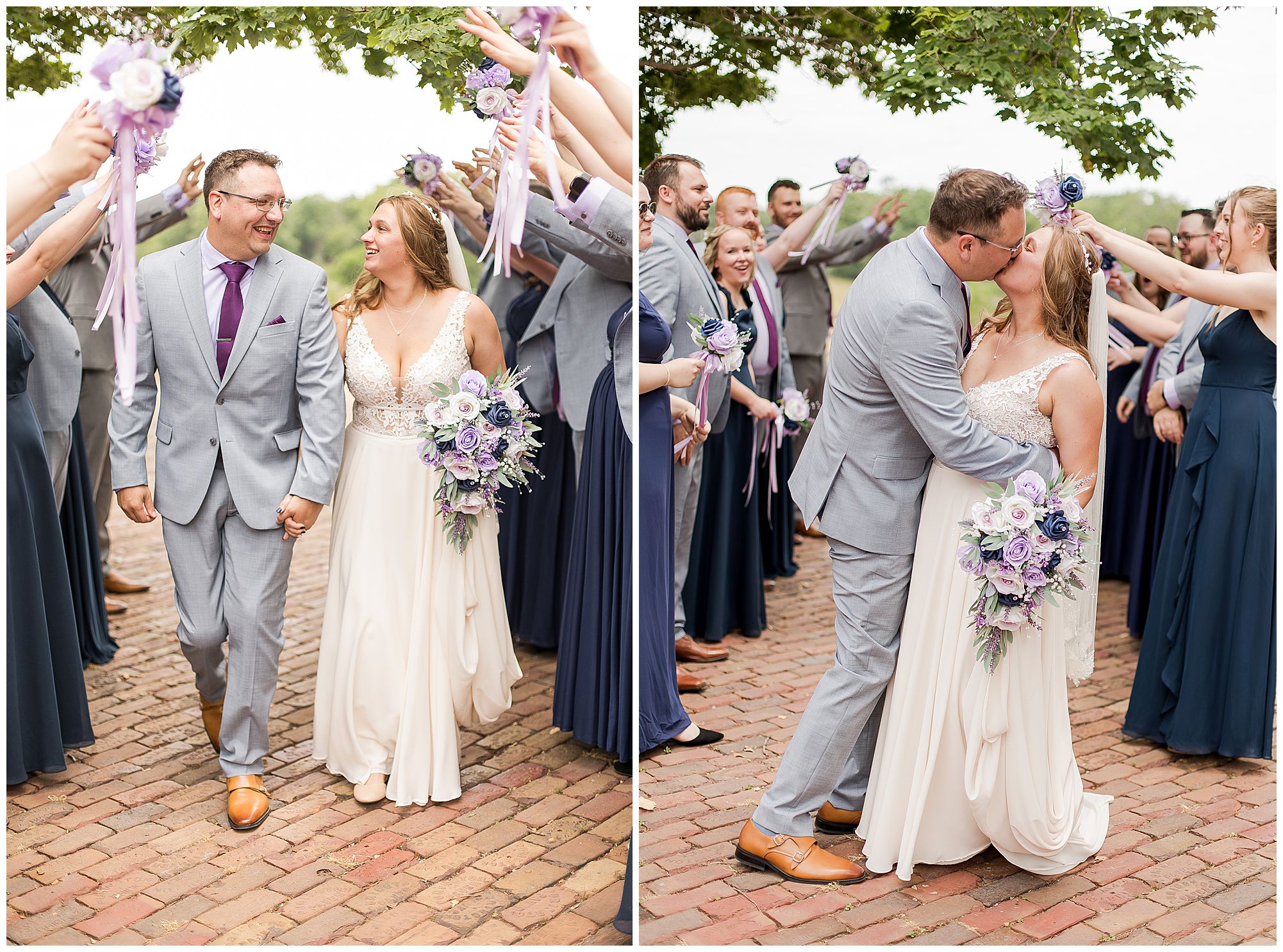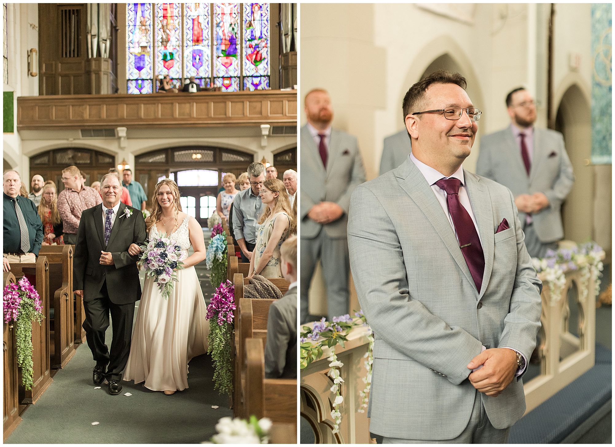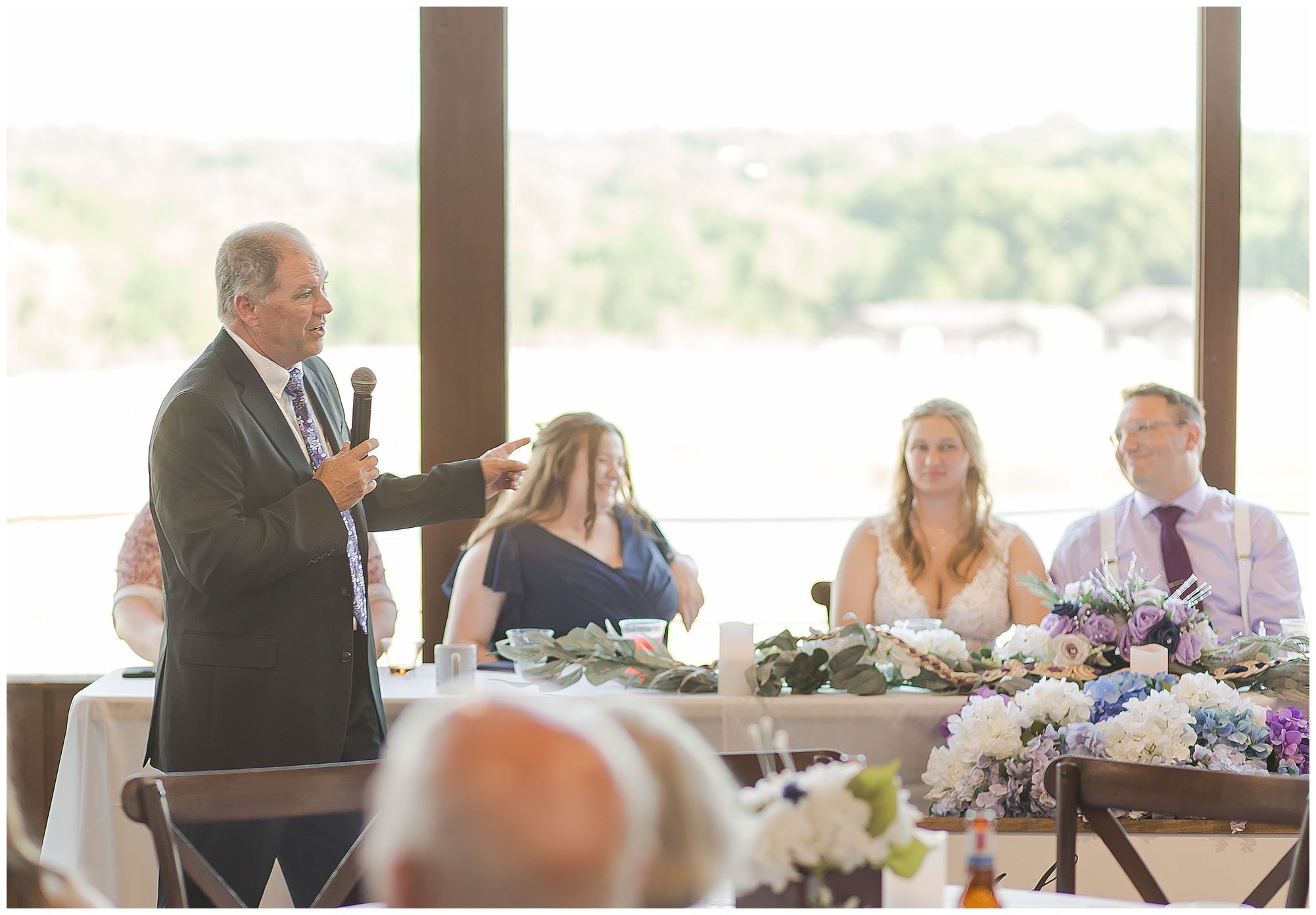 It was then time for bridal party photos with this awesome group of Hannah and Don’s family and friends! They were all polished with the ladies in different styles of navy dresses and the guys in gray suits and purple ties and matching pocket squares. The girls bouquets were delightful blooms of purples, whites, and navy. During this time, we all laughed so hard! Between the guys and their “Don Heads”, the girls giggling as they were side by side, and of course Hannah and Don having the time of their lives sharing such special moments they will never forget. They snuggled in close when it was their turn for their closeups. Though it was toasty outside, they embraced every second. They even took some time to check out the Bison roaming the grounds. But there is still one important thing we need to do…Let’s get these two married! For that, we have to head to the church!
