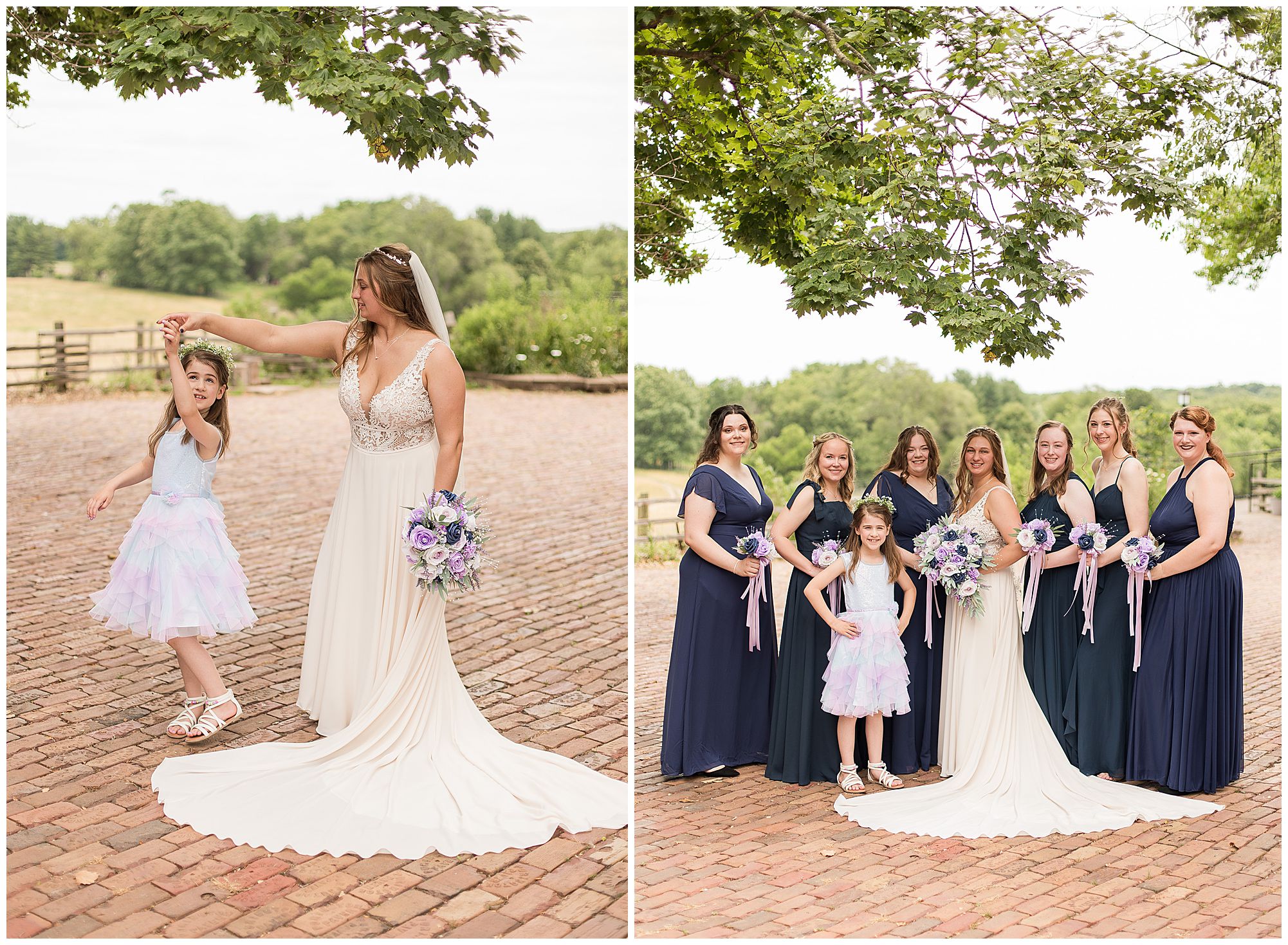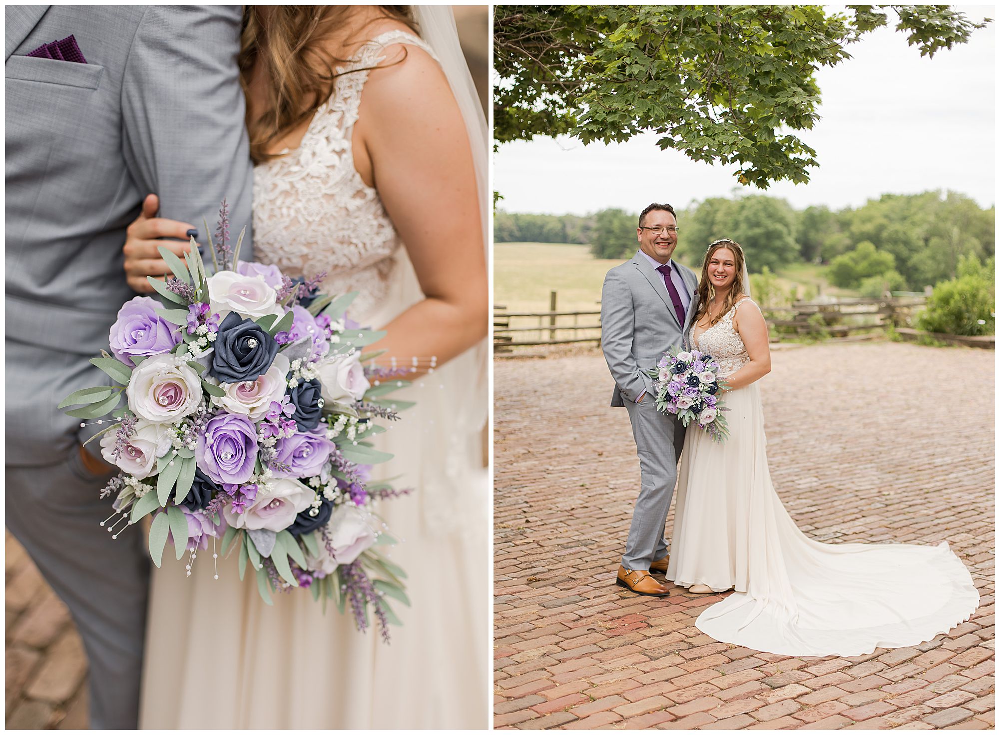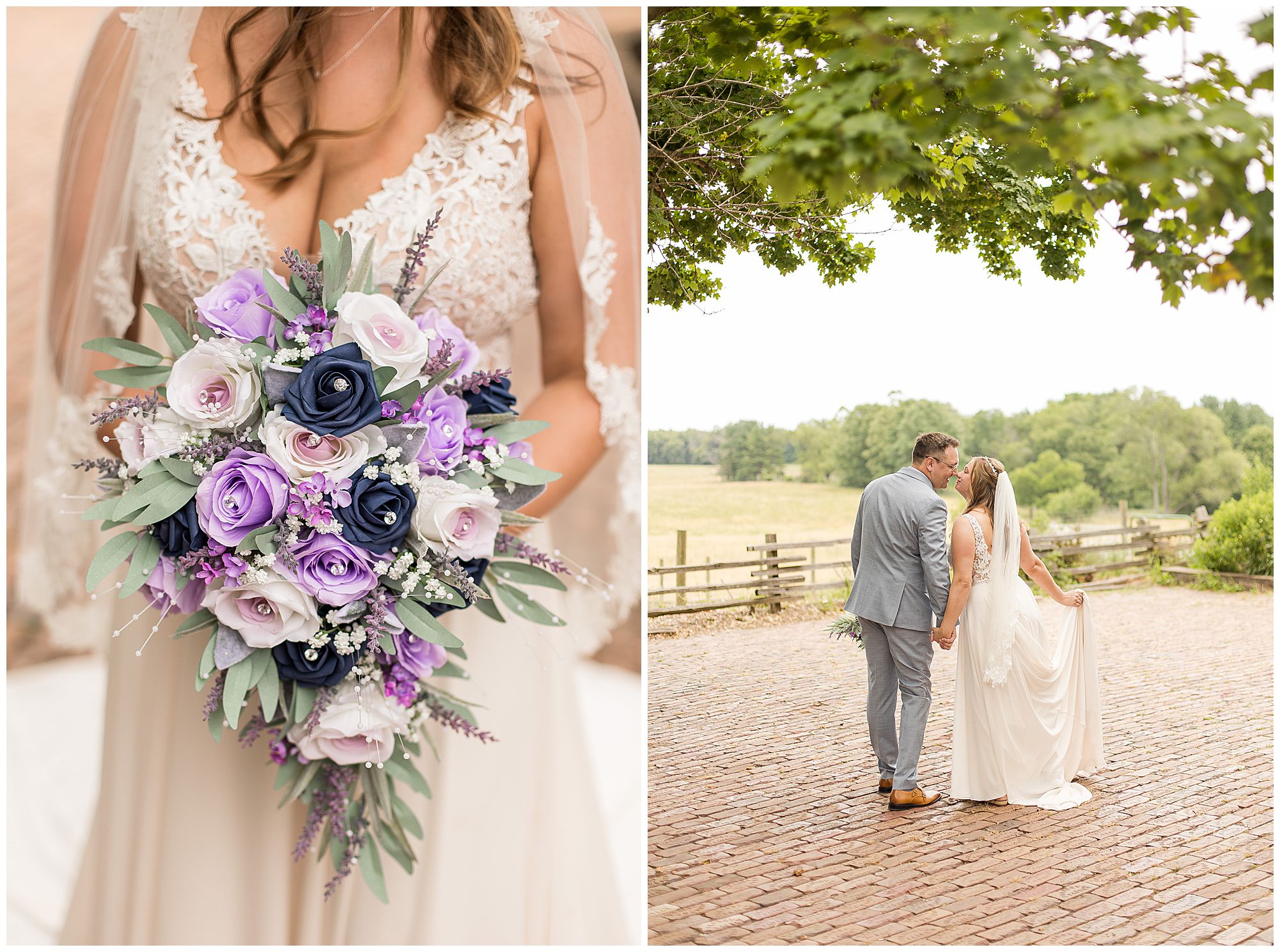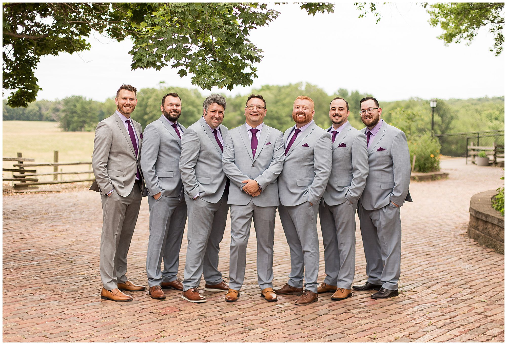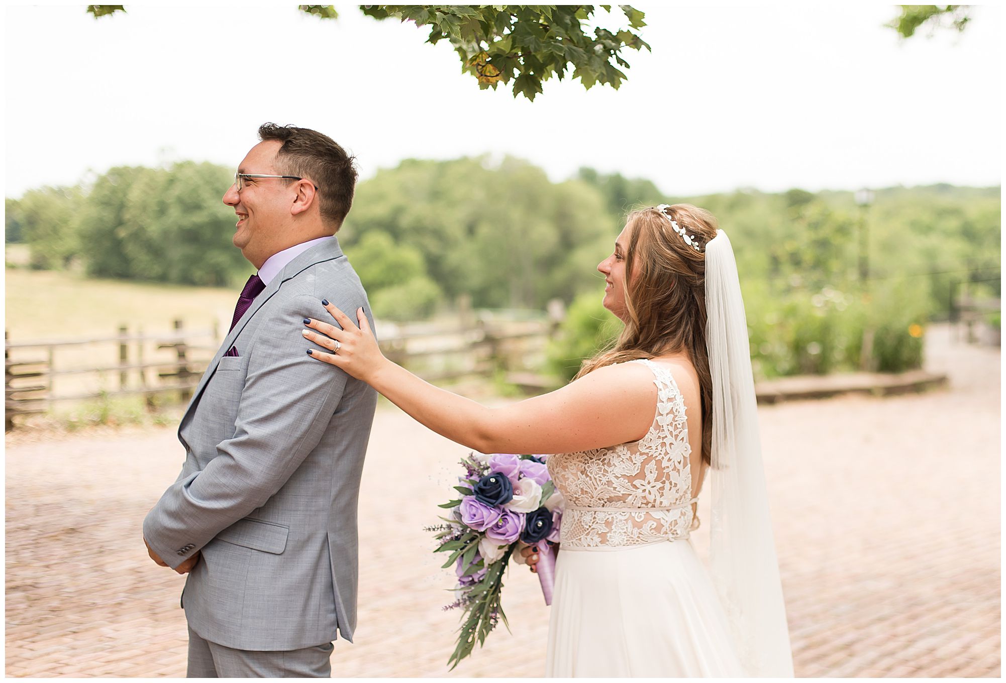 It was then time for bridal party photos with this awesome group of Hannah and Don’s family and friends! They were all polished with the ladies in different styles of navy dresses and the guys in gray suits and purple ties and matching pocket squares. The girls bouquets were delightful blooms of purples, whites, and navy. During this time, we all laughed so hard! Between the guys and their “Don Heads”, the girls giggling as they were side by side, and of course Hannah and Don having the time of their lives sharing such special moments they will never forget. They snuggled in close when it was their turn for their closeups. Though it was toasty outside, they embraced every second. They even took some time to check out the Bison roaming the grounds. But there is still one important thing we need to do…Let’s get these two married! For that, we have to head to the church!