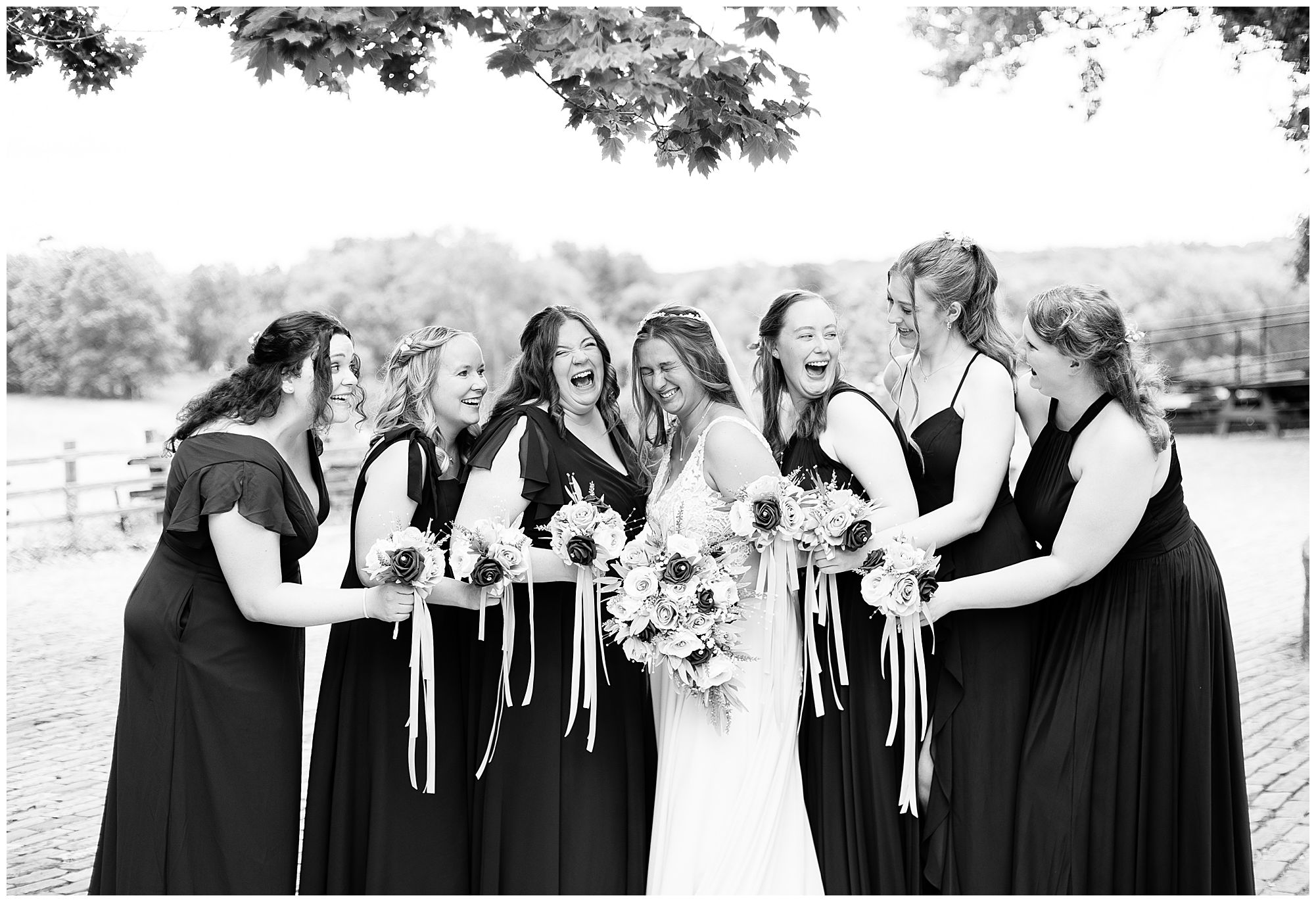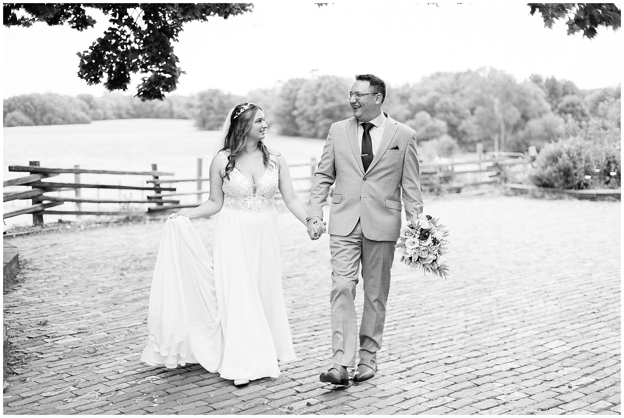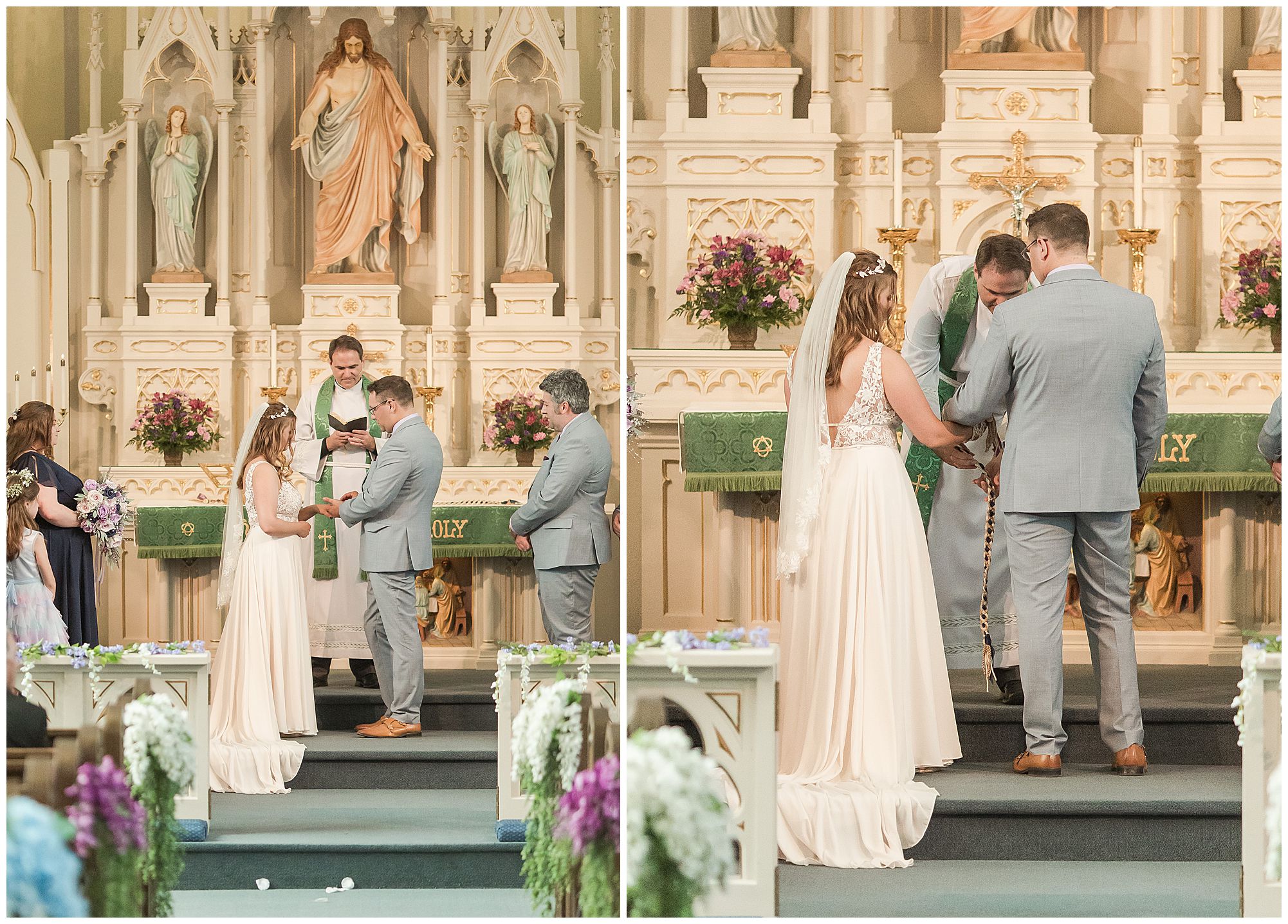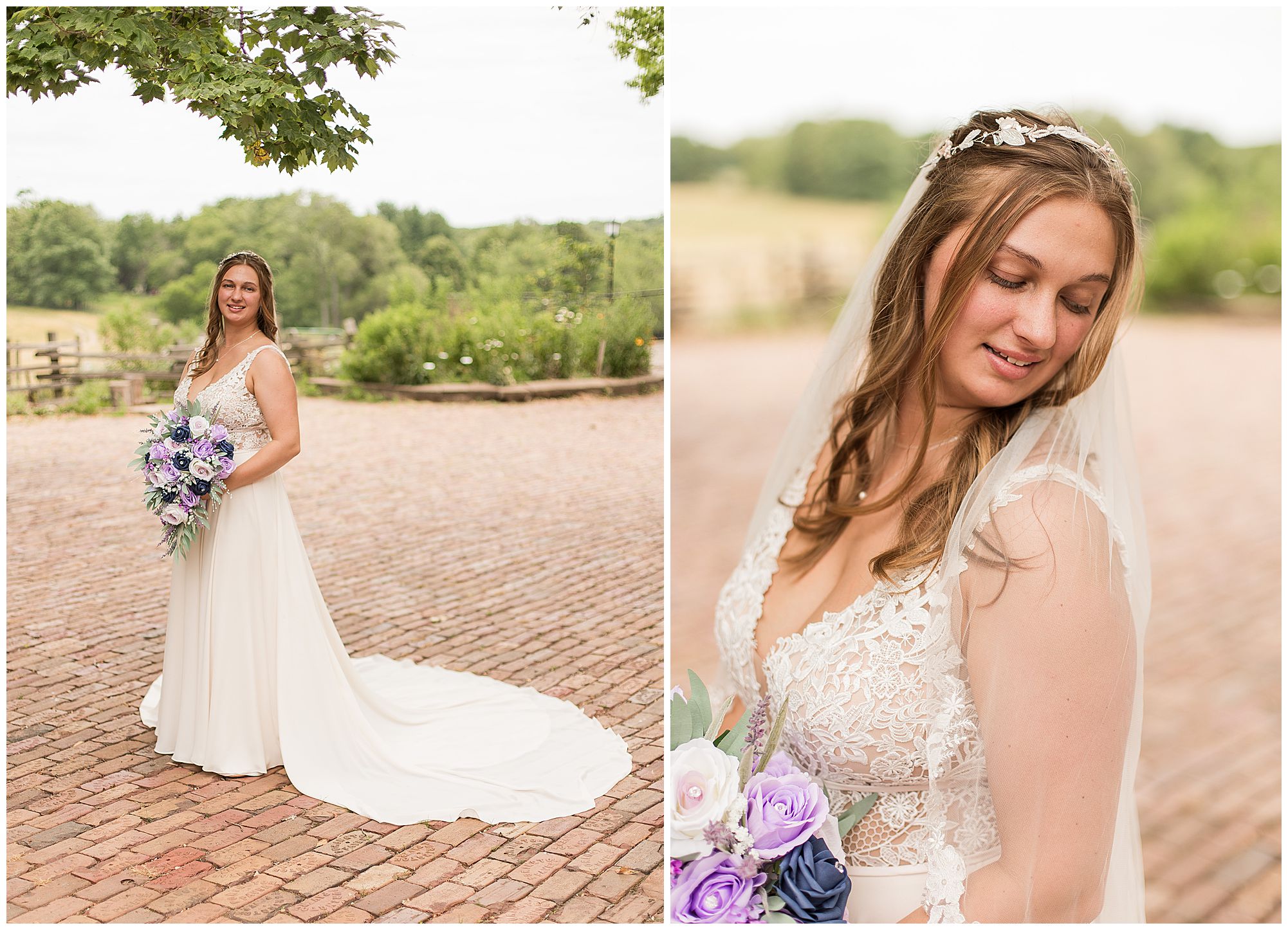 It was then time for bridal party photos with this awesome group of Hannah and Don’s family and friends! They were all polished with the ladies in different styles of navy dresses and the guys in gray suits and purple ties and matching pocket squares. The girls bouquets were delightful blooms of purples, whites, and navy. During this time, we all laughed so hard! Between the guys and their “Don Heads”, the girls giggling as they were side by side, and of course Hannah and Don having the time of their lives sharing such special moments they will never forget. They snuggled in close when it was their turn for their closeups. Though it was toasty outside, they embraced every second. They even took some time to check out the Bison roaming the grounds. But there is still one important thing we need to do…Let’s get these two married! For that, we have to head to the church!