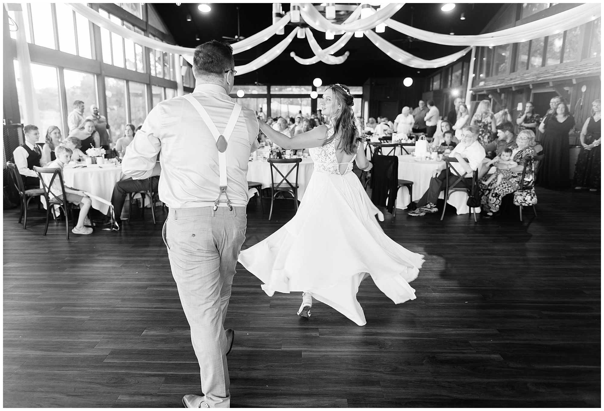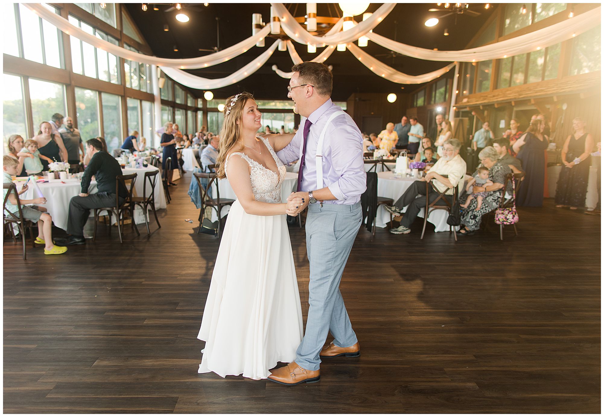 Once these two made it official, we all headed back to Wildlife Prairie Park for the newlyweds to celebrate with their loved ones, many of whom traveled from all across the country. They spent the evening listening to amazing toasts and taking a few spins around the dance floor. If you remember Hannah and Don’s engagement sesh, these two love to swing dance. So they made sure to incorporate this into their first dance! It was stunning! Once the dance floor opened up, I stole Hannah and Don for a few minutes around sunset, even though a few overcast clouds had rolled in. These are some of my favorite moments as it gives these two a chance after a busy day of being the center of attention to be with each other and take the day in. Then it was back to the party to dance the night away! I adore this incredible couple and I’m wishing them continued blessings in their marriage! Cheers to The Merrimans!