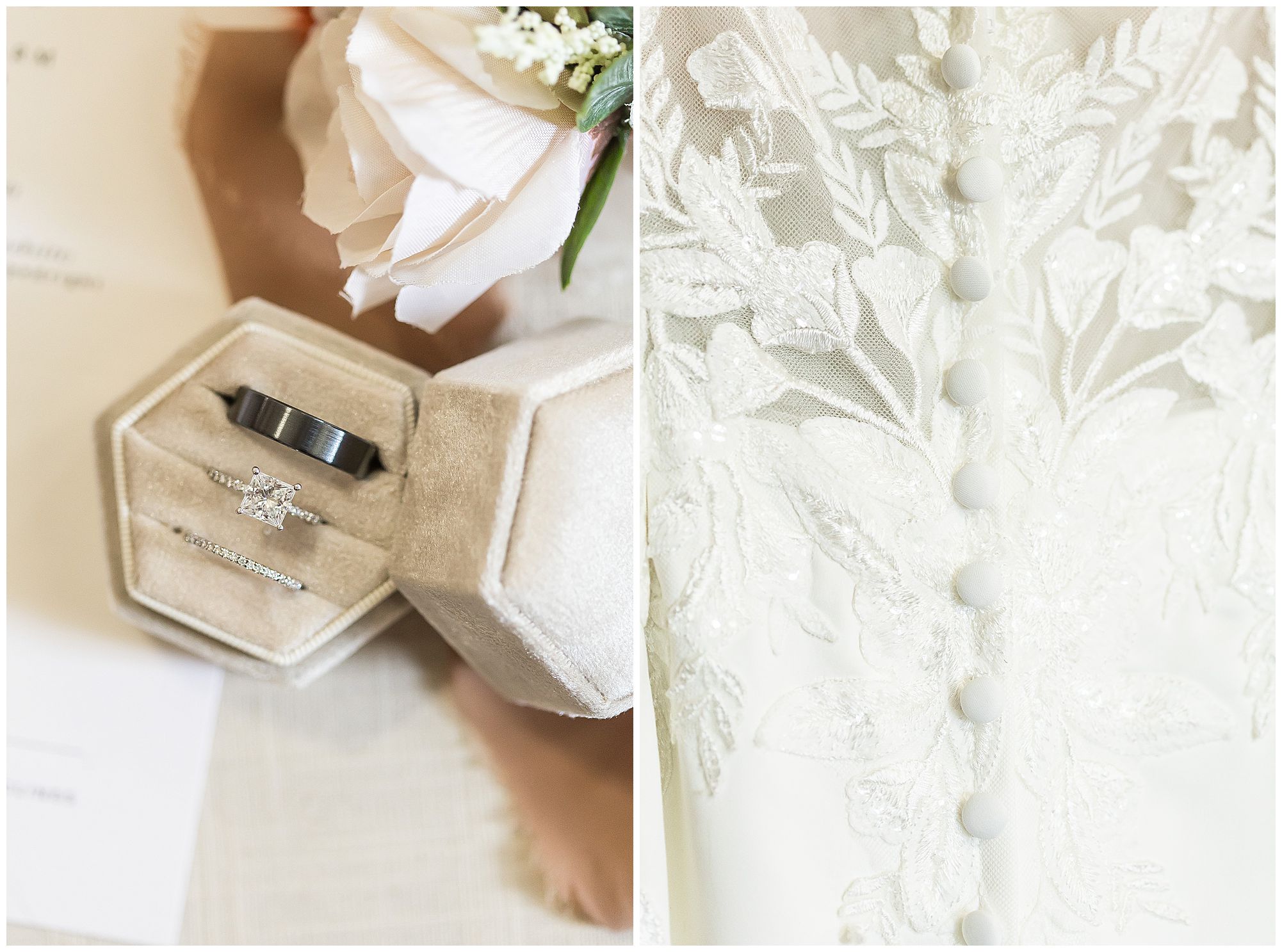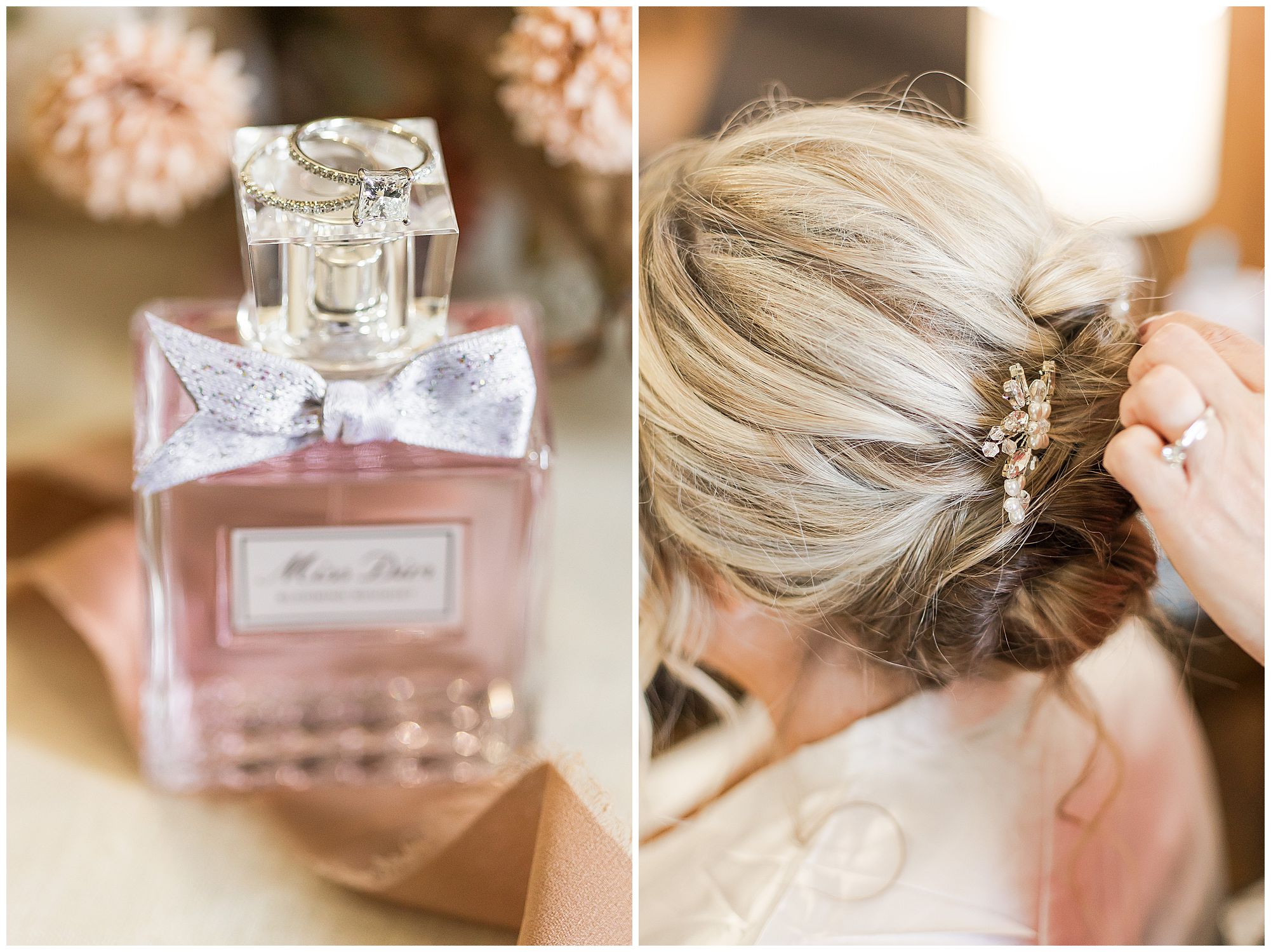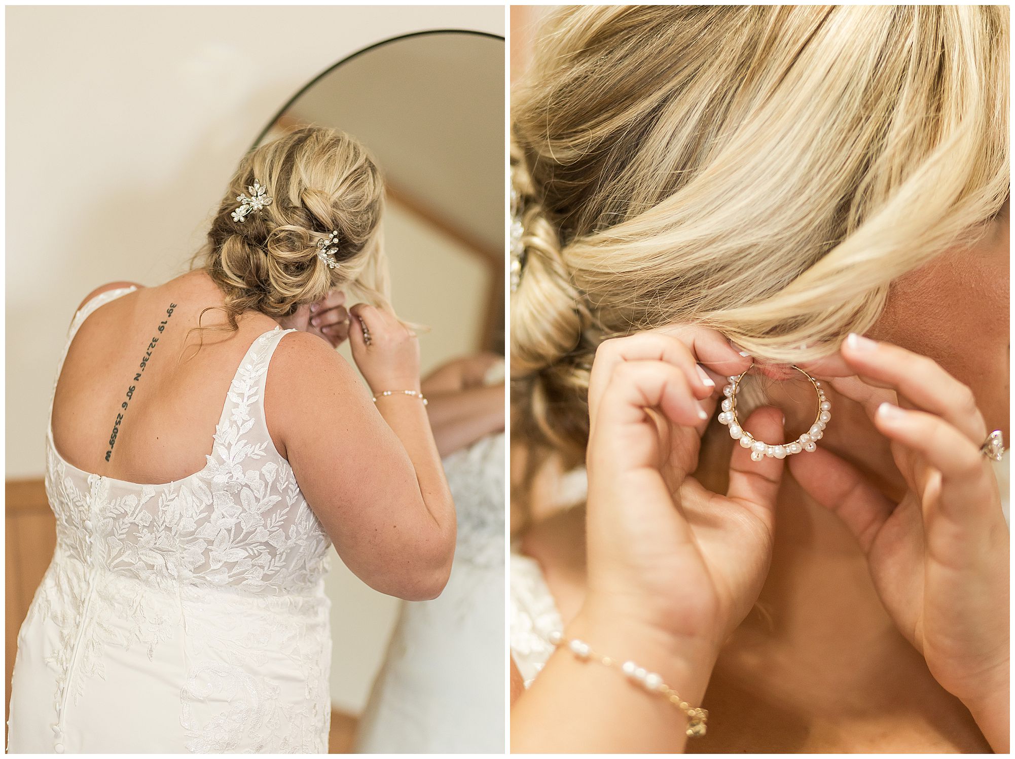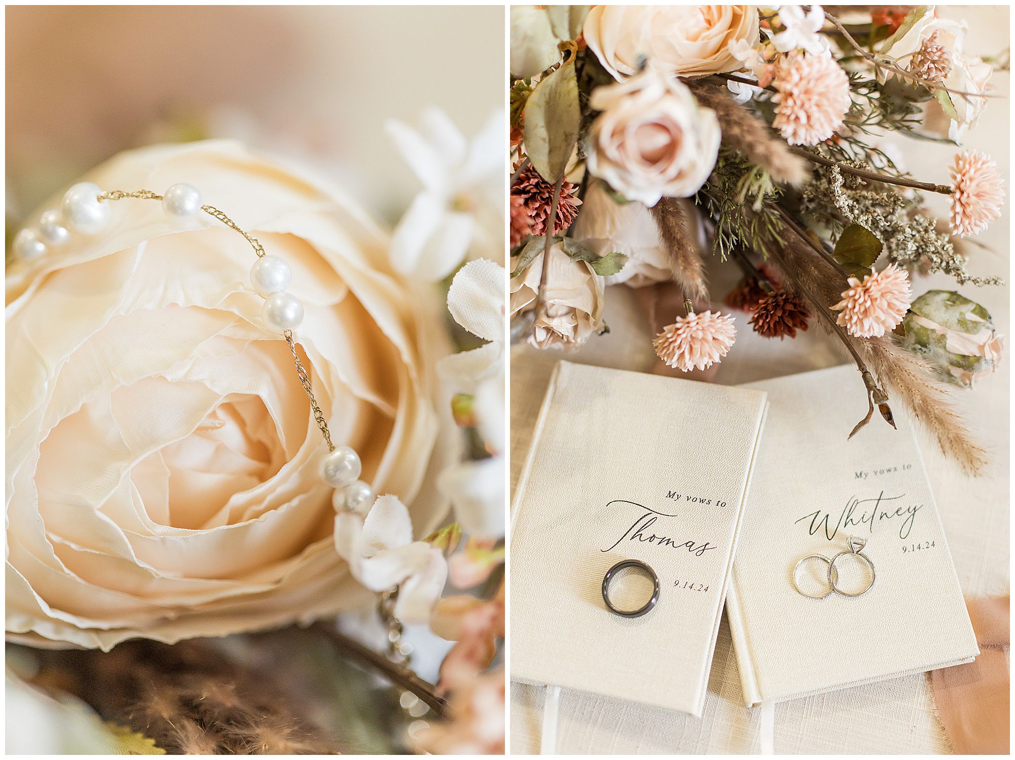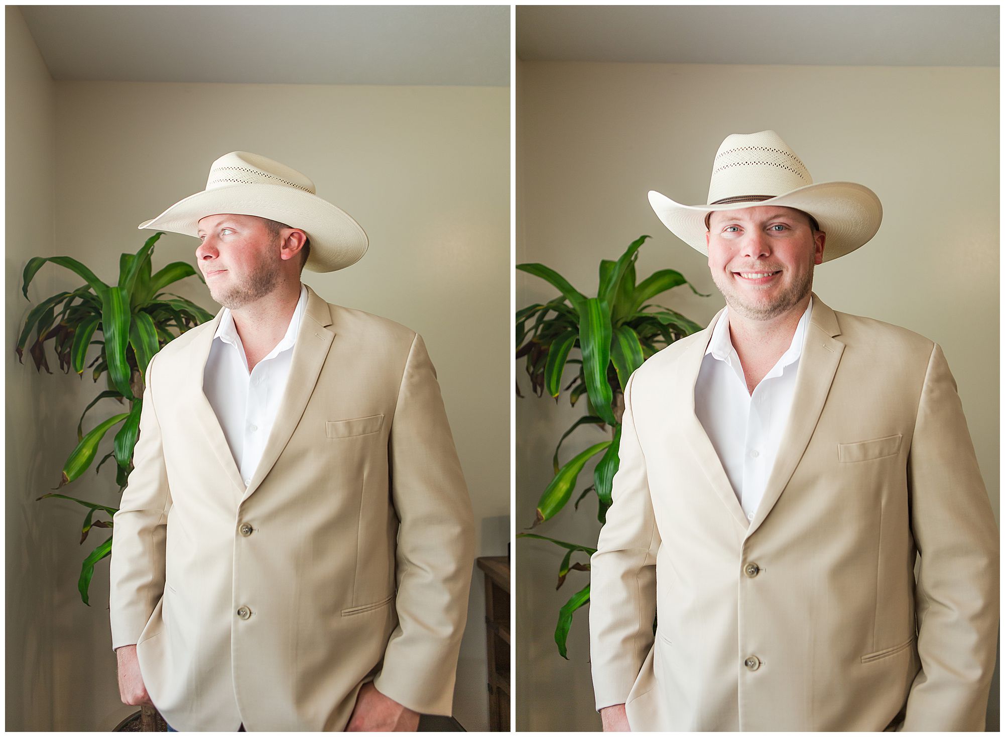 The Baker Family Farm has been part of Whitney’s history since 1883. She and Tommy both live and breathe farming. They help raise the cattle, they know the land for miles around, they each work in the Ag service industry (and are even taking their honeymoon later to an Ag conference!) And one day…The Baker Farm will continue to be worked by Whitney and her family. Which is why it meant so much to her to hold her and Tommy’s nuptials on this farm! Their mid-September wedding day was warmer than predicted, but the sun was out and it was lovely! Whitney and her ladies got ready at her dad’s house right in front of where the ceremony was going to be held, making logistics for the day super easy. The color pallet of burnt orange, tan, and greenery along with lots of fall textures made such a statement when it came time for details and the bridesmaids to get dressed. Whitney also had a first for me with her friend, Teddy, standing in and helping out as an, “Usherette”! Love the coined new term! Then it was time for Whitney to step into her gown and this moment was special. She was beaming with joy as she stood in her lace dress with buttons all the way down the long train. Her ladies assisted her with all the final details before she had a first look with her dad followed by Tommy. Both her dad and her soon-to-be husband grinned from ear to ear when they saw this beautiful bride! Tommy got a little emotional while he and Whitney took some time to read private vows to one another. So sweet! Before we get these two hitched though, they decided to knock out some photos!