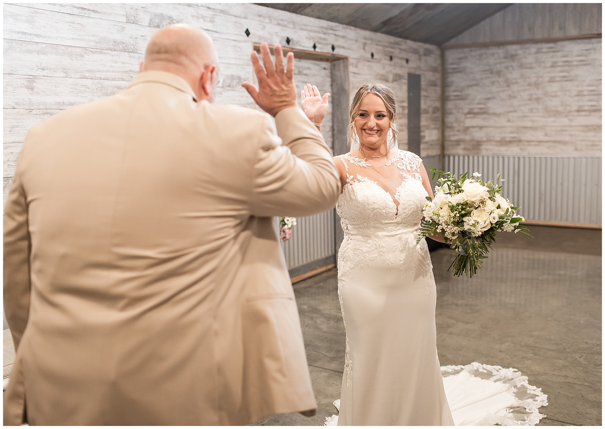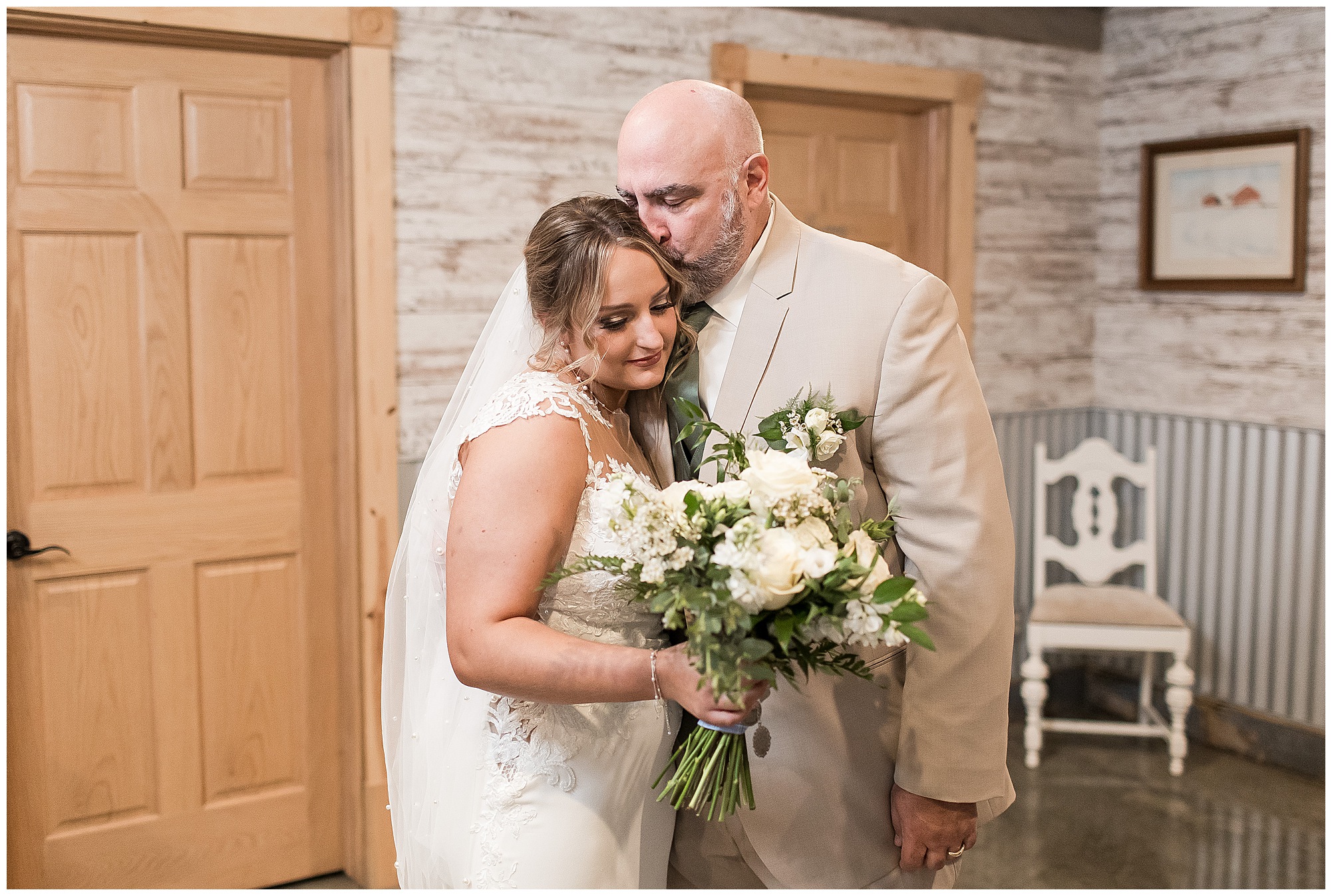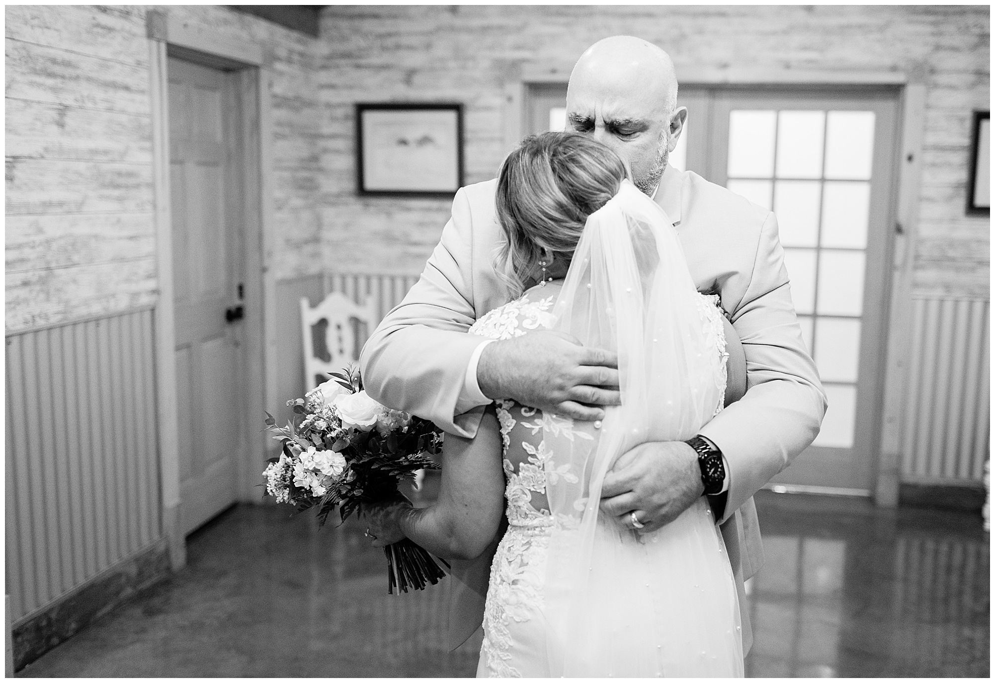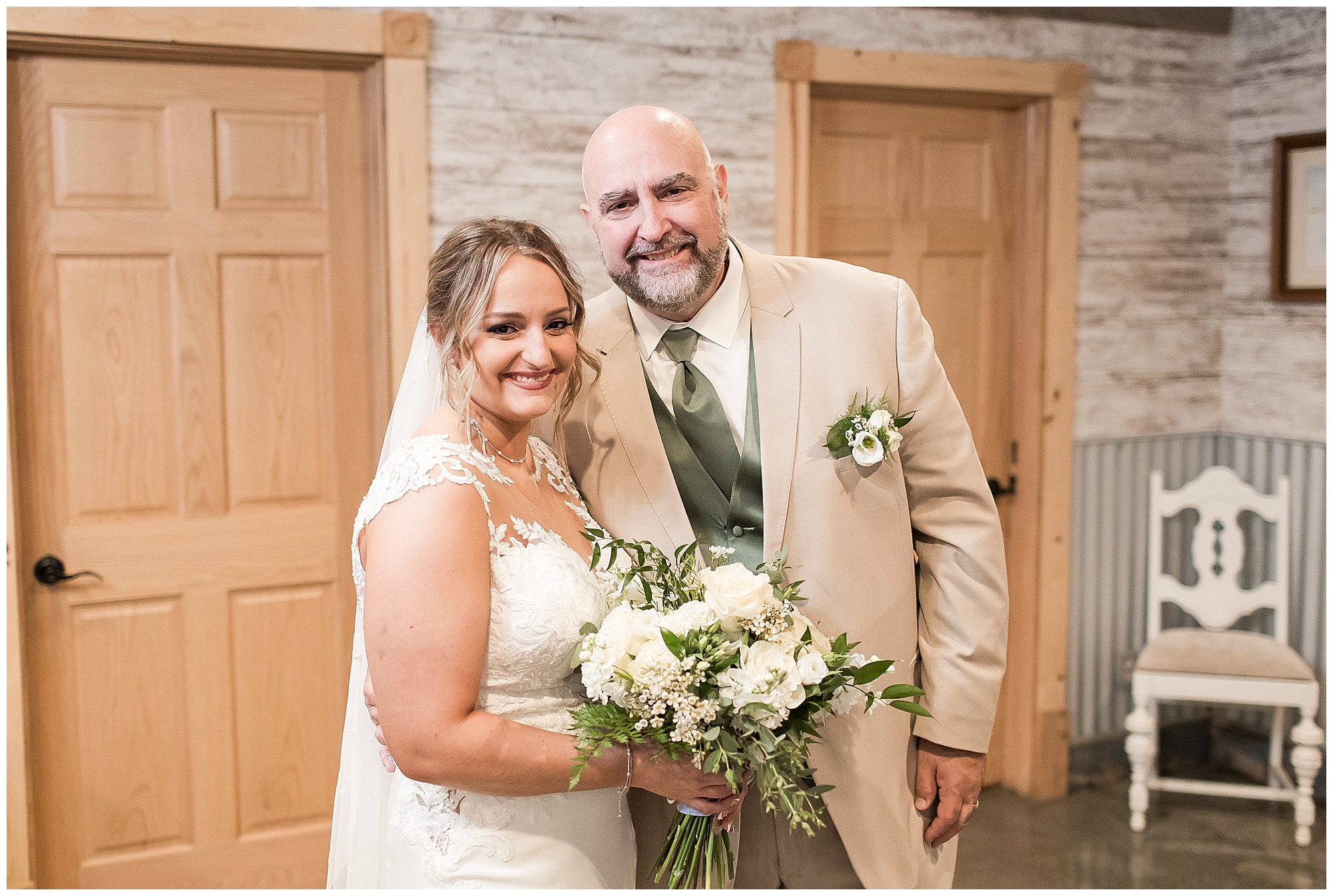 Lucas was cool, calm, and collected in the morning getting ready with all of his guys.They were watching a little college football, enjoying each other’s company, and anticipating what was to come for the day. Lucas and his groomsmen were all donning tan suits. And while the guys all wore sage vests and ties, Lucas sported a matching tan vest and tie, which set him apart. I’m not gonna lie, I loved this look! Christy even gifted Lucas a special pair of socks with her and their dog, Lilly’s faces on them! Hilarious! I took the guys outside as well to have some fun for portrait time. Lucas and his crew were laid back and did an awesome job during photo time. I knew we were going to have a wonderful time with this bridal party once we got everyone together! Once I got Lucas and the boys back inside I had one more task before the ceremony. Christy and her dad were going to have a first look. If I haven’t told you before, I love first looks! But, father/daughter first looks are probably my absolute favorites! What a moment! Christy’s dad, Joe, immediately broke down upon seeing his little girl in her white dress! It was such a lovely part of the day to be a part of. Before we knew it, however, it was time to get Lucas and Christy married!