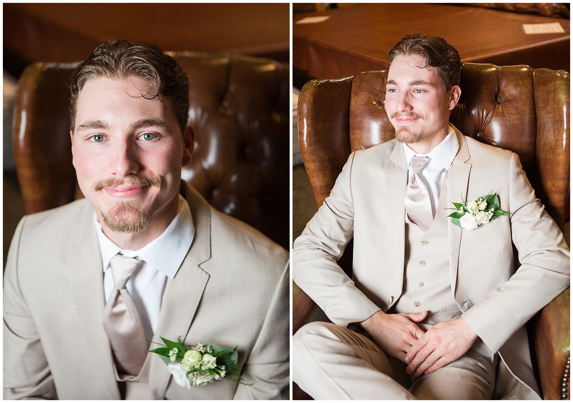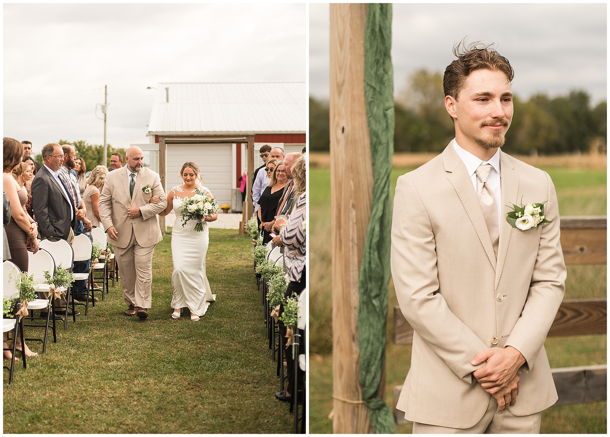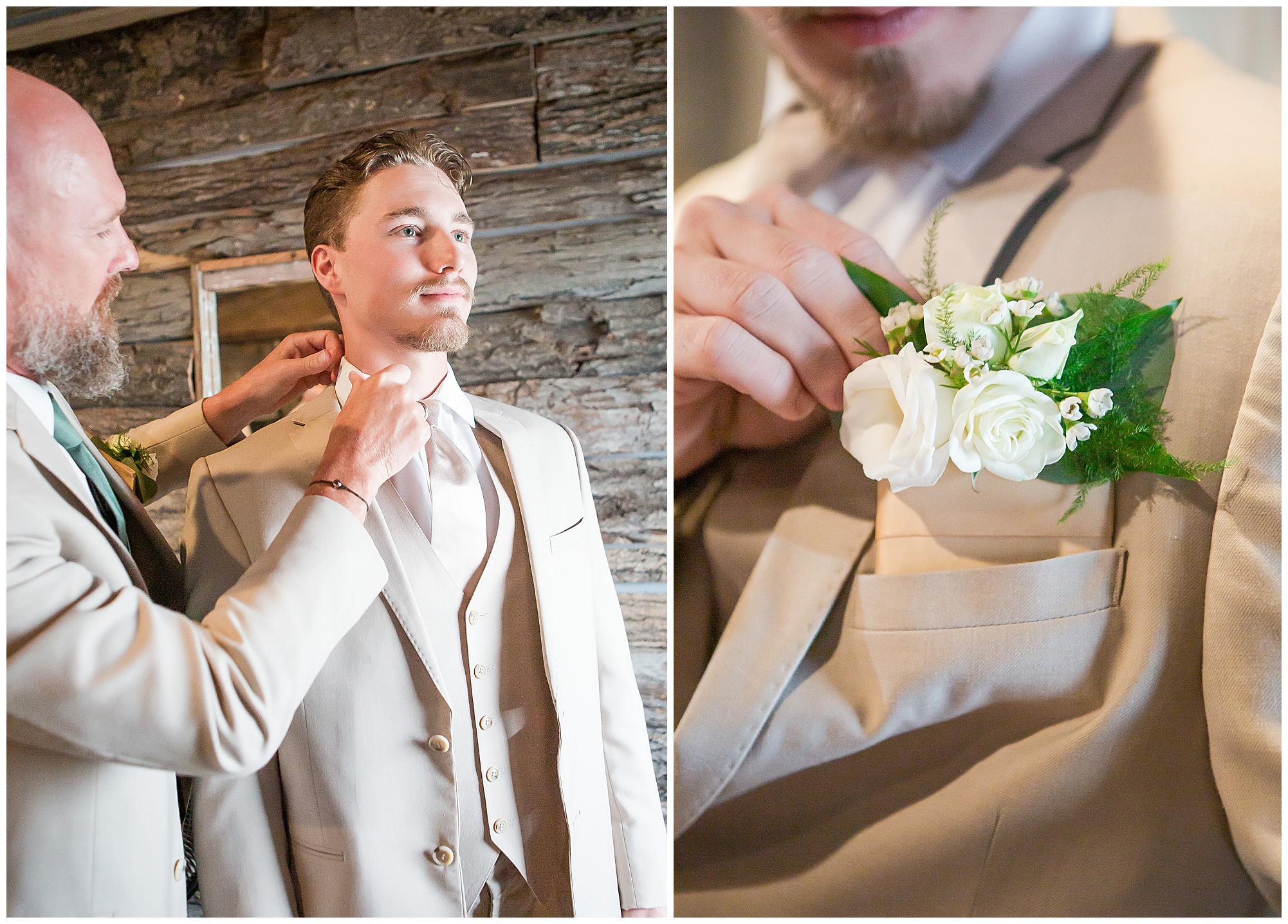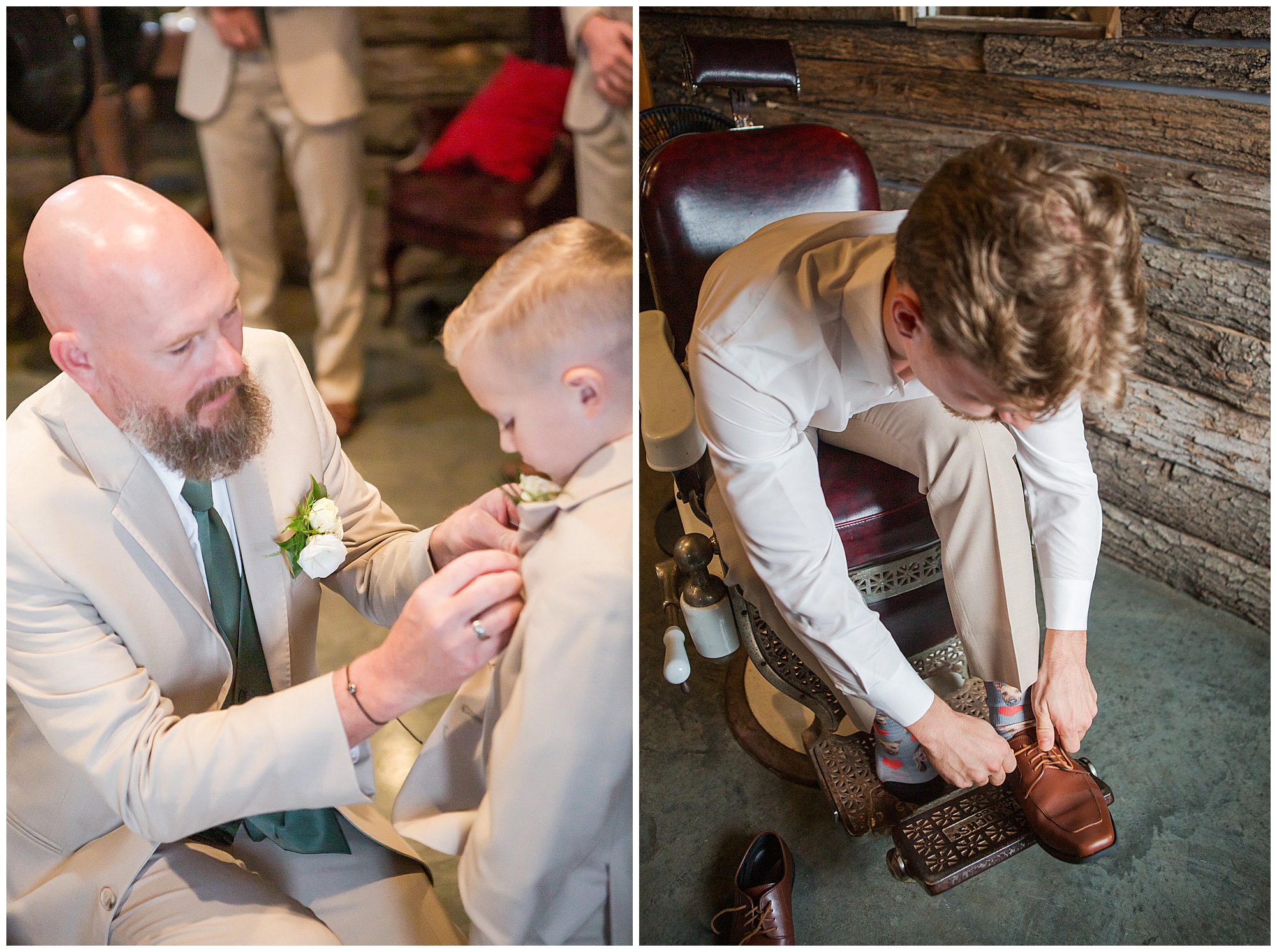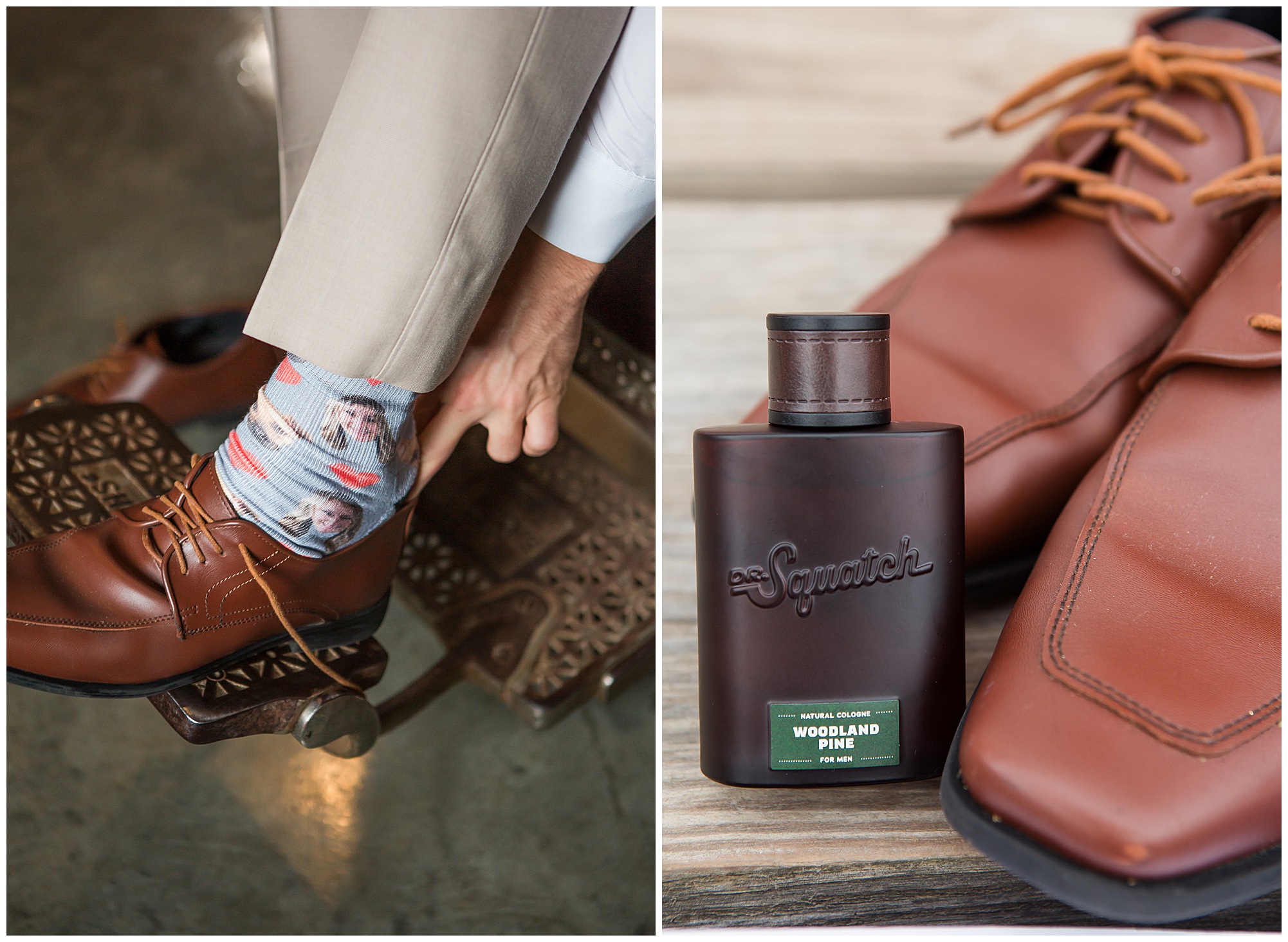 Lucas was cool, calm, and collected in the morning getting ready with all of his guys.They were watching a little college football, enjoying each other’s company, and anticipating what was to come for the day. Lucas and his groomsmen were all donning tan suits. And while the guys all wore sage vests and ties, Lucas sported a matching tan vest and tie, which set him apart. I’m not gonna lie, I loved this look! Christy even gifted Lucas a special pair of socks with her and their dog, Lilly’s faces on them! Hilarious! I took the guys outside as well to have some fun for portrait time. Lucas and his crew were laid back and did an awesome job during photo time. I knew we were going to have a wonderful time with this bridal party once we got everyone together! Once I got Lucas and the boys back inside I had one more task before the ceremony. Christy and her dad were going to have a first look. If I haven’t told you before, I love first looks! But, father/daughter first looks are probably my absolute favorites! What a moment! Christy’s dad, Joe, immediately broke down upon seeing his little girl in her white dress! It was such a lovely part of the day to be a part of. Before we knew it, however, it was time to get Lucas and Christy married!