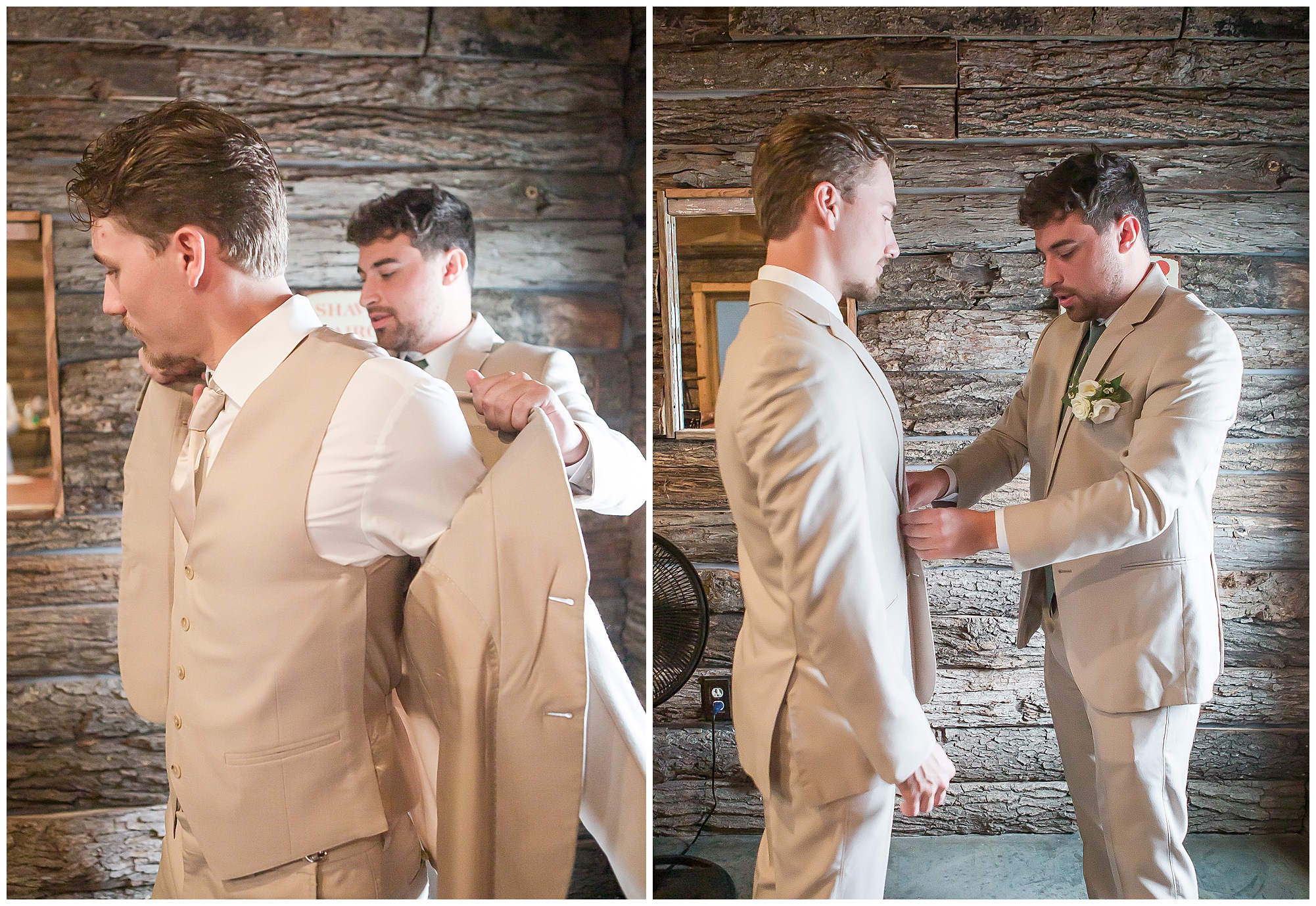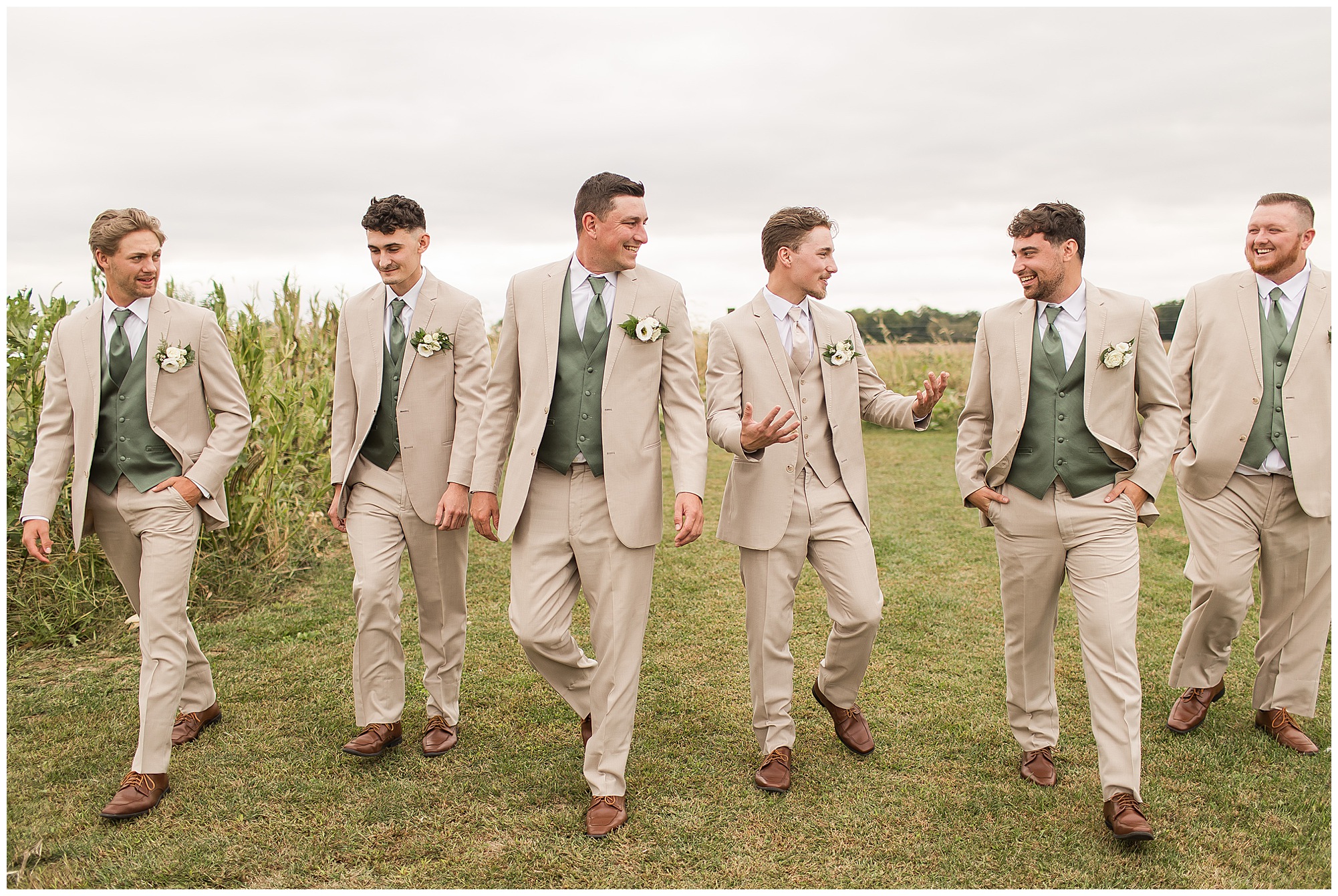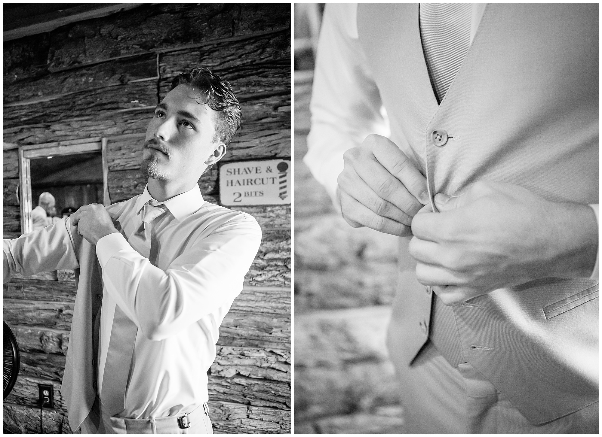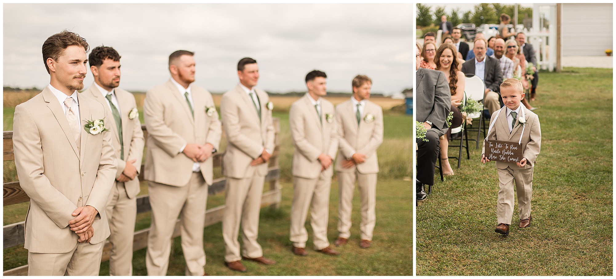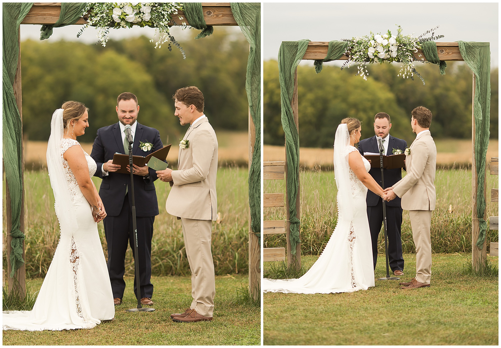 Lucas was cool, calm, and collected in the morning getting ready with all of his guys.They were watching a little college football, enjoying each other’s company, and anticipating what was to come for the day. Lucas and his groomsmen were all donning tan suits. And while the guys all wore sage vests and ties, Lucas sported a matching tan vest and tie, which set him apart. I’m not gonna lie, I loved this look! Christy even gifted Lucas a special pair of socks with her and their dog, Lilly’s faces on them! Hilarious! I took the guys outside as well to have some fun for portrait time. Lucas and his crew were laid back and did an awesome job during photo time. I knew we were going to have a wonderful time with this bridal party once we got everyone together! Once I got Lucas and the boys back inside I had one more task before the ceremony. Christy and her dad were going to have a first look. If I haven’t told you before, I love first looks! But, father/daughter first looks are probably my absolute favorites! What a moment! Christy’s dad, Joe, immediately broke down upon seeing his little girl in her white dress! It was such a lovely part of the day to be a part of. Before we knew it, however, it was time to get Lucas and Christy married!