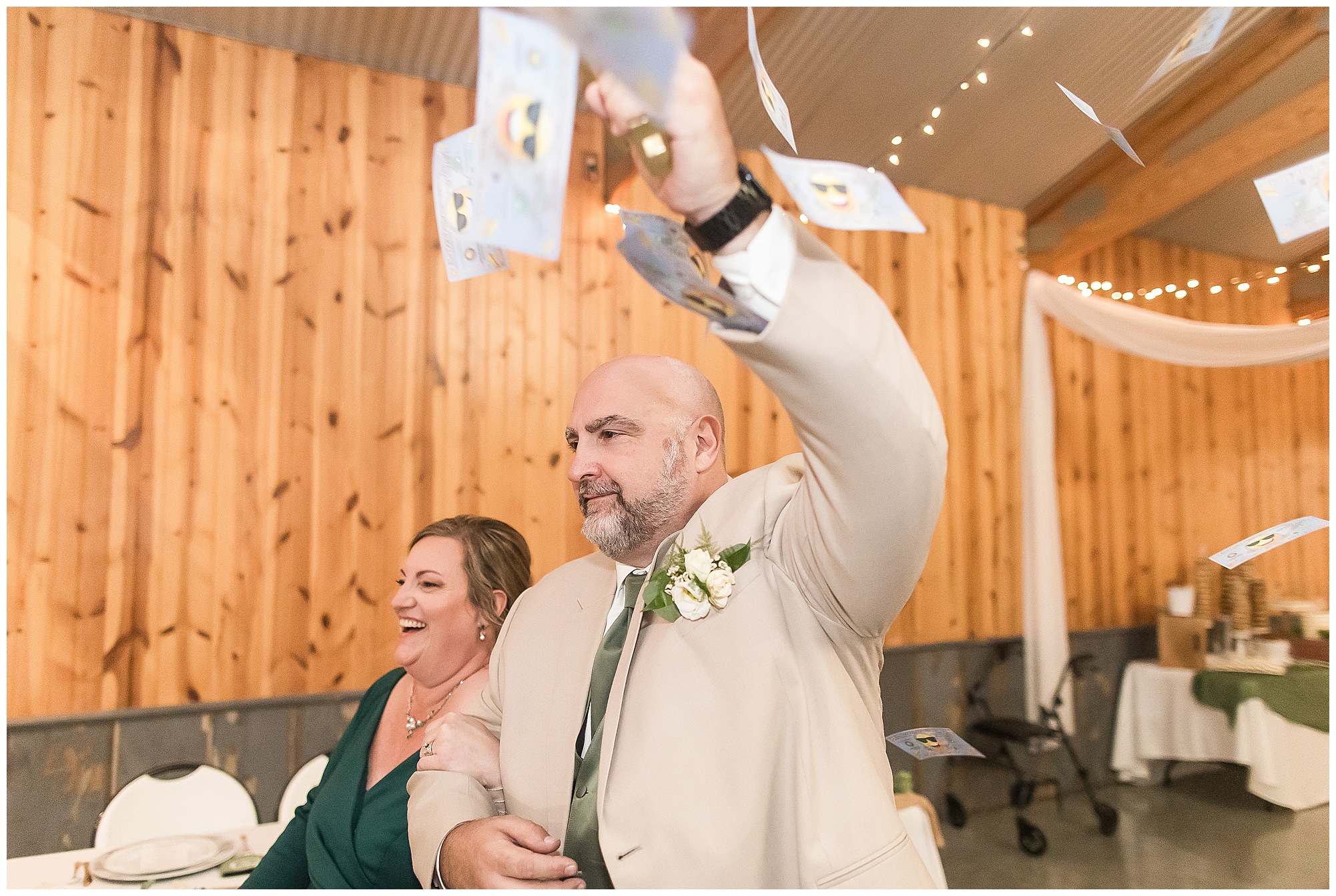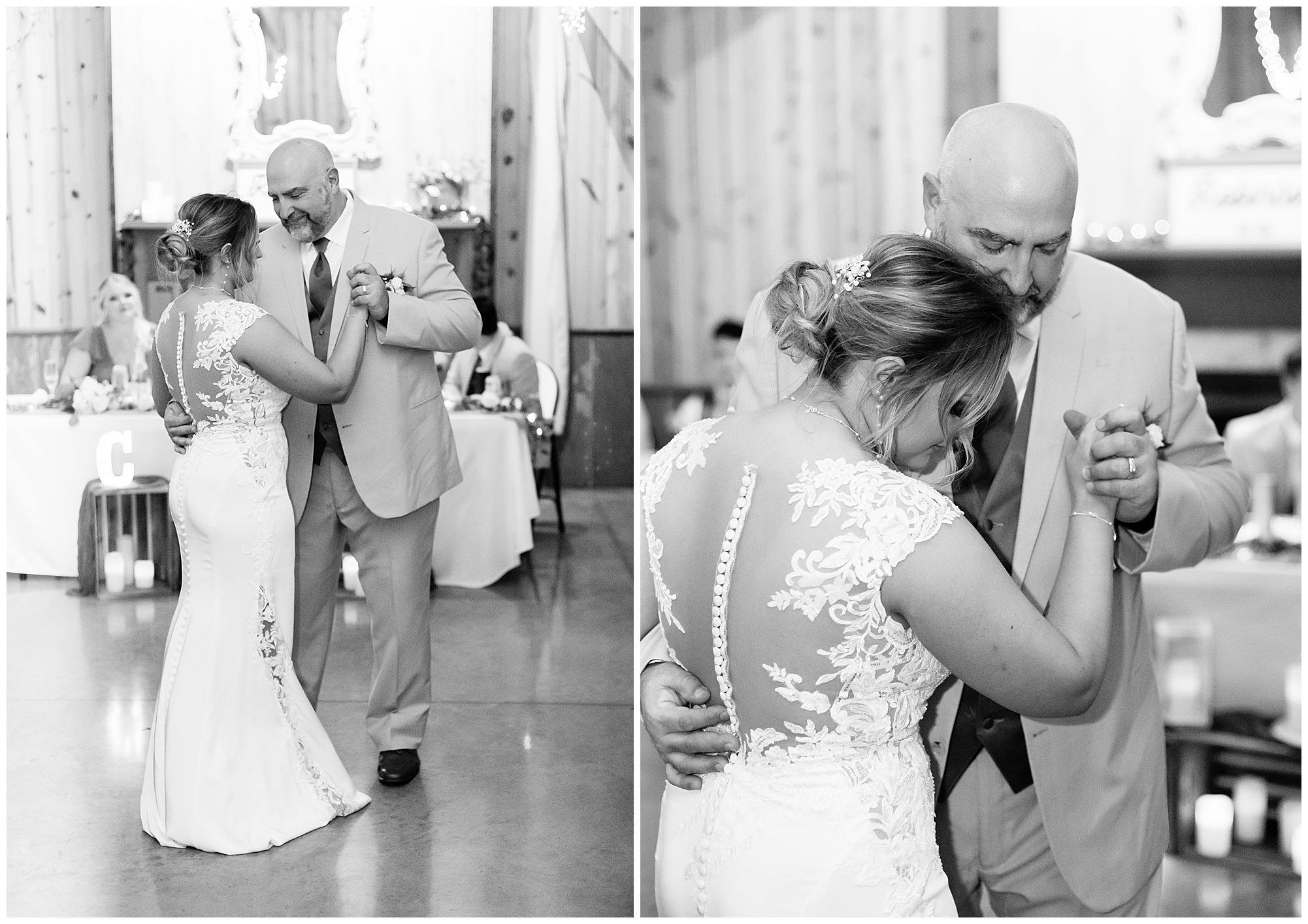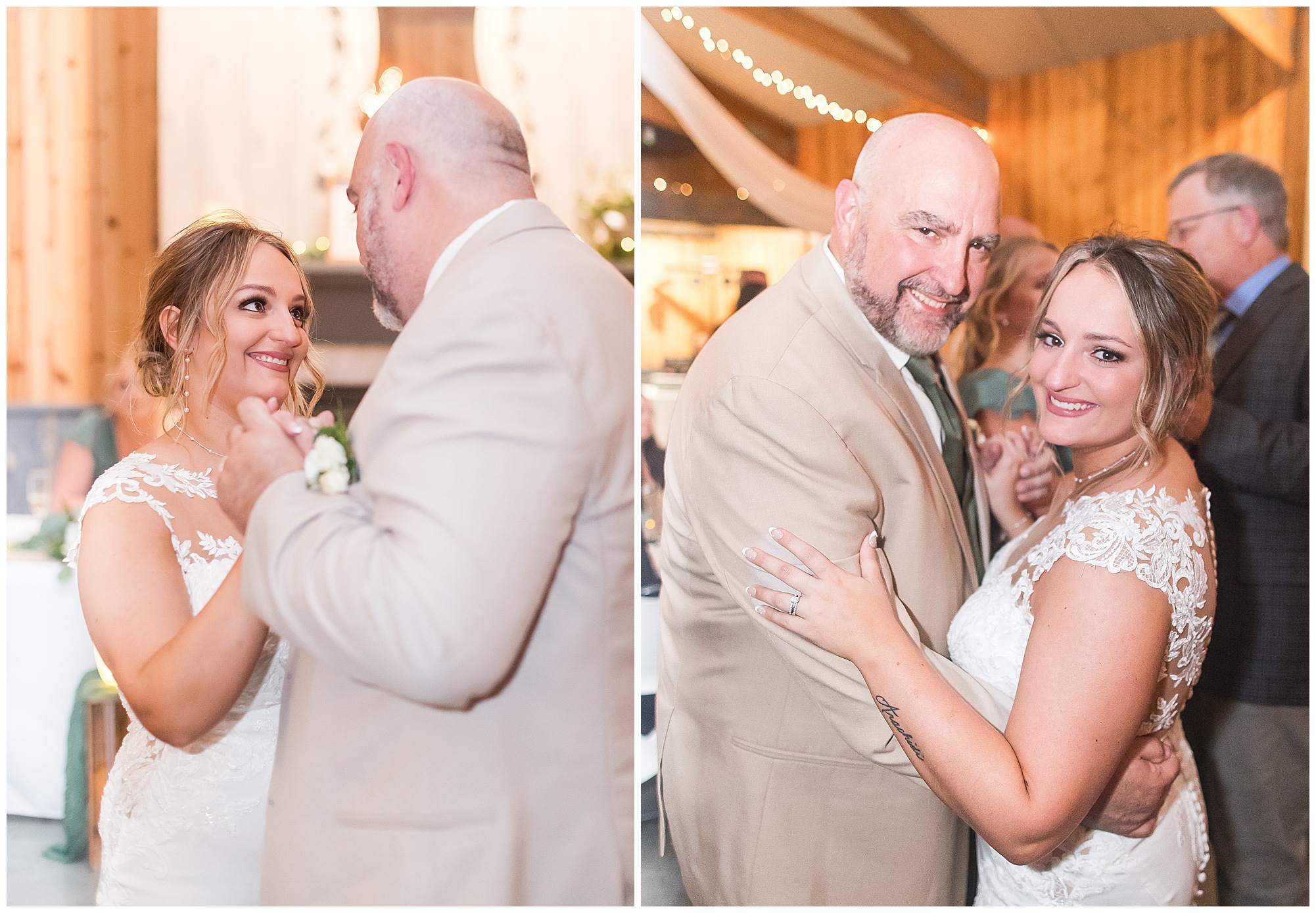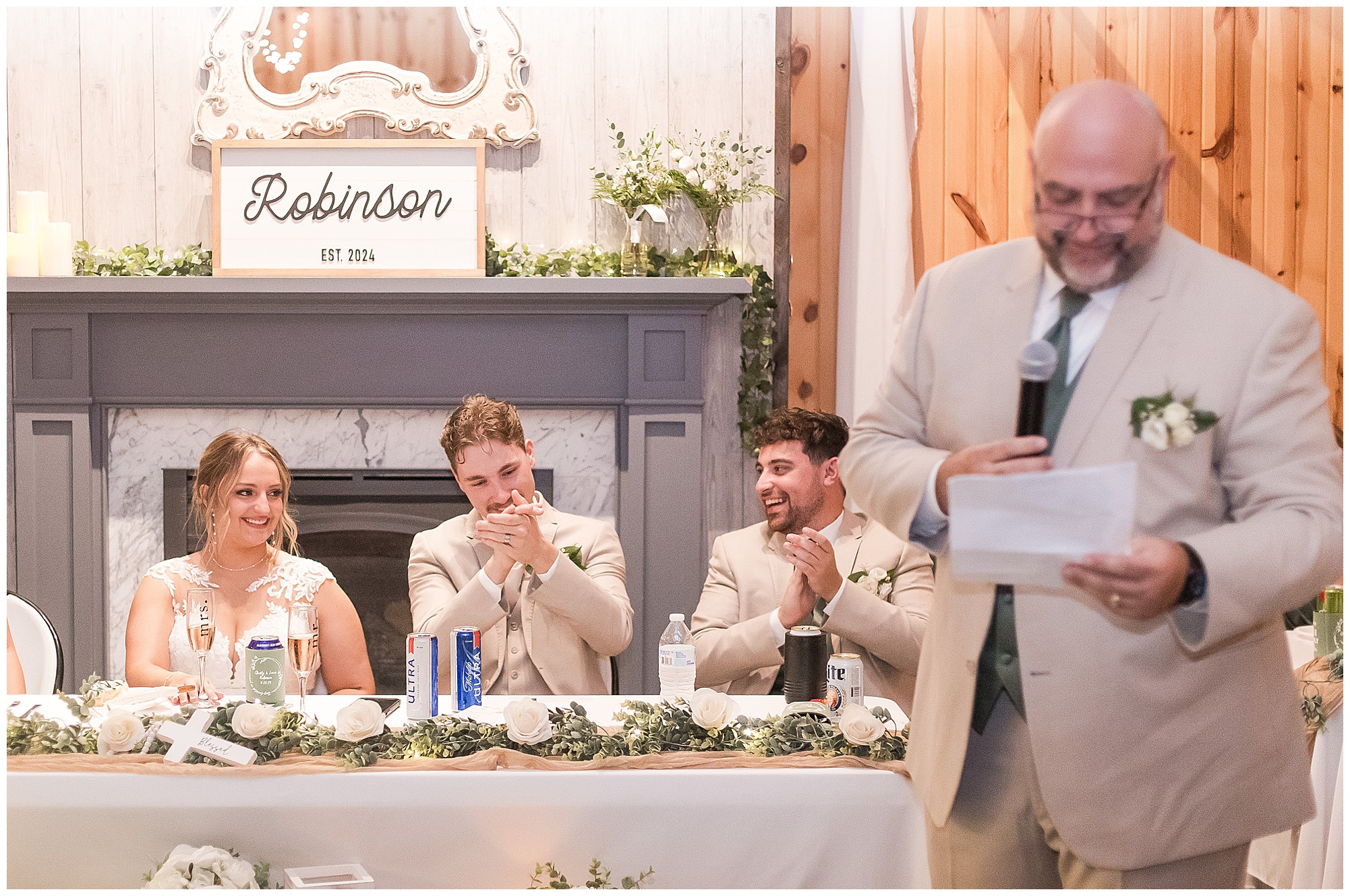 The reception was beginning and it was charming with classy touches of sage, white florals and linens. Candle light, lanterns, greenery, and wooden elements brought the rustic feel of the venue together with the elegant feel of the day. The bride and groom were honored with a few wonderful toasts from the best man, maid of honor, and the father of the bride. Now there was a bet going around, I heard, on how quickly it would take Christy’s dad to start crying once he began his speech. I believe the over/under was 7 seconds. He was happy to report…He won the bet and beat the time! The bride and groom shared their first dance before I snuck them back outside for a few more photos and our fingers all crossed that the sun would pop back out at the end of the day. Spoiler alert…We did not get our wish, even though we were all praying pretty hard for some golden glow from the sun. However, just a few more incredible moments with this lovely couple as husband and wife was enough for me! We went back in for the party to continue into the night! Cheers to Mr. & Mrs. Robinson!