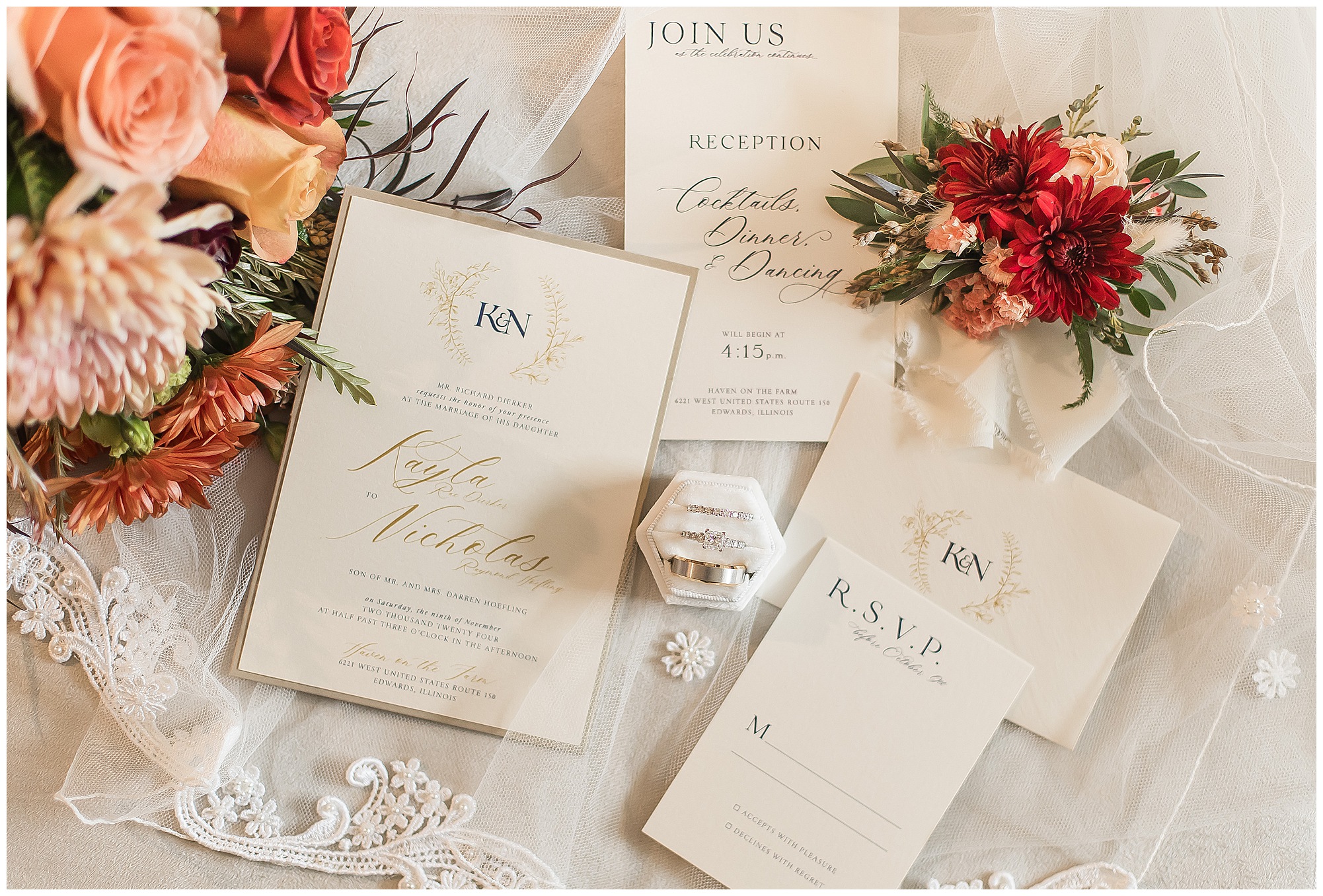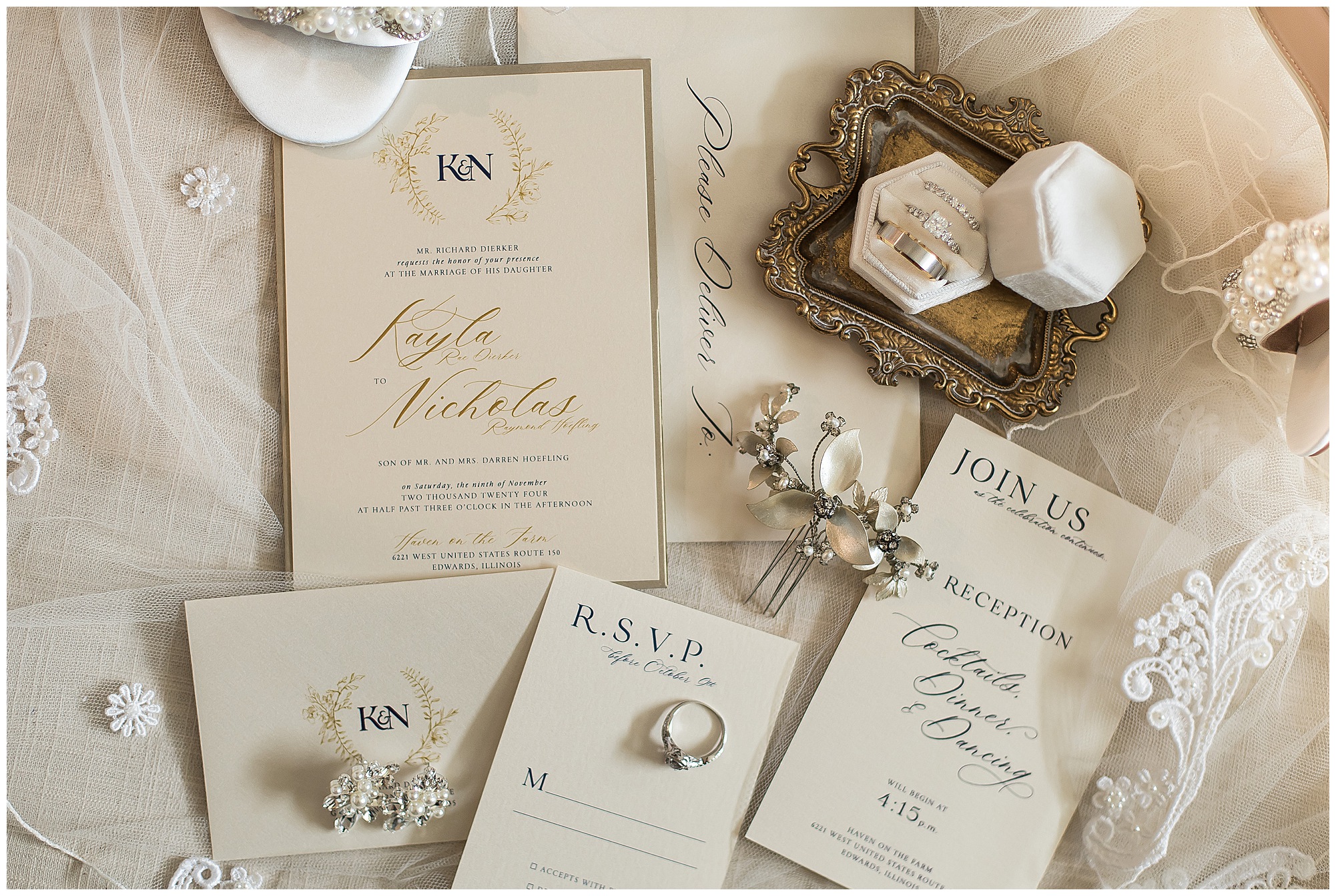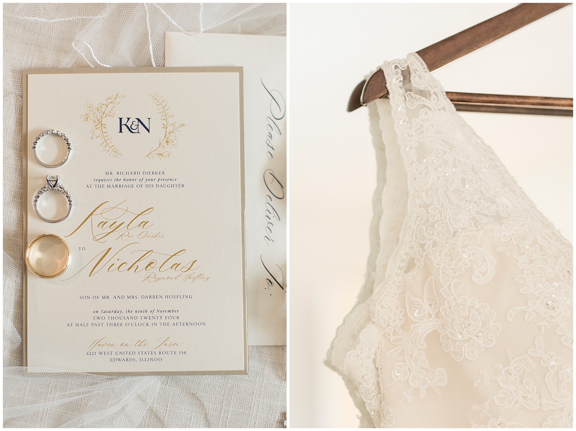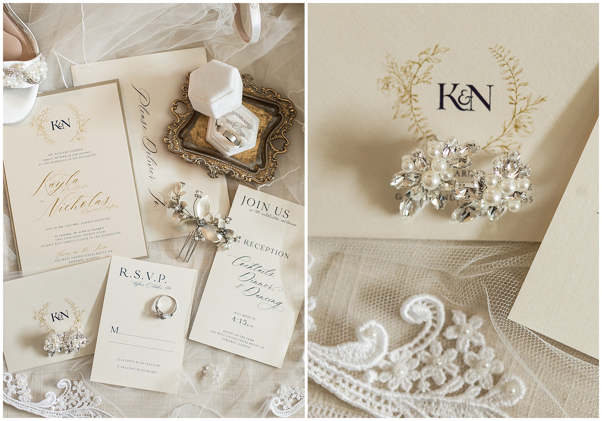When some couples and their families come into your life there is a higher level of connection. Kayla, Nick, and their families are definitely one of those couples. I’ve known this beautiful bride now for almost eight years, since I photographed her sister, Kristin’s wedding to Stephen back in 2017. At that time, Kayla and Nick had just started dating and she had told me when it was her turn to get married, she wanted me to photograph her wedding! As a photographer, I hear that a lot, but it doesn’t always come to fruition. However, SEVEN YEARS LATER, when Nick finally popped the question, I was the first person Kayla reached out to! She’s amazing! She hadn’t even booked her venue or her date yet and wanted to make sure she knew what dates I had open. What an honor! When she and Nick officially booked Haven on the Farm in Edwards, Illinois last fall I knew we were in for a gorgeous day!
