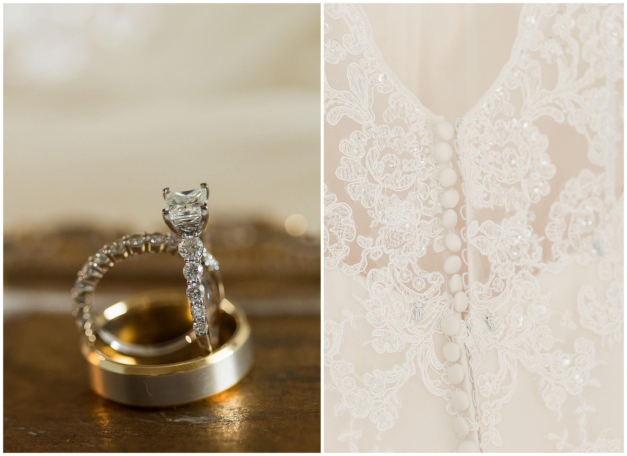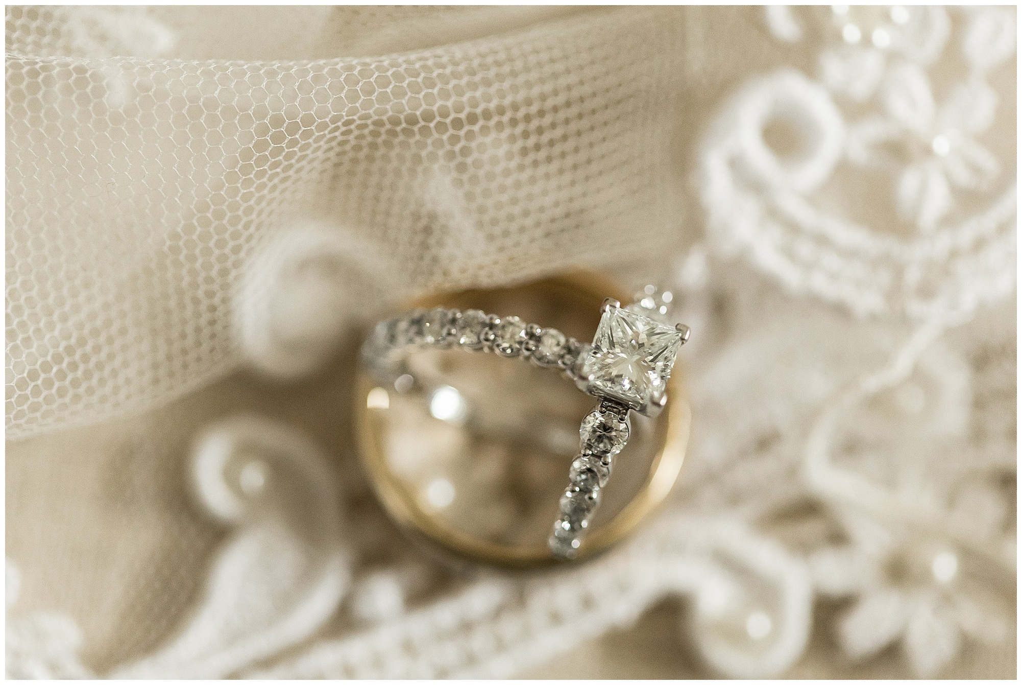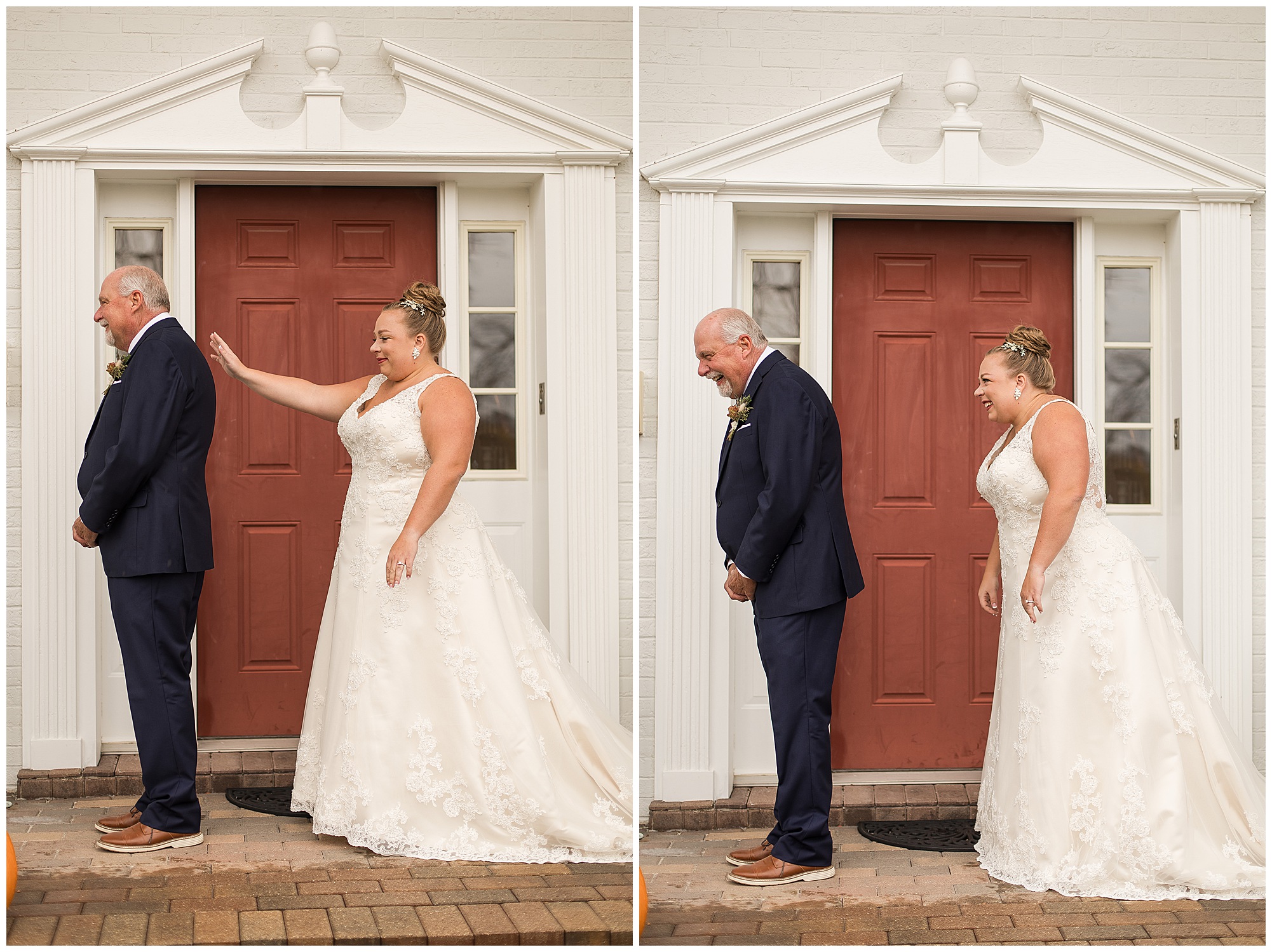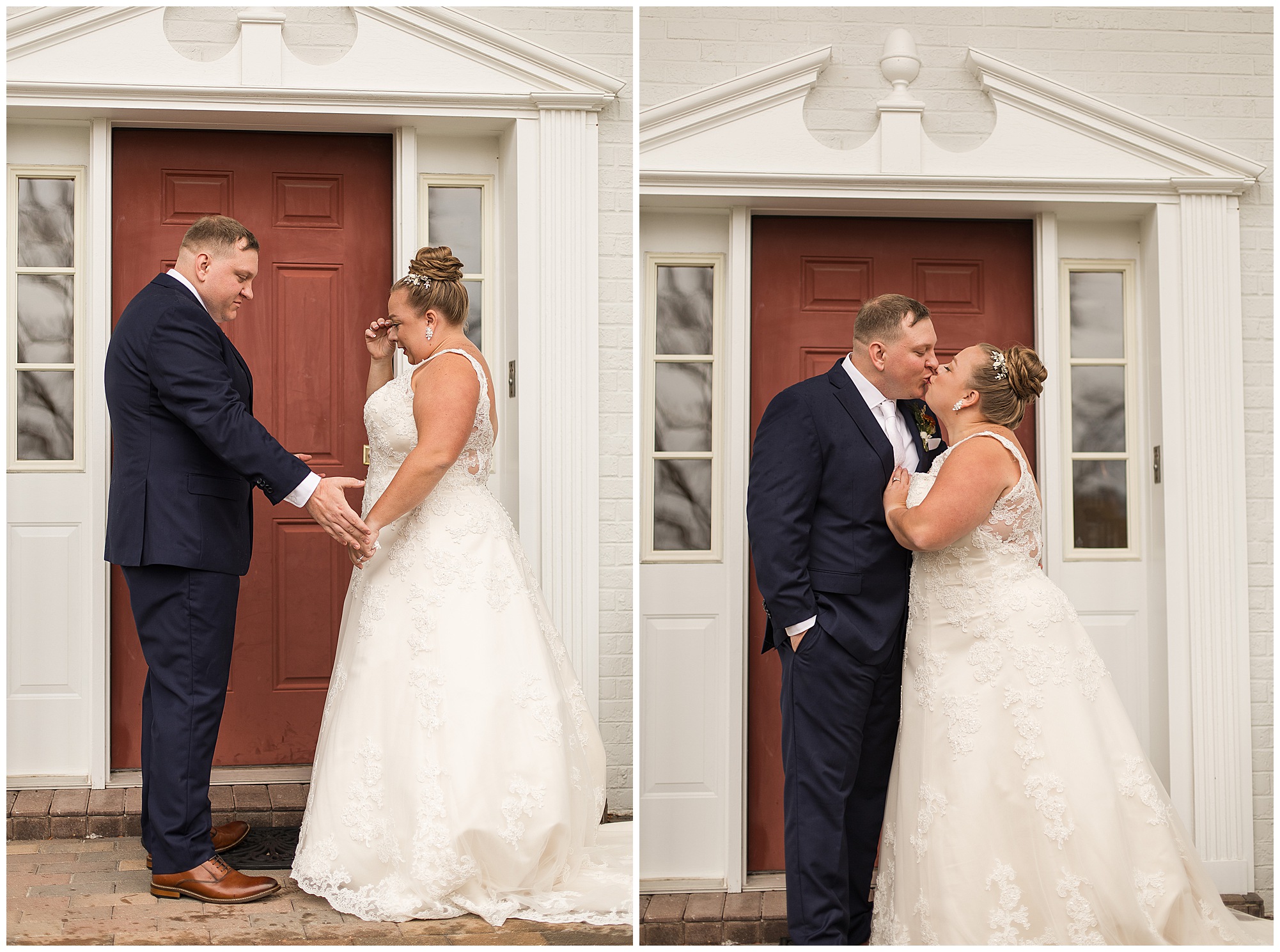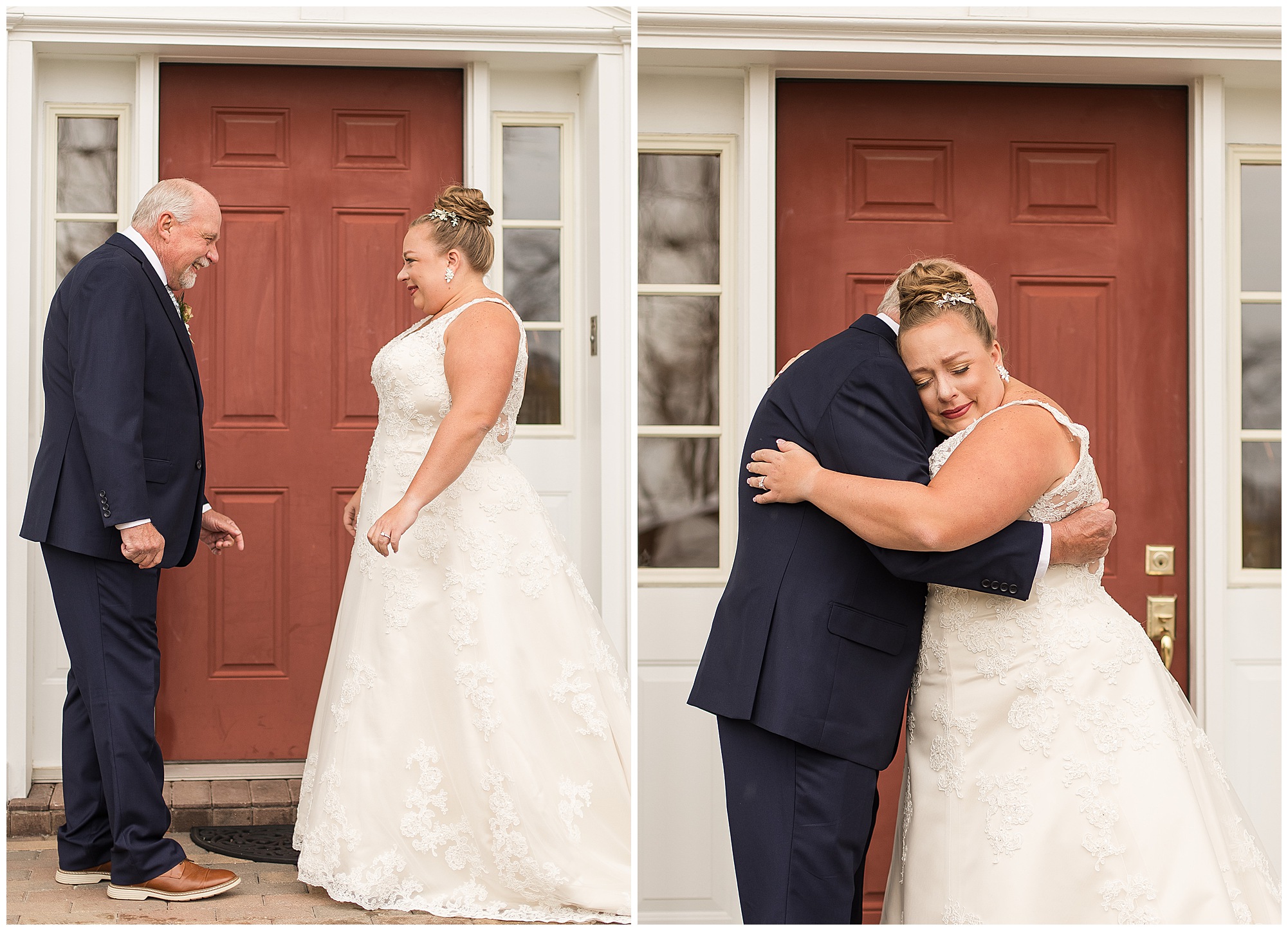 Upon arriving to the venue on wedding day, I was greeted by Kayla’s beaming smile! Her positive and infectious positive attitude uplifts everyone around her. I saw so many familiar faces including Kayla’s sister (and past LWP bride, Kristin) as well as their aunts and cousins, who had been part of Kristin’s day so many years before. The one lady who was missing, yet would be thought of throughout the entire day was Kayla & Kristin’s mom, Lisa. I met her at Kristin’s wedding as she was battling a neurological disease that sadly put her in a wheelchair and unable to speak. Unfortunately, not long after Kristin’s wedding she passed away. However, Lisa was felt in so many moments during Kayla and Nick’s wedding I know she was celebrating their love for one another. The girls even unearthed Lisa’s own wedding veil after Kayla had chosen her dress and the details were so similar it was crazy. When it came time to get Kayla dressed, her sister and Nick’s mom, Carrie stepped in to help her and she was absolutely stunning in her lace gown! With her hair in a high bun and big statement earrings, Kayla’s classic, but modern look was show-stopping.