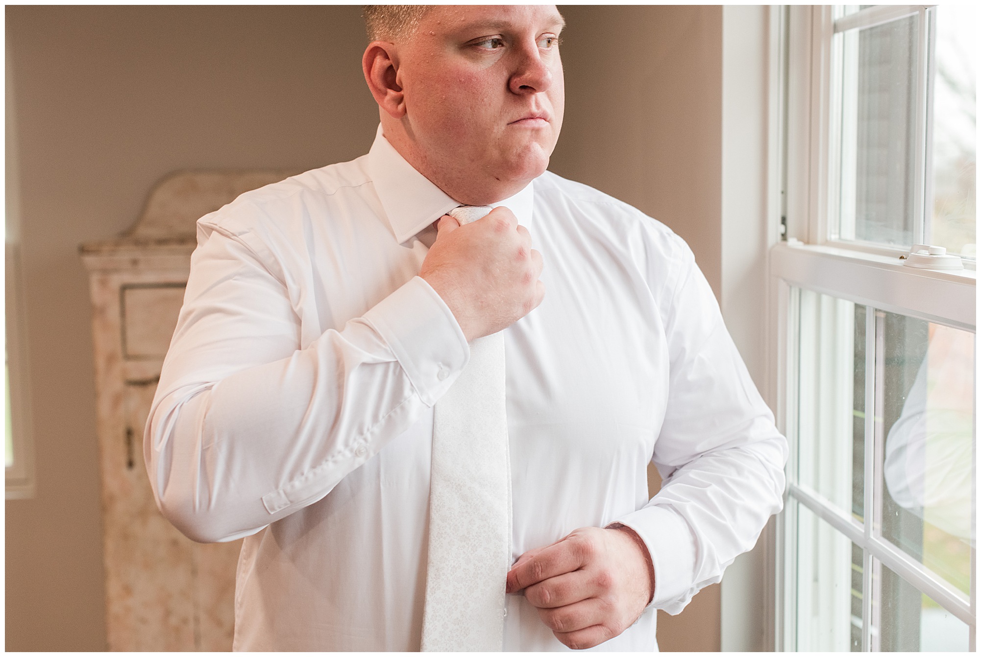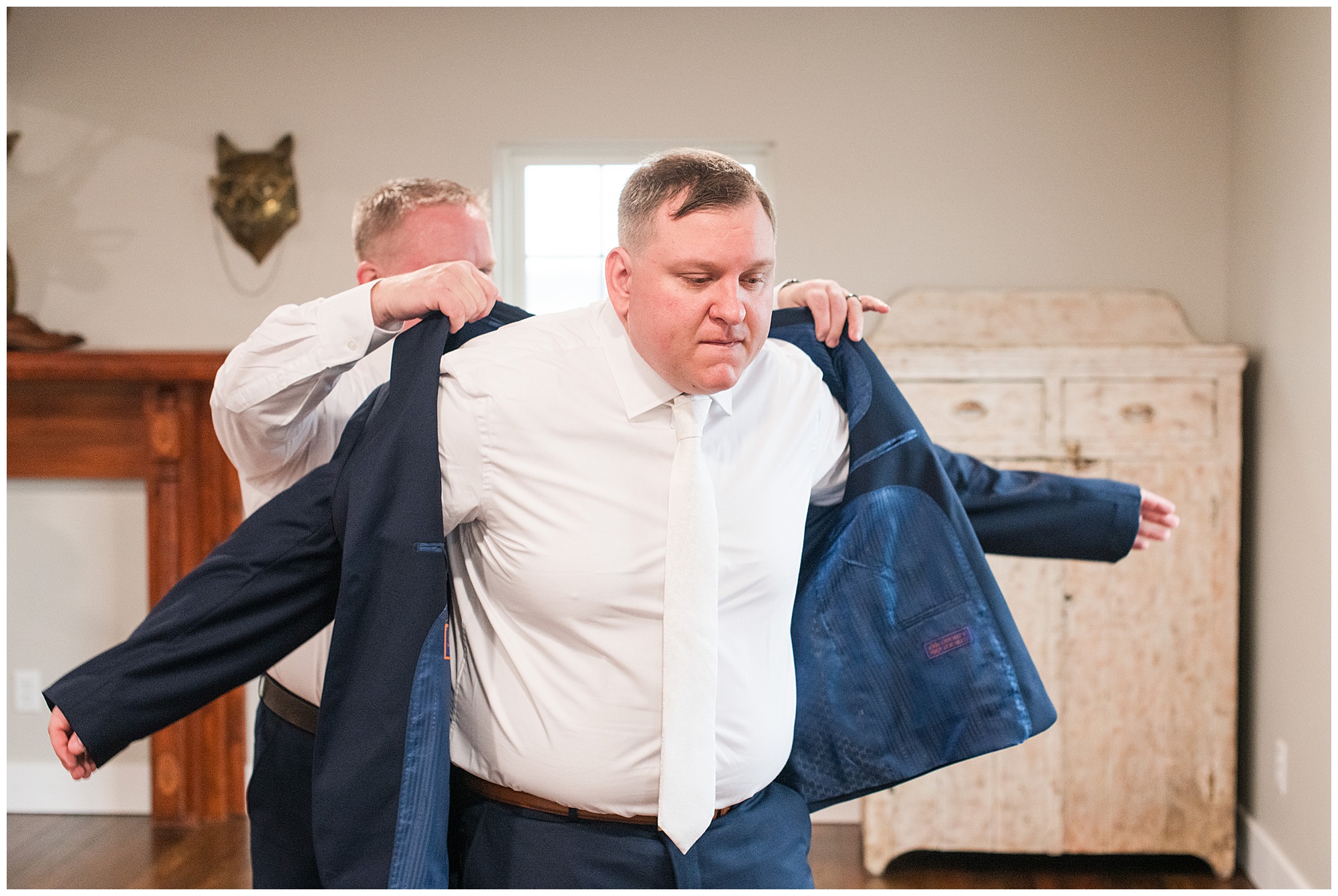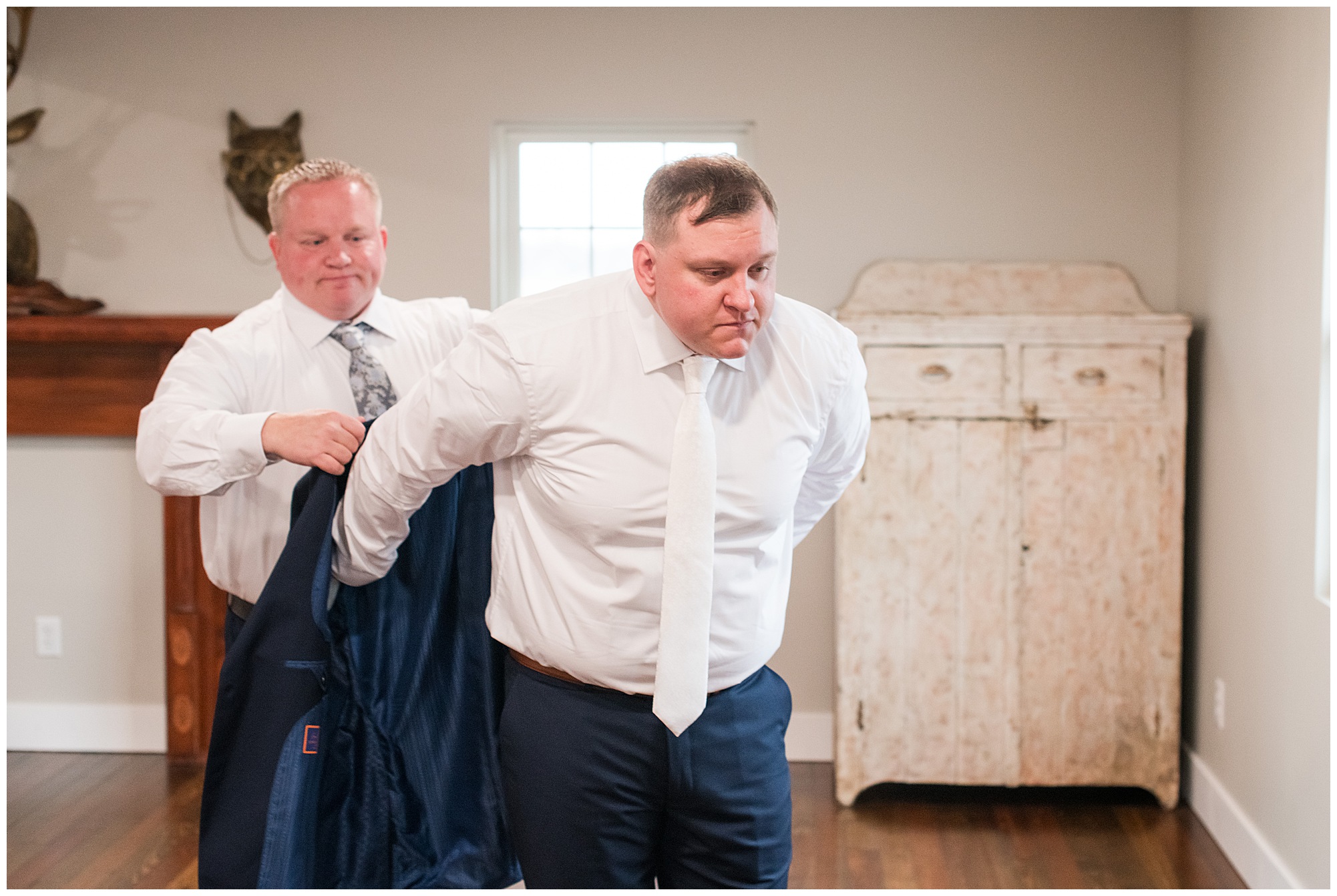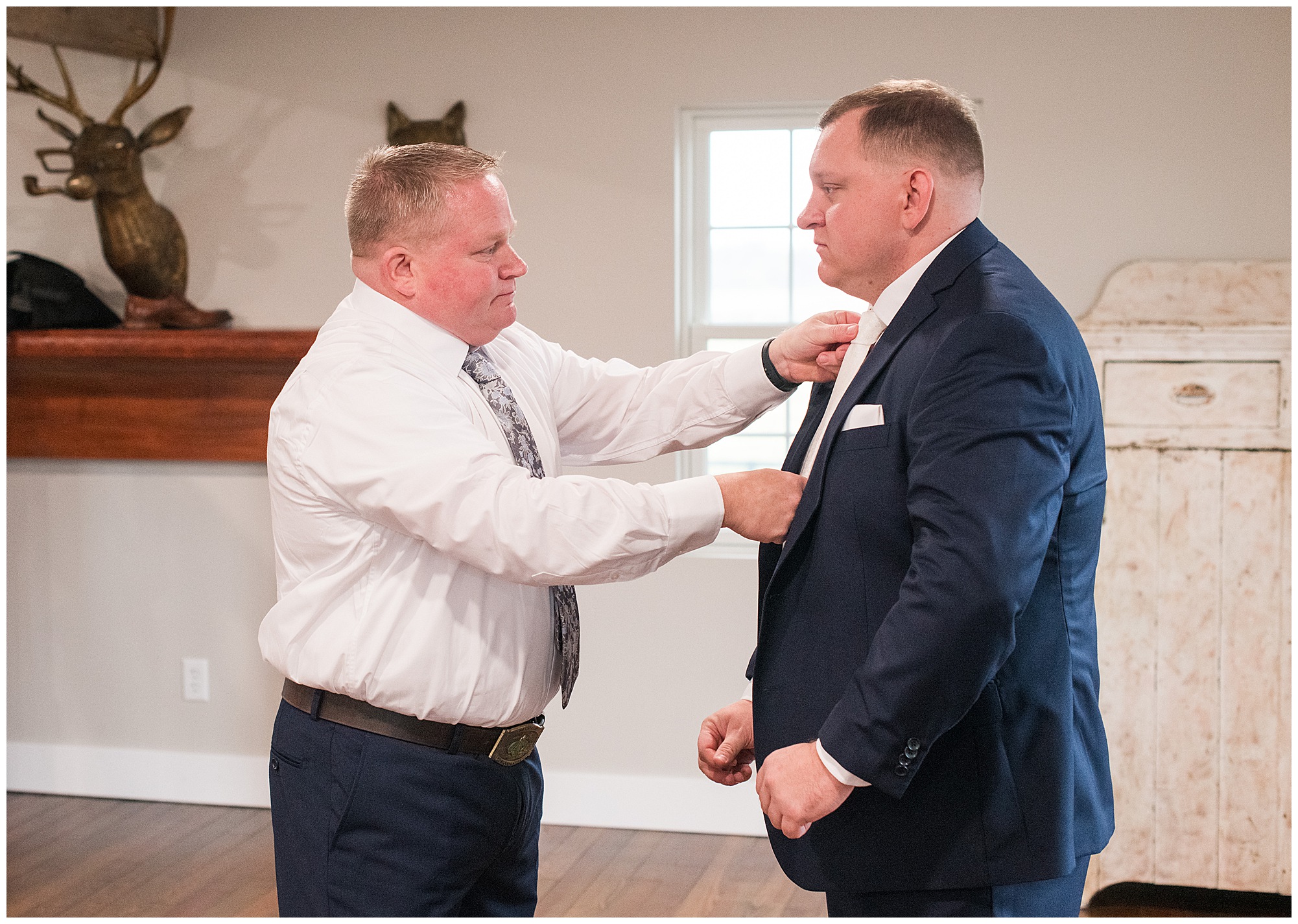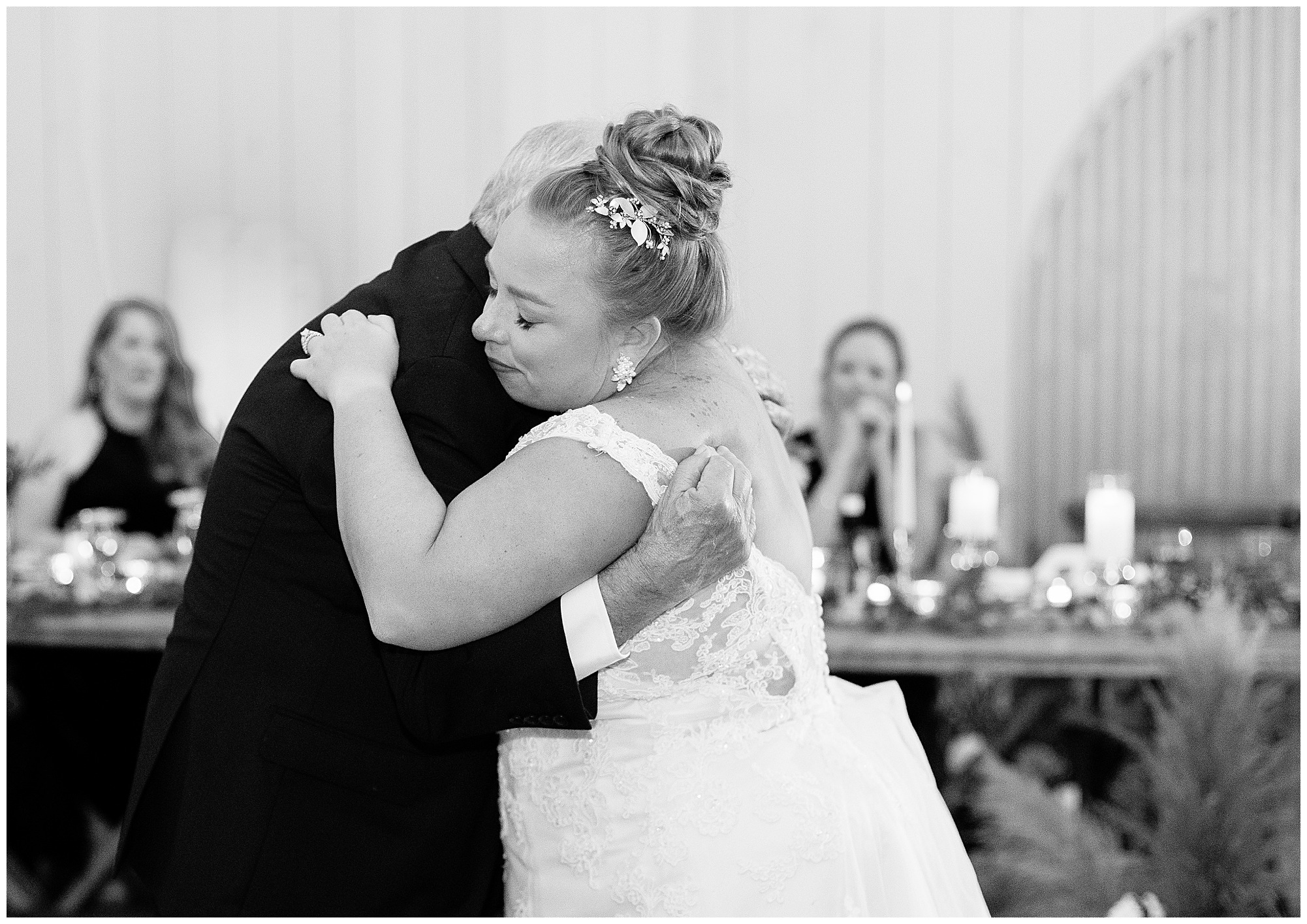 Upon arriving to the venue on wedding day, I was greeted by Kayla’s beaming smile! Her positive and infectious positive attitude uplifts everyone around her. I saw so many familiar faces including Kayla’s sister (and past LWP bride, Kristin) as well as their aunts and cousins, who had been part of Kristin’s day so many years before. The one lady who was missing, yet would be thought of throughout the entire day was Kayla & Kristin’s mom, Lisa. I met her at Kristin’s wedding as she was battling a neurological disease that sadly put her in a wheelchair and unable to speak. Unfortunately, not long after Kristin’s wedding she passed away. However, Lisa was felt in so many moments during Kayla and Nick’s wedding I know she was celebrating their love for one another. The girls even unearthed Lisa’s own wedding veil after Kayla had chosen her dress and the details were so similar it was crazy. When it came time to get Kayla dressed, her sister and Nick’s mom, Carrie stepped in to help her and she was absolutely stunning in her lace gown! With her hair in a high bun and big statement earrings, Kayla’s classic, but modern look was show-stopping.