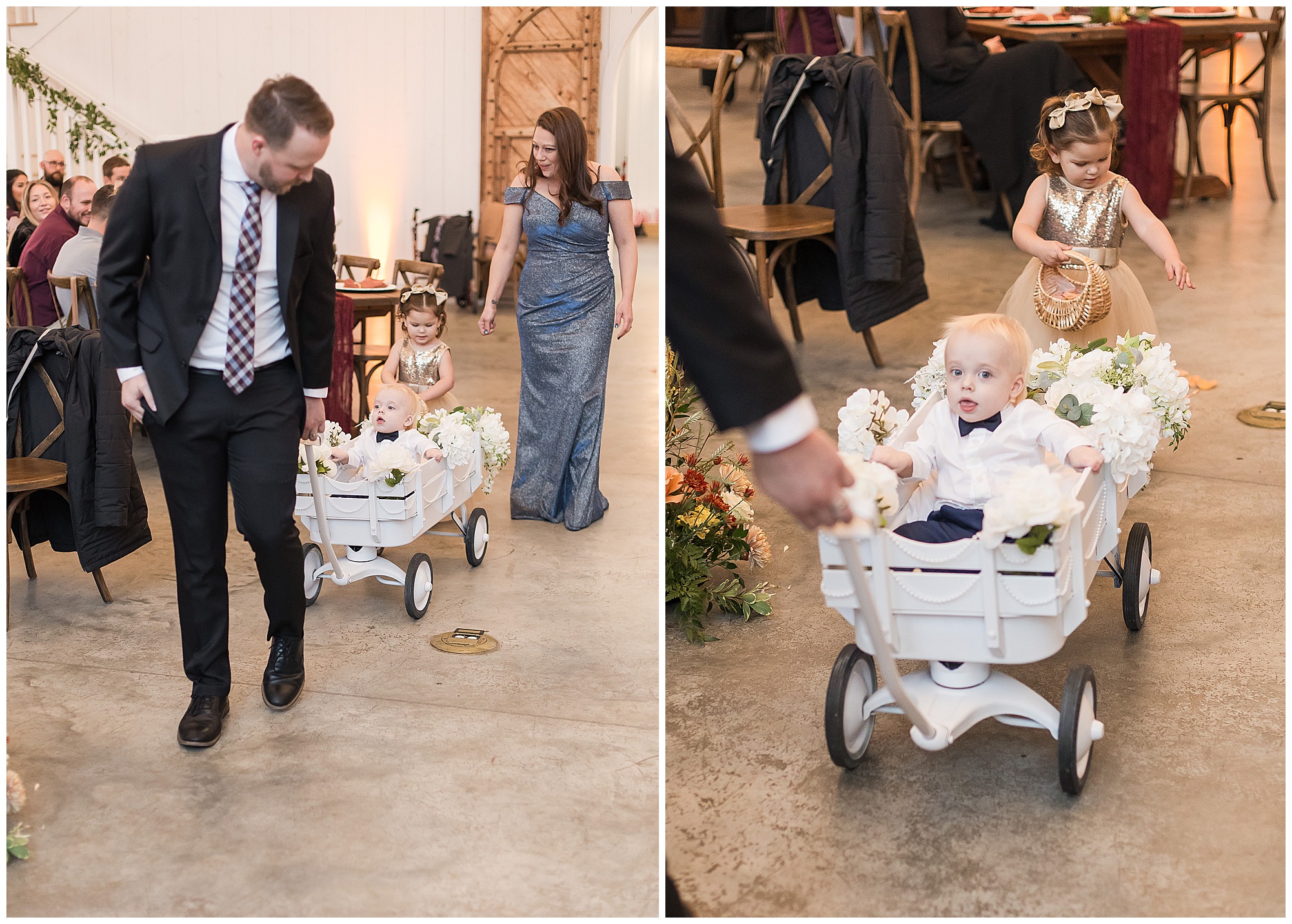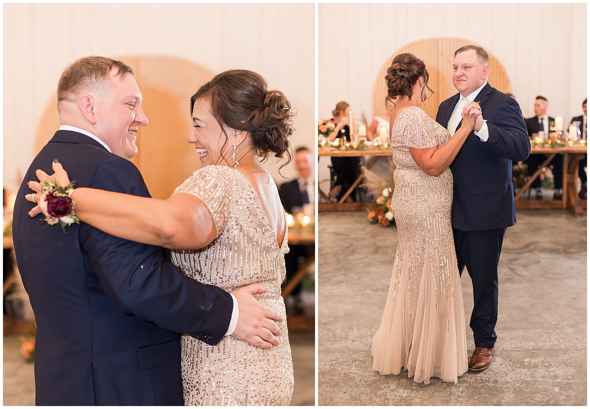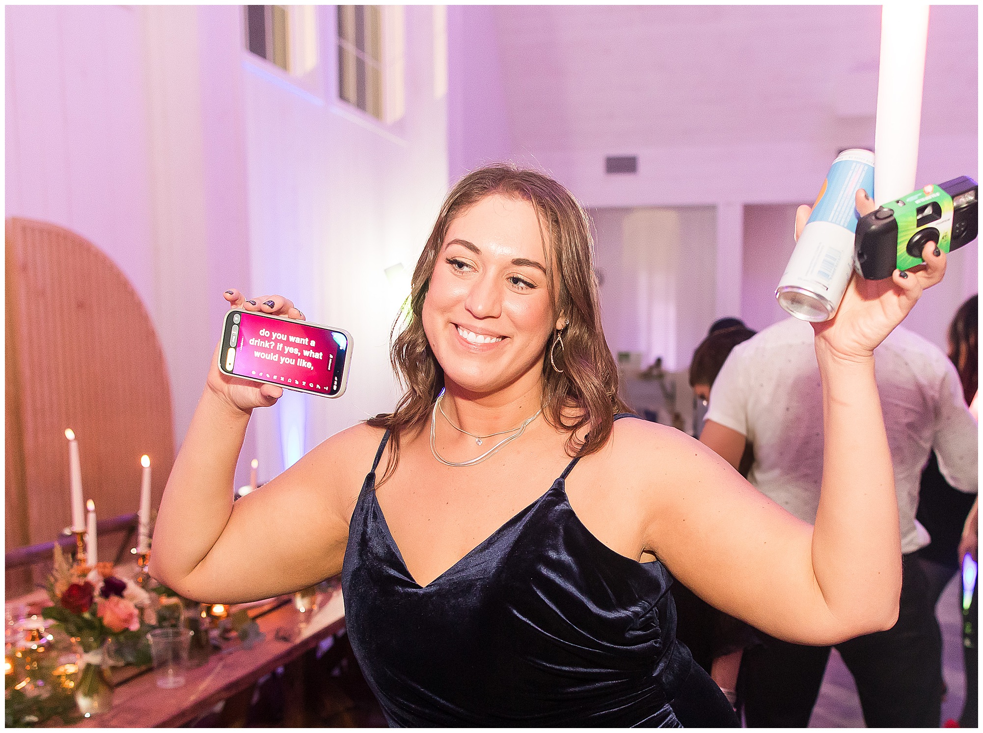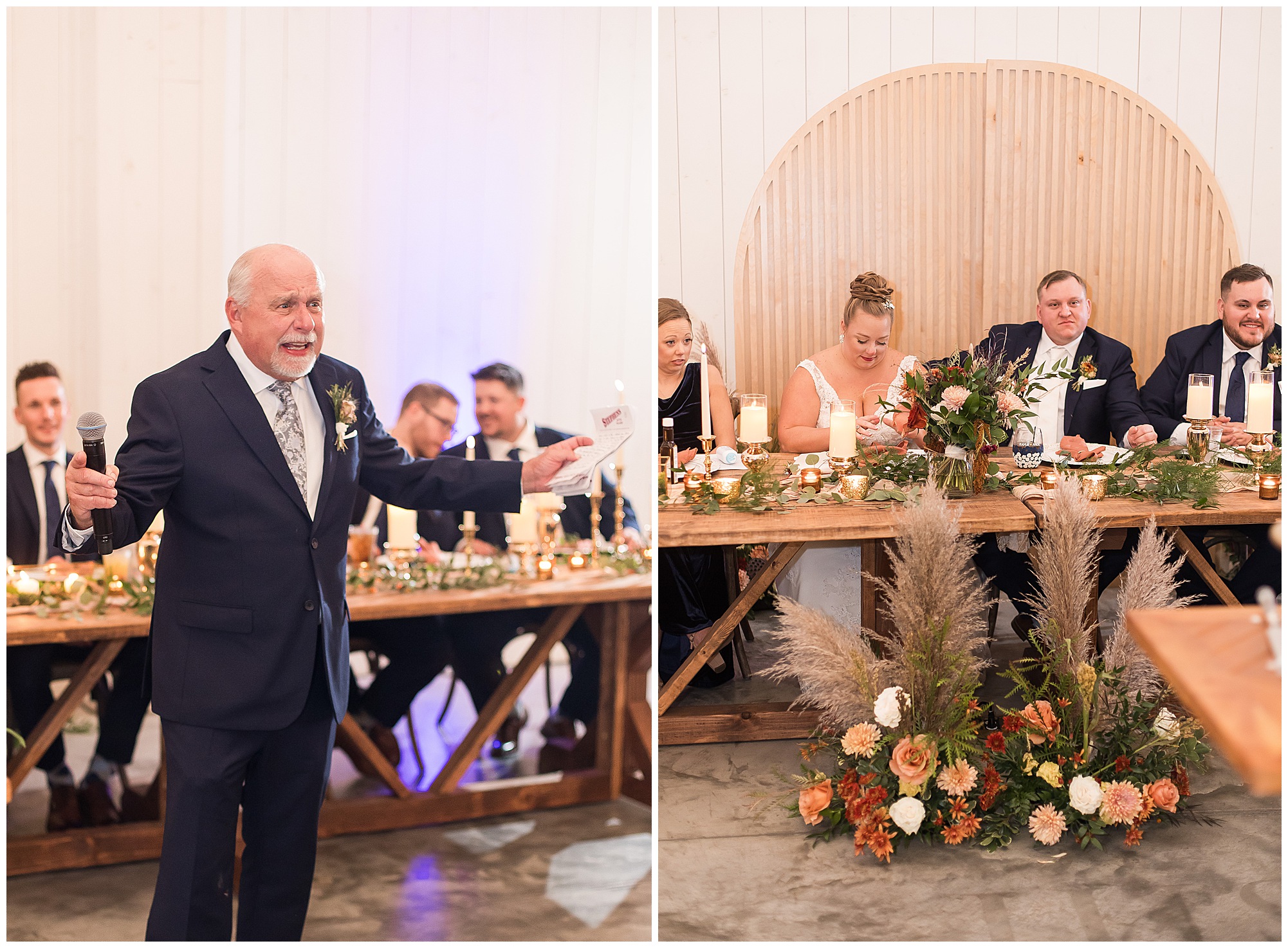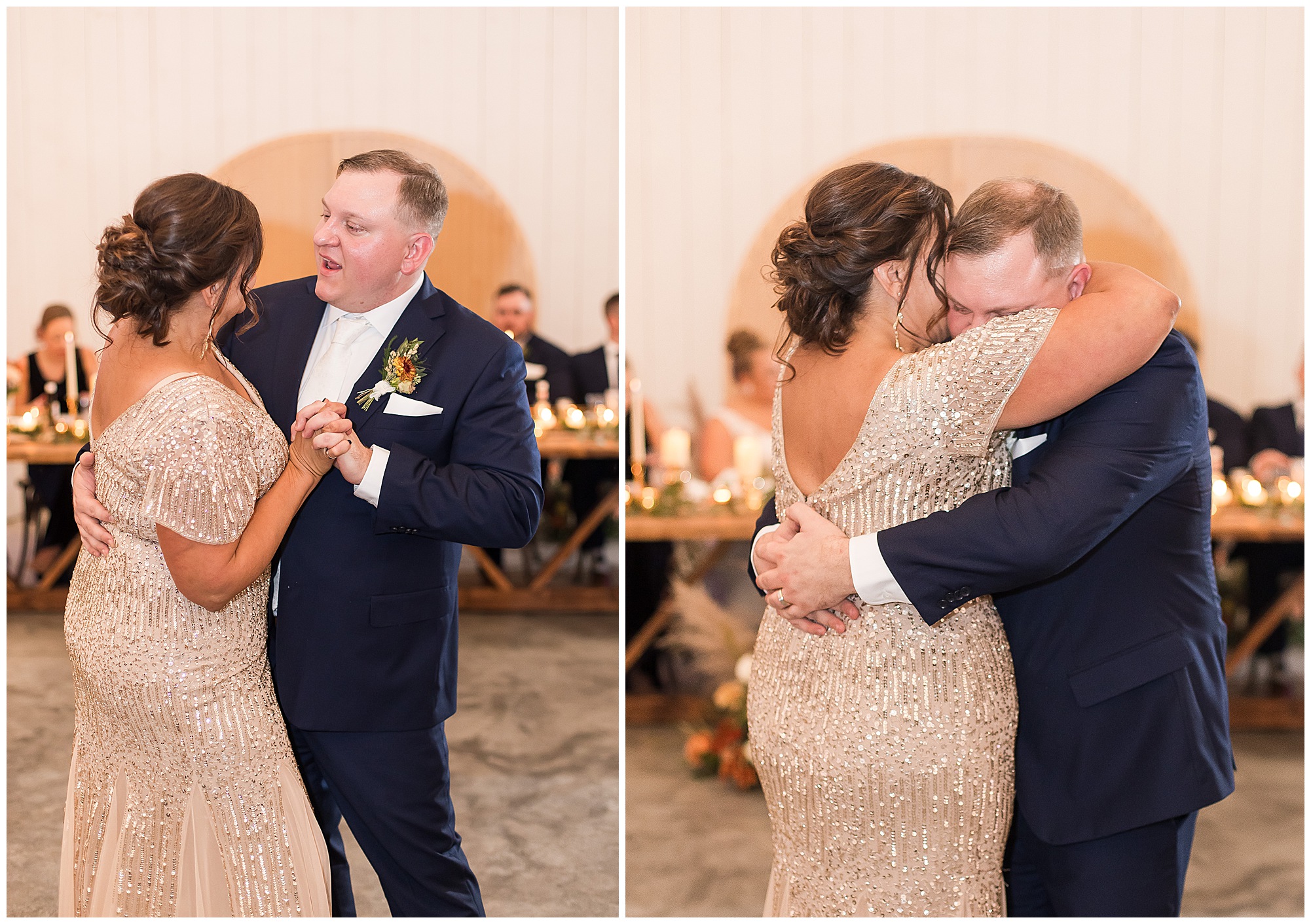 Guests gathered at their farmhouse tables scattered around the barn as they awaited Kayla to make her way down the aisle with her dad. Almost eight years in the making, this was absolutely a moment everyone in the room was waiting for! Nick fought back tears as he saw his bride walking his way with her glowing smile. And within a few minutes, Kayla was also fighting her emotions with the mention of her mother and the long journey of her and Nick’s relationship. But, there were also so many laughs throughout their nuptials. Which is exactly how Kayla and Nick’s marriage will play out. So many laughs and lifting one another up in any time of need. Just like they have done over the years leading up to wedding day. After exchanging their vows and rings, they shared a kiss and became Mr. & Mrs. Hoefling!