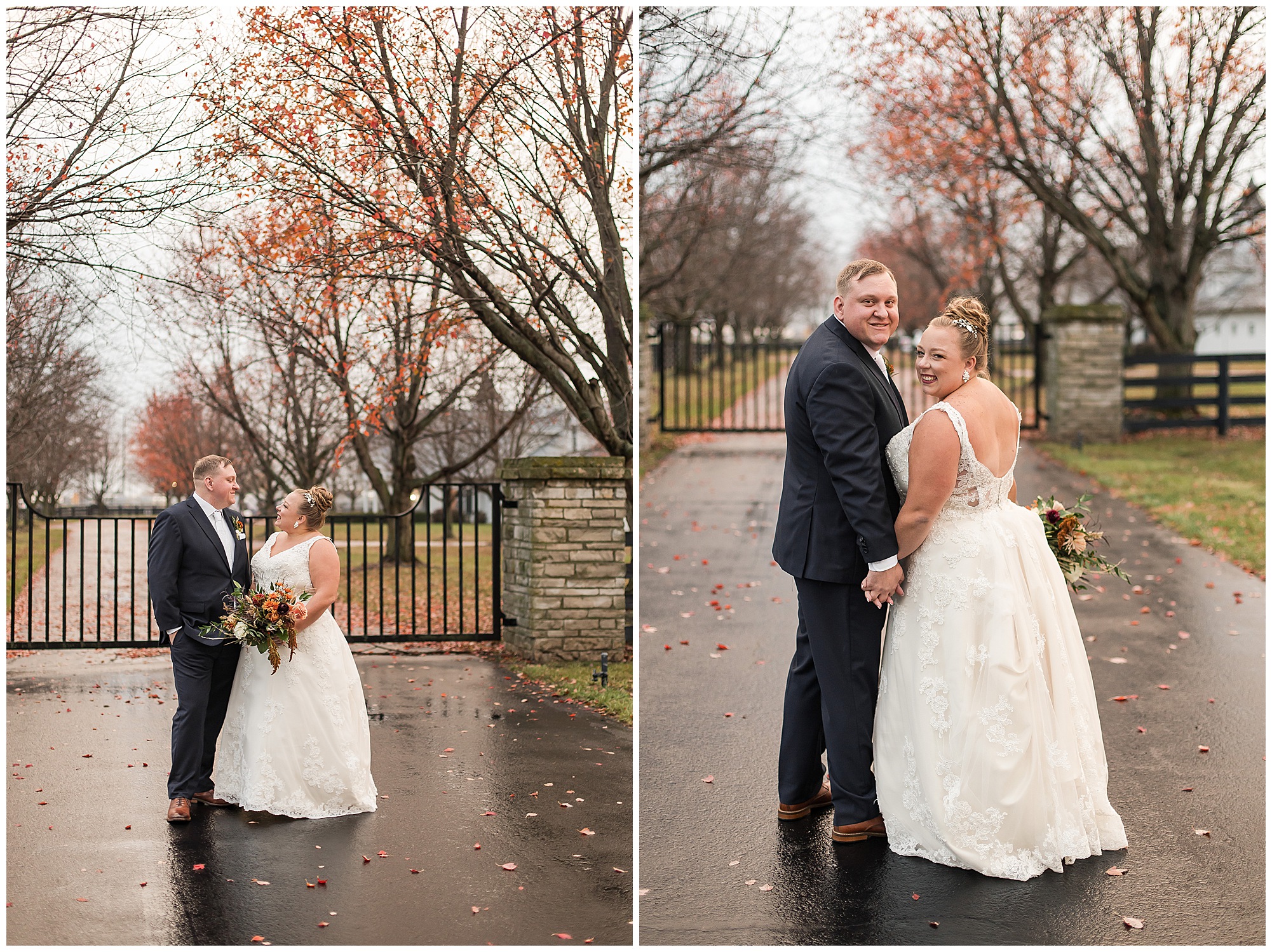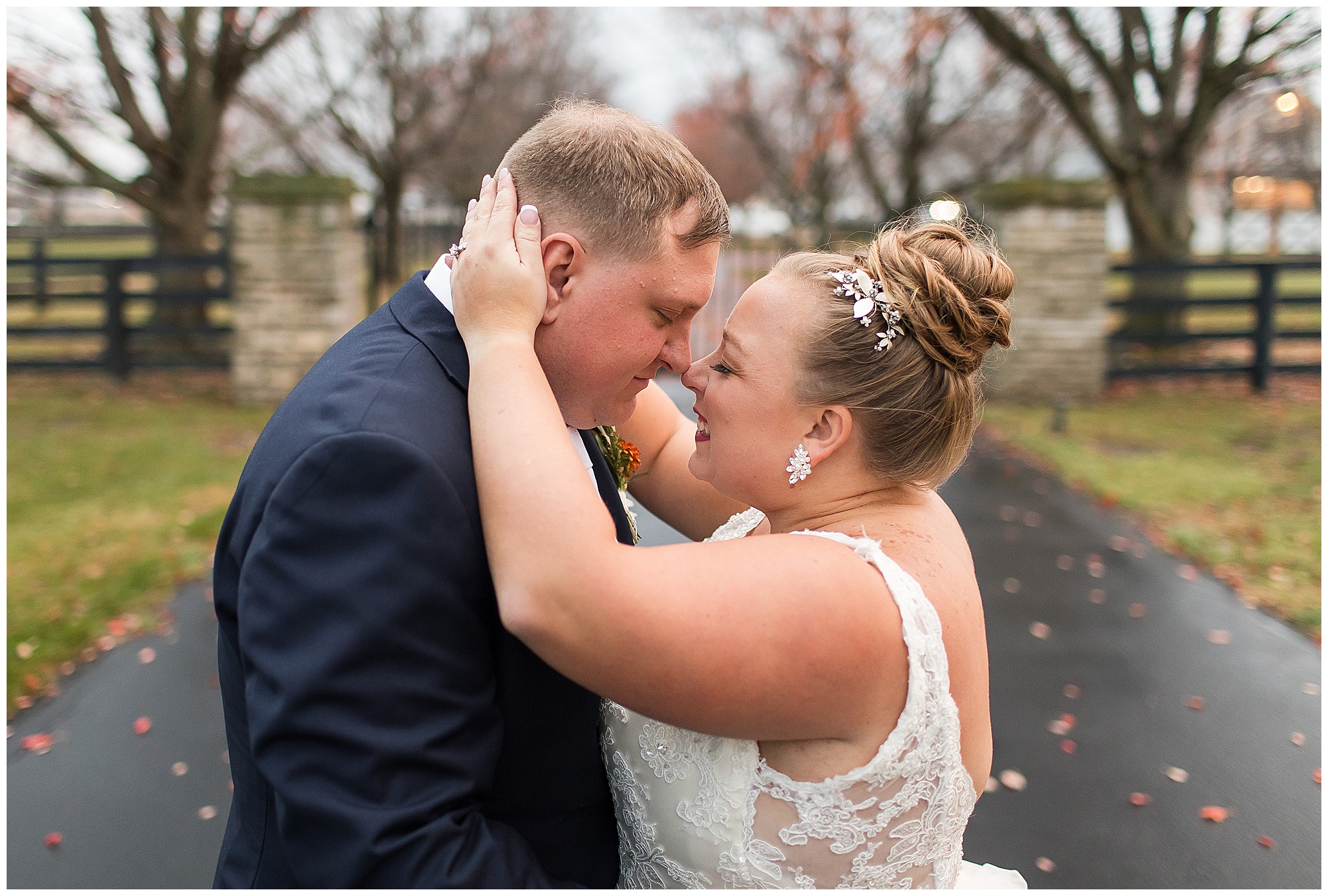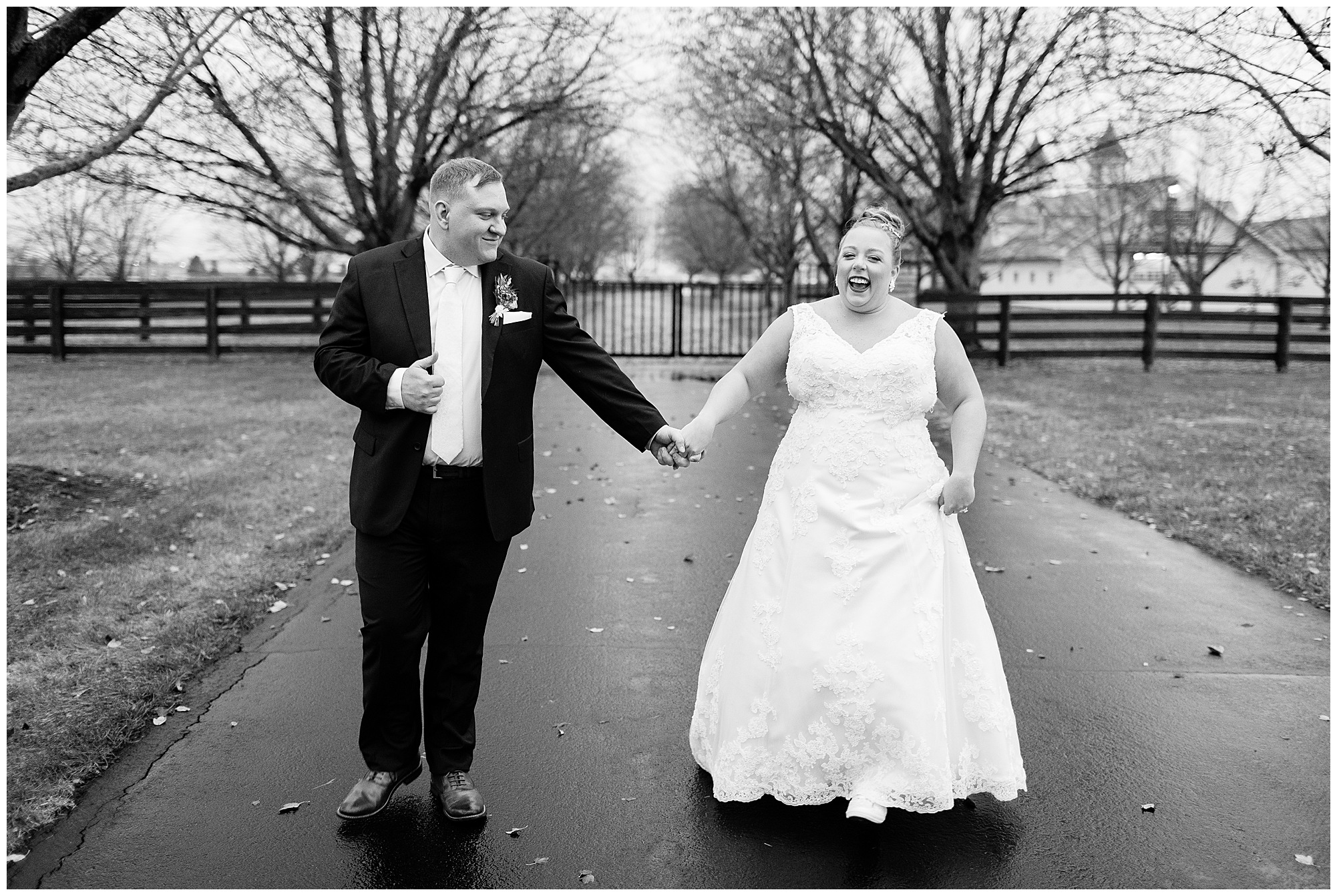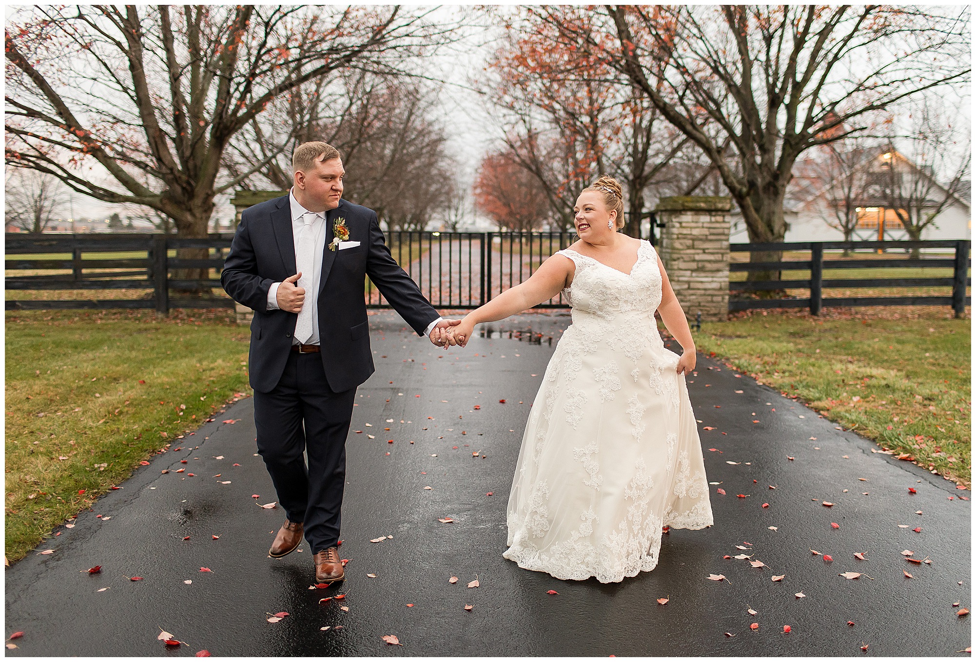 See…One of the many highlights about Haven on the Farm is “The Lane”. This spectacular long treelined drive is flanked with black fencing and bookended with stone gates. Kayla and Nick had planned to have their ceremony on the lane, however with the rain in the forecast, they sadly had to change those plans. But, when the opportunity arose to head outside with a break in the weather pattern, we rushed out to the lane for a few coveted shots! And boy…Were they worth it! Kayla and Nick took in every second together, enjoying the new memories they were making on their special day. On your wedding day, people don’t realize you really don’t get a lot of time alone with your new spouse. So these two were soaking in every moment before they finally said “I Do!”