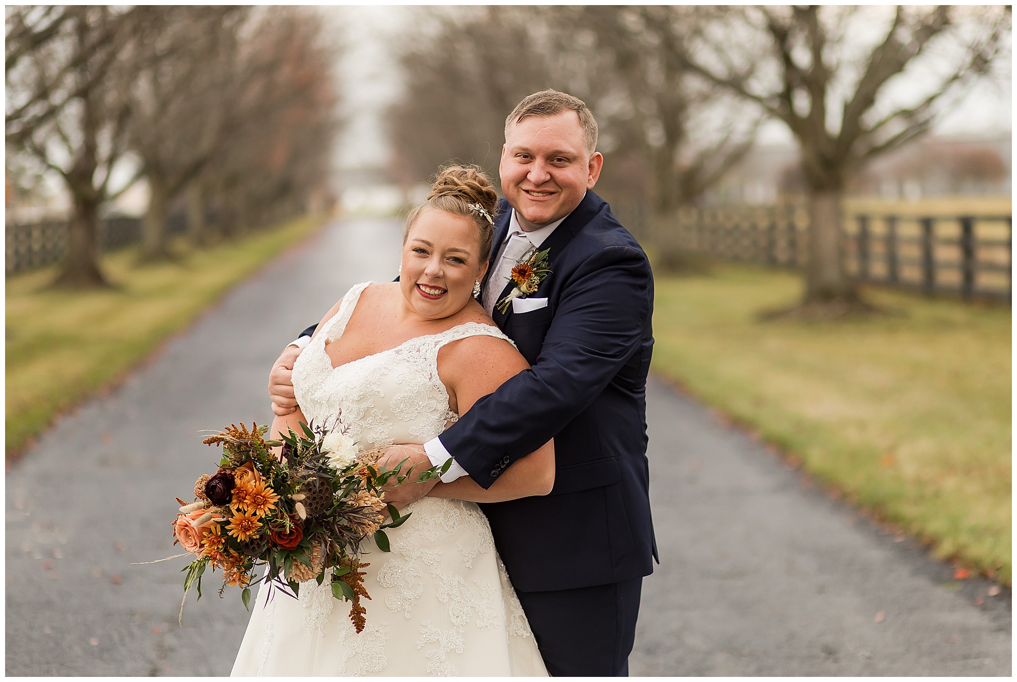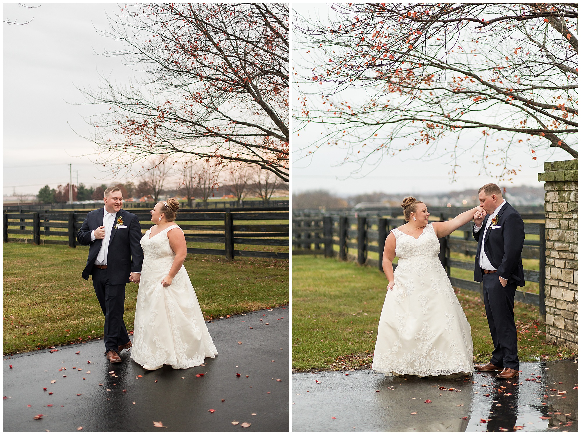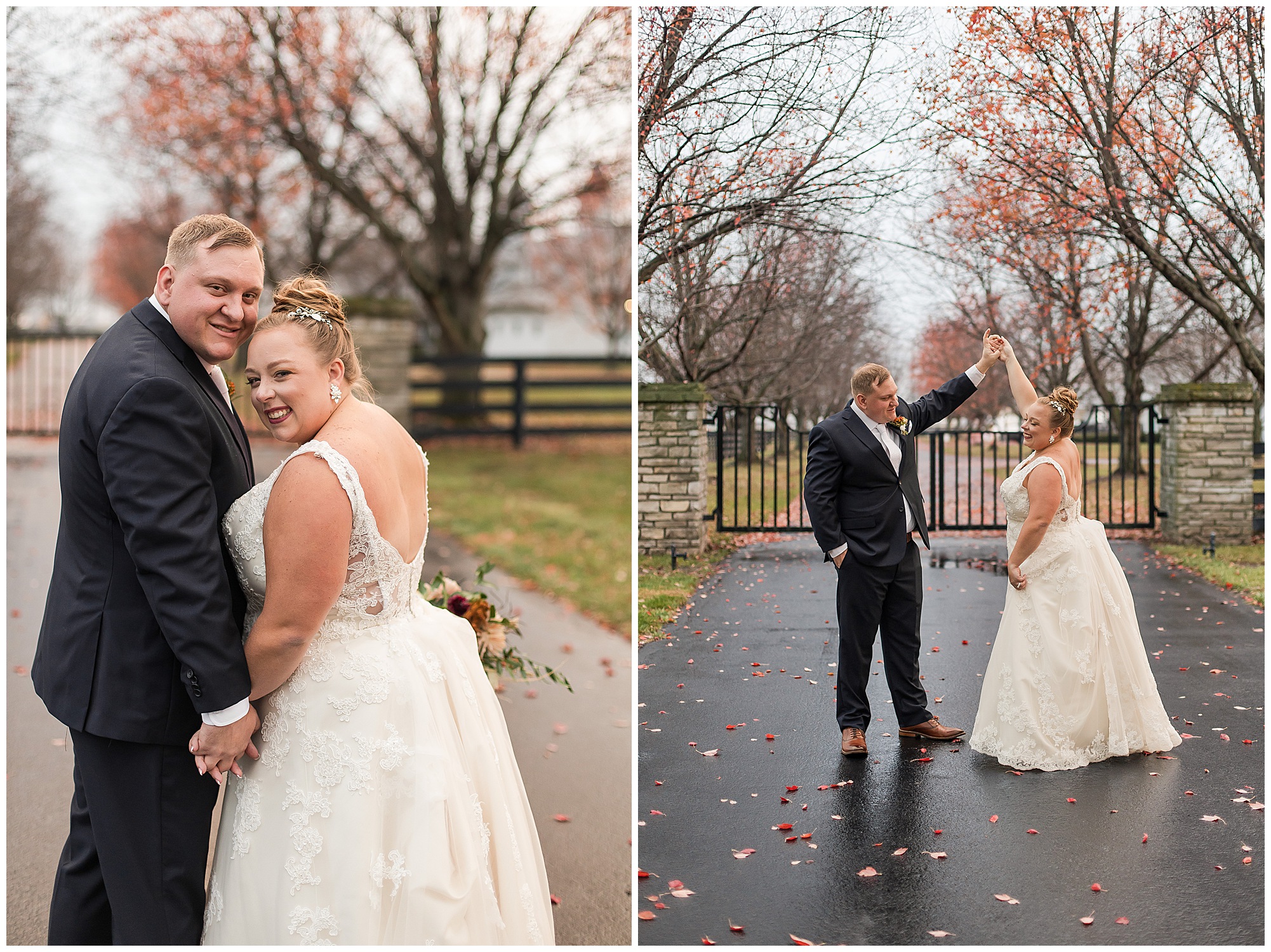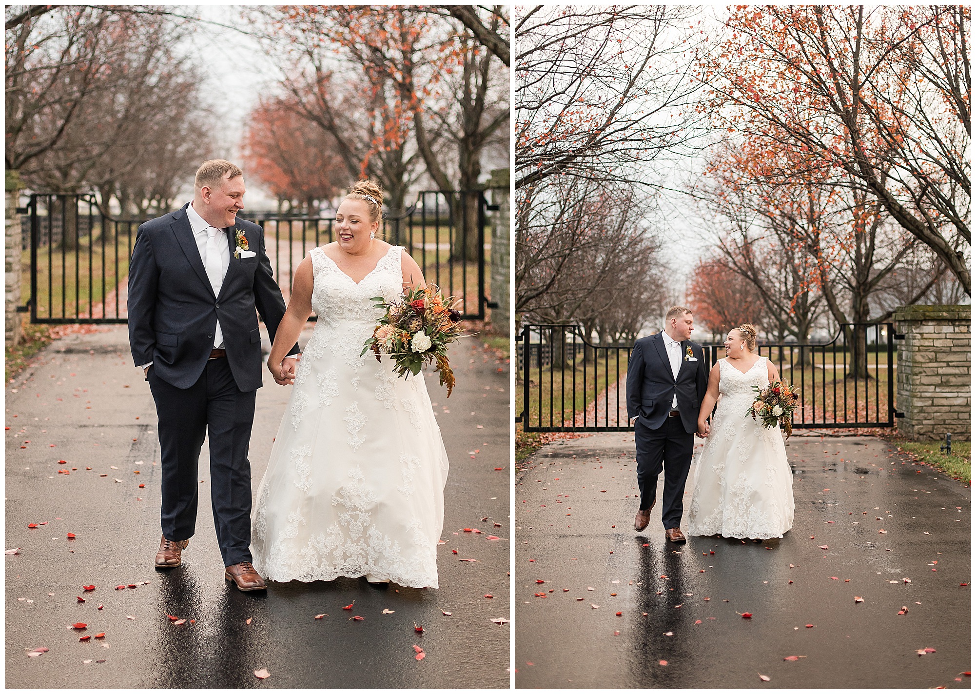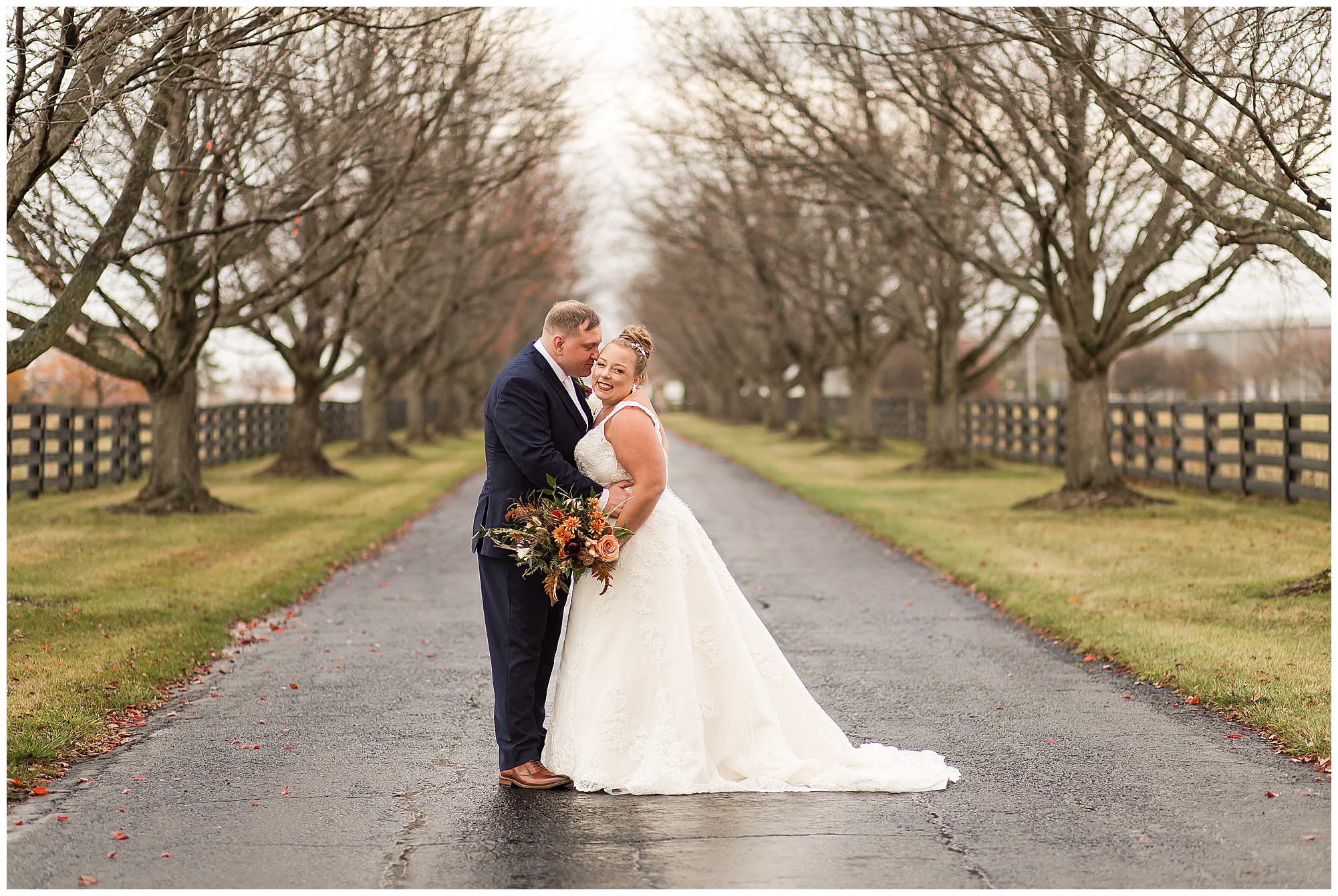 See…One of the many highlights about Haven on the Farm is “The Lane”. This spectacular long treelined drive is flanked with black fencing and bookended with stone gates. Kayla and Nick had planned to have their ceremony on the lane, however with the rain in the forecast, they sadly had to change those plans. But, when the opportunity arose to head outside with a break in the weather pattern, we rushed out to the lane for a few coveted shots! And boy…Were they worth it! Kayla and Nick took in every second together, enjoying the new memories they were making on their special day. On your wedding day, people don’t realize you really don’t get a lot of time alone with your new spouse. So these two were soaking in every moment before they finally said “I Do!”