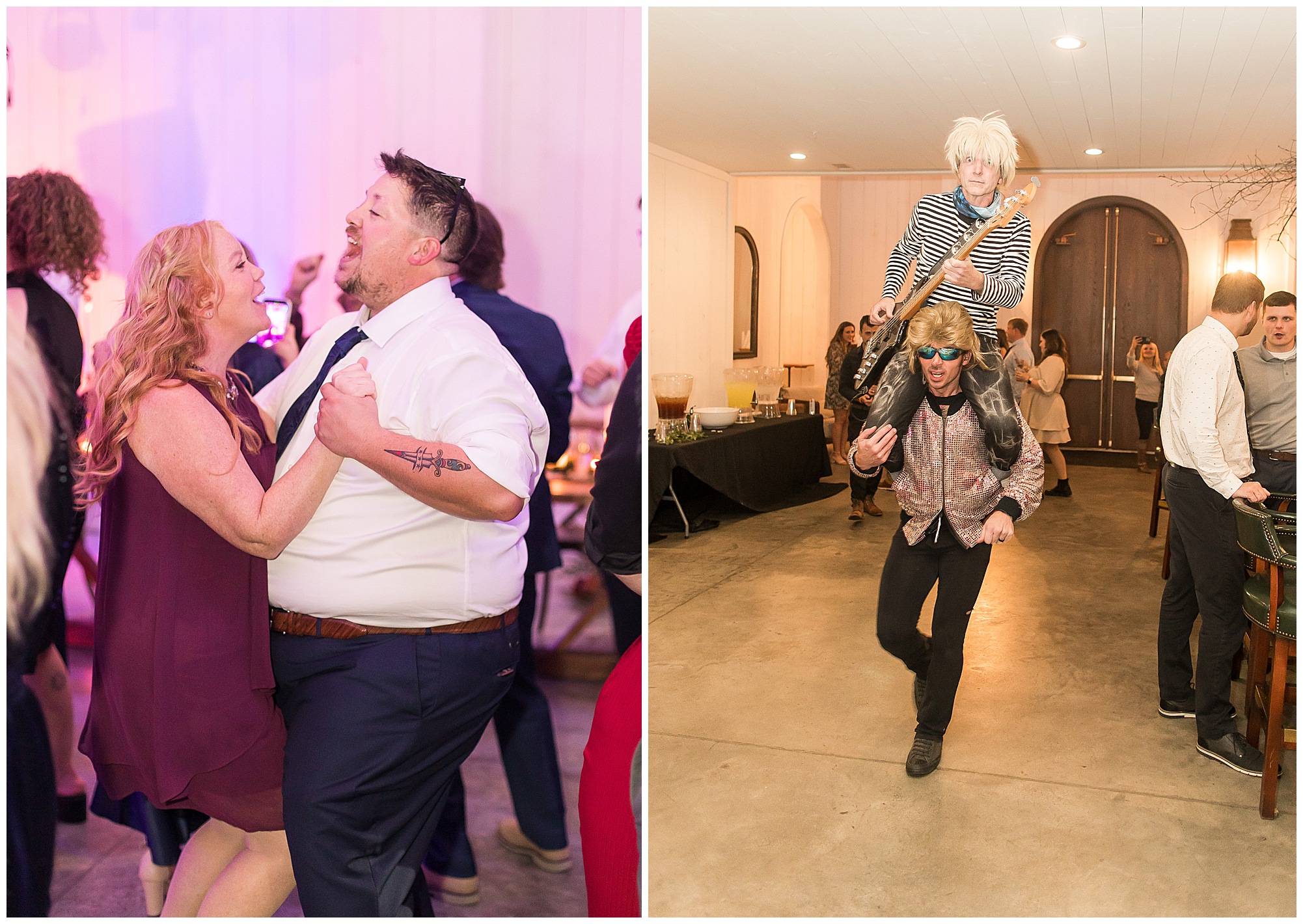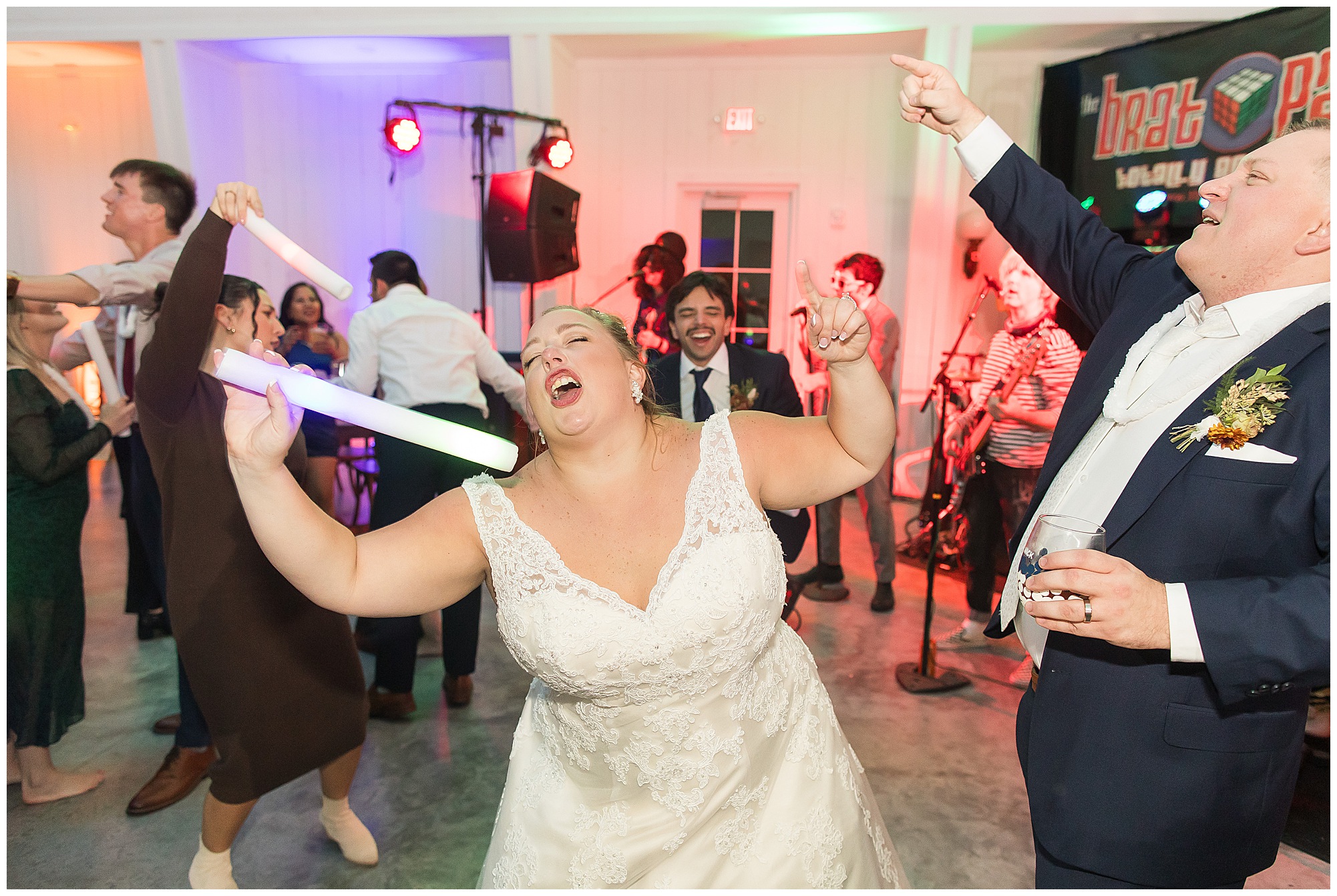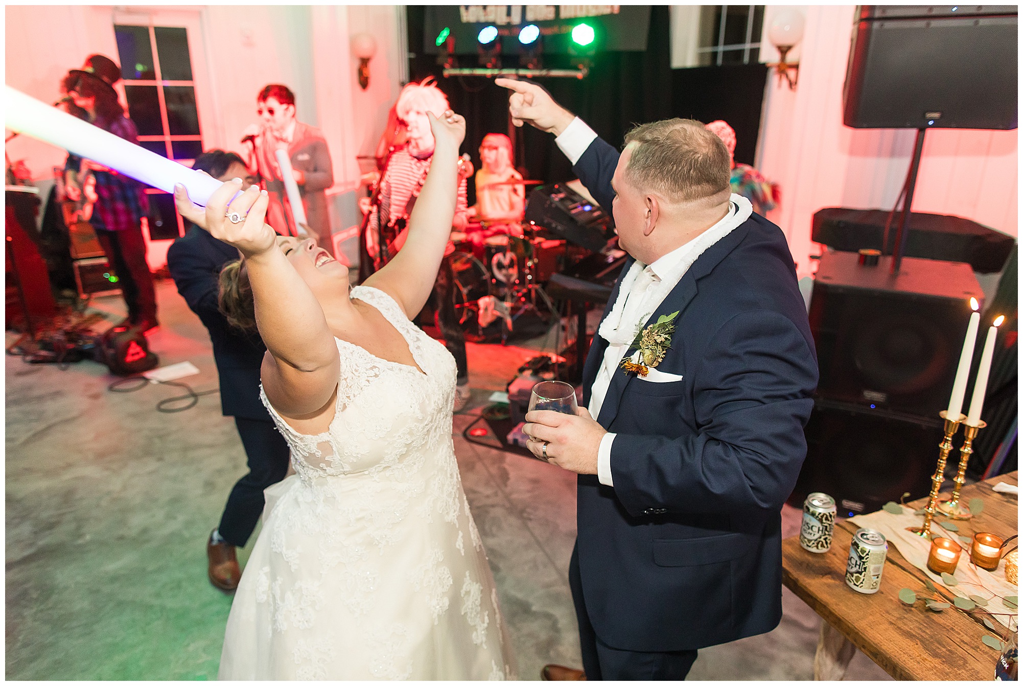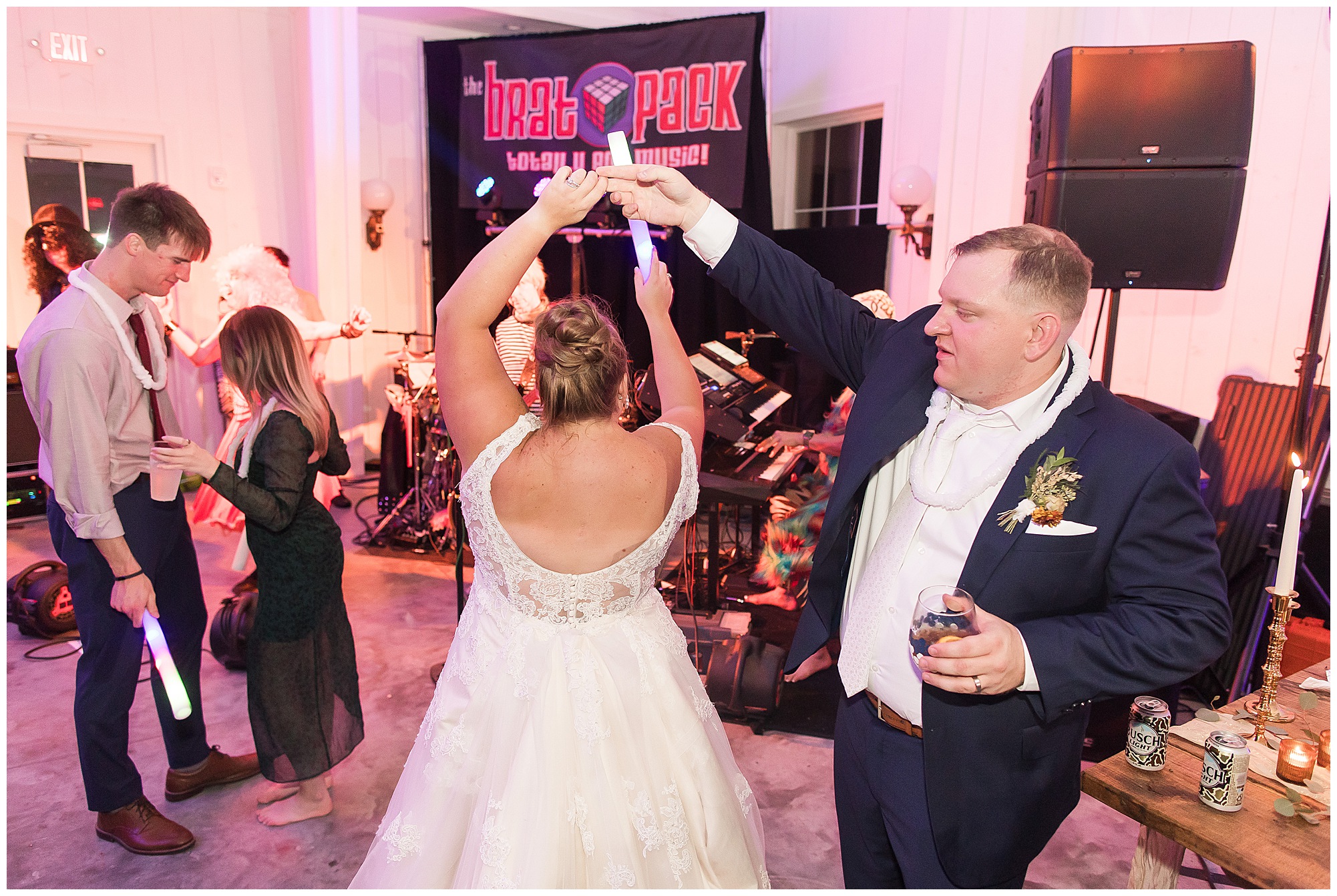 Now knowing Kayla, Nick, and getting to know their families over the last few years (and recognizing how much fun their bridal party was all day) I knew we were in for one hell of a party! We did have a few formalities to knock out first. Kayla’s father, Rich, gave a hilarious and heartfelt speech. Followed by Nick’s brother, Tanner, bringing the laughs and tears to the whole room. Then rounding it out with Kayla’s matron of honor and sister, Kristin, who toasted the couple starting out with blowing a bunch of dust off her speech since it took Nick so long to pop the question! The newlyweds shared their first dance, then Nick danced with his mom, Carrie, before Kayla and her dad literally took a spin around the floor in a fun and laid back father/daughter dance together. Before you knew it, the time had come to get the party started! “The Brat Pack”, an 80’s themed band kicked off the reception in full costumes (which were changed out regularly) and were packed with energy! They had the dance floor filled all night!
