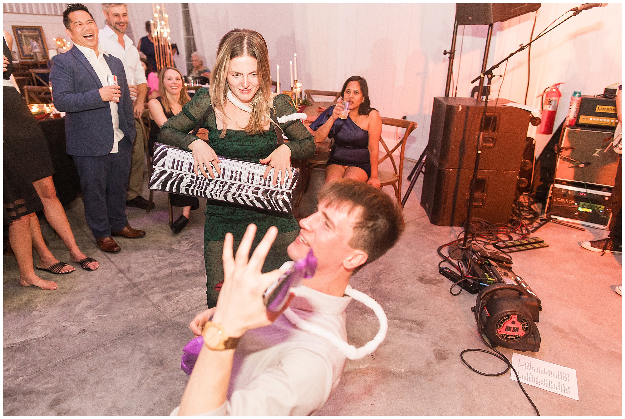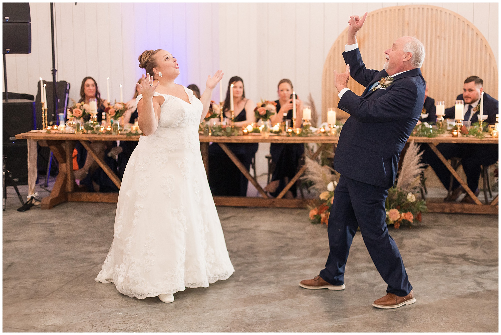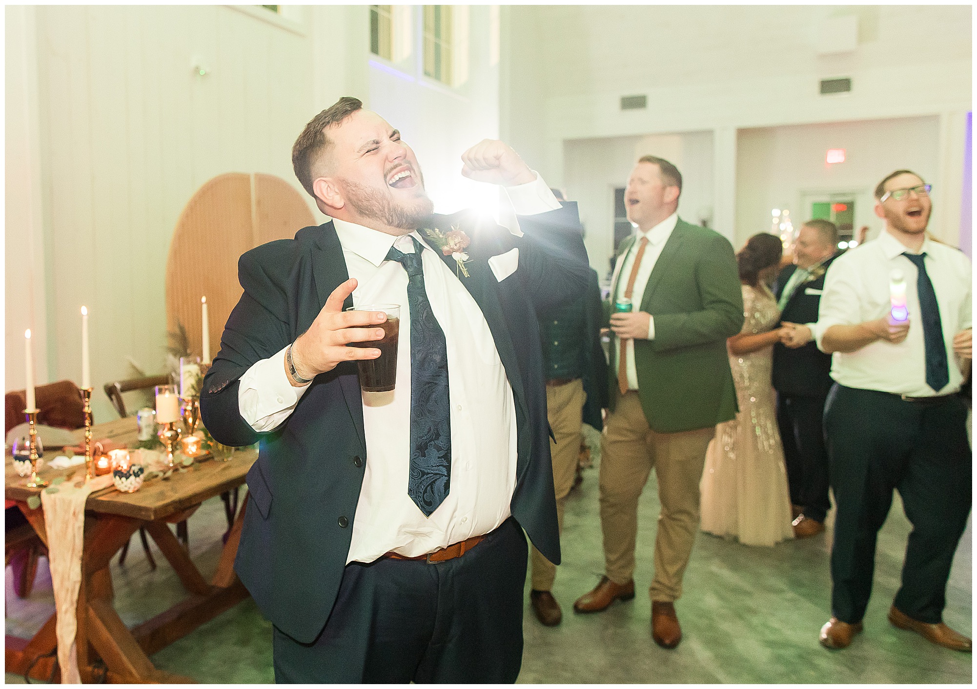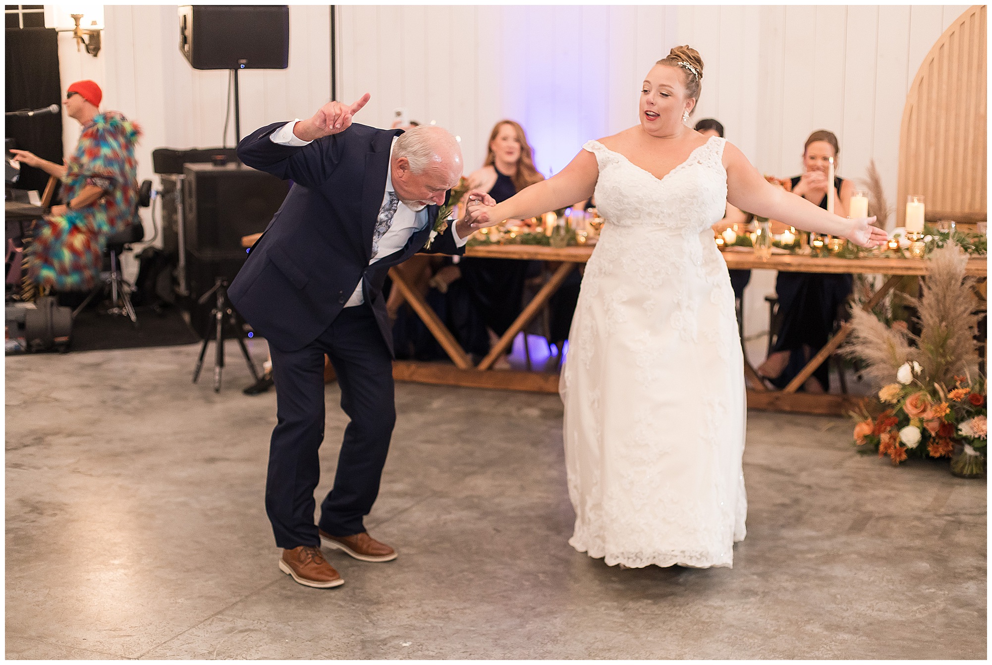 Now knowing Kayla, Nick, and getting to know their families over the last few years (and recognizing how much fun their bridal party was all day) I knew we were in for one hell of a party! We did have a few formalities to knock out first. Kayla’s father, Rich, gave a hilarious and heartfelt speech. Followed by Nick’s brother, Tanner, bringing the laughs and tears to the whole room. Then rounding it out with Kayla’s matron of honor and sister, Kristin, who toasted the couple starting out with blowing a bunch of dust off her speech since it took Nick so long to pop the question! The newlyweds shared their first dance, then Nick danced with his mom, Carrie, before Kayla and her dad literally took a spin around the floor in a fun and laid back father/daughter dance together. Before you knew it, the time had come to get the party started! “The Brat Pack”, an 80’s themed band kicked off the reception in full costumes (which were changed out regularly) and were packed with energy! They had the dance floor filled all night!