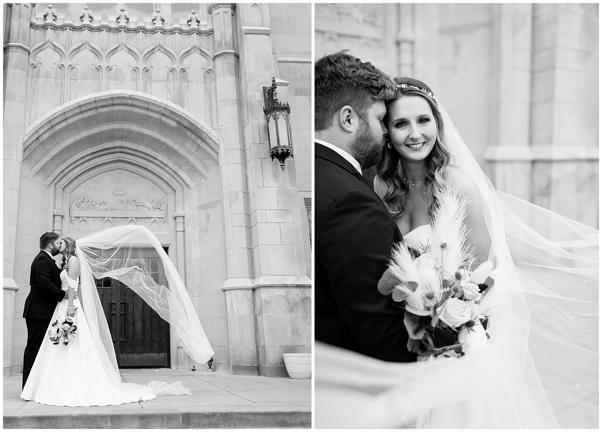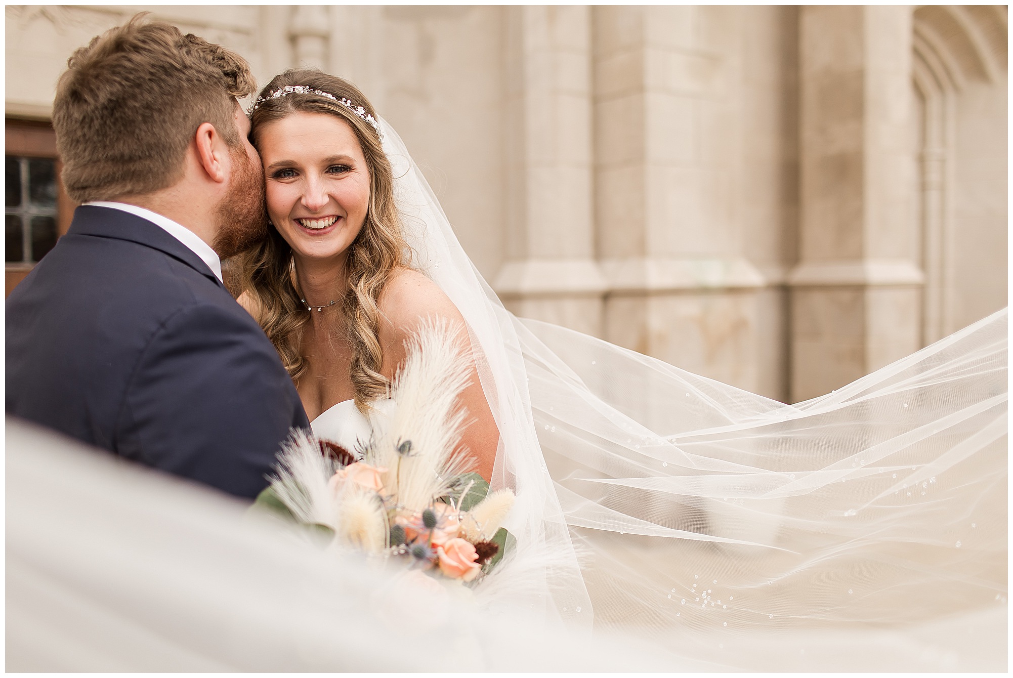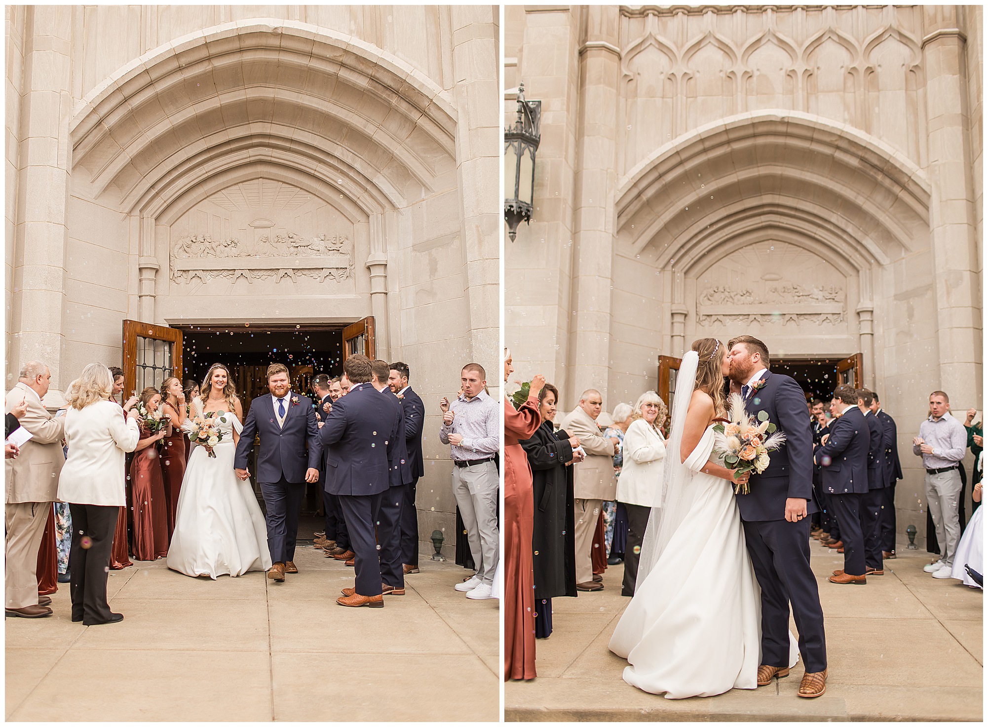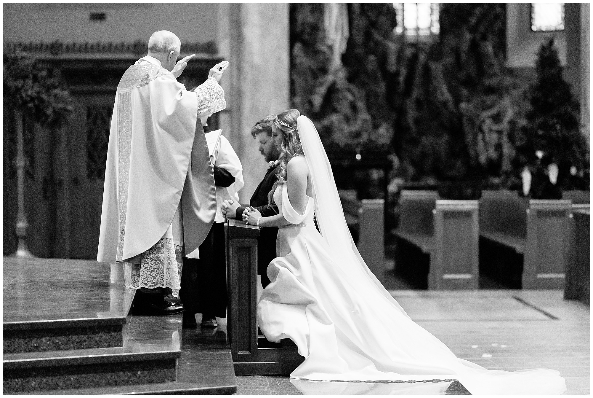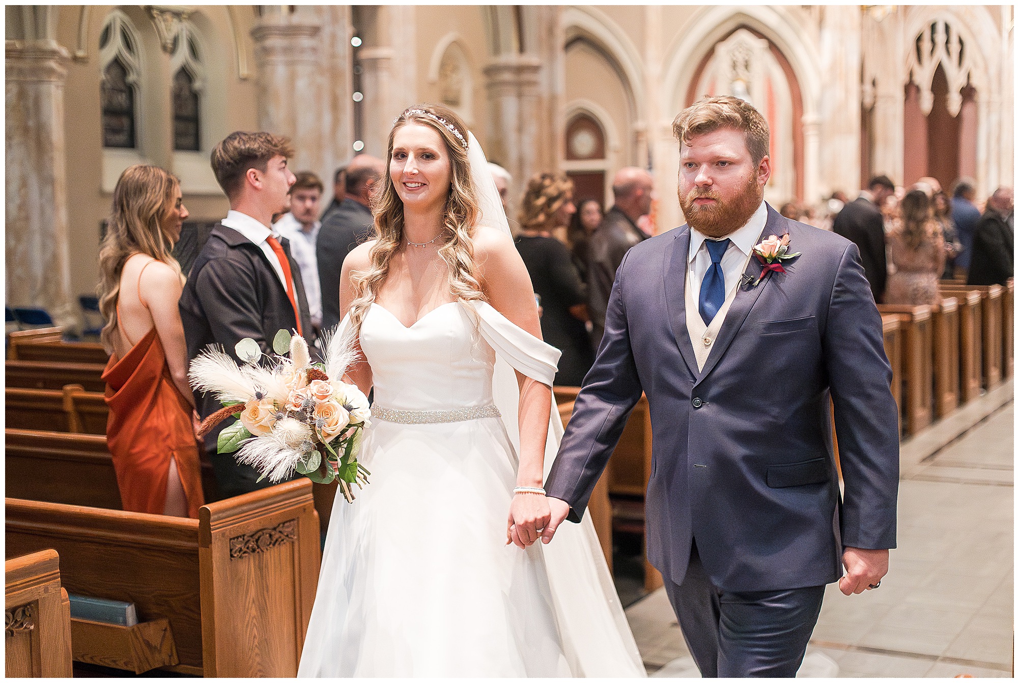 The nuptials themselves were actually being held off of The Rustic Venues property in Springfield at Blessed Sacrament Catholic Church. See, Scott and Mikalea were being married by Bishop Paprocki, who coached Scott in hockey as well as coached next to him once Scott graduated. Scott told me the Bishop remarked, “Since I had become Bishop, many people don’t ask me to celebrate the sacrament of marriage because they think I’m too busy. I mean I am busy, but I am still happy to be asked”. Blessed Sacrament is an impressive cathedral with amazing stained glass windows and a long dramatic aisle. Scott waited for Mikaela at the end of that aisle to make her way with her dad and fought back the tears as she neared. The couple listened to many lovely scripture readings, the Bishop sharing more about their relationship, they exchanged rings, and they promised forever with a kiss. They were officially pronounced Mr. & Mrs. Wheat!