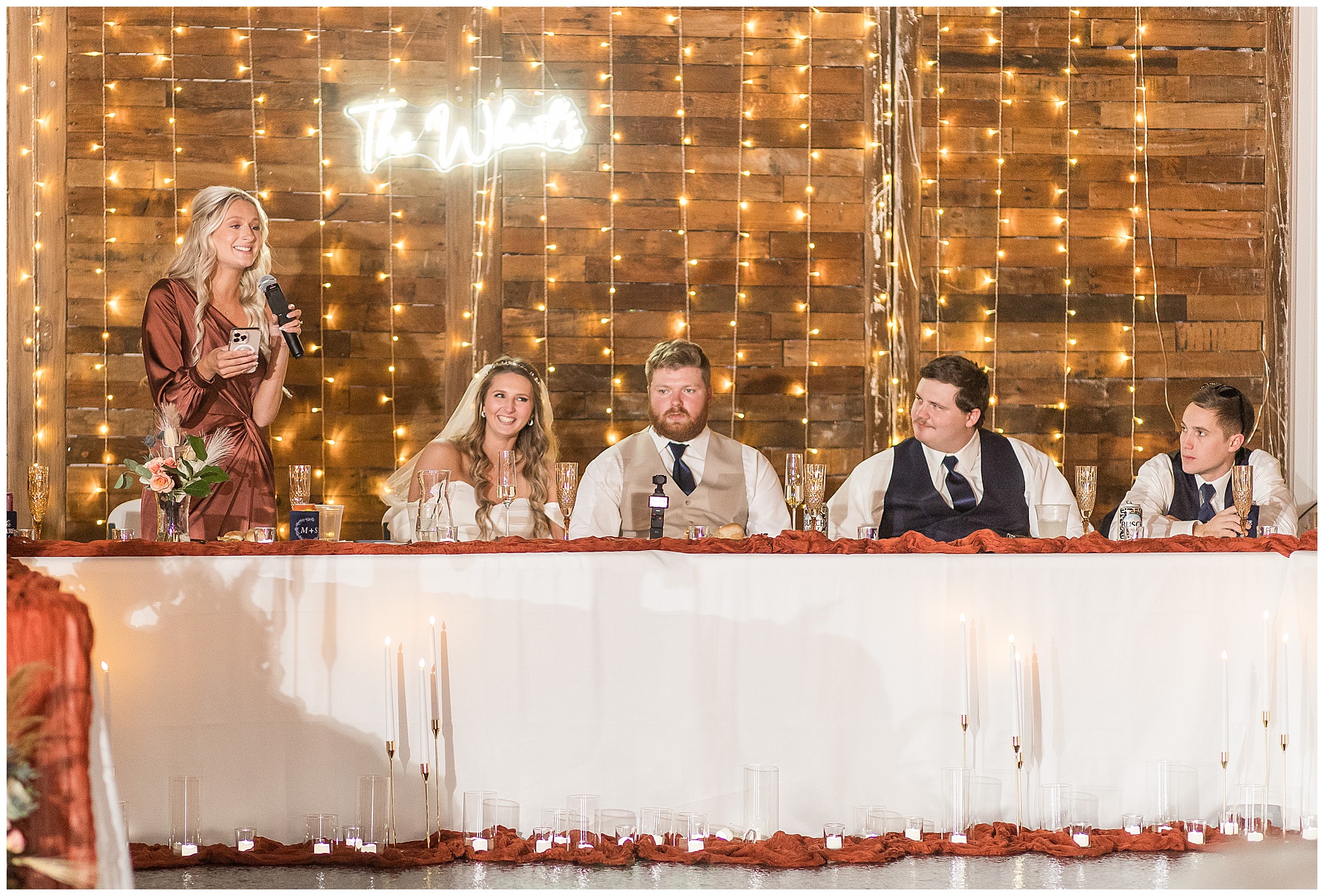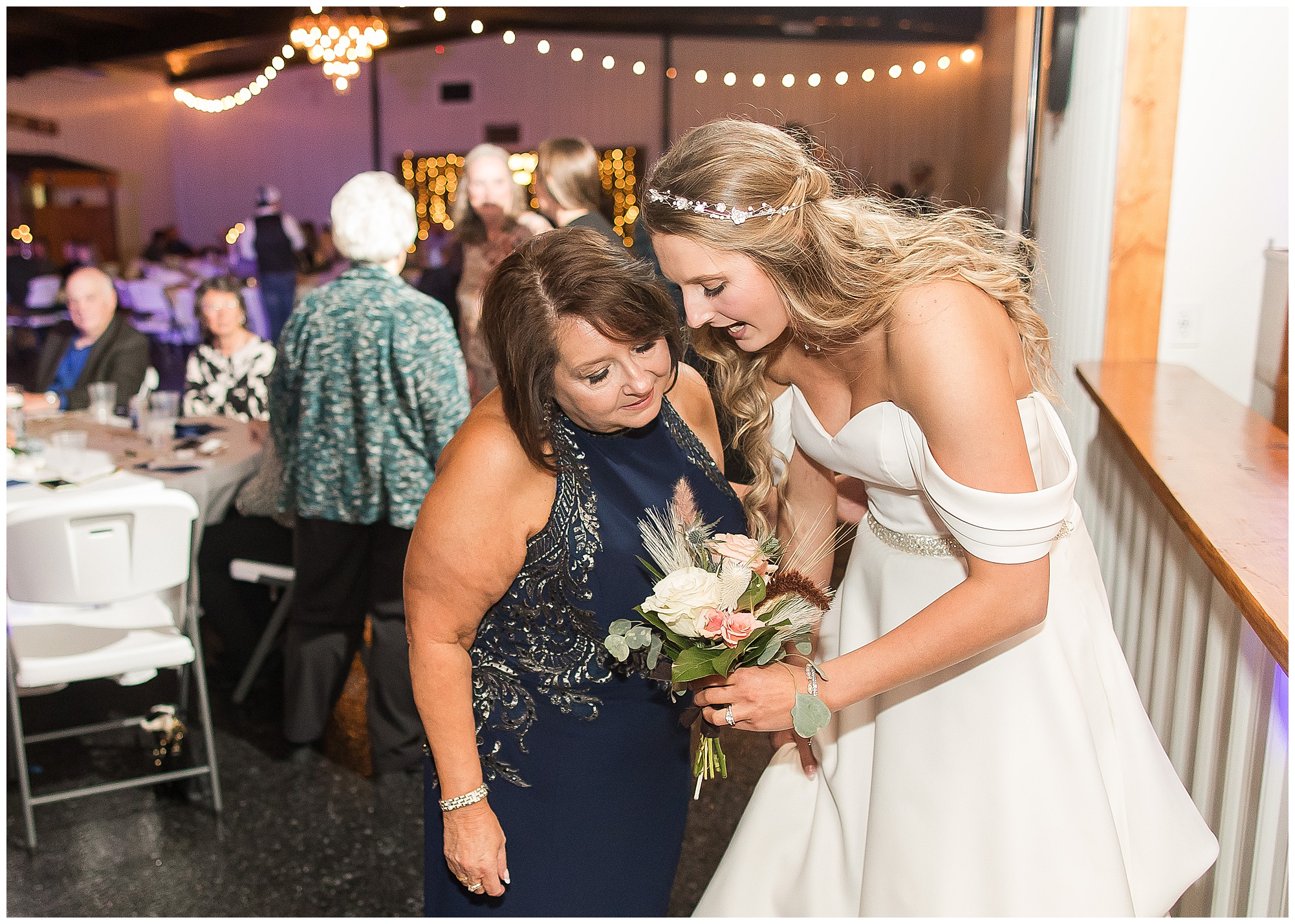Before we knew it, the reception was off and running! And boy, did Mikaela and Scott’s crew kick it off right! They entered in with some of the most unique entrances I’ve seen setting the bar high for a top notch party! Mikaela and Scott heard many lovely speeches in their honor, they cut their delicious cake, as well as locked together lockets in a private ceremony. The newlyweds shared their first dance followed by dances with Mikaela and her dad and Scott and his mom. Mikaela didn’t officially throw a bouquet, however she chose to give her mom a bouquet along with telling her how much she is grateful to her for all she has done for her in her life. It was a delightful and special moment shared by mother and daughter. Then it was time to get the party started!