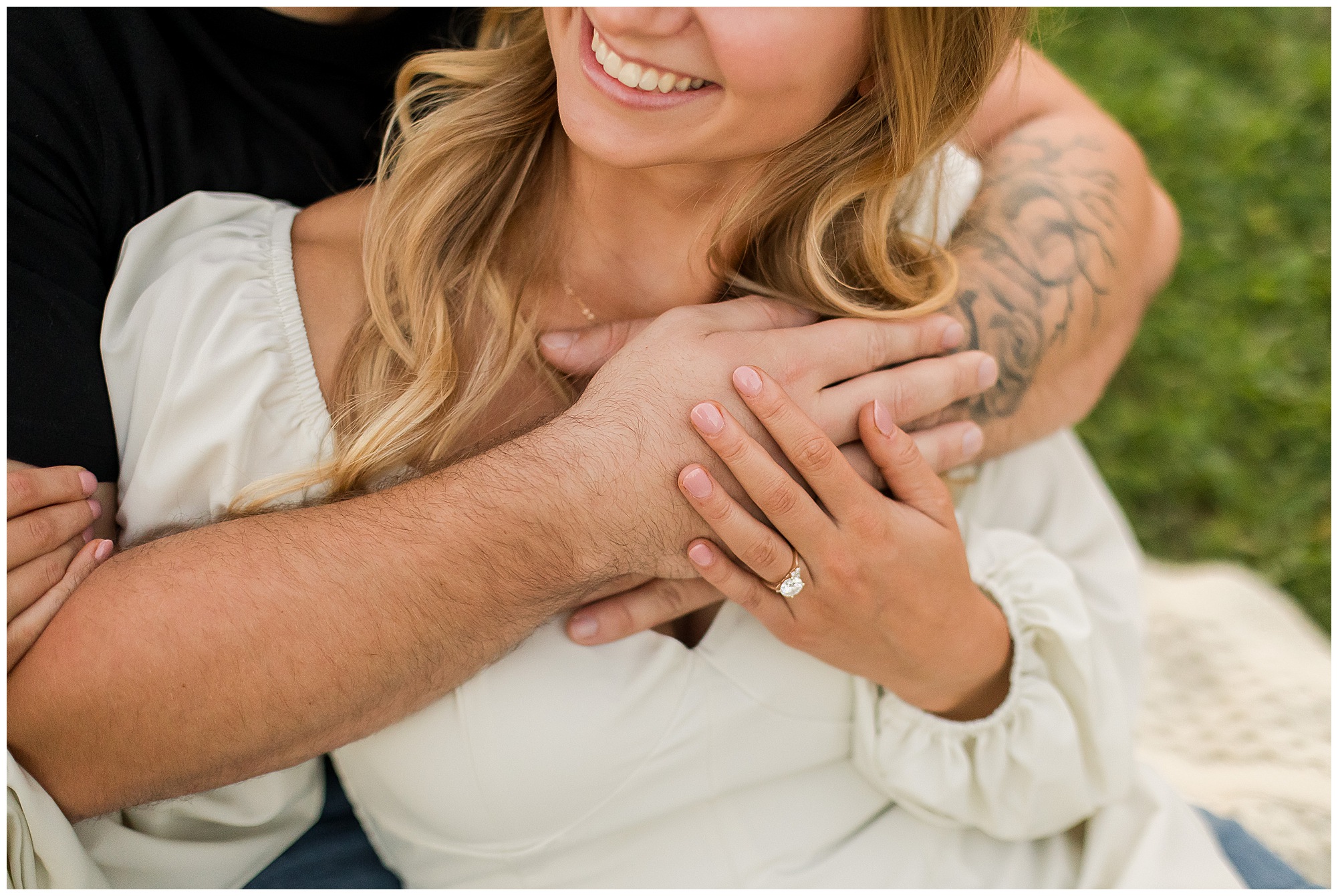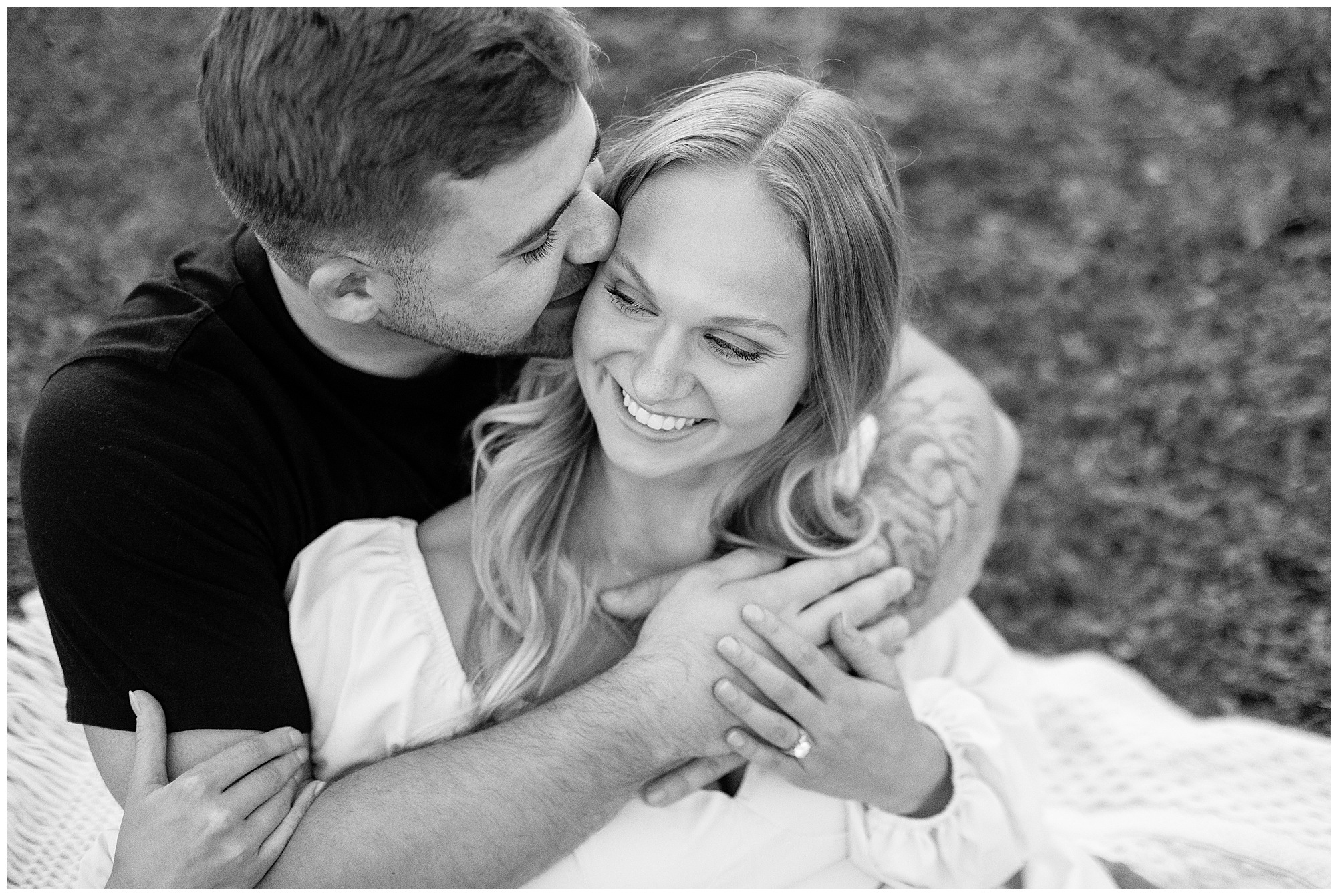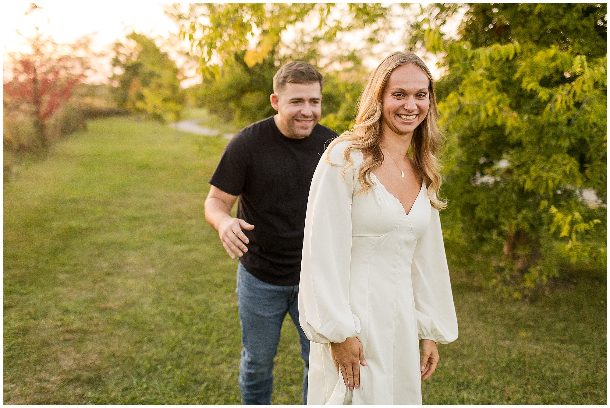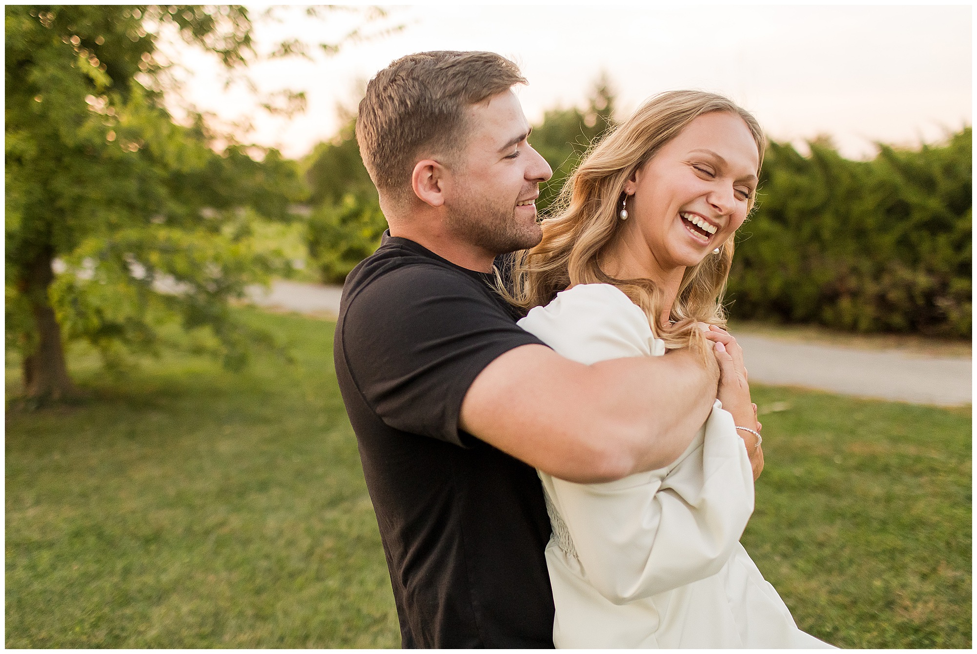The amount of laughter and fun that came out of Kamryn and Brock’s engagement session last fall was the one thing I’m definitely going to remember from our beautiful evening spent together. These two are from the St. Louis, Missouri area, where their wedding will be held this summer, but they decided to travel up to me in Springfield, Illinois for a change of scenery for their engagement session. We met up downtown outside of a local church, which has some amazing architectural features to begin their photos. Kamryn had said they were a little nervous, but I assured her I was there to give all the directions to make them feel comfortable in front of my camera. Within a few minutes, these two were giggling and laughing their way through their e-session with ease. Brock has a way of simply giving Kamryn a goofy smirk and she bursts into laughter creating some of my favorite photos from our time together!