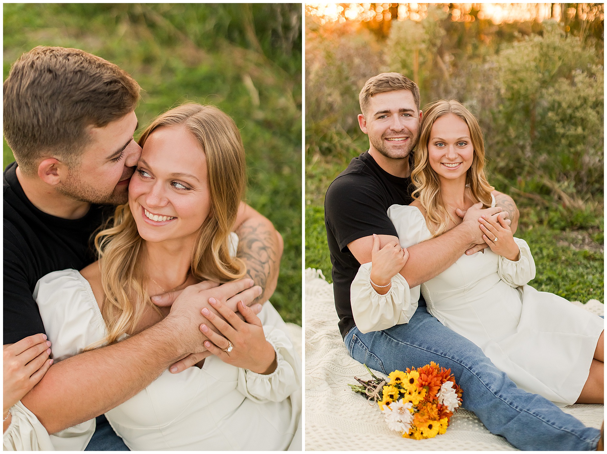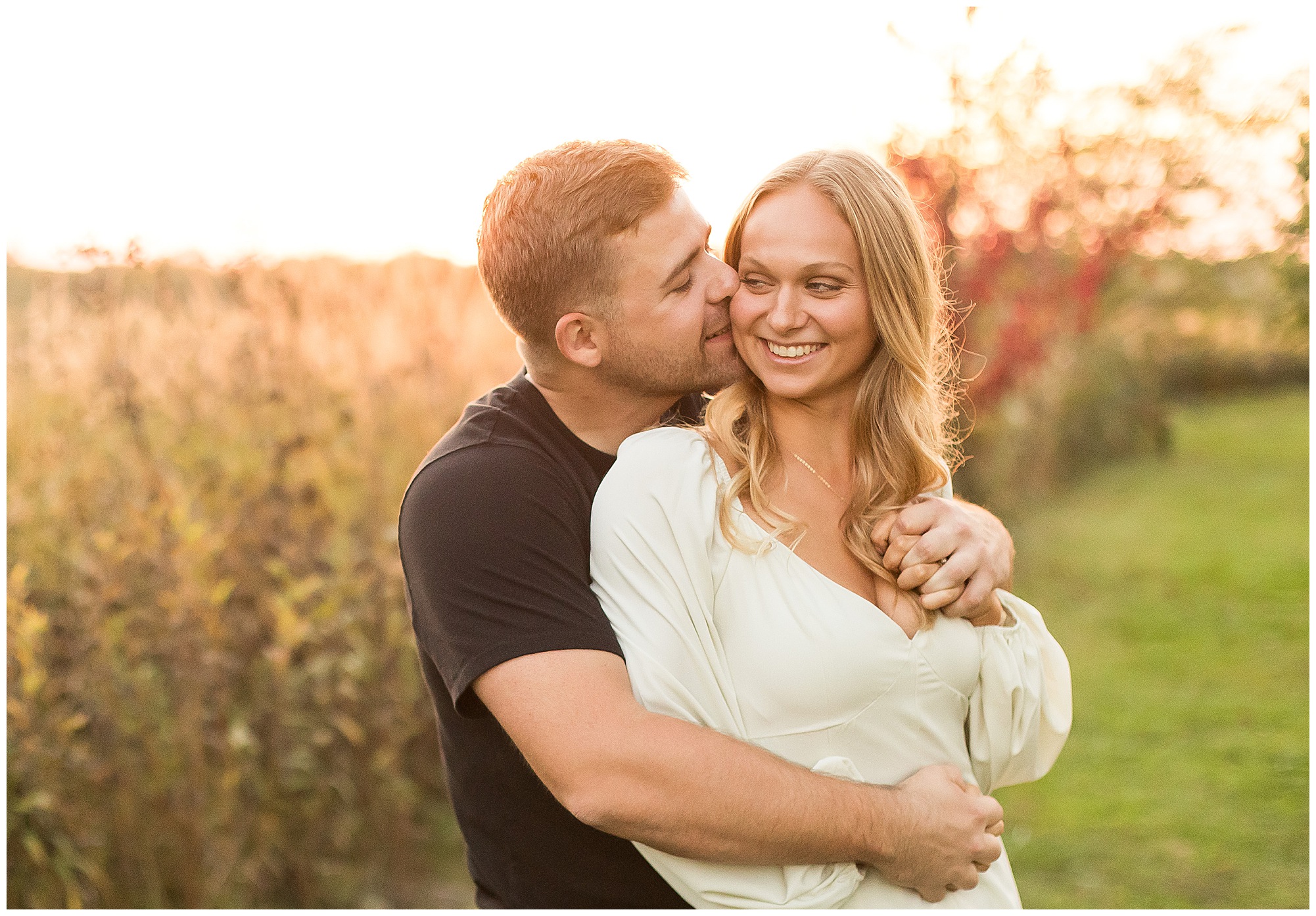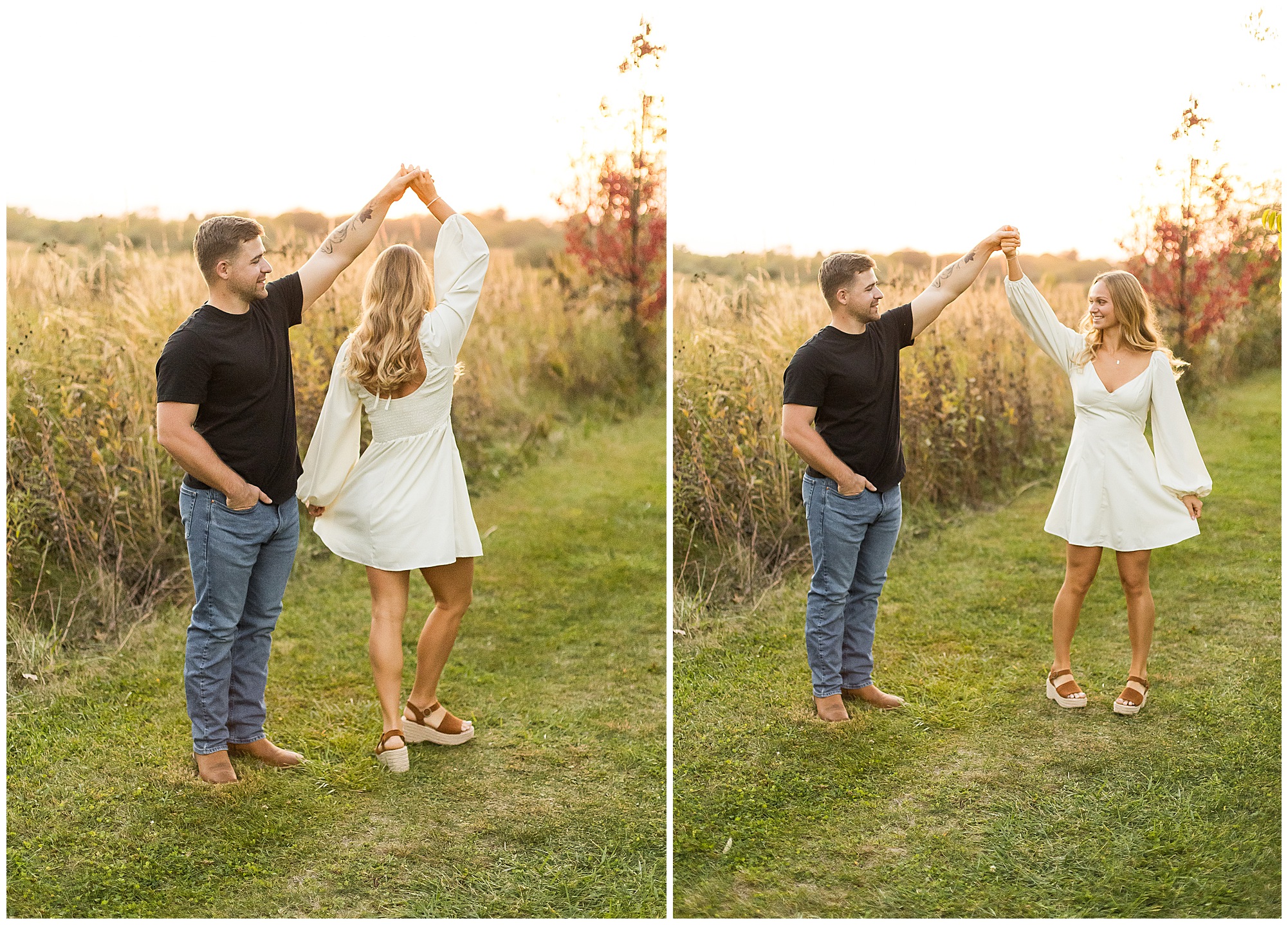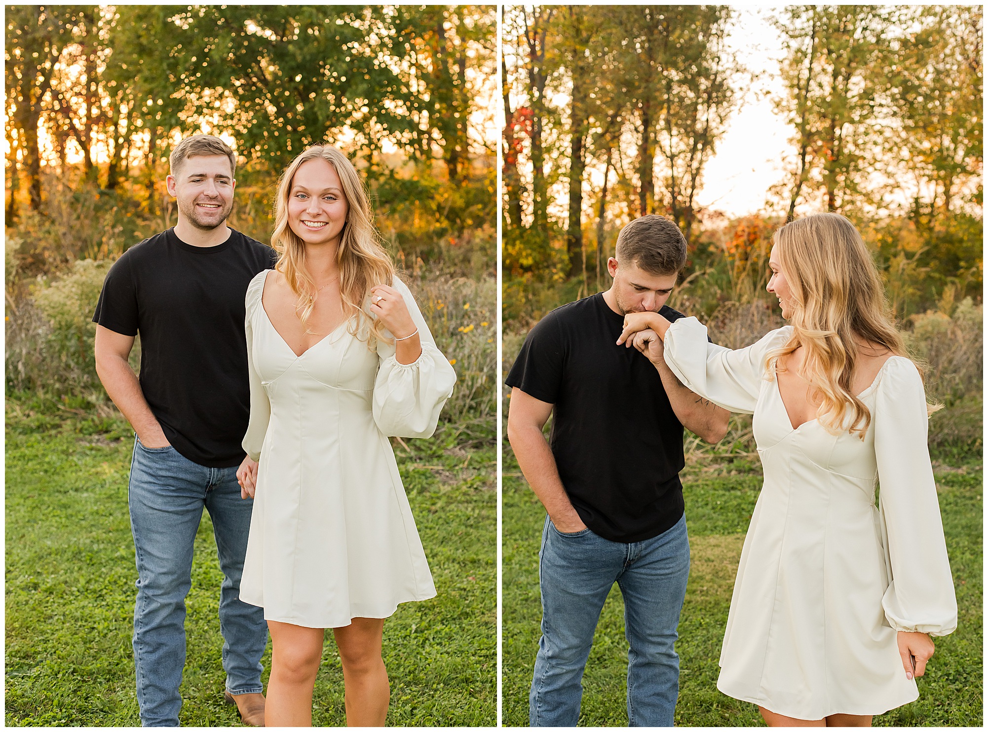After being downtown, we opted to head to a gorgeous spot where the fall sunset could highlight this duo perfectly. Kamryn brought an added prop with a bouquet of colorful autumn flowers, which gave an extra layer of “Pop” to their photos. I totally adore fresh flowers at a session! The joy and ease these two have in one another’s arms is obvious and I took advantage of their playfulness with lots of movement and even a few prompted “Sneak attacks” by Brock caused adorable moments captured of these two. Kamryn and Brock shared they have been practicing their dip, so of course I had to get them to show that off for me! I cannot wait to be a part of their amazing wedding day this year in the St. Louis area! If it’s anything like their engagement session, I know it will be a blast!