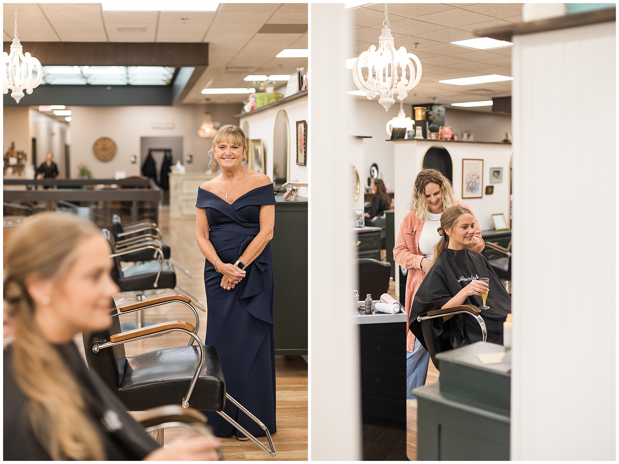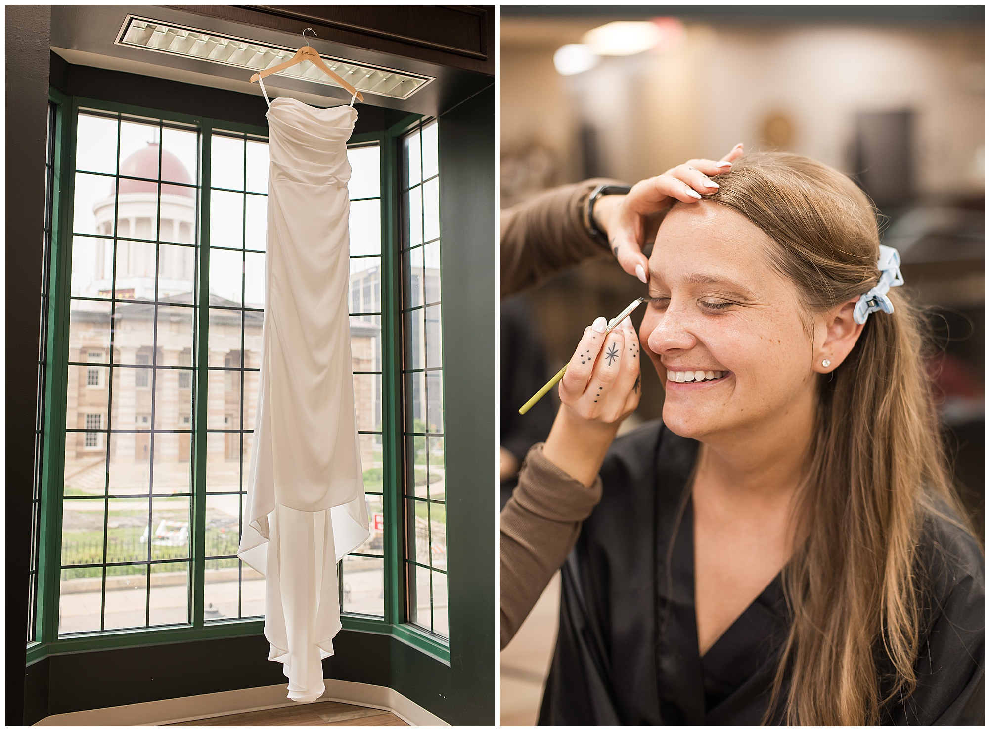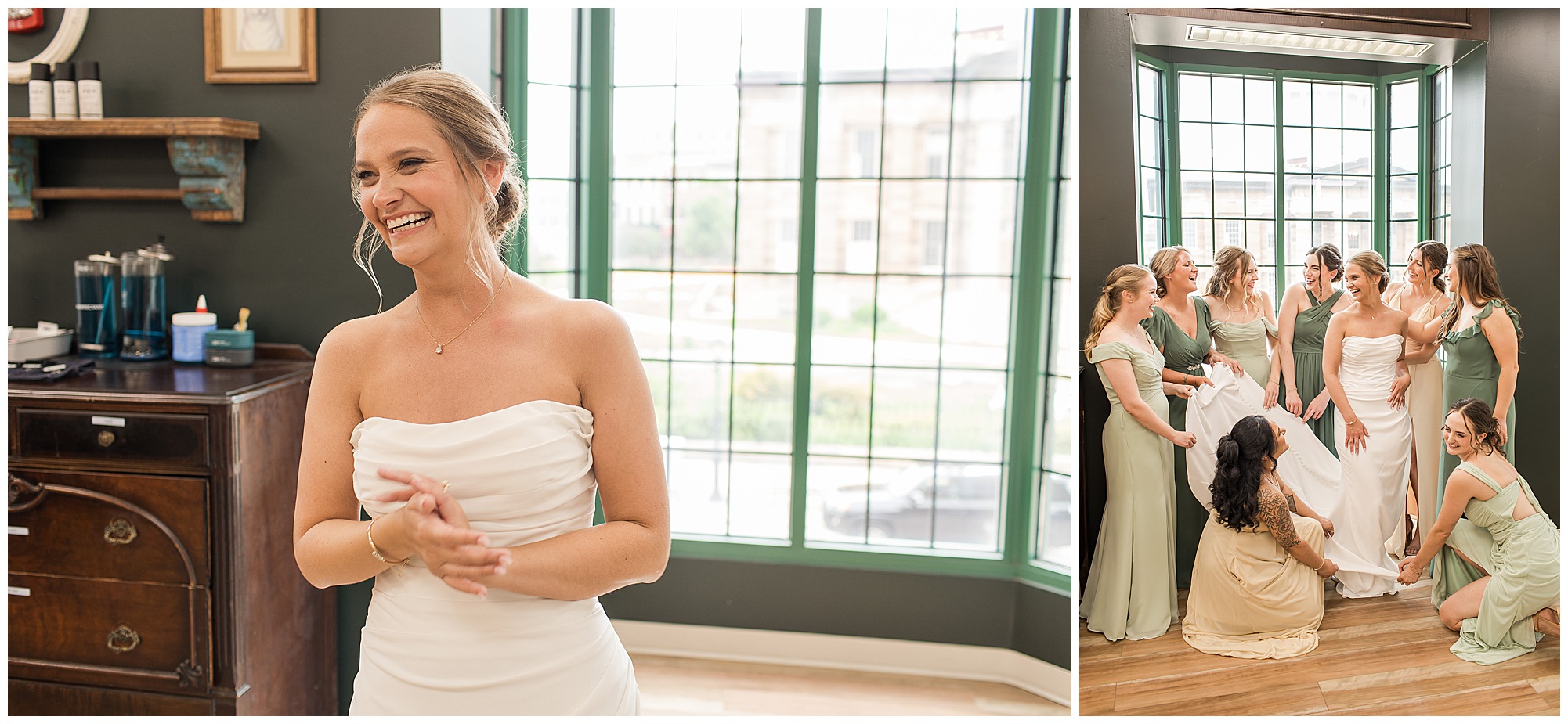 The joyfulness and exuberance I felt immediately from bride, Katie on her wedding morning was nothing short of electric! She was smiling from ear to ear and surrounded by all of her favorite ladies at Willow & Birch Salon in Downtown Springfield, Illinois, where they were prepping with hair and makeup ahead of her and fiancé, Scott’s nuptials at Panther Creek Country Club. The anticipation I had going into Katie and Scott’s big day was immense. Their engagement session had been a blast and I had no doubt their wedding day was going to encompass some of the same easy-going, lively, and deeply seeded love this couple shares with one another. And believe me, it certainly did not disappoint!