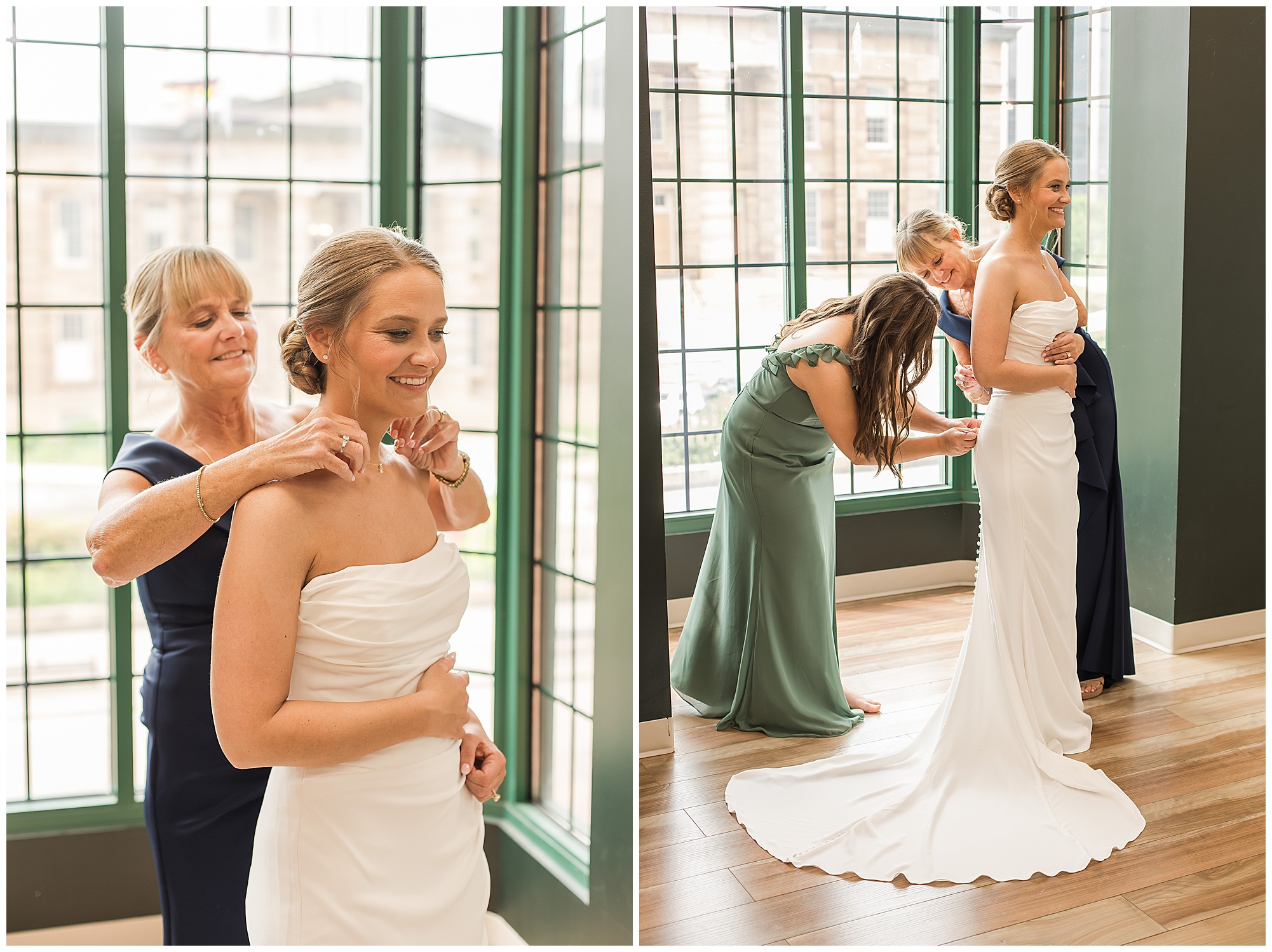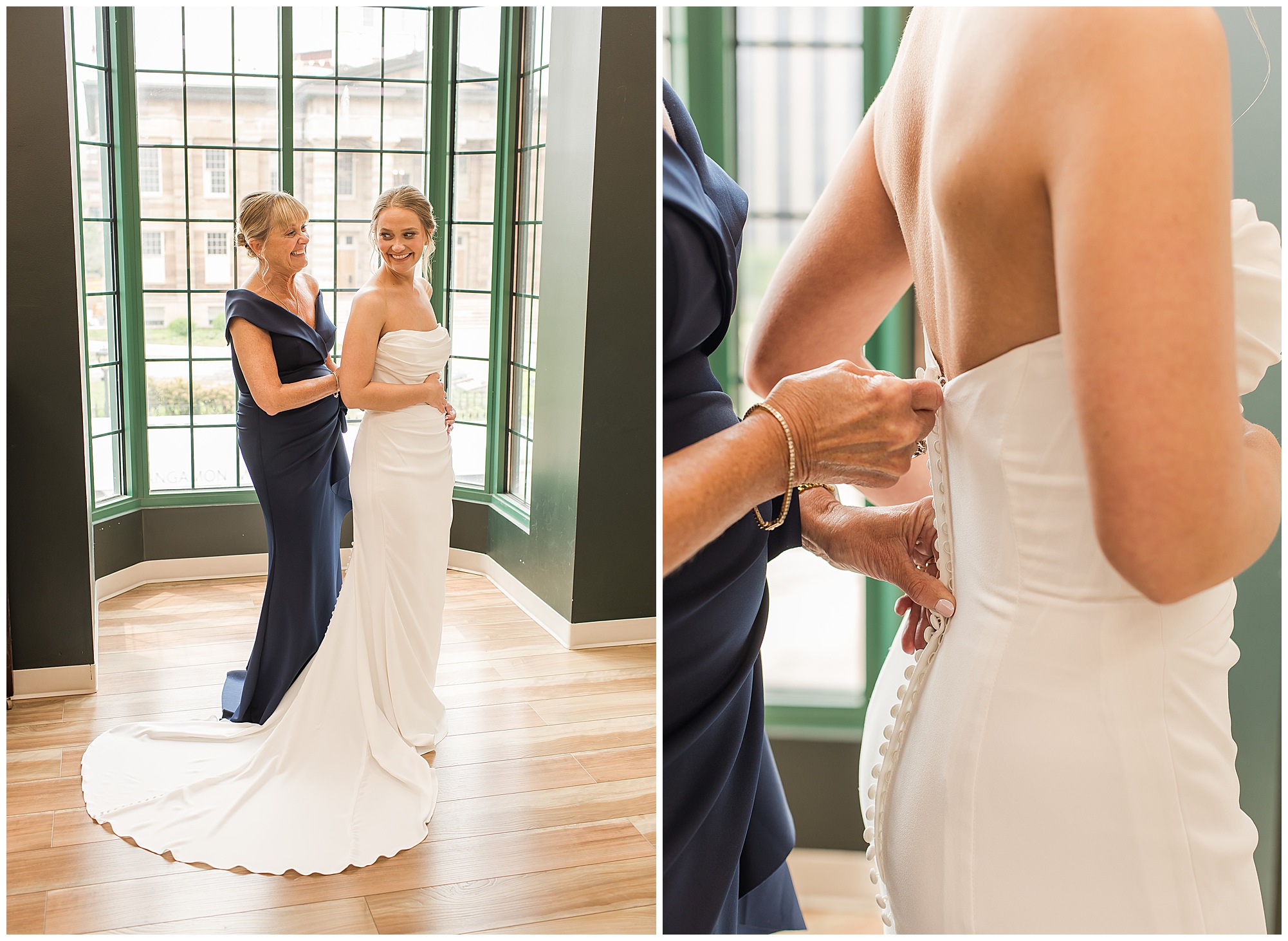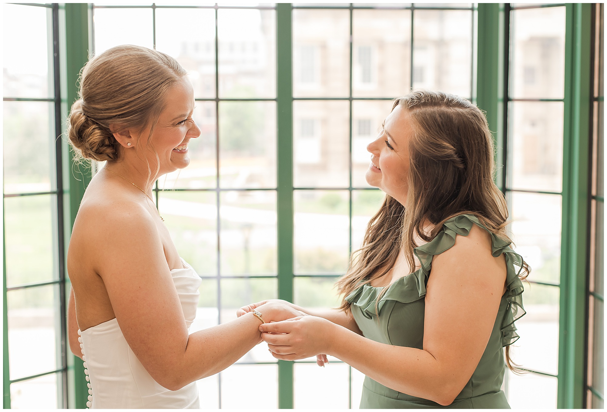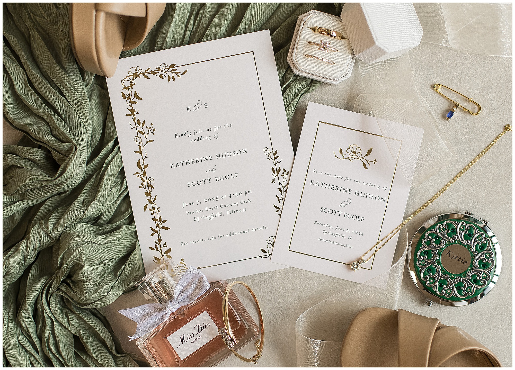 The joyfulness and exuberance I felt immediately from bride, Katie on her wedding morning was nothing short of electric! She was smiling from ear to ear and surrounded by all of her favorite ladies at Willow & Birch Salon in Downtown Springfield, Illinois, where they were prepping with hair and makeup ahead of her and fiancé, Scott’s nuptials at Panther Creek Country Club. The anticipation I had going into Katie and Scott’s big day was immense. Their engagement session had been a blast and I had no doubt their wedding day was going to encompass some of the same easy-going, lively, and deeply seeded love this couple shares with one another. And believe me, it certainly did not disappoint!