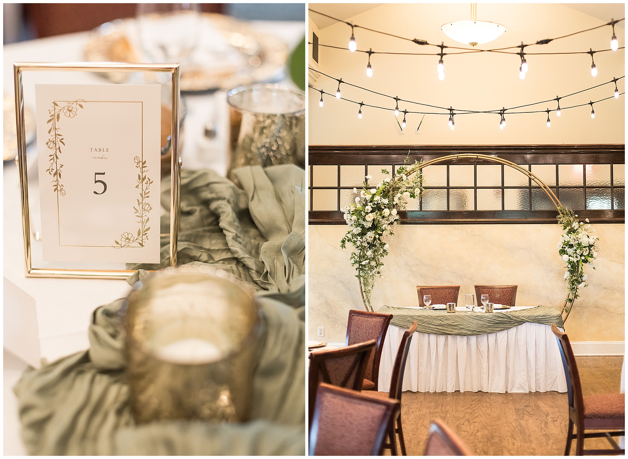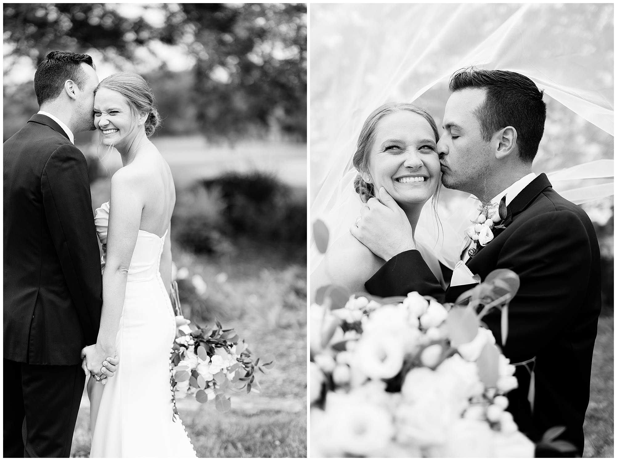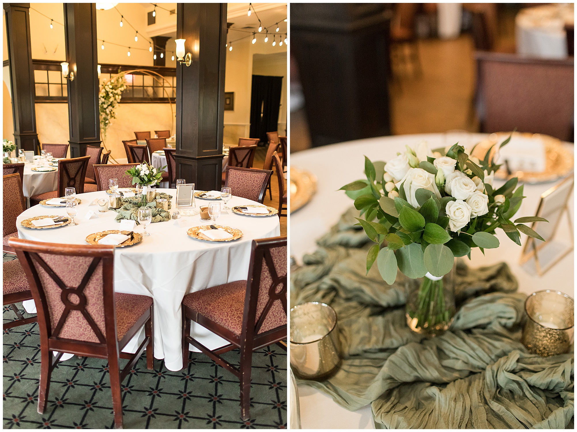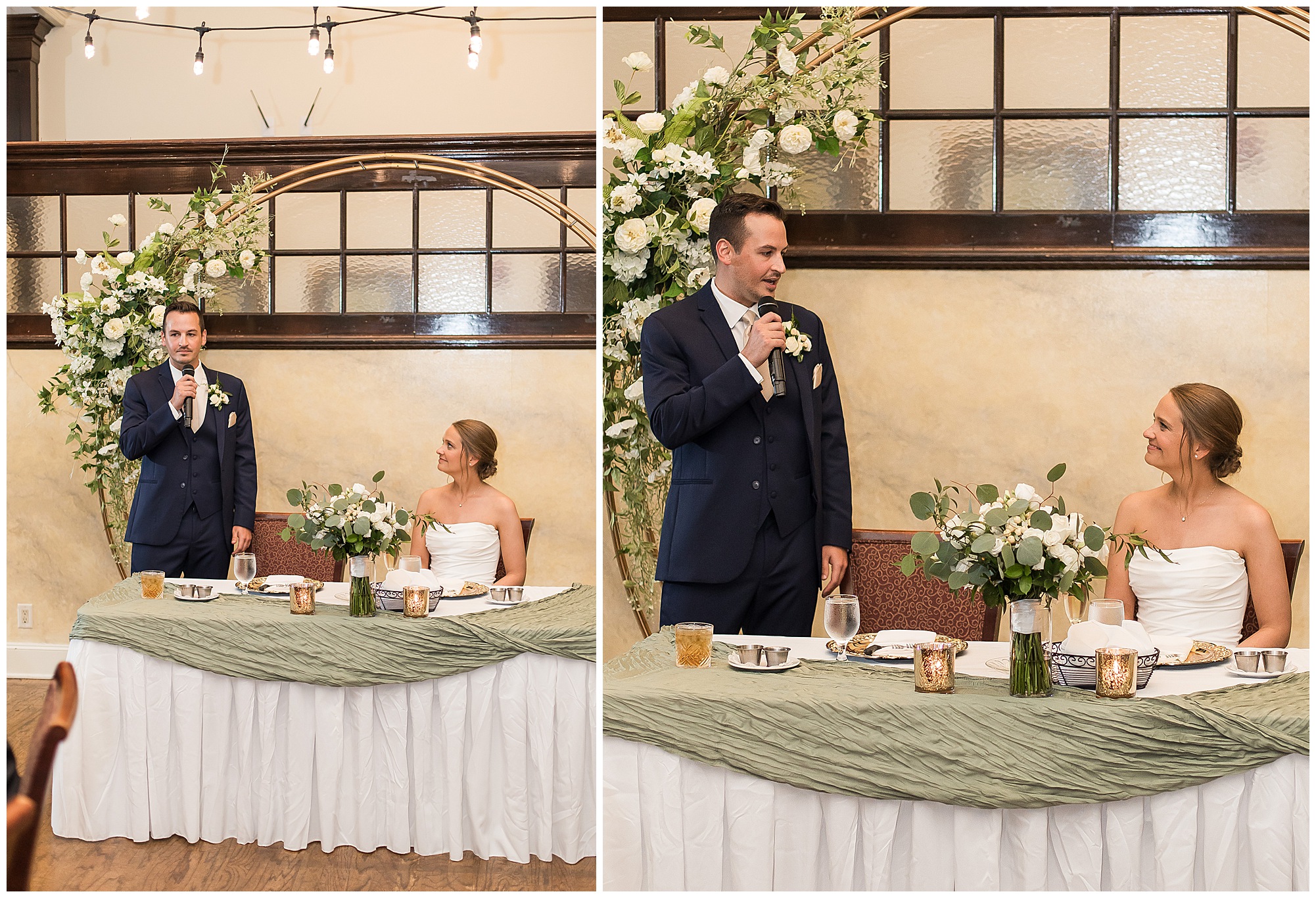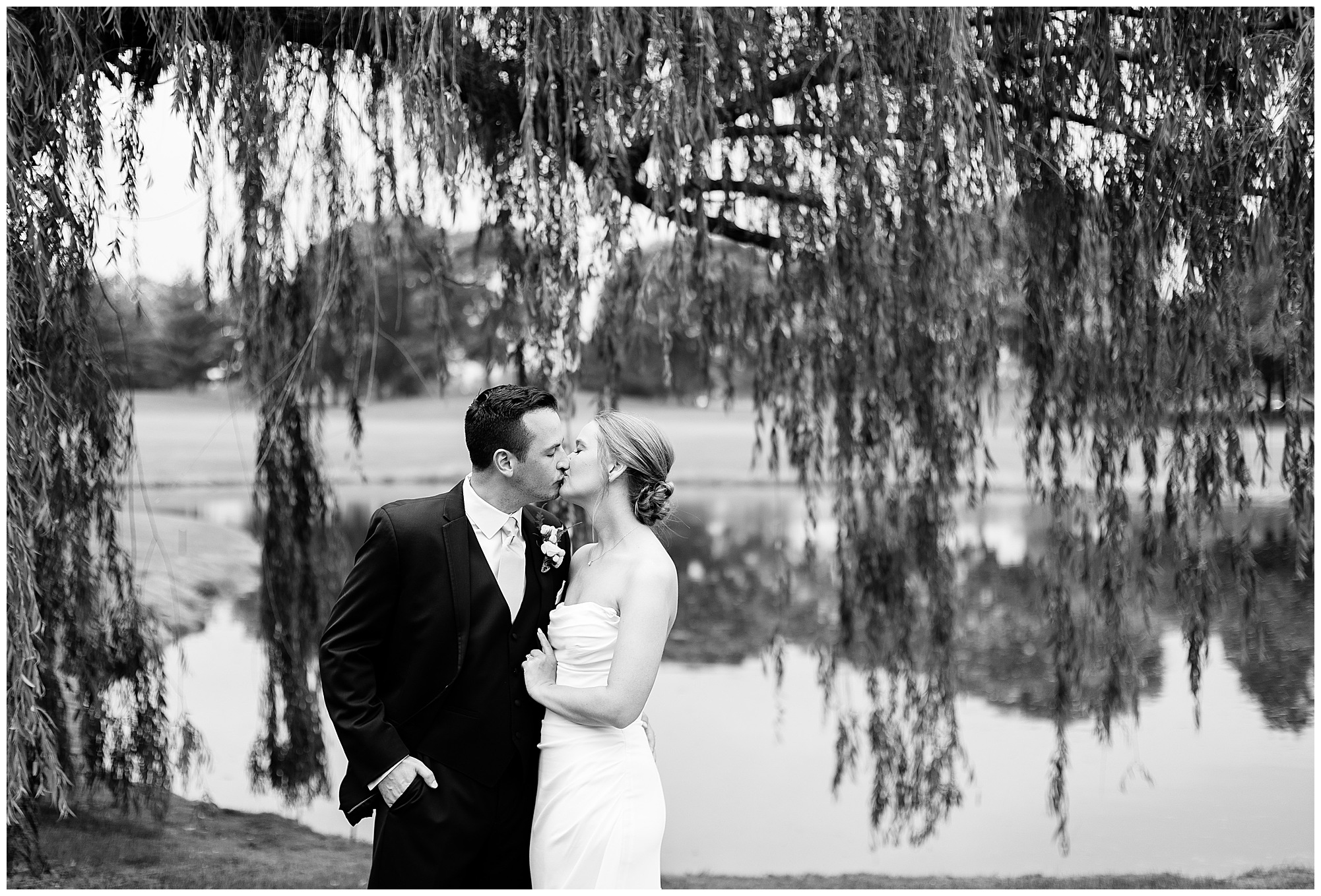 Leading up to the ceremony time, everyone’s eyes were on the radar. The ceremony was originally planned to be outside overlooking the golf course. However, with a few sprinkles and the radar showing that right around Katie and Scott’s “I Do’s” there could be rain, this couple had a hard decision to make. Yet, Katie’s brother, David asked them, “Which decision felt better…Getting married outside like you planned the entire time? Or inside in the basement? And how would you feel if after all this worry about rain…It didn’t rain at all?” After posing those questions to them in that light…It seemed like an easier decision to the duo and they decided to go for it and have their ceremony outside. Just as it was time for Katie to walk down the aisle, the few sprinkles that were falling…let up. The setting was elegant and exactly right for Katie and Scott as they shared their vows, exchanged rings, and sealed it with a kiss. Introducing Mr. & Mrs. Egolf! Then within seconds of the newlyweds walking back up the aisle together as husband and wife…The sky opened up and the rain began to pour! So it held off just for them!