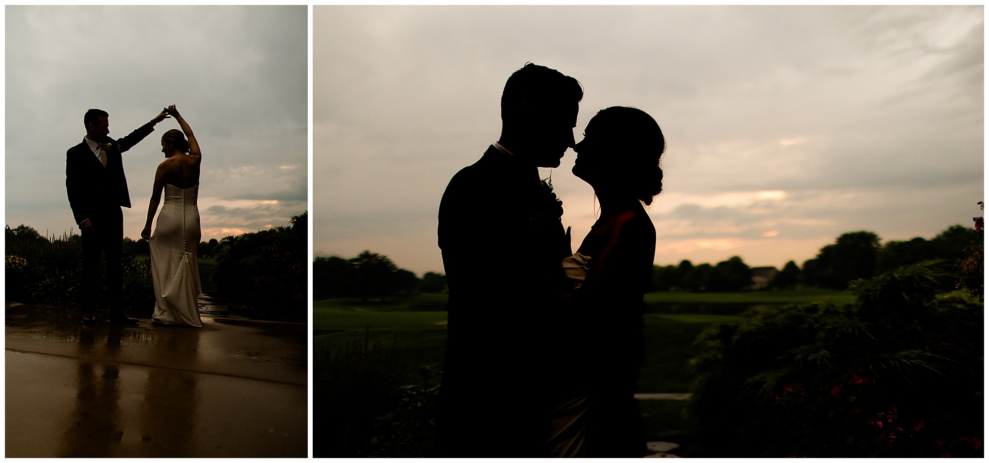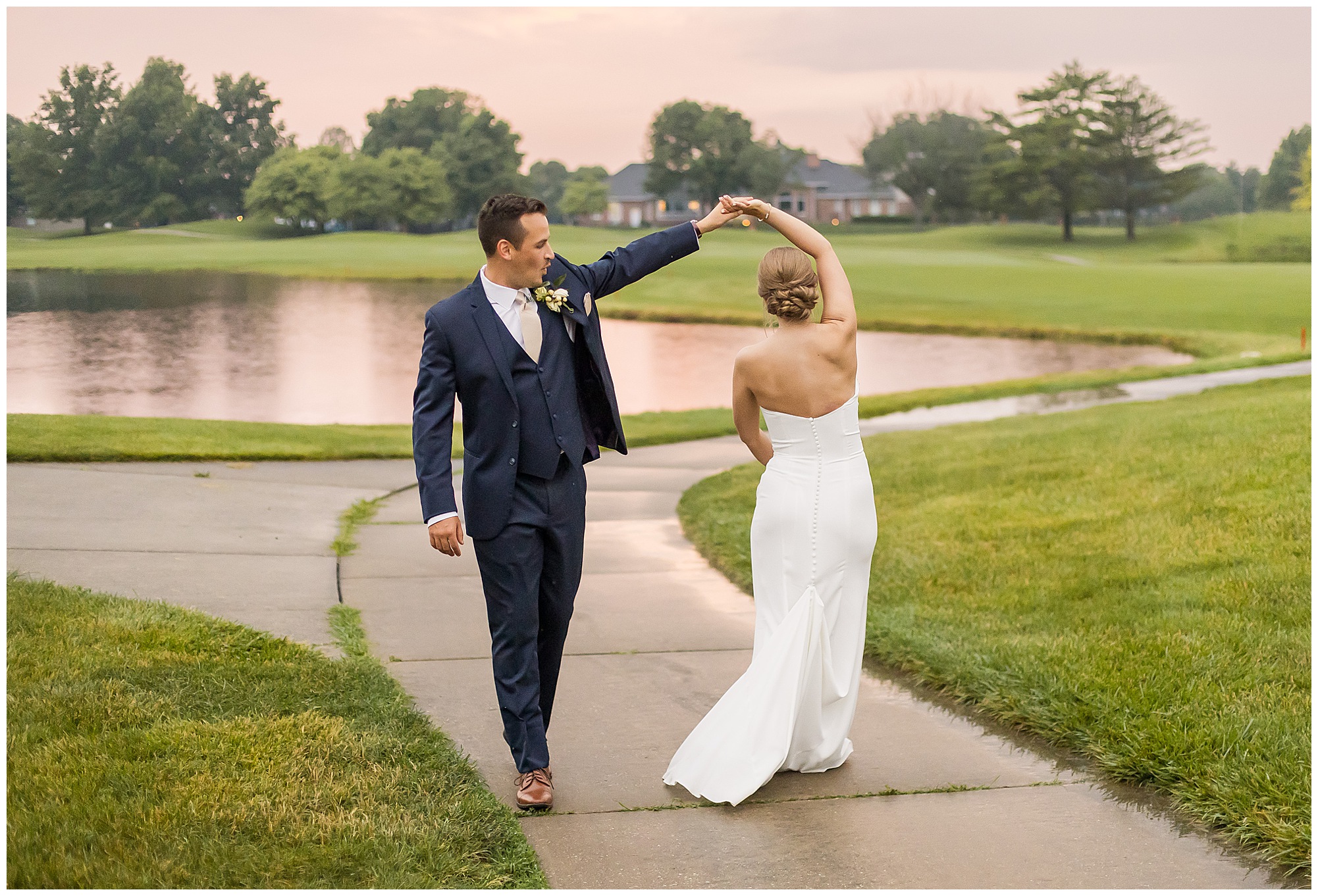 We finished up a few family photos before the couple was announced into their reception. Katie and Scott had mentioned to me they wanted to keep their reception events short and sweet and be able to simply enjoy mingling with their guests throughout the evening. Scott thanked their loved ones who attended and both Katie and Scott’s dads stood and gave a toast and prayer to the couple. That was the extent of their planned events, which they were super happy about! After a delicious dinner, I noticed a little pop of the sun peaking through the clouds. I went to go find Katie and Scott and see if they were game to go outside and see if we could make any type of “sunset photos” work. Thank goodness for their trust and not thinking I was crazy. We took out a cute umbrella to start for the little drizzle was falling and honestly I thought that was the best it was going to get. Boy was a wrong! The rain totally stopped within a few minutes and a glorious pink sky started popping out! Katie and Scott were down for just about anything I could come up with and we had such a great time! Katie has this incredible laugh that everybody who loves her knows and she just makes you feel happy. And Scott brings that laugh out a LOT! Hearing these two having the best time regardless of rain on their wedding day is the reason I love my career! These newlyweds understand their wedding day is just a day. Was Katie and Scott’s day incredible? Absolutely without a doubt! Were there a few hiccups? 100%! But did they face them together and come out holding hands and laughing about it in the end! Yes, they did! And that is what marriage is all about, friends! Cheers to a long and happy marriage to Mr. & Mrs. Egolf!