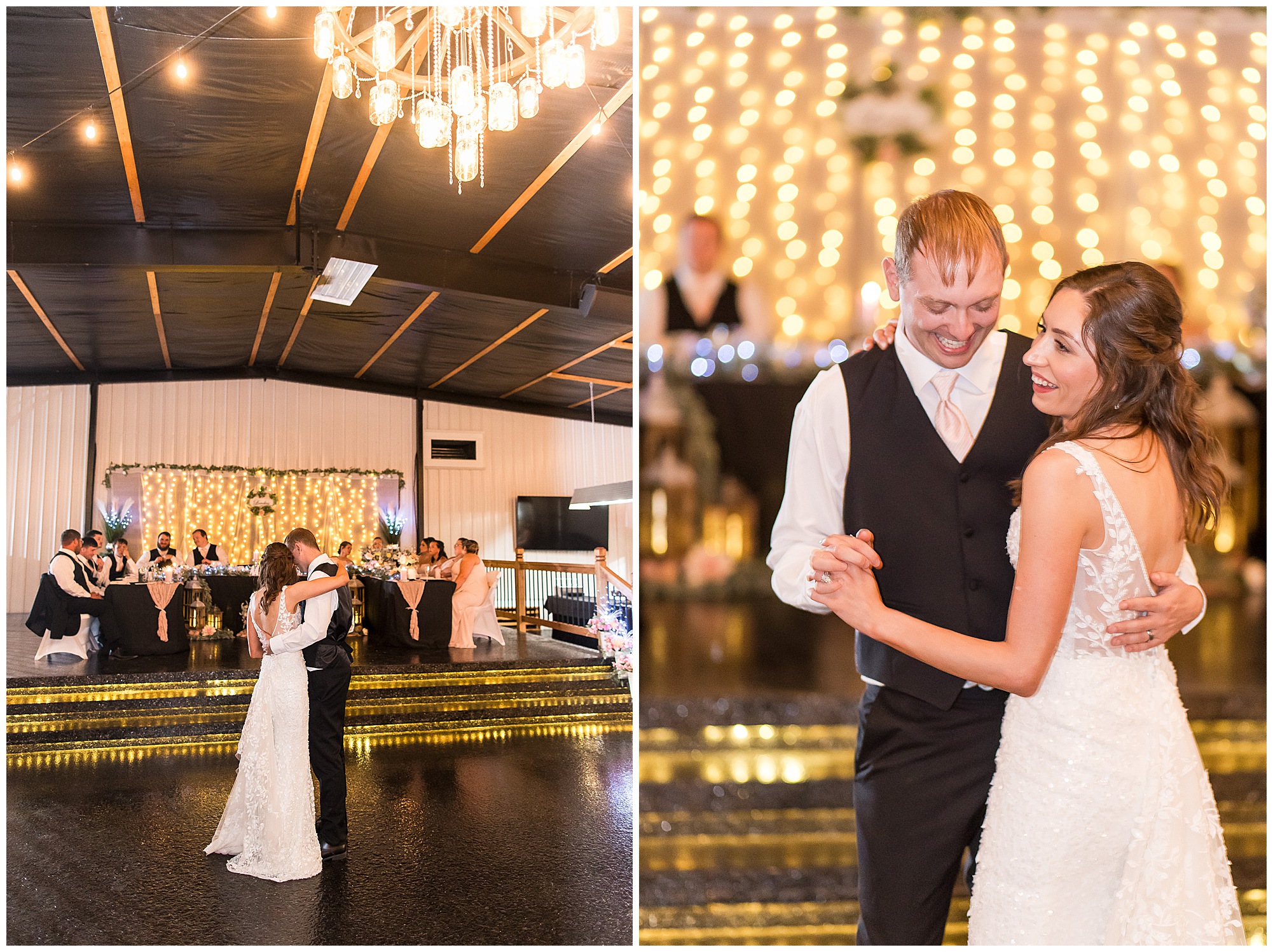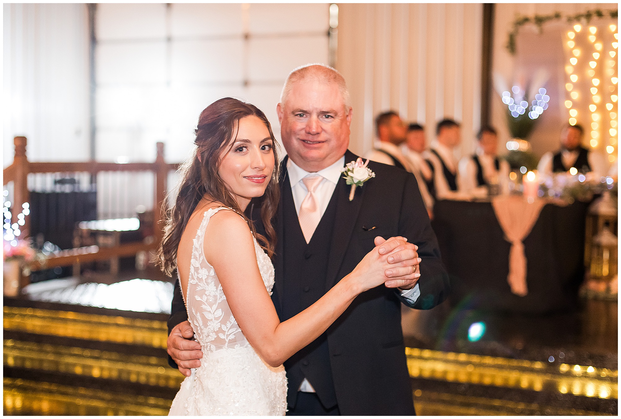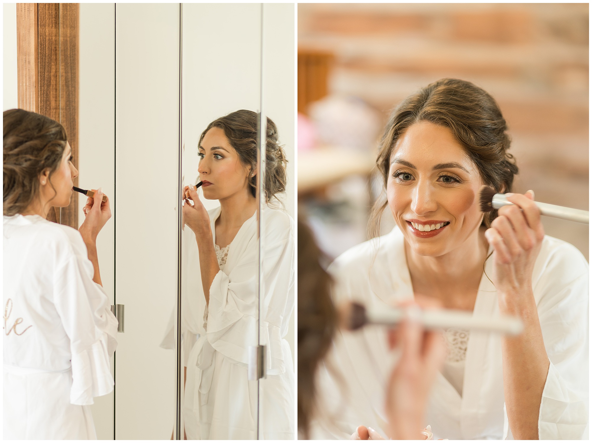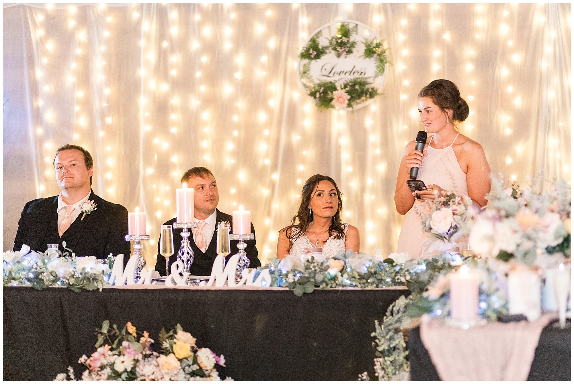 The ceremony took place inside the barn, which was such a sweet and cozy setting. When Kevin saw Nicole for the first time, it was one of those moments that gives you goosebumps—the look on his face said everything. Nicole looked absolutely stunning, and the barn’s white wood tones, old church pews for guests to be seated, and soft twinkle lights added to the magic of it all. After the ceremony, we jumped into bridal party photos, and let me tell you—we had a blast! The venue has added so many fun little spots lately, which gave us tons to play with. Whether it was a tree swings, the vintage wagon, or just a pretty corner with great light, we found photo ops everywhere. And Nicole and Kevin’s bridal party came to have fun!