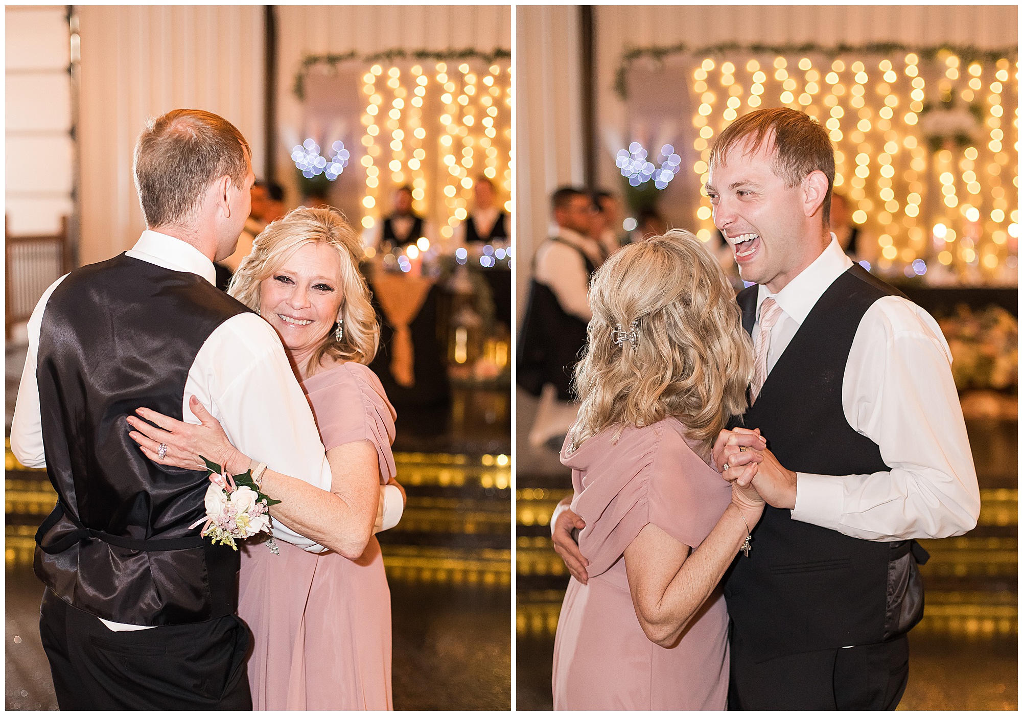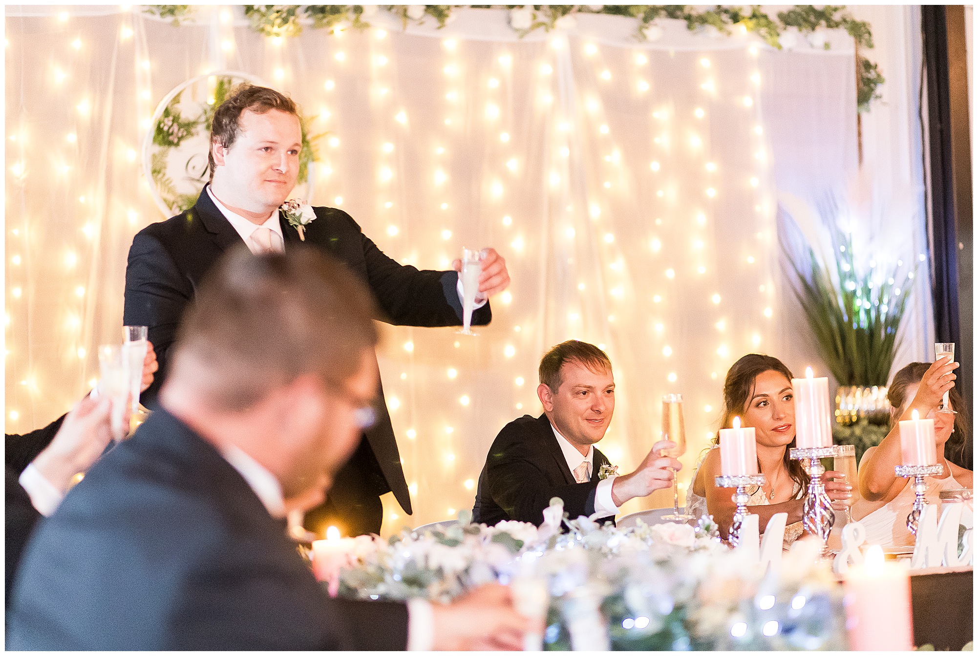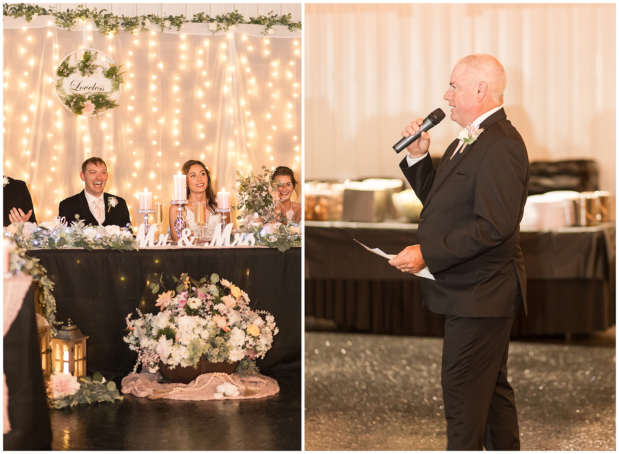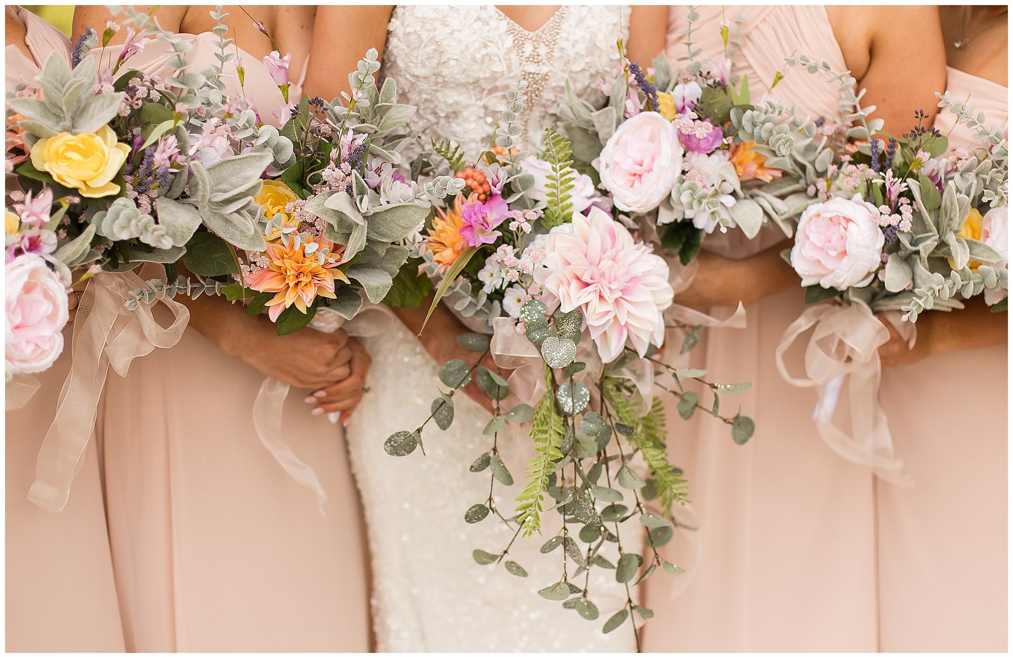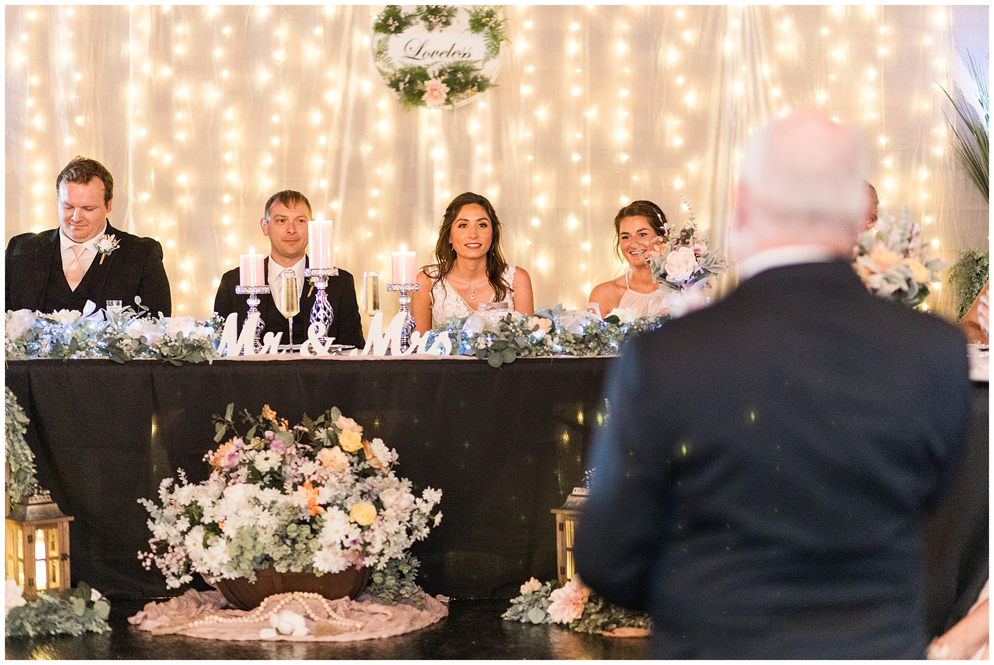 The ceremony took place inside the barn, which was such a sweet and cozy setting. When Kevin saw Nicole for the first time, it was one of those moments that gives you goosebumps—the look on his face said everything. Nicole looked absolutely stunning, and the barn’s white wood tones, old church pews for guests to be seated, and soft twinkle lights added to the magic of it all. After the ceremony, we jumped into bridal party photos, and let me tell you—we had a blast! The venue has added so many fun little spots lately, which gave us tons to play with. Whether it was a tree swings, the vintage wagon, or just a pretty corner with great light, we found photo ops everywhere. And Nicole and Kevin’s bridal party came to have fun!