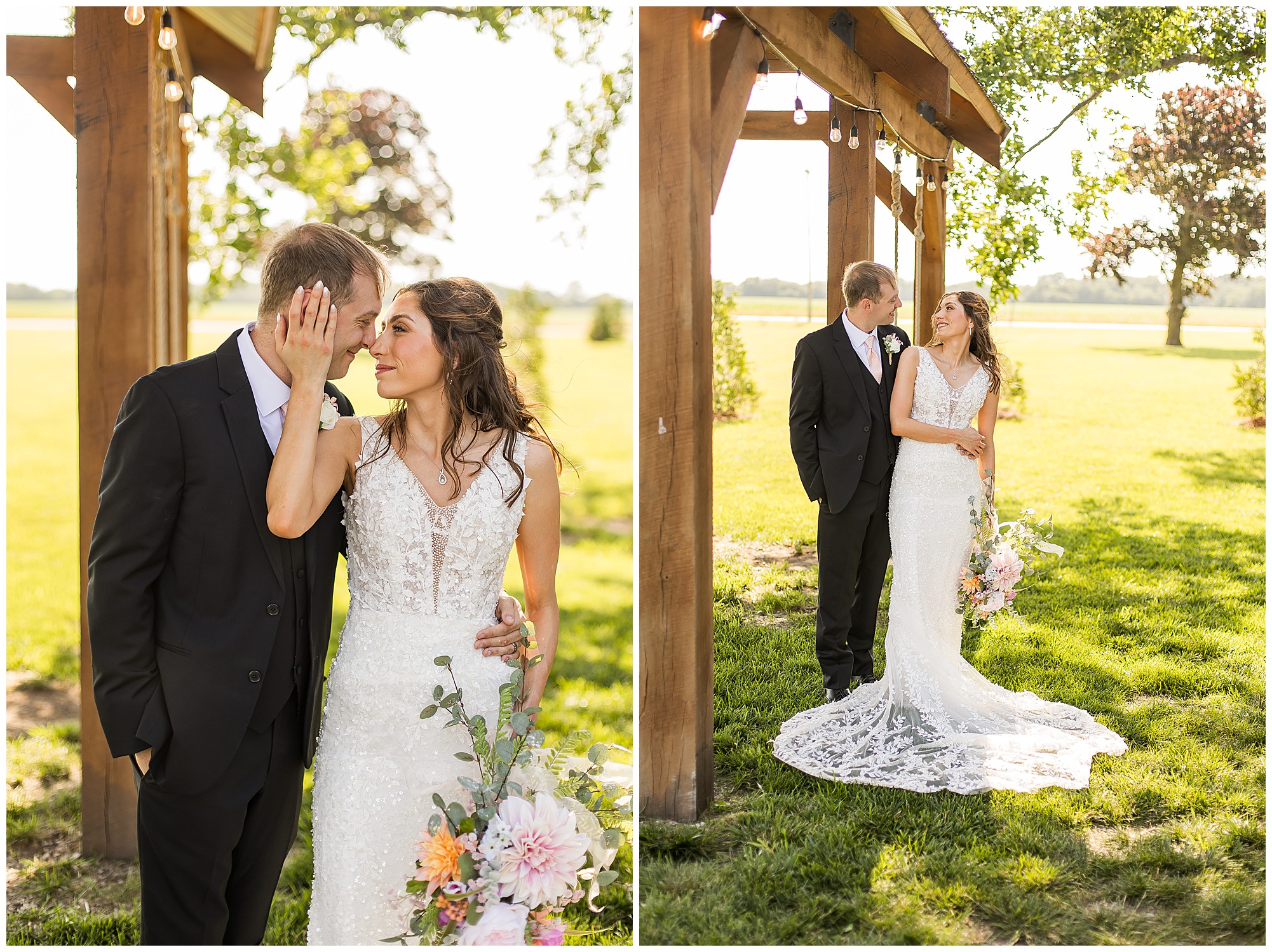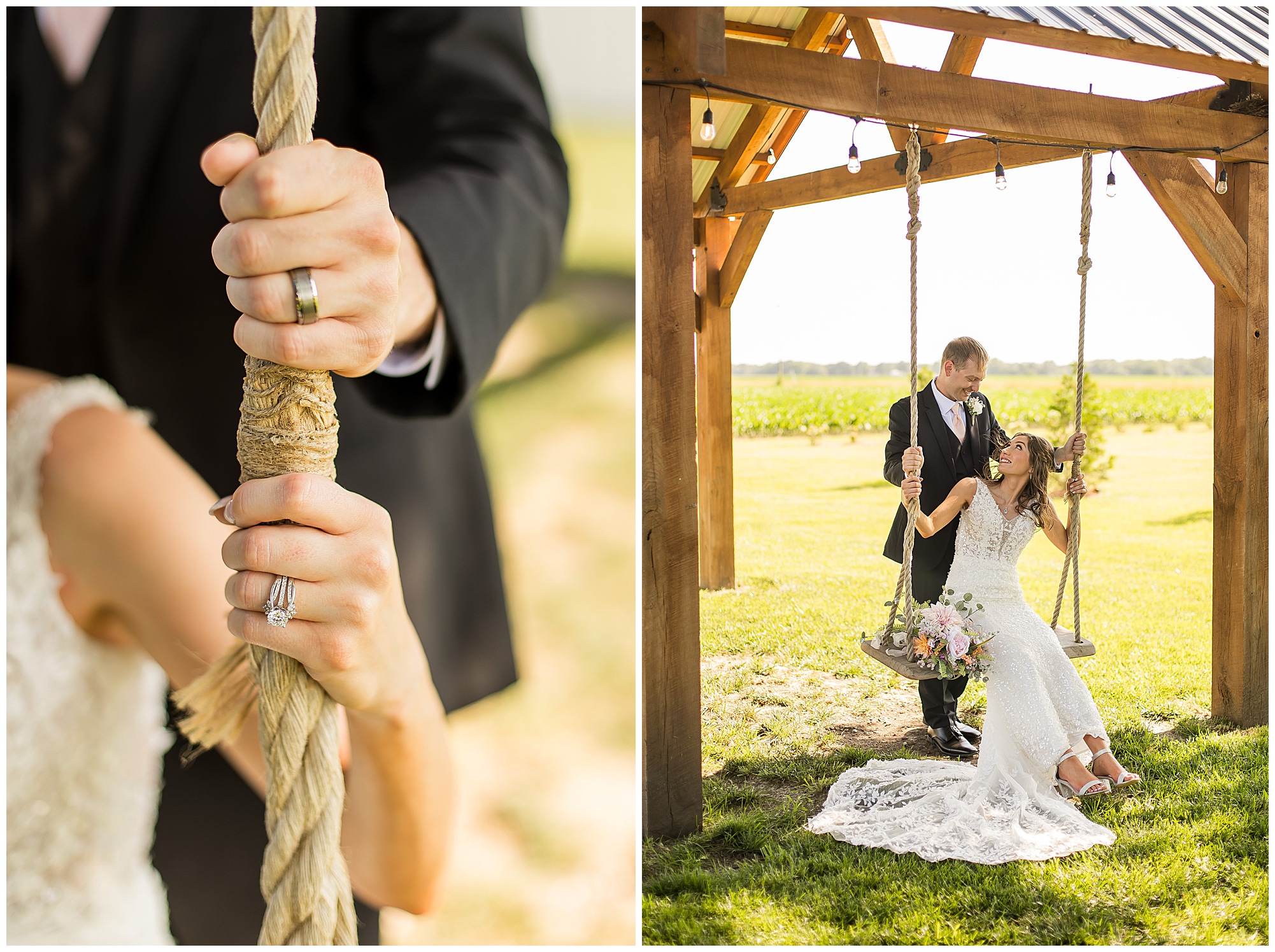 Nicole and Kevin’s wedding day was one of those dreamy, sunshine-soaked summer days that felt like it was made for a celebration. I arrived at The Rustic Venues in Girard, Illinois, and the whole property was buzzing with excitement for these two teachers to tie the knot. The sun was blazing (hello, mid-June!), but the energy was high, and the smiles were everywhere. This venue is such a charming mix of rustic and romantic—wide open corn & bean fields, pretty little garden areas, and a barn that just begs to be photographed. It made the perfect backdrop for all the magic about to unfold.