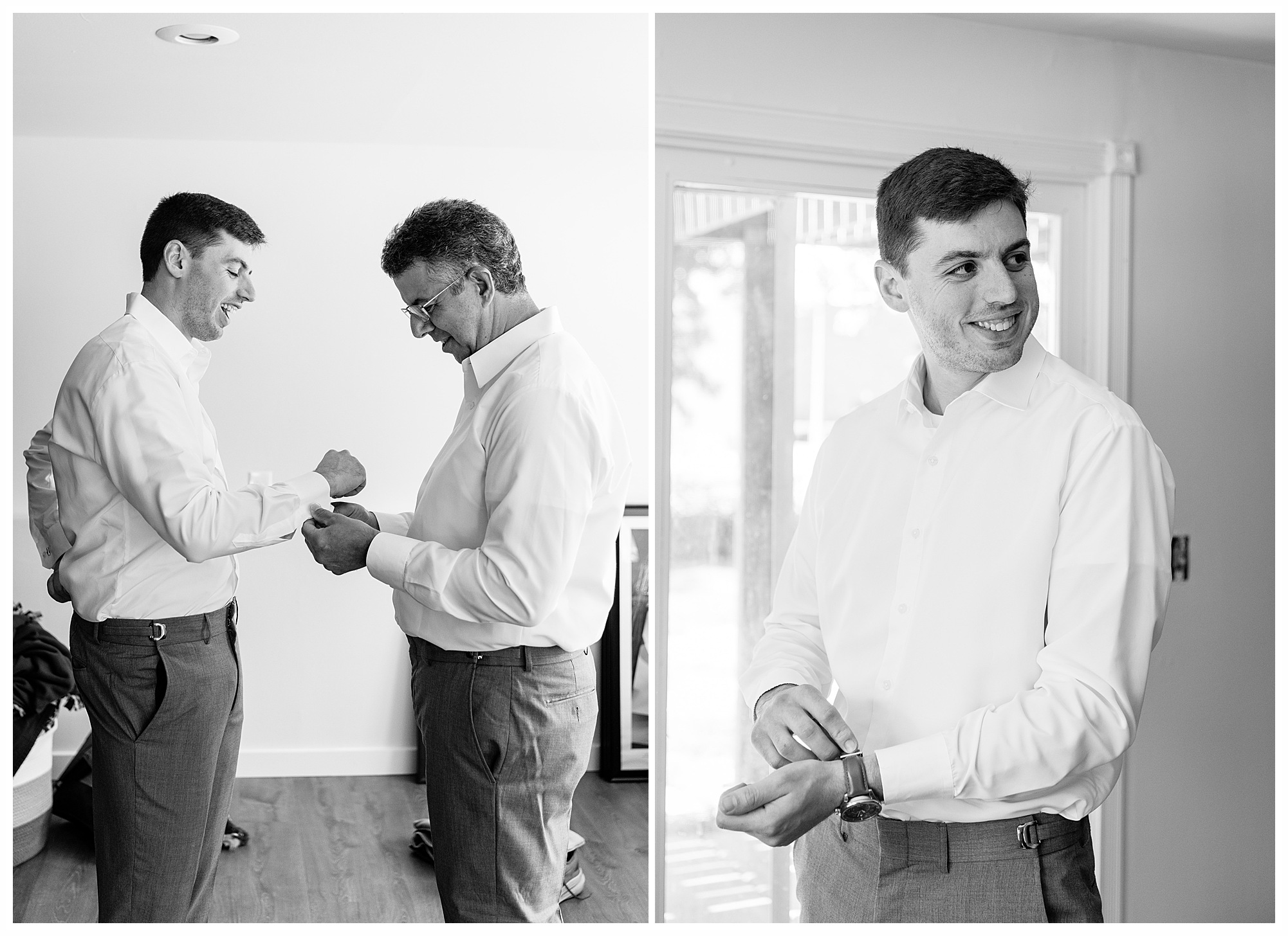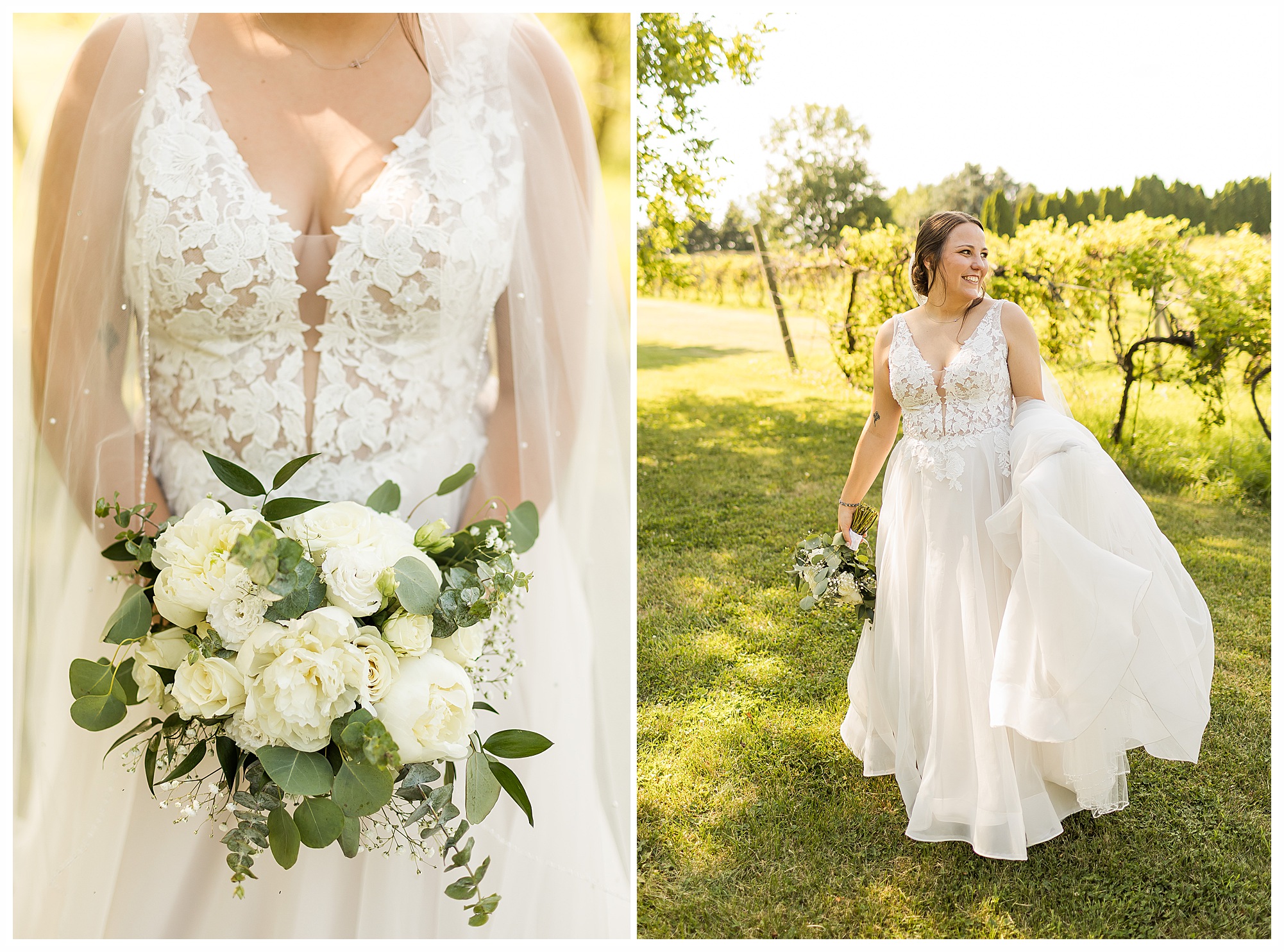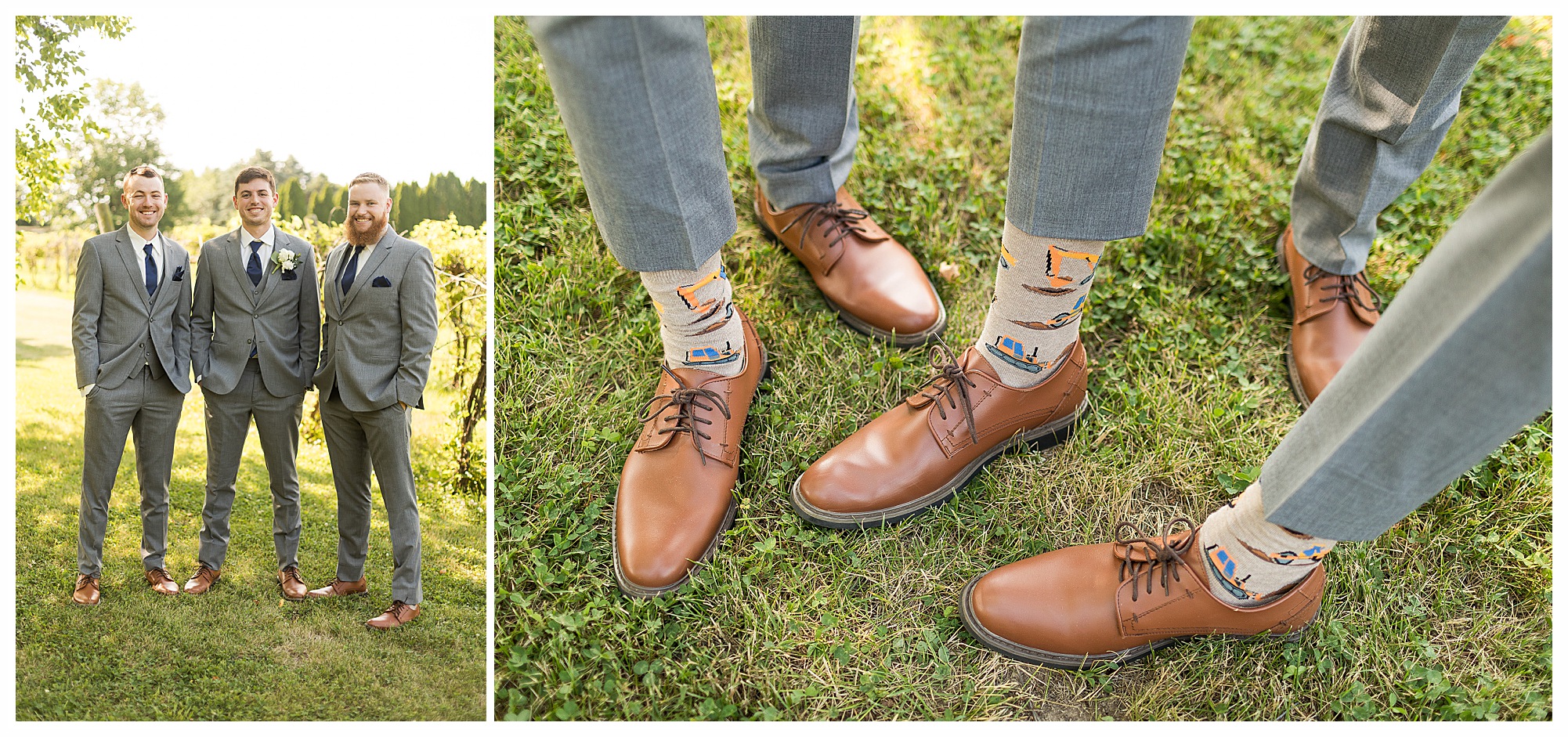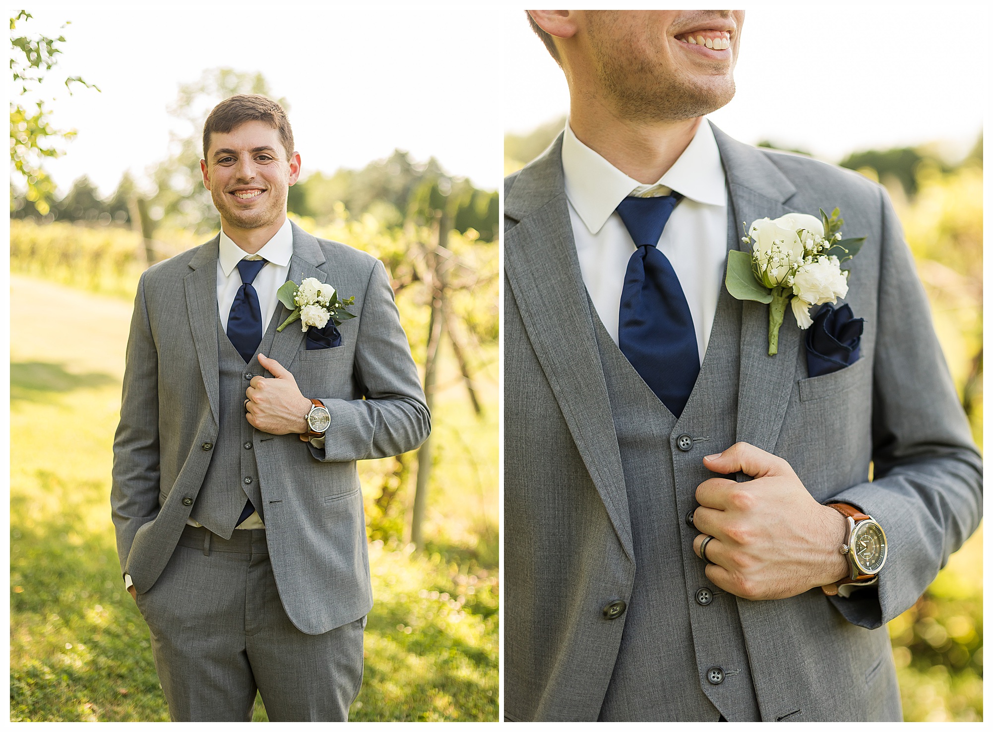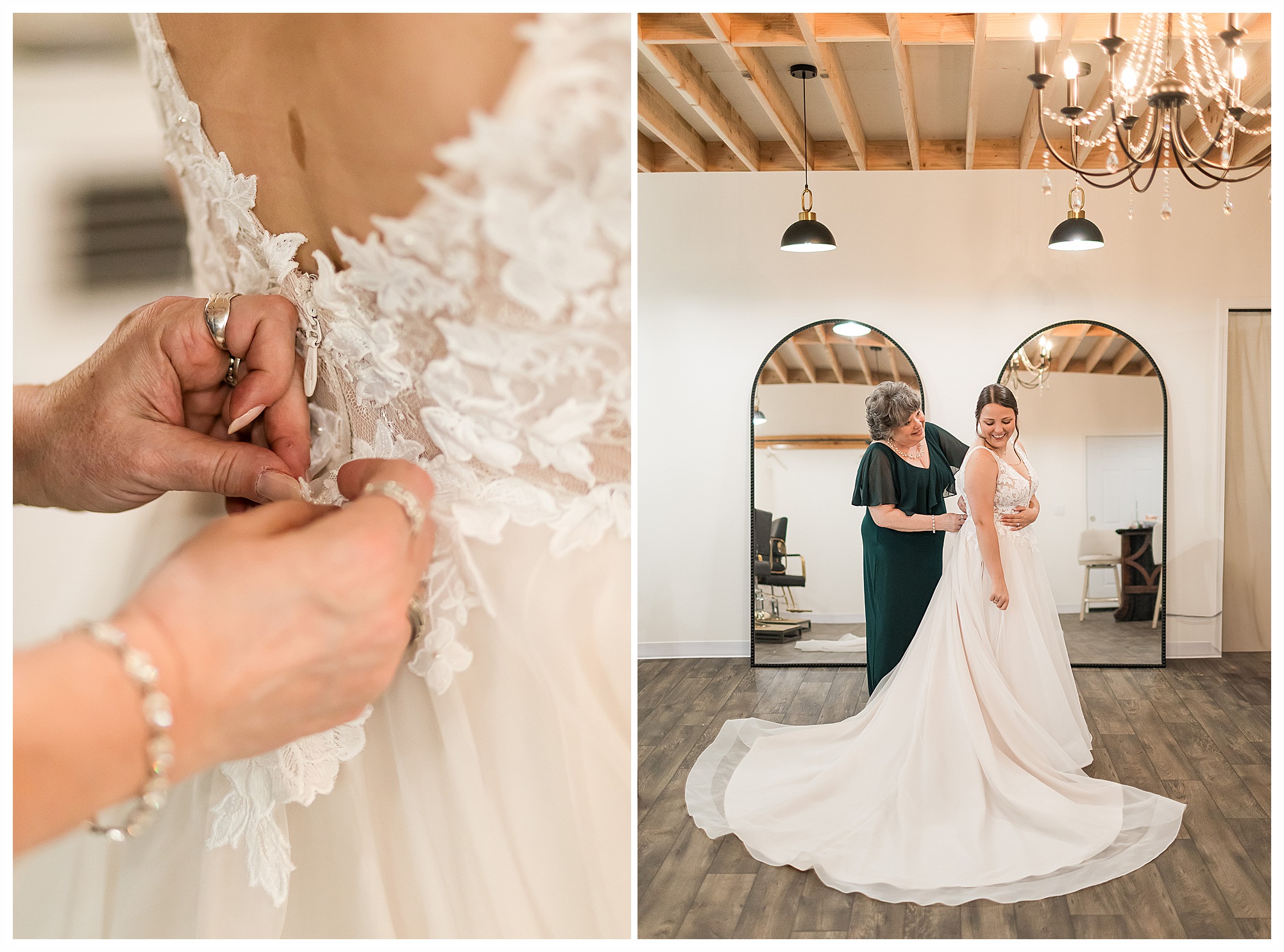 Jocelyn and Mark’s wedding day kicked off on one of those classic Midwest summer days—bright, hot, and full of anticipation. The kind where the air feels electric and everything just feels exciting. Their first look took place right on the gorgeous property of Olive & Oak in Edwards, Illinois, and it was such a sweet, relaxed moment between the two of them. The space has a charming mix of rustic and modern vibes, and it felt like the perfect backdrop for this easygoing, joy-filled couple. Jocelyn and Mark were smiling nonstop (as were their people!) and were just so happy to be together. It honestly set the tone for the whole day.