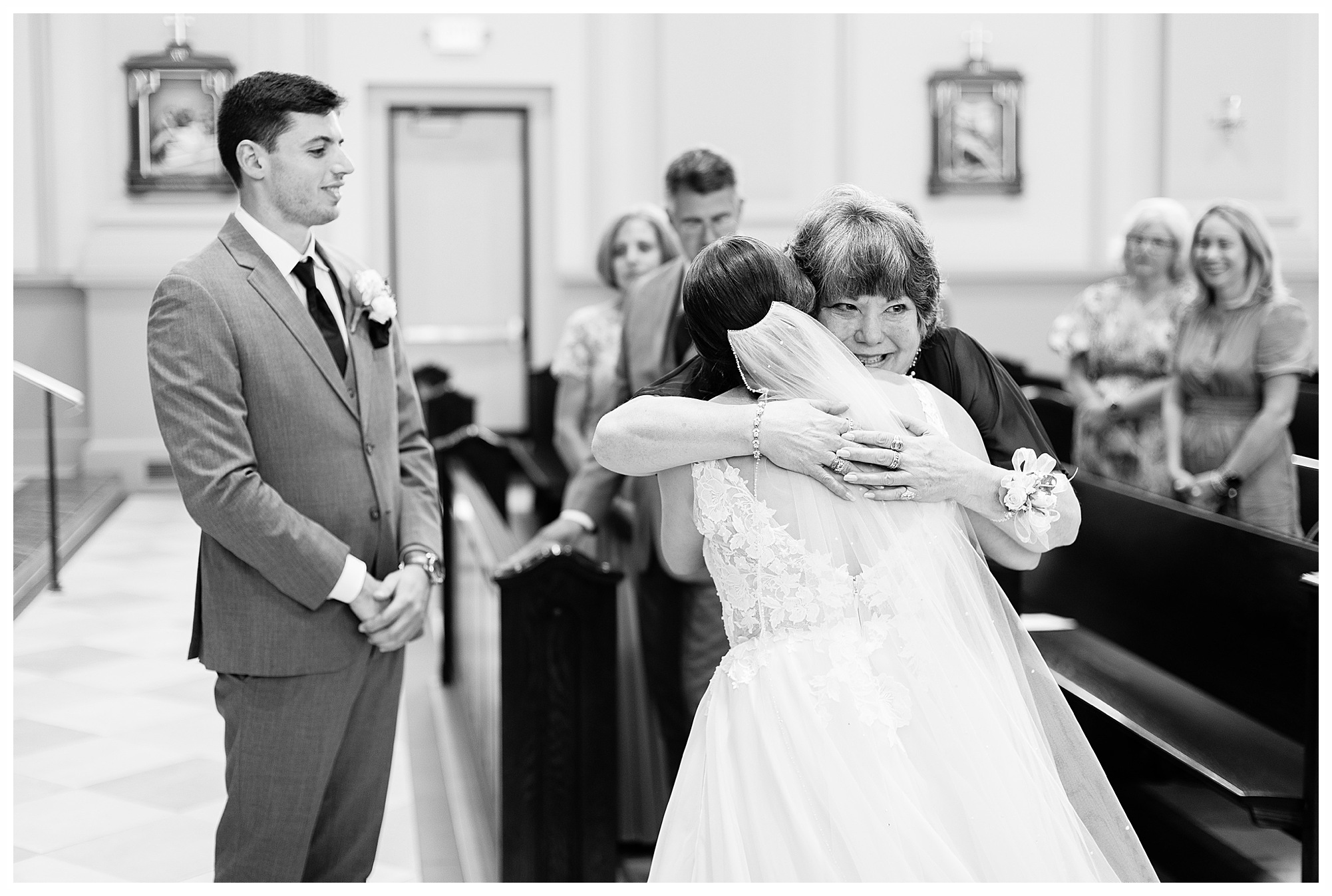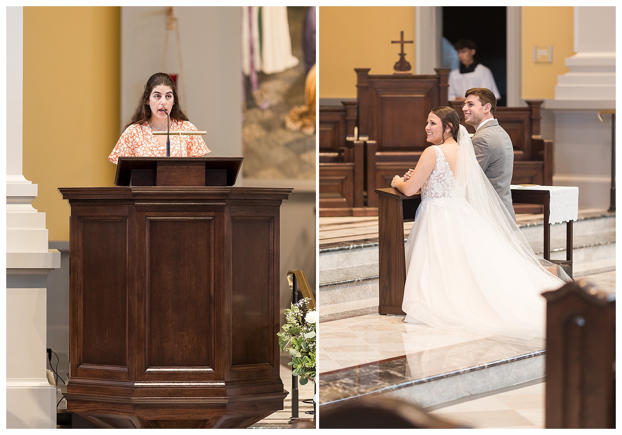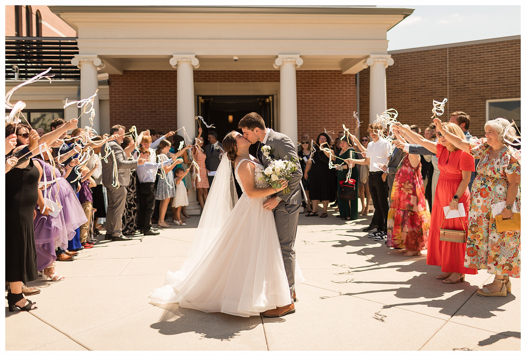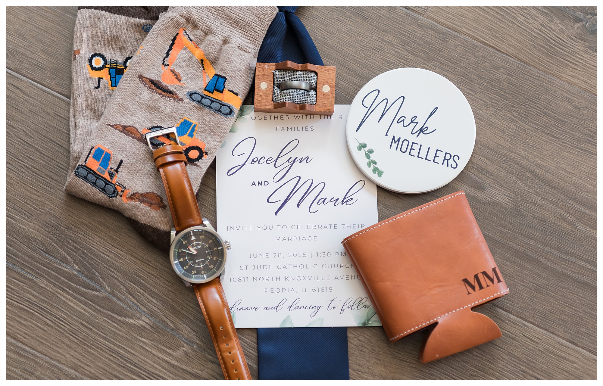 After soaking in those early moments together, we all made our way to St. Jude Catholic Church in Peoria for their ceremony. The church is stunning, and their full Catholic Mass was such a beautiful and meaningful celebration of their love and faith. Once the “I dos” were sealed with a kiss, we headed back to Olive & Oak for some fun with the bridal party and portraits of the newlyweds. The venue, now under new ownership, has some seriously lovely spaces for photos—and Jocelyn and Mark made the most of every single one with their infectious energy and laughter.