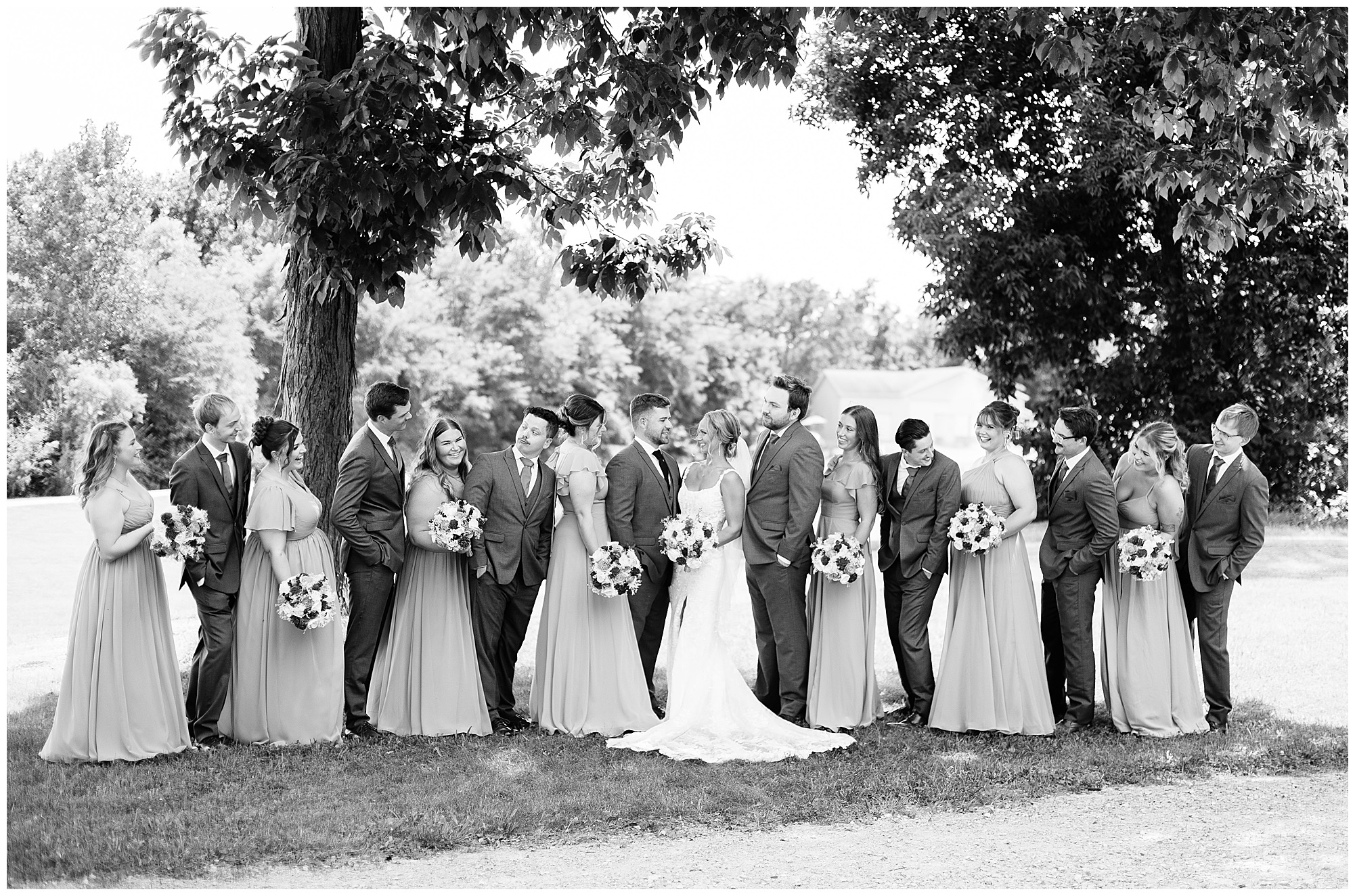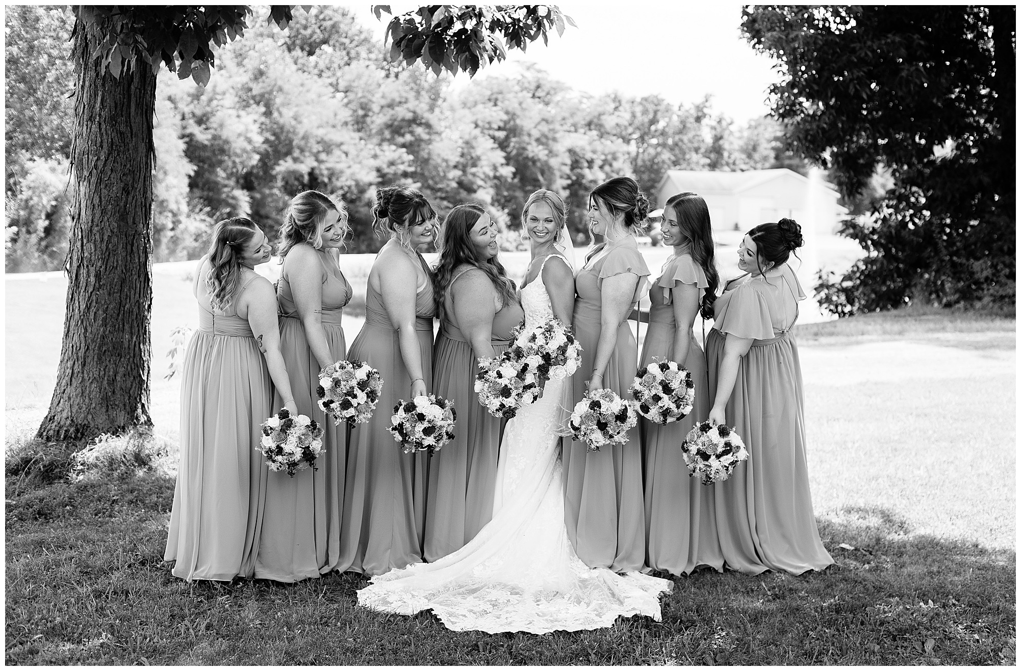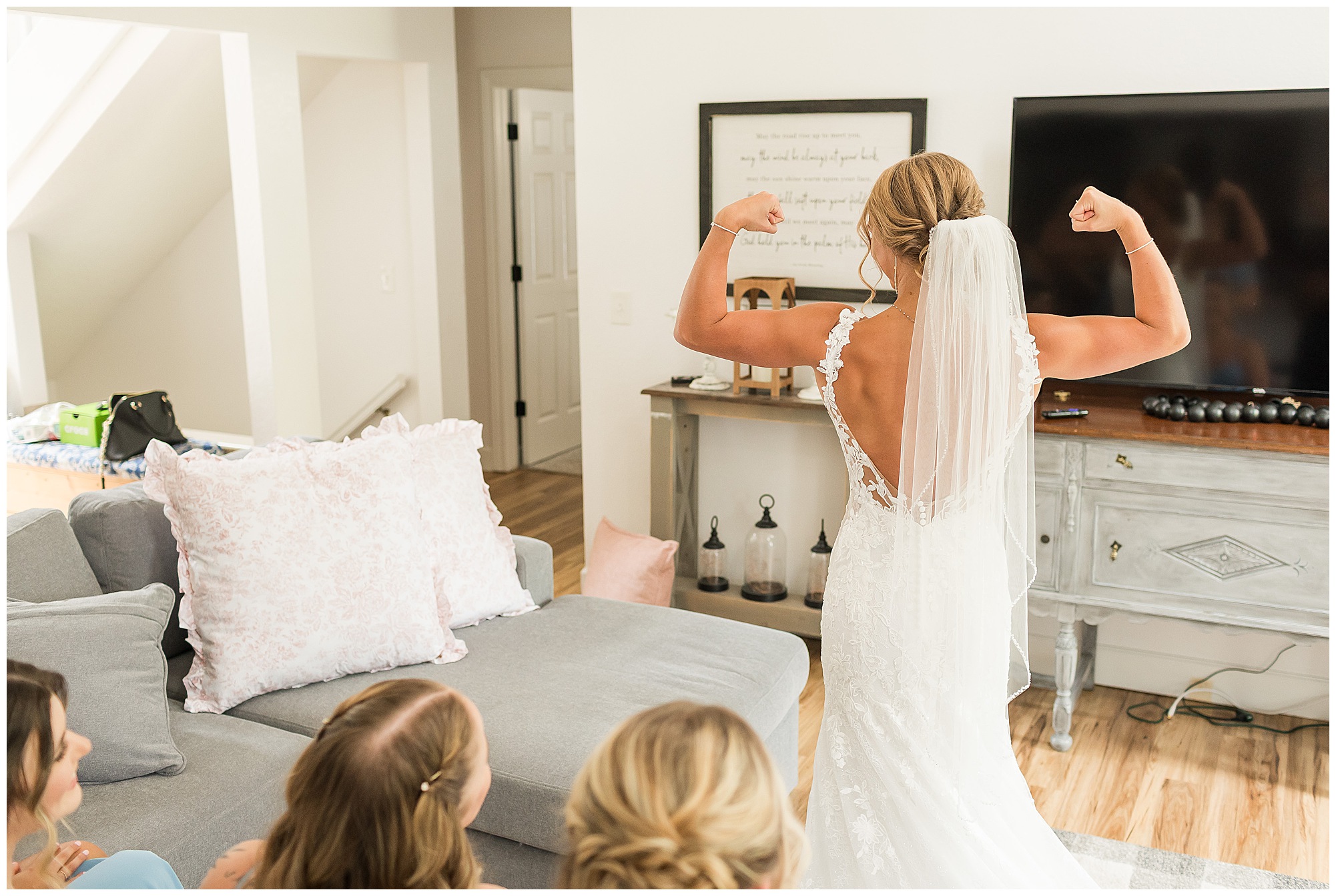 One of the sweetest moments of the entire day was their first look. The second Brock saw Kamy, his whole face lit up—it was pure happiness. These two share such an incredible bond, and you could feel it in every glance, every laugh, every moment they had together. Since both are into bodybuilding, they not only looked incredible side by side, but they carried this fun, energetic spirit that made photographing them an absolute blast. After their portraits, the bridal party jumped in for photos, and let’s just say this group knew how to bring the fun before slipping back inside to cool off, leaving me more time with Kamy and Brock for some extra portraits.