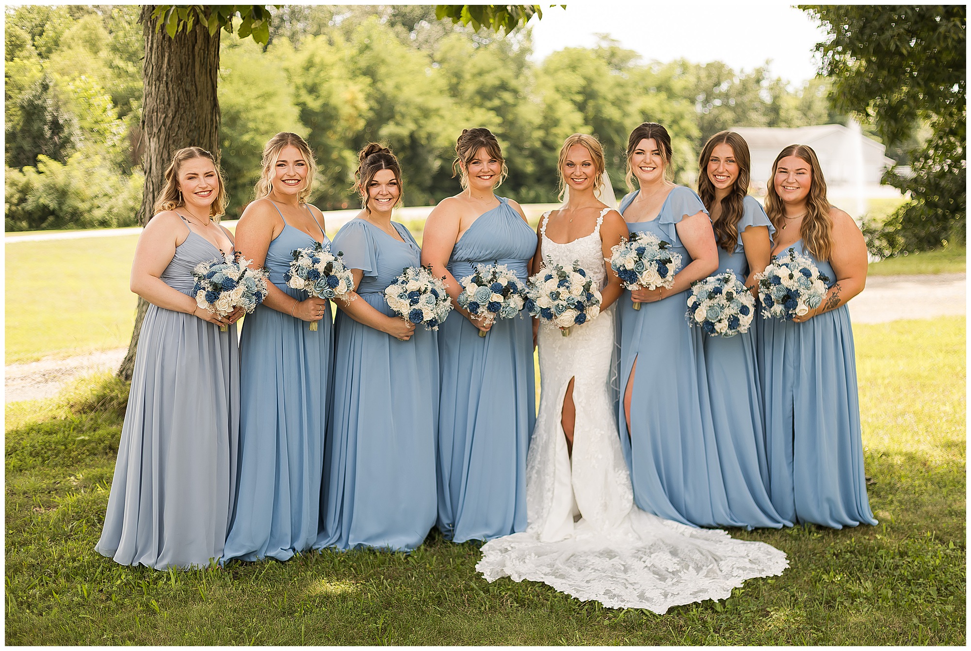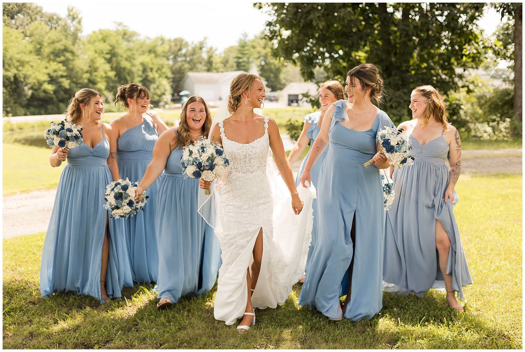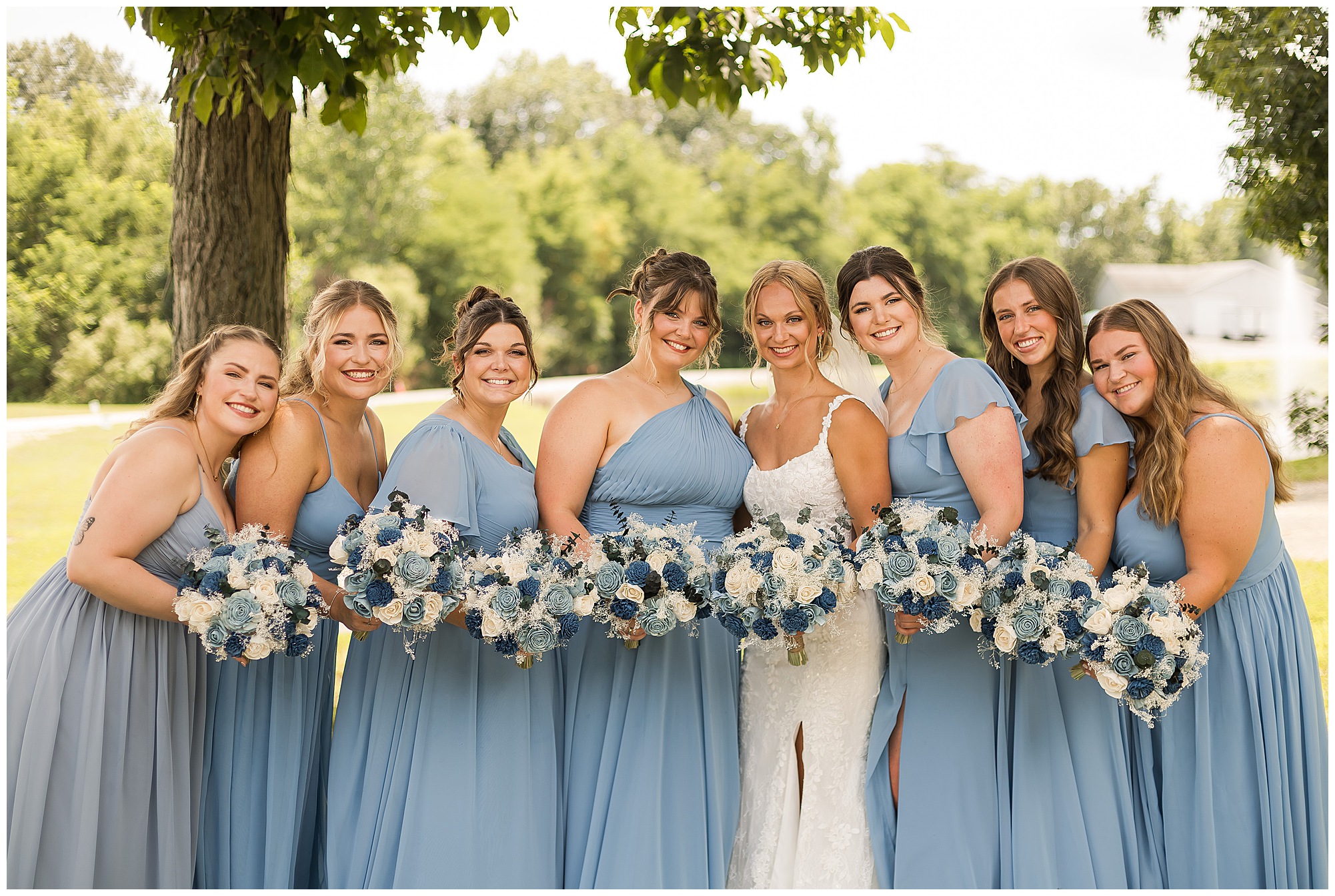 One of the sweetest moments of the entire day was their first look. The second Brock saw Kamy, his whole face lit up—it was pure happiness. These two share such an incredible bond, and you could feel it in every glance, every laugh, every moment they had together. Since both are into bodybuilding, they not only looked incredible side by side, but they carried this fun, energetic spirit that made photographing them an absolute blast. After their portraits, the bridal party jumped in for photos, and let’s just say this group knew how to bring the fun before slipping back inside to cool off, leaving me more time with Kamy and Brock for some extra portraits.