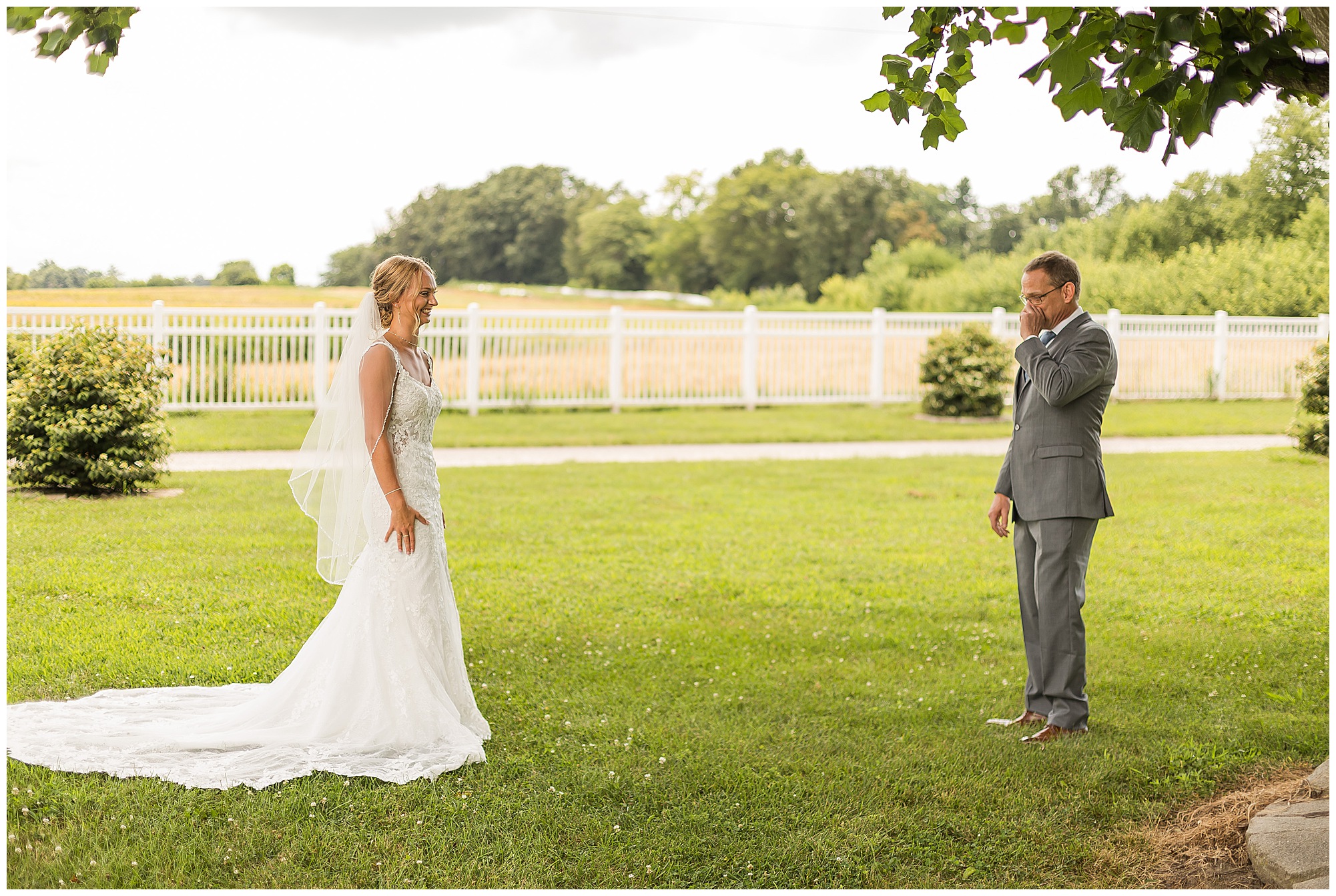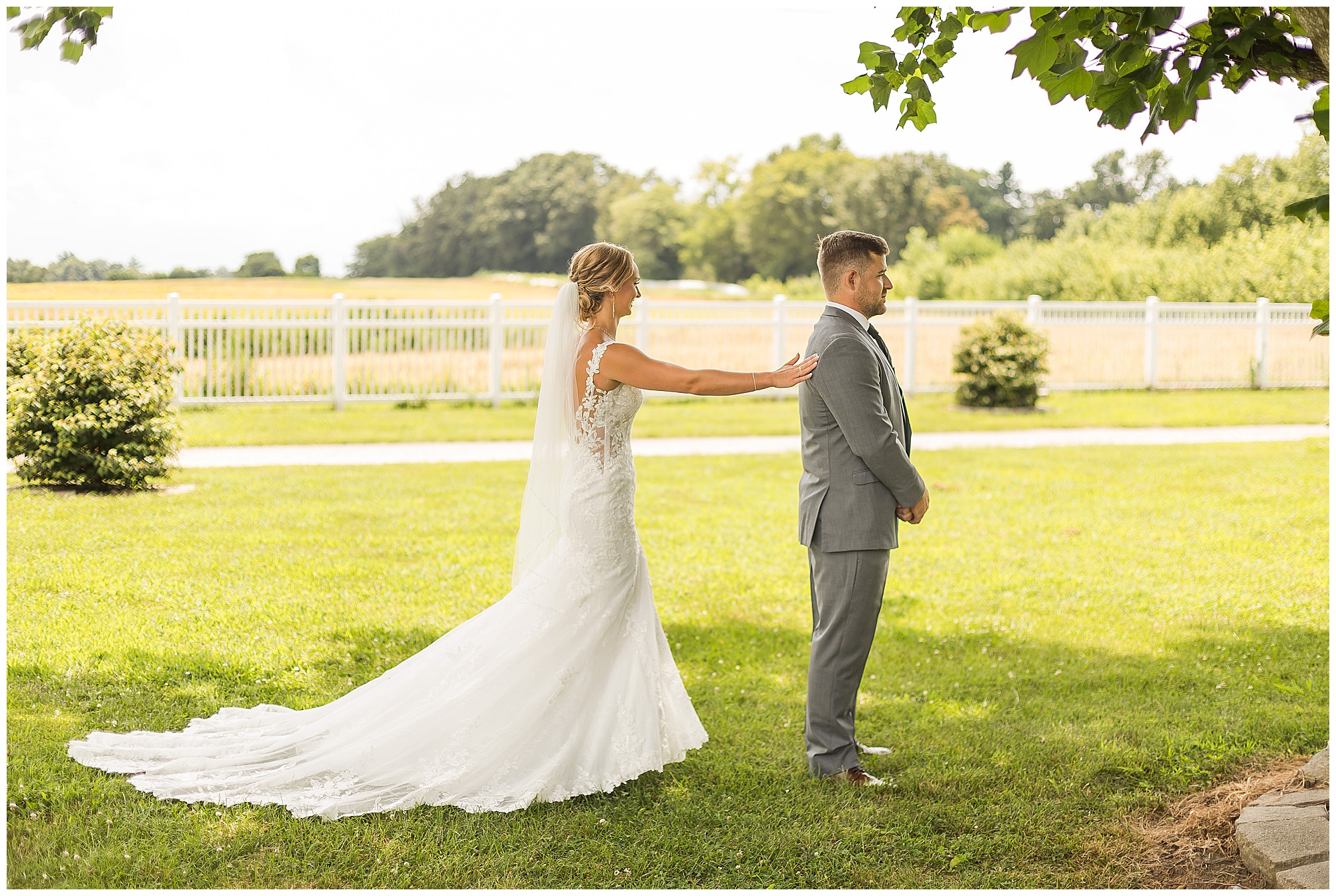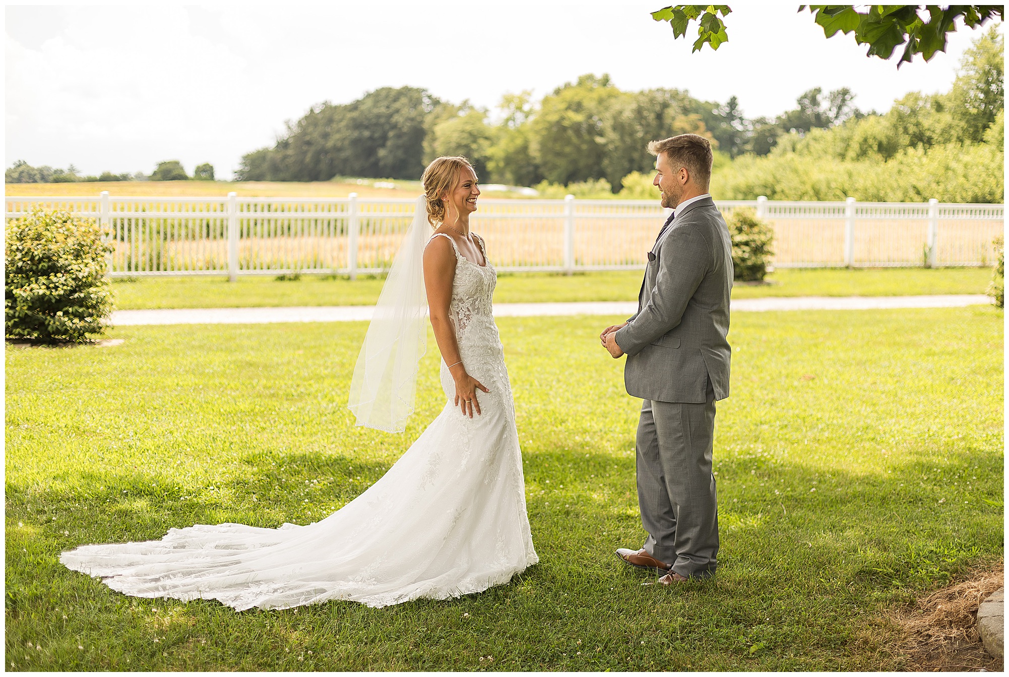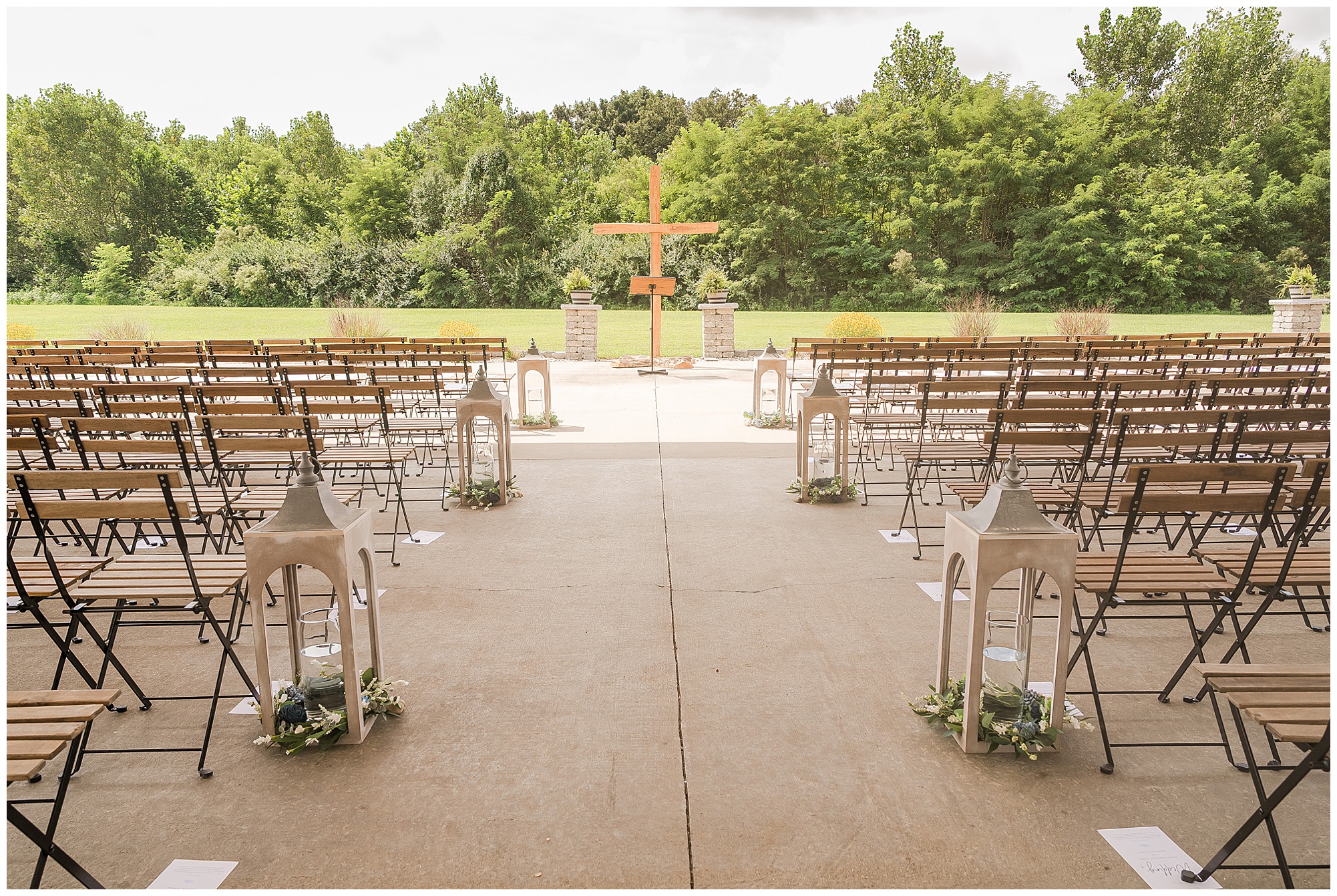 Their ceremony took place outdoors on the patio, surrounded by all their favorite people. The atmosphere was heartfelt and full of love—so many smiles, happy tears, and cheering as they said “I do” under the summer sun.