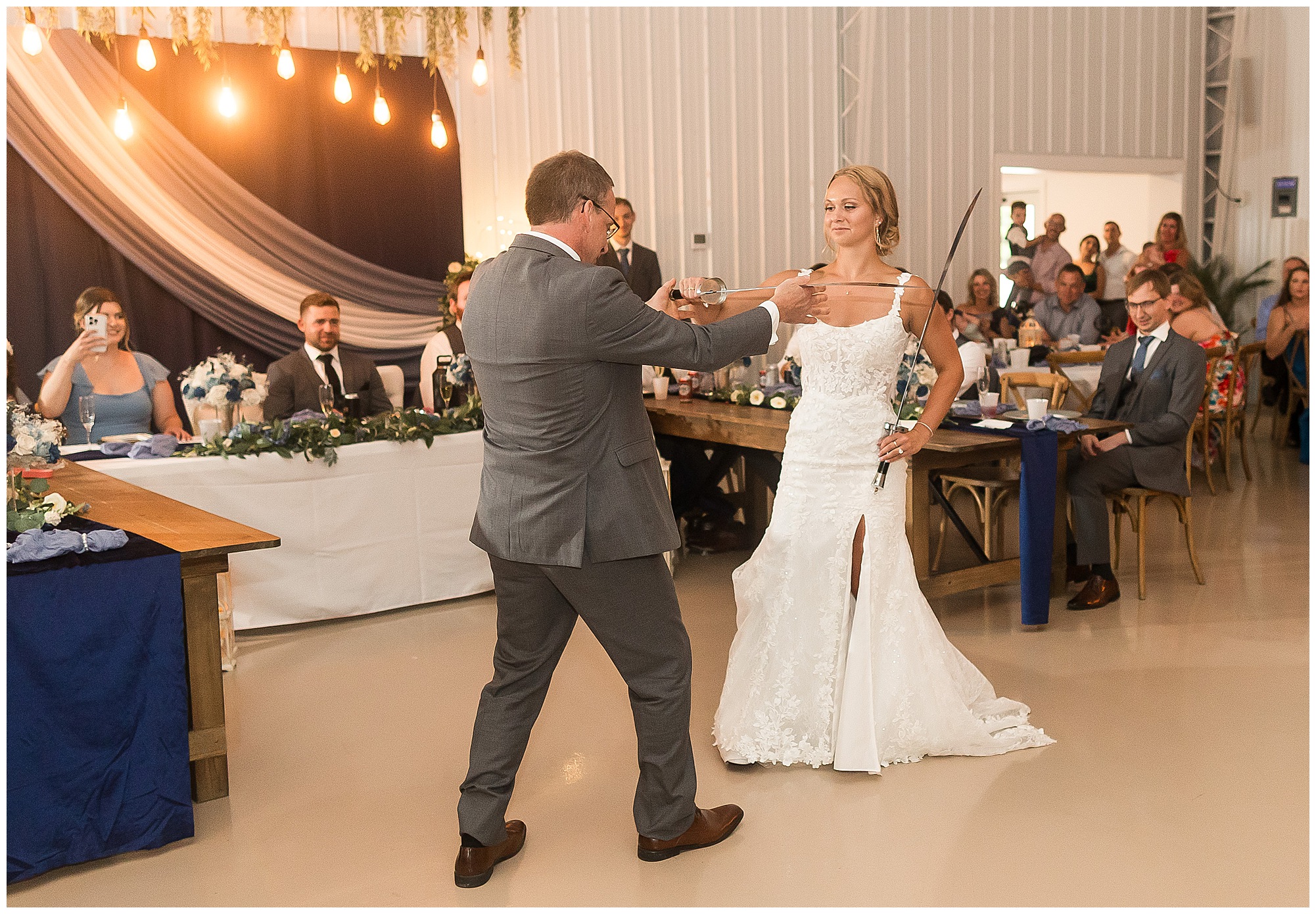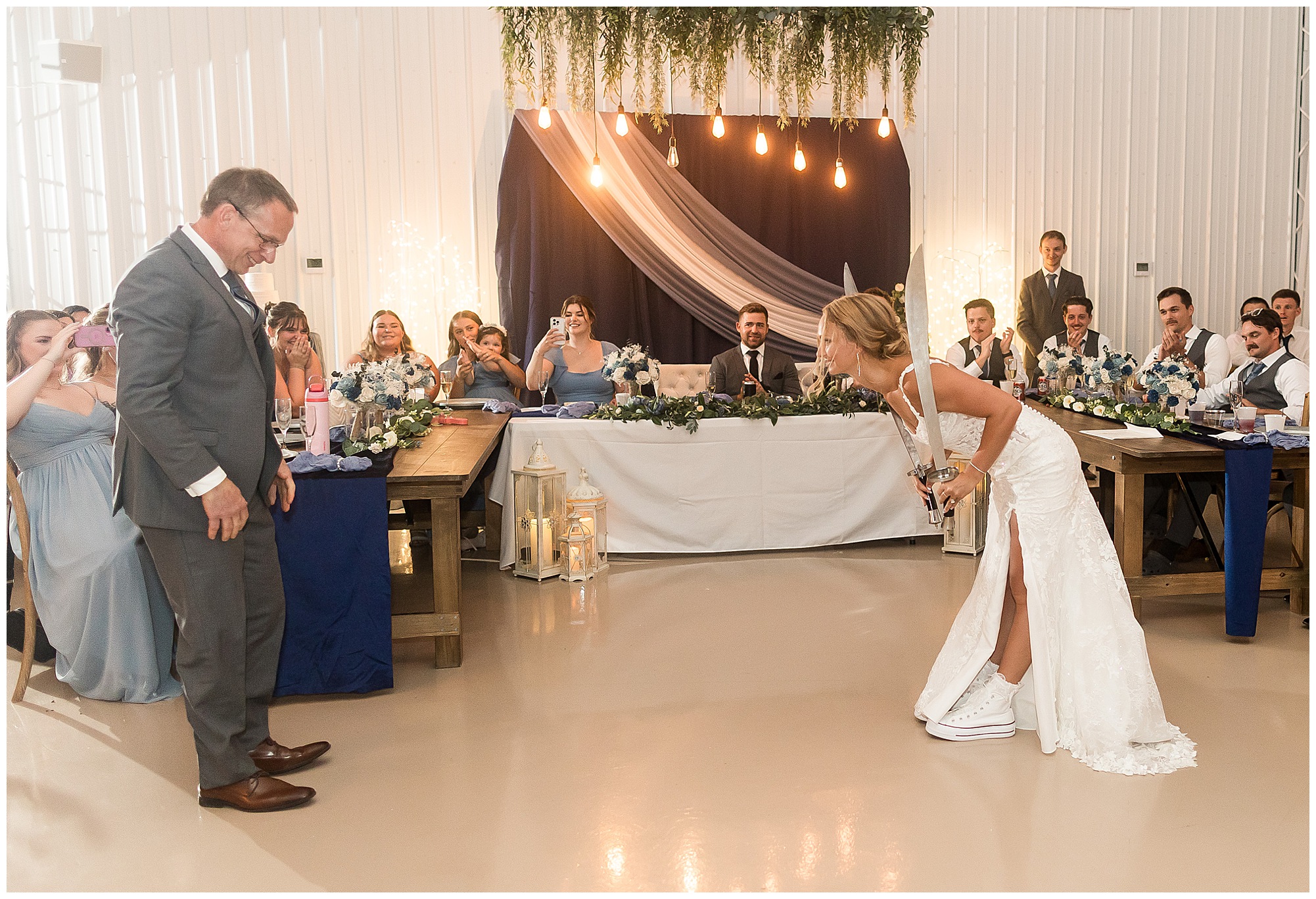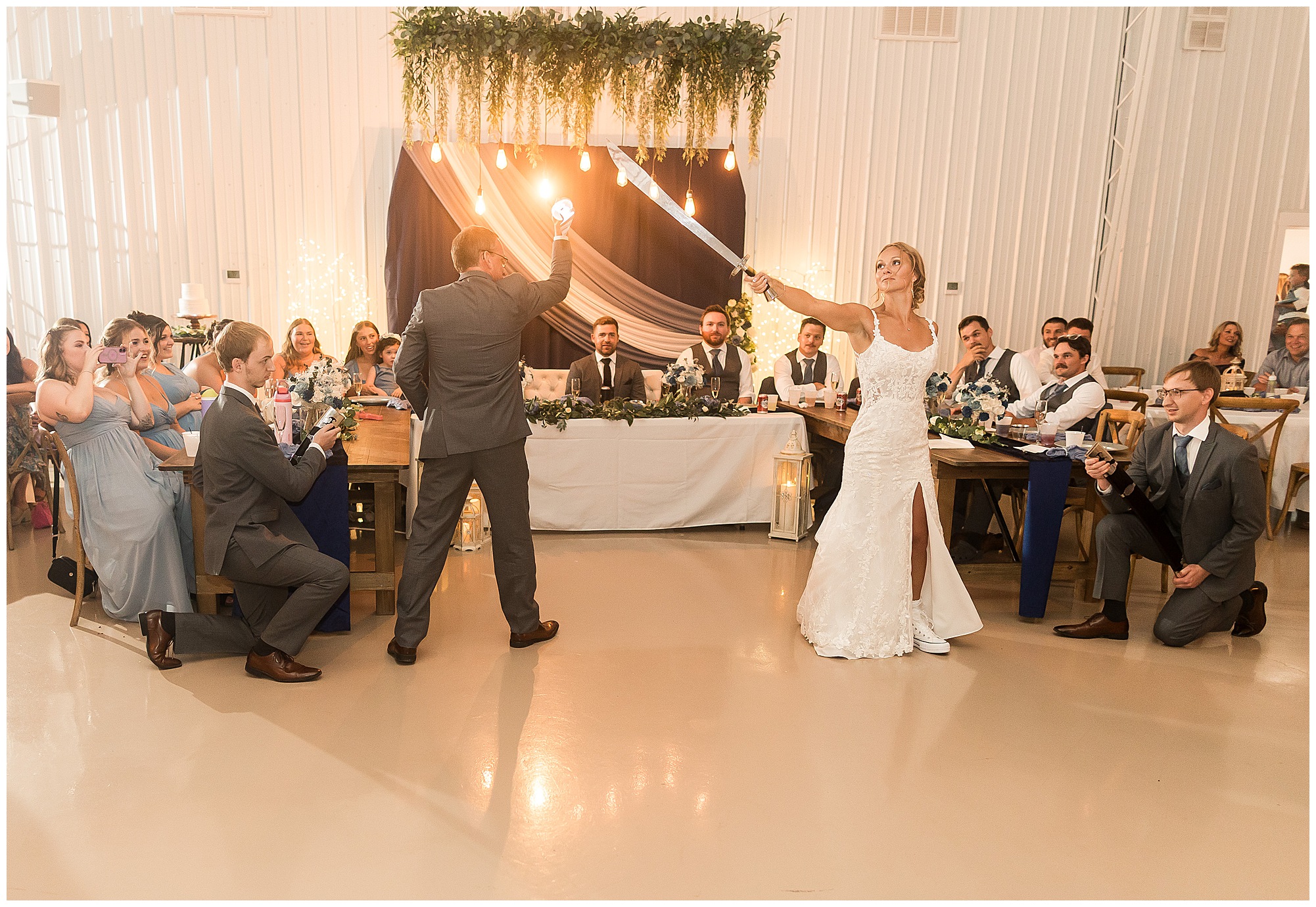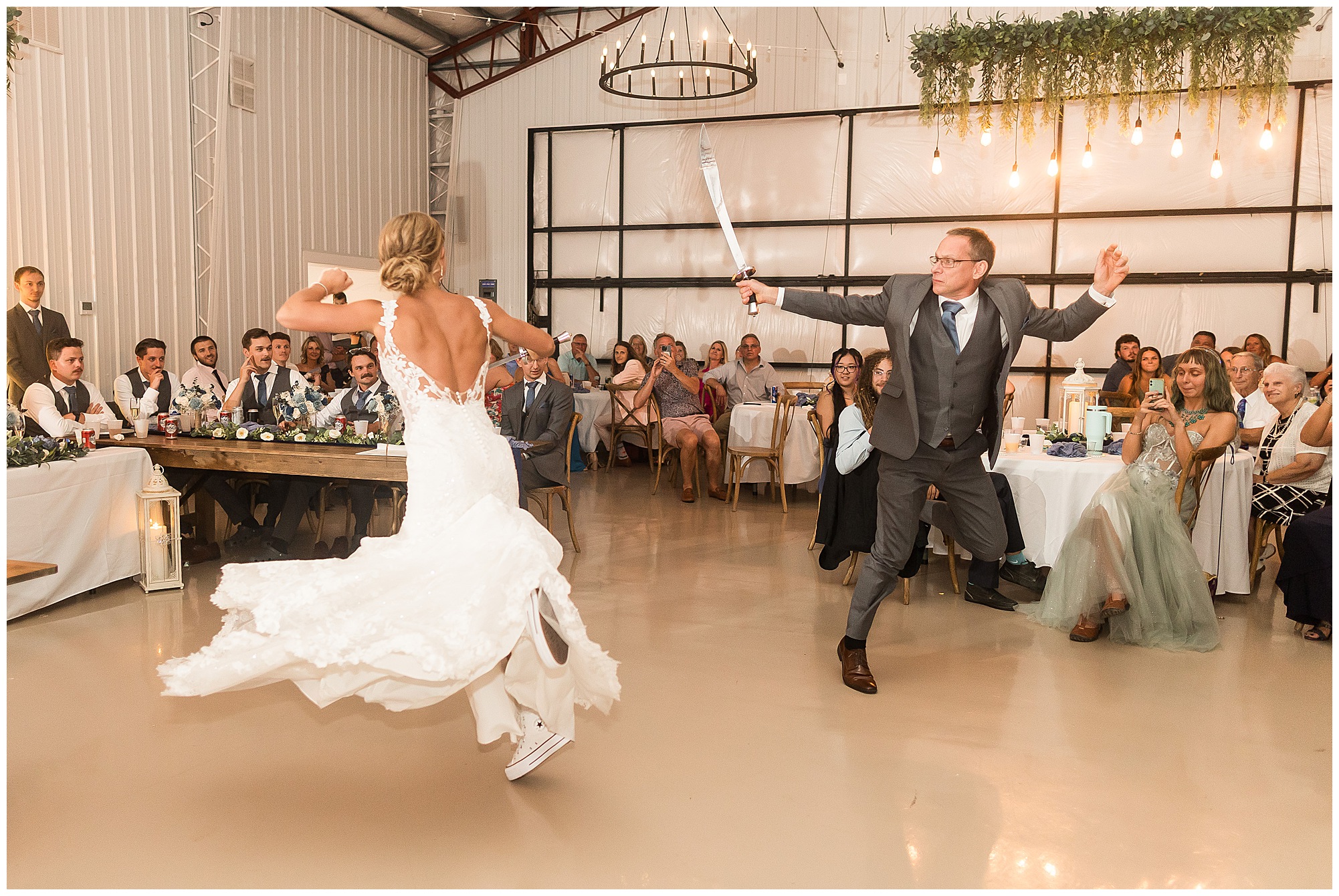 And then the reception? Total party mode! The bridal party entrances were full of personality and set the tone for the night. Kamy and Brock wowed everyone with their choreographed first dance (seriously, it felt like a scene from a movie!), and the father-daughter dance was something no guest will ever forget. To honor Kamy’s dad, they included his love for Broadsword Karate Kata, creating one of the most unique and fun dances I’ve ever seen. From that moment on, the dance floor stayed packed with laughter, high energy, and even some “Worming”—a signature move on Kamy’s side of the family!