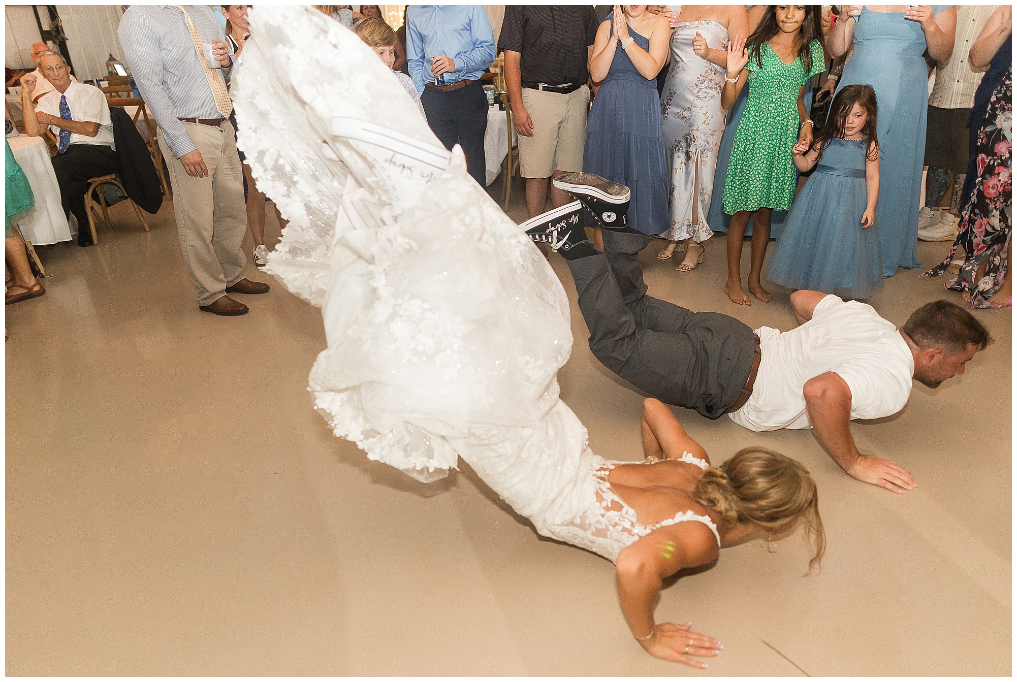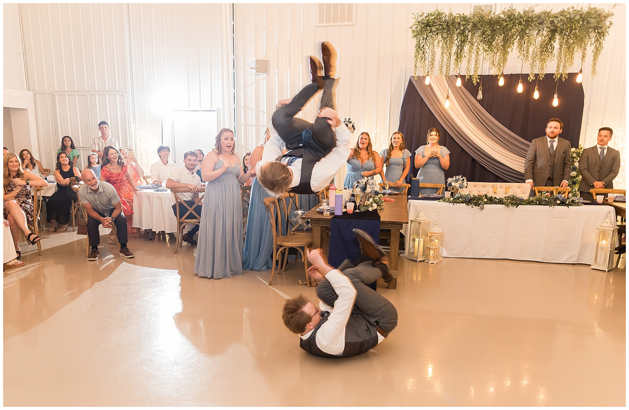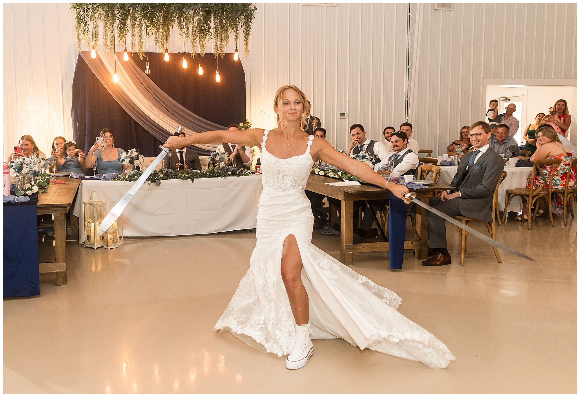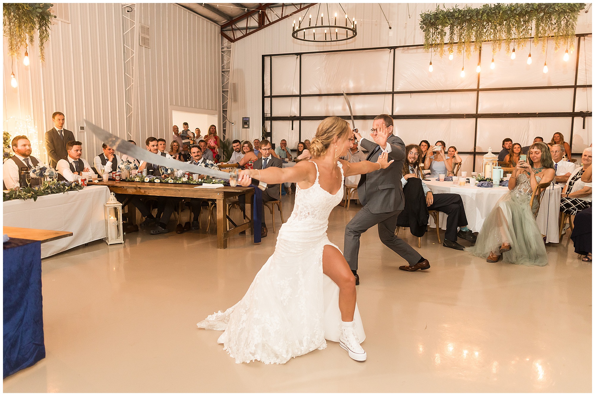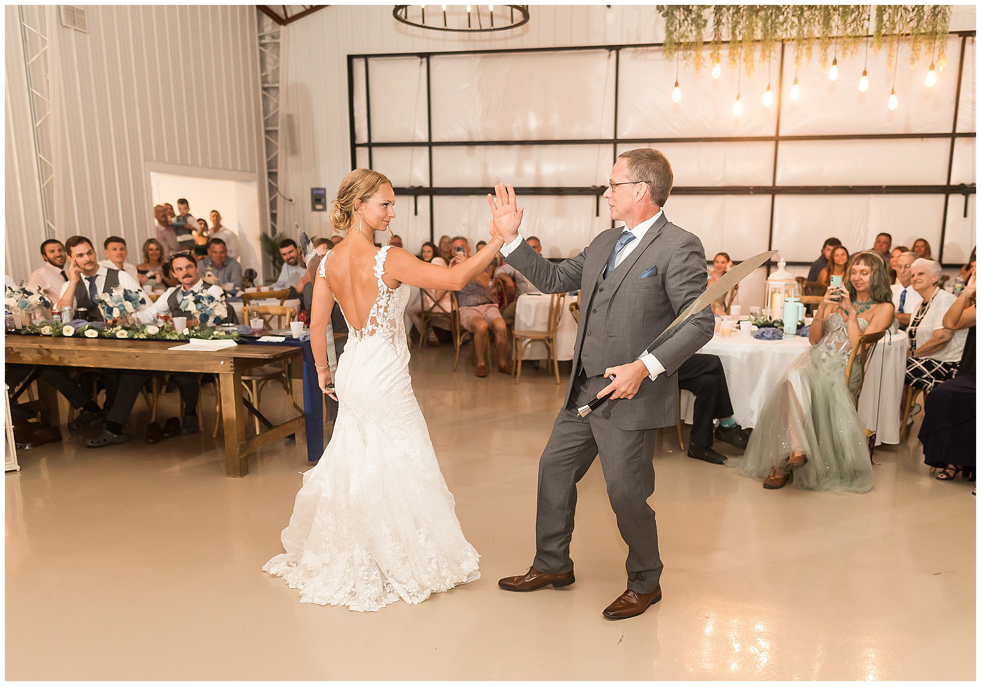And then the reception? Total party mode! The bridal party entrances were full of personality and set the tone for the night. Kamy and Brock wowed everyone with their choreographed first dance (seriously, it felt like a scene from a movie!), and the father-daughter dance was something no guest will ever forget. To honor Kamy’s dad, they included his love for Broadsword Karate Kata, creating one of the most unique and fun dances I’ve ever seen. From that moment on, the dance floor stayed packed with laughter, high energy, and even some “Worming”—a signature move on Kamy’s side of the family!