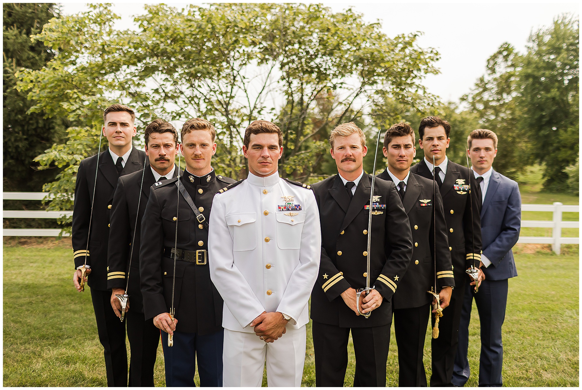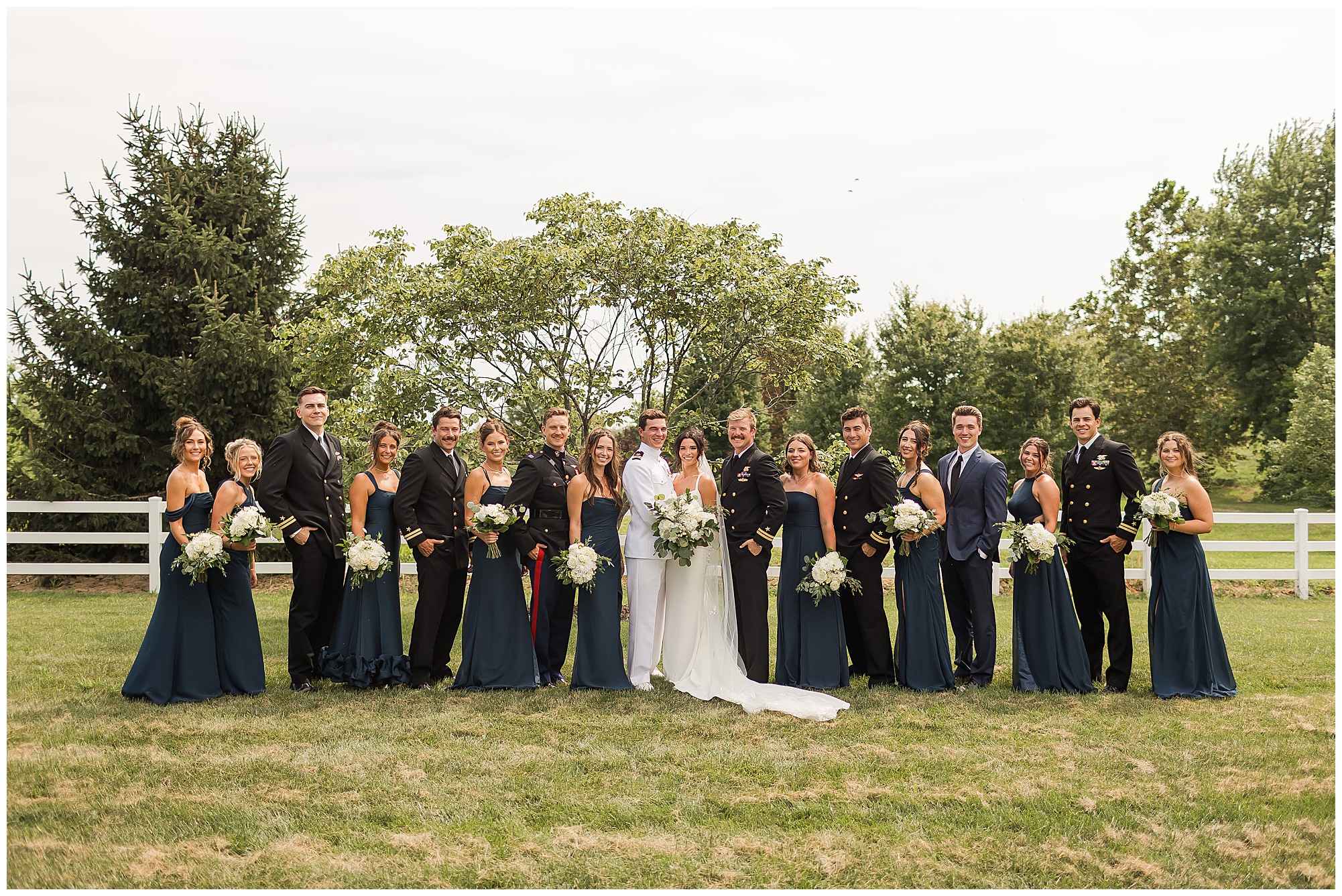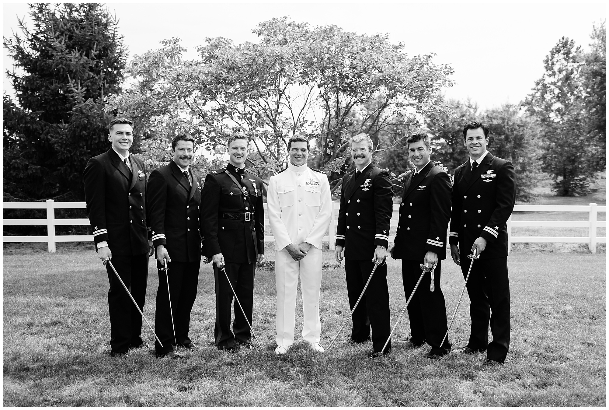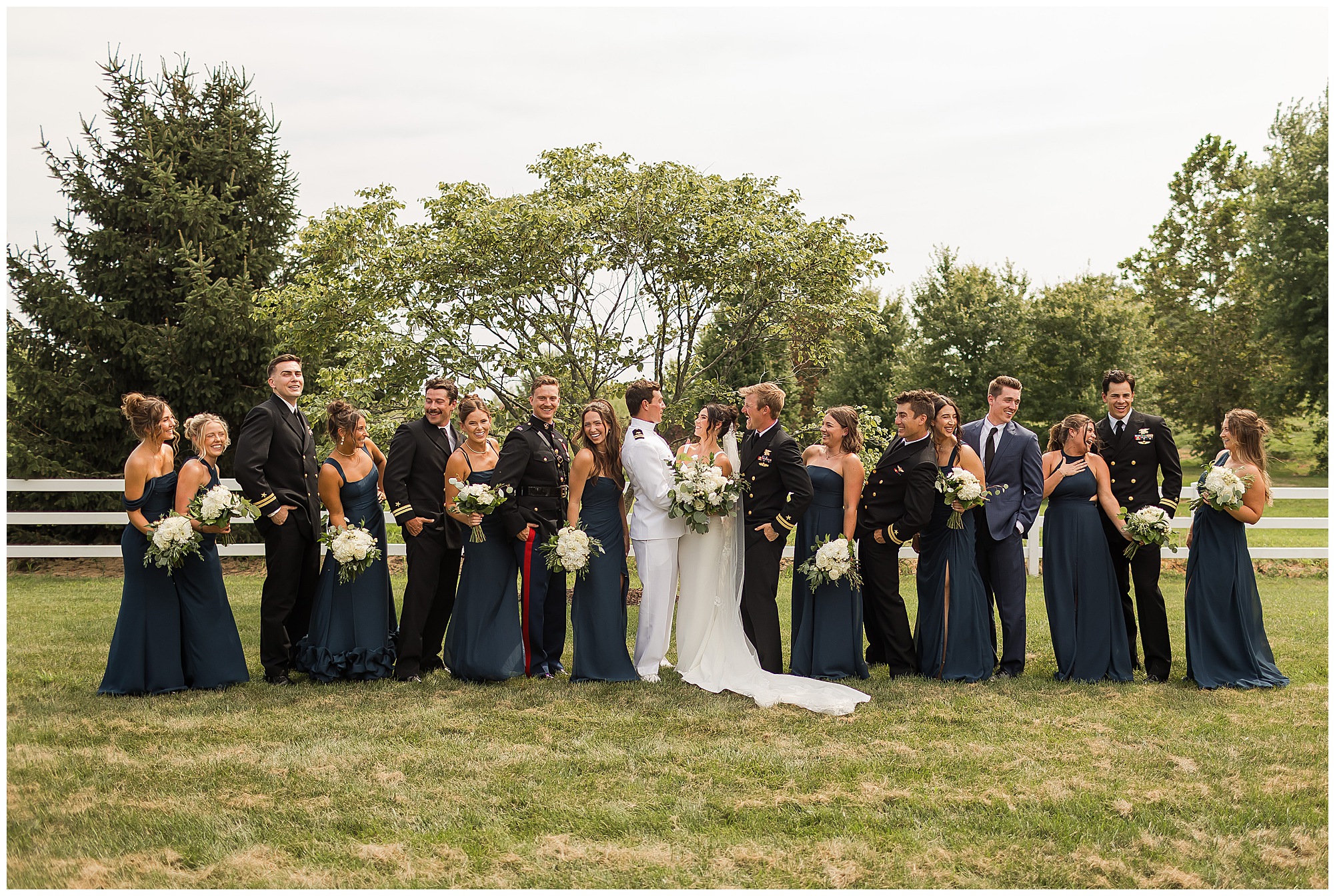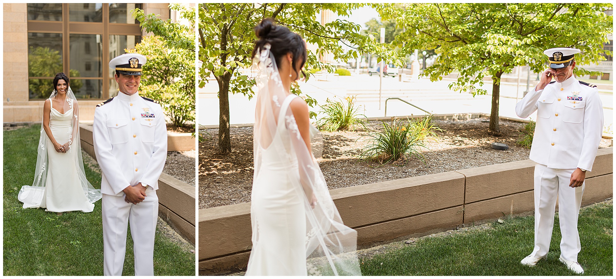 Before the party kicked off, we made our way to the Cathedral of the Immaculate Conception in Springfield for their ceremony, and wow… if you’ve ever seen that space, you know it’s incredible. But the moment that truly made the day memorable for me was Nate seeing Kelly for their emotional first look. Nate was in his full Navy dress whites, looking sharp and completely ready to see his bride. His emotions immediate got the best of him when seeing Kelly, which made the whole moment even more meaningful. Their ceremony included so many highlights of their faith, love, and honor for one another. After their full Catholic mass, the traditional Navy Arch of Swords took place right on the cathedral steps with Nate’s groomsmen in their matching Navy uniforms, —and yes, it was as amazing as it sounds!