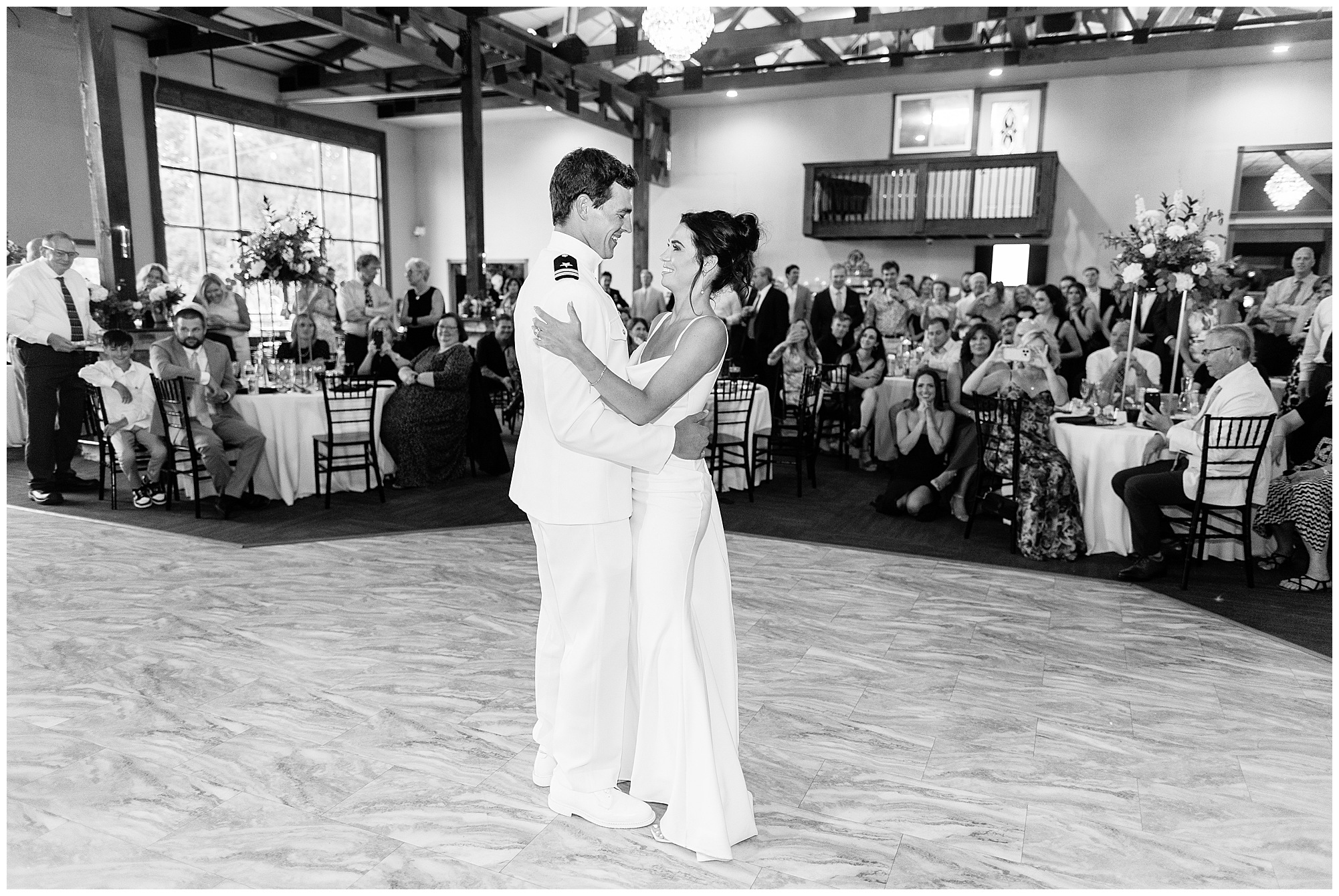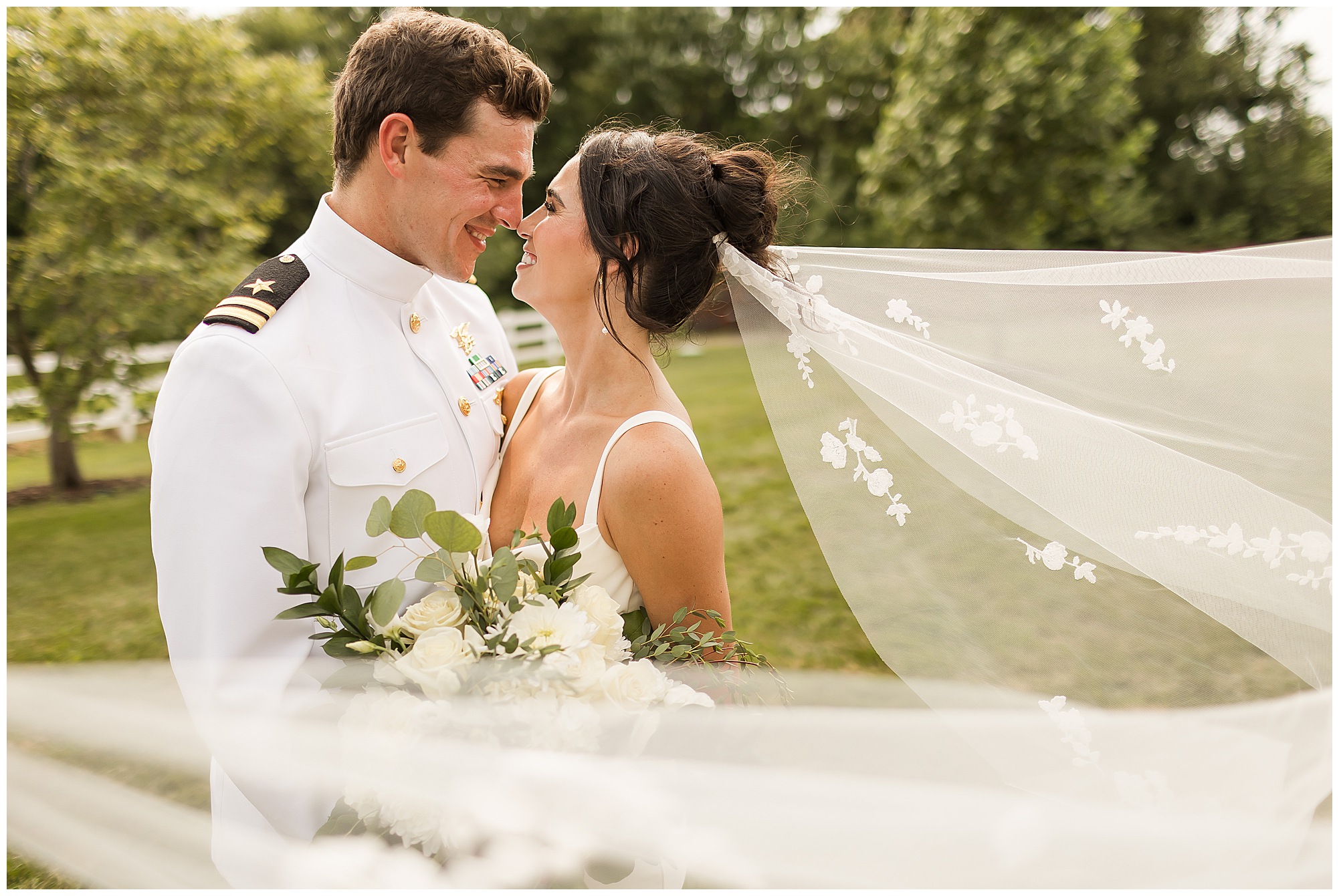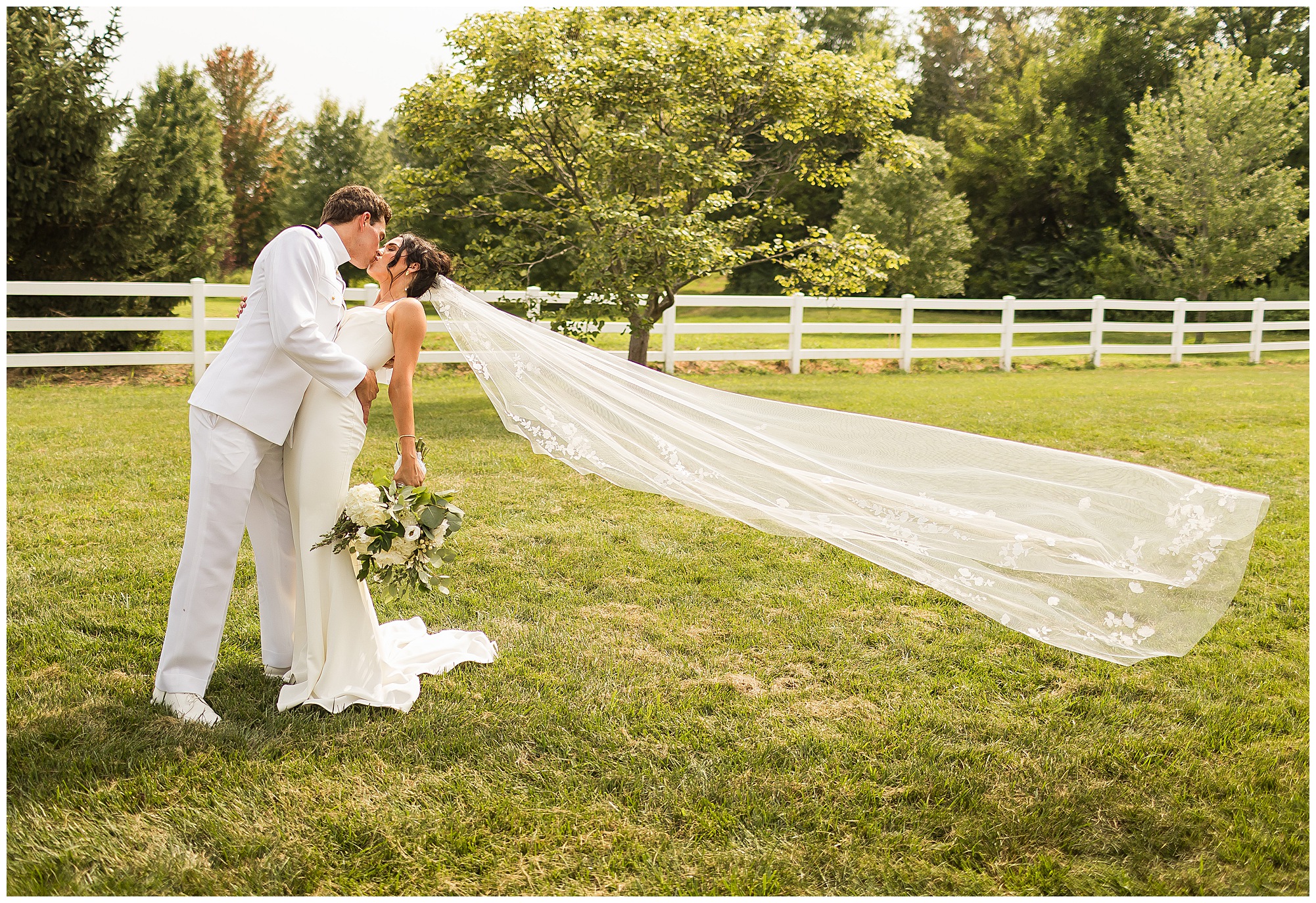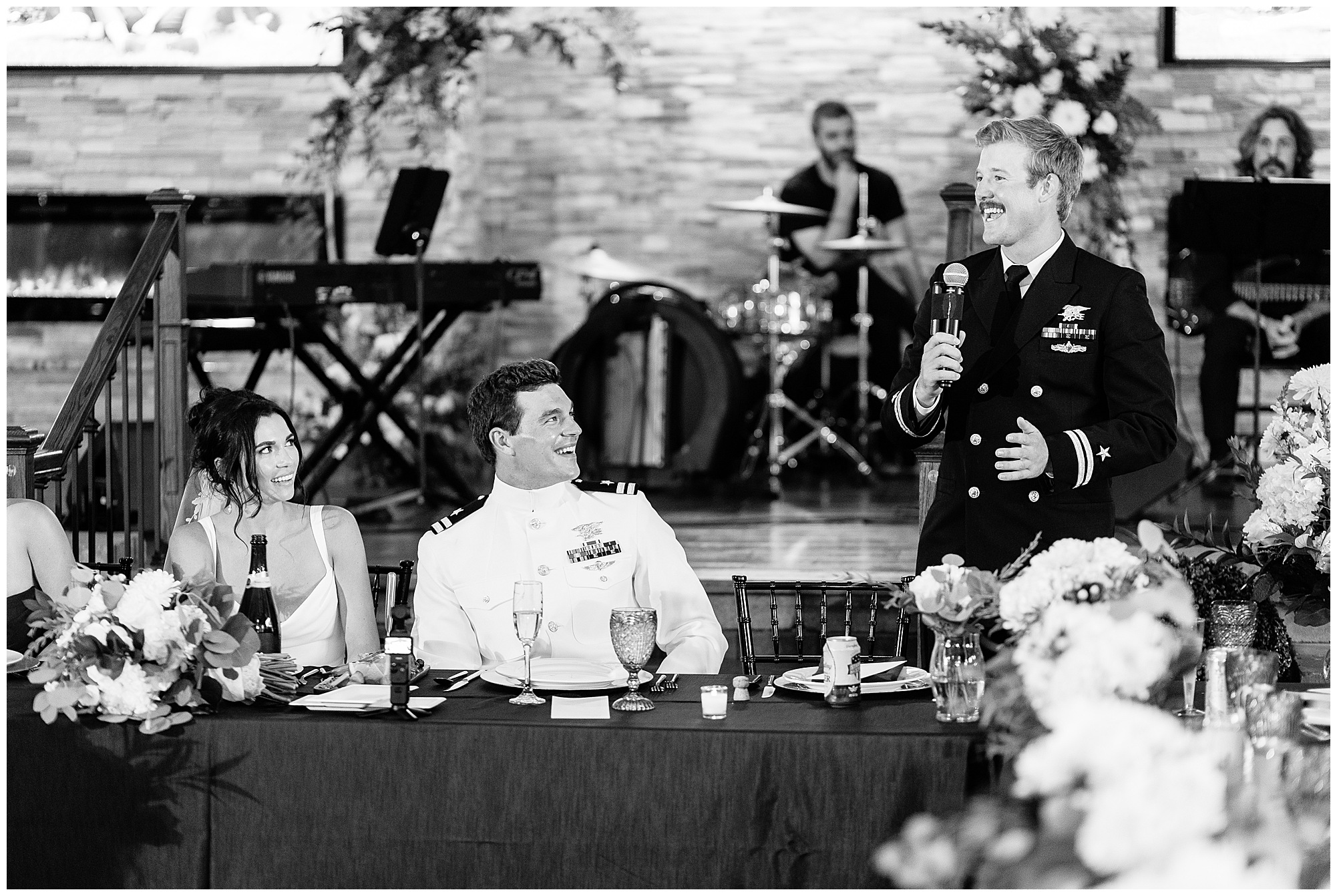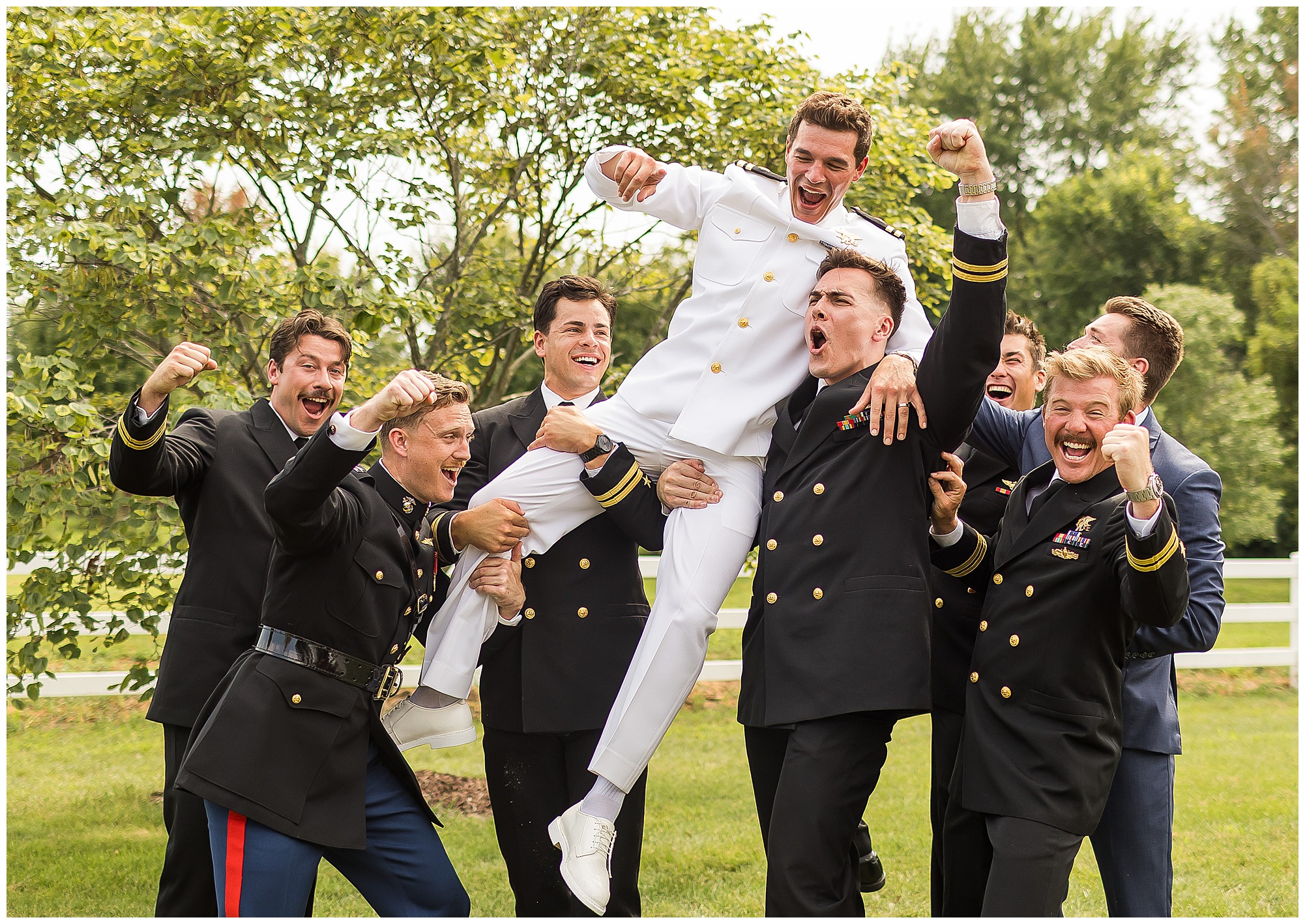 Before the party kicked off, we made our way to the Cathedral of the Immaculate Conception in Springfield for their ceremony, and wow… if you’ve ever seen that space, you know it’s incredible. But the moment that truly made the day memorable for me was Nate seeing Kelly for their emotional first look. Nate was in his full Navy dress whites, looking sharp and completely ready to see his bride. His emotions immediate got the best of him when seeing Kelly, which made the whole moment even more meaningful. Their ceremony included so many highlights of their faith, love, and honor for one another. After their full Catholic mass, the traditional Navy Arch of Swords took place right on the cathedral steps with Nate’s groomsmen in their matching Navy uniforms, —and yes, it was as amazing as it sounds!