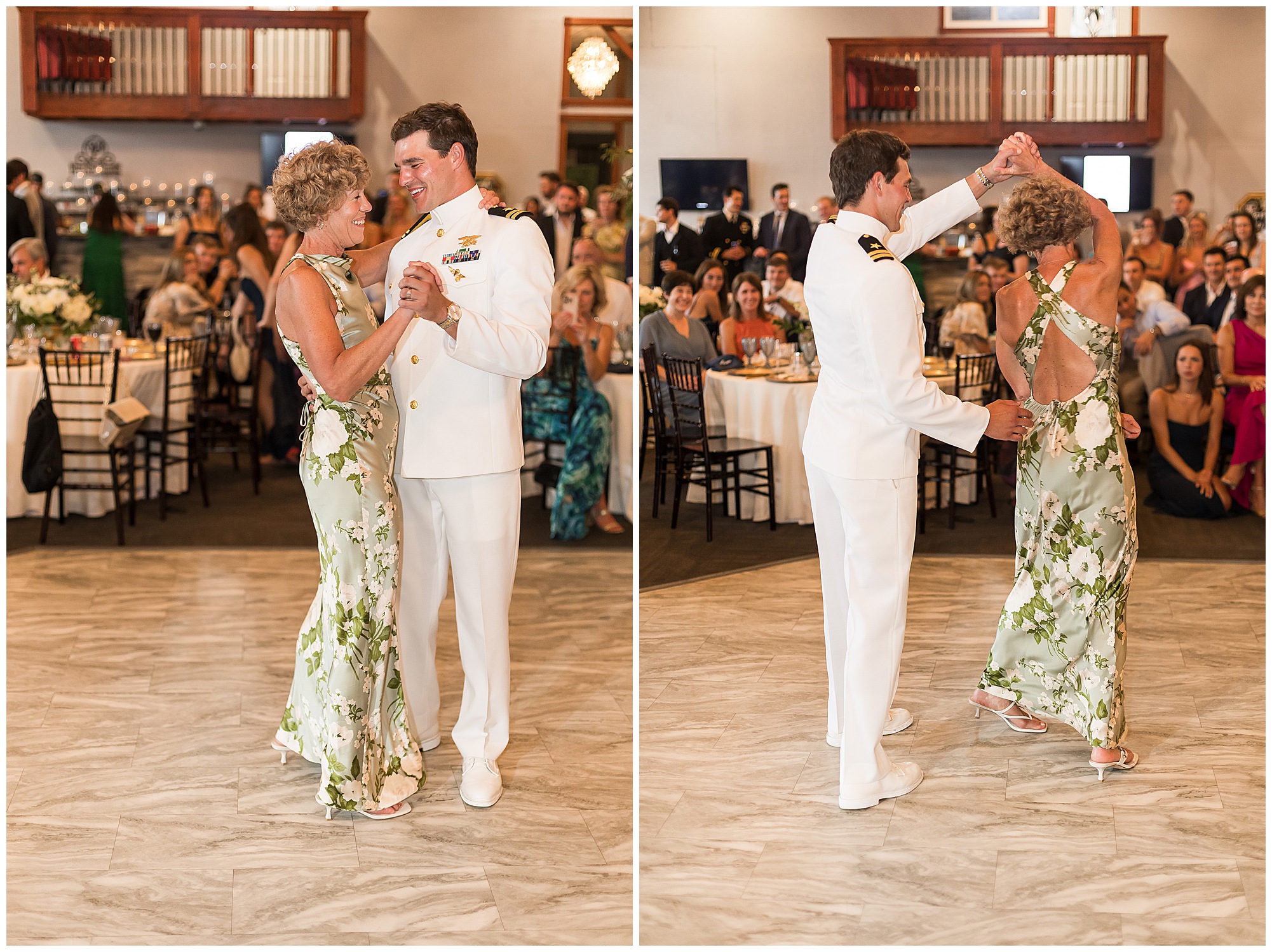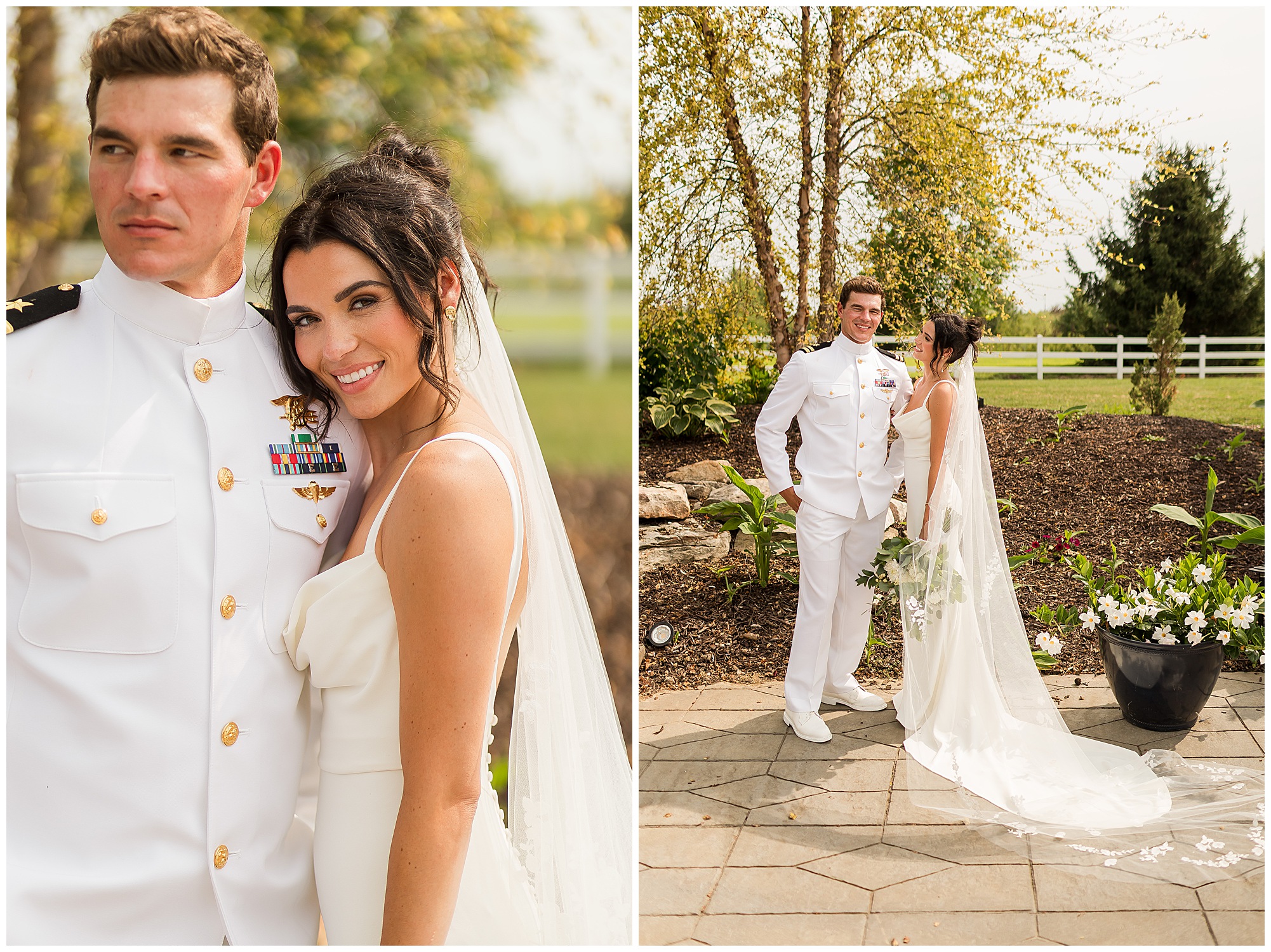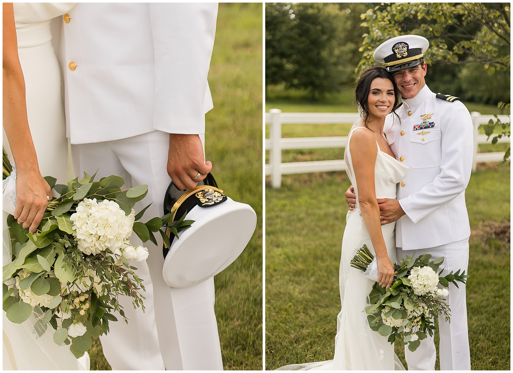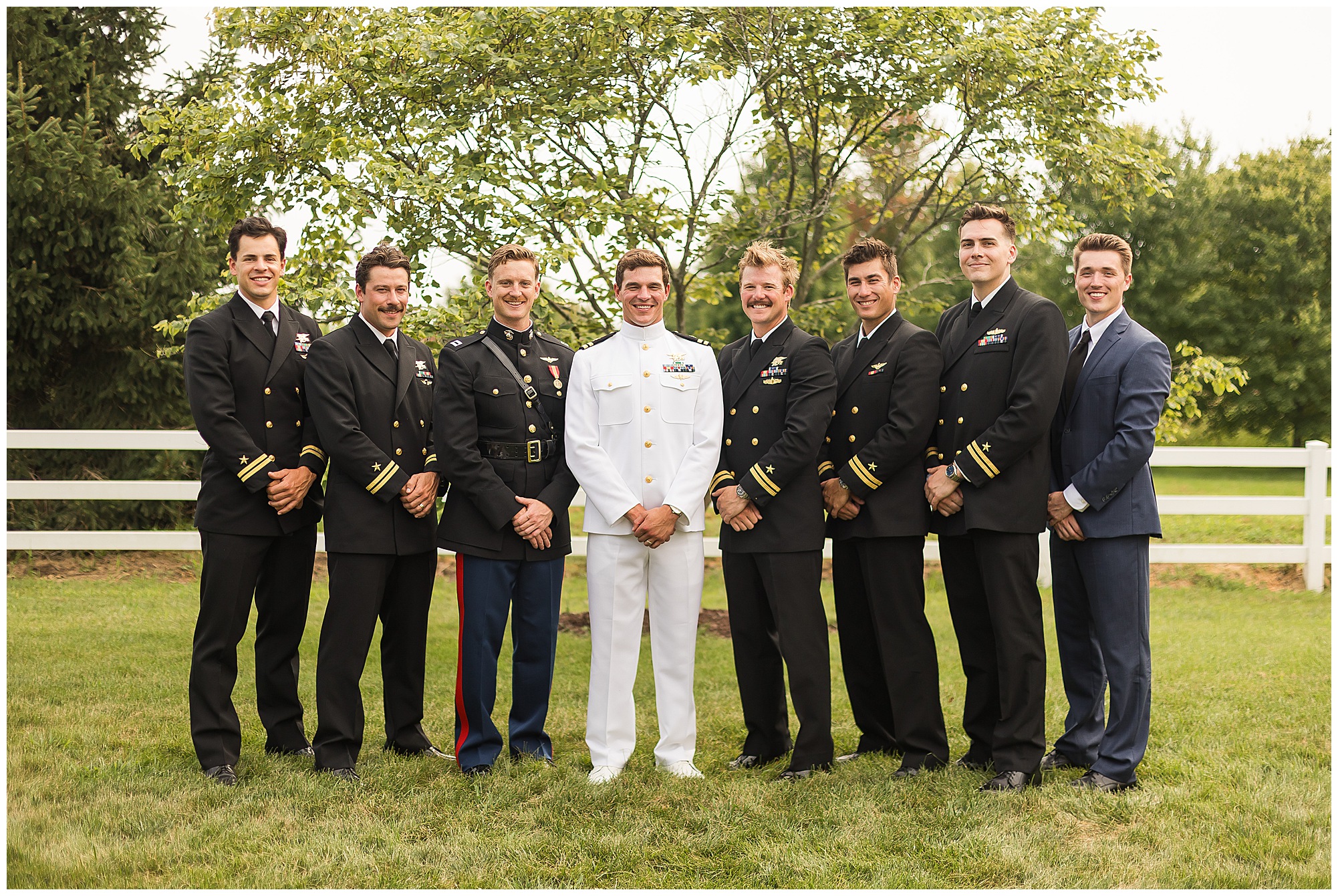 Before the party kicked off, we made our way to the Cathedral of the Immaculate Conception in Springfield for their ceremony, and wow… if you’ve ever seen that space, you know it’s incredible. But the moment that truly made the day memorable for me was Nate seeing Kelly for their emotional first look. Nate was in his full Navy dress whites, looking sharp and completely ready to see his bride. His emotions immediate got the best of him when seeing Kelly, which made the whole moment even more meaningful. Their ceremony included so many highlights of their faith, love, and honor for one another. After their full Catholic mass, the traditional Navy Arch of Swords took place right on the cathedral steps with Nate’s groomsmen in their matching Navy uniforms, —and yes, it was as amazing as it sounds!