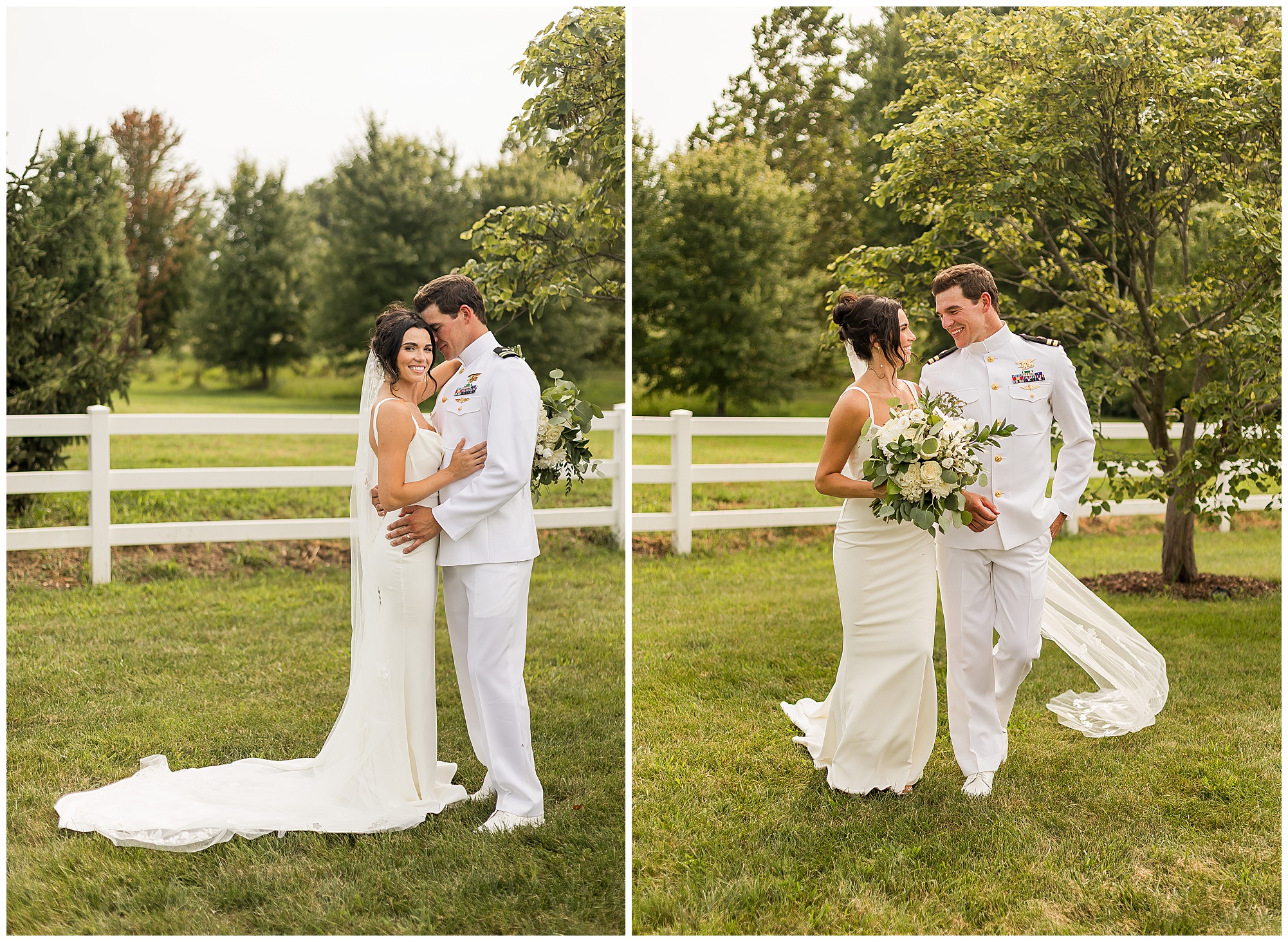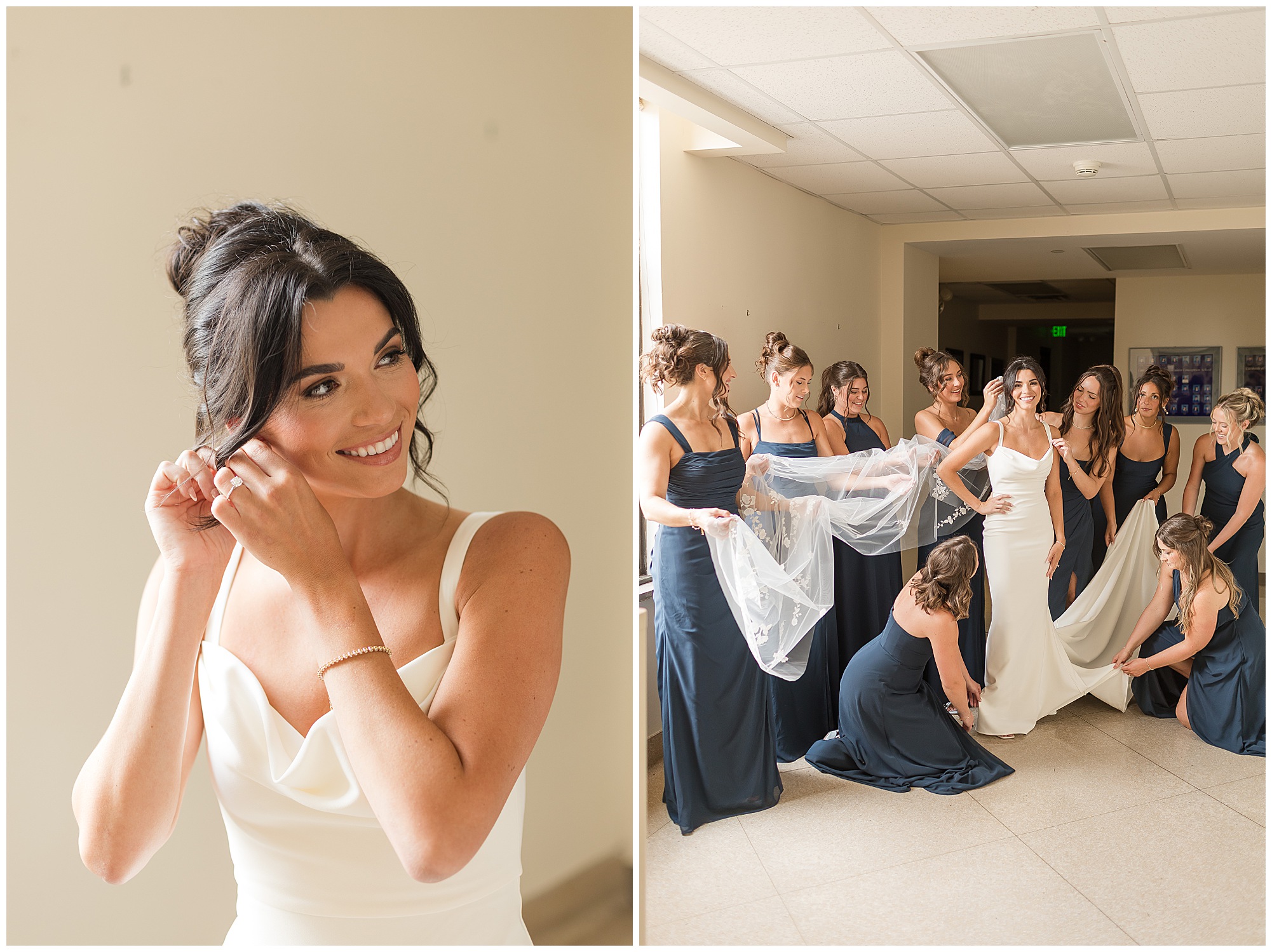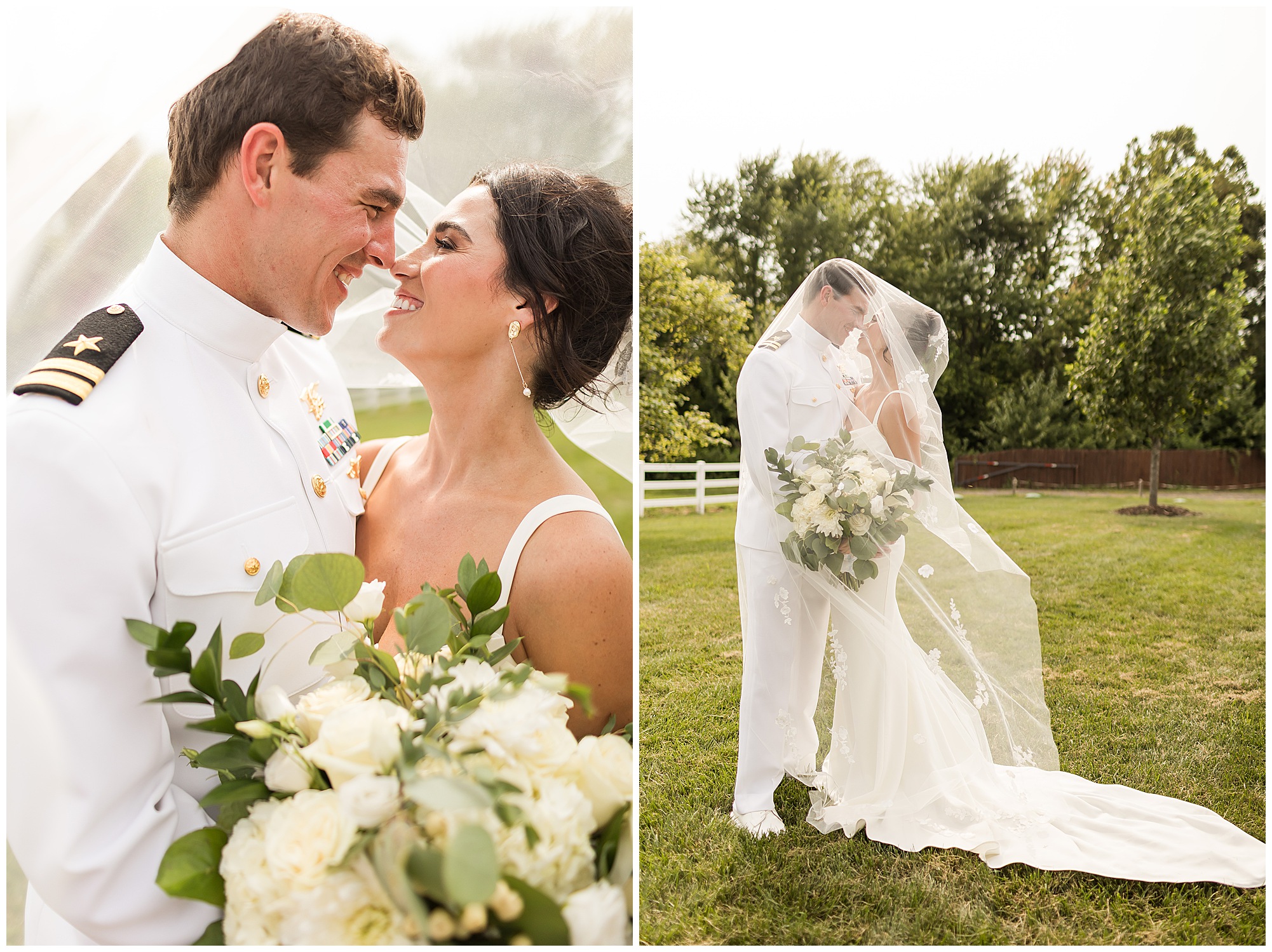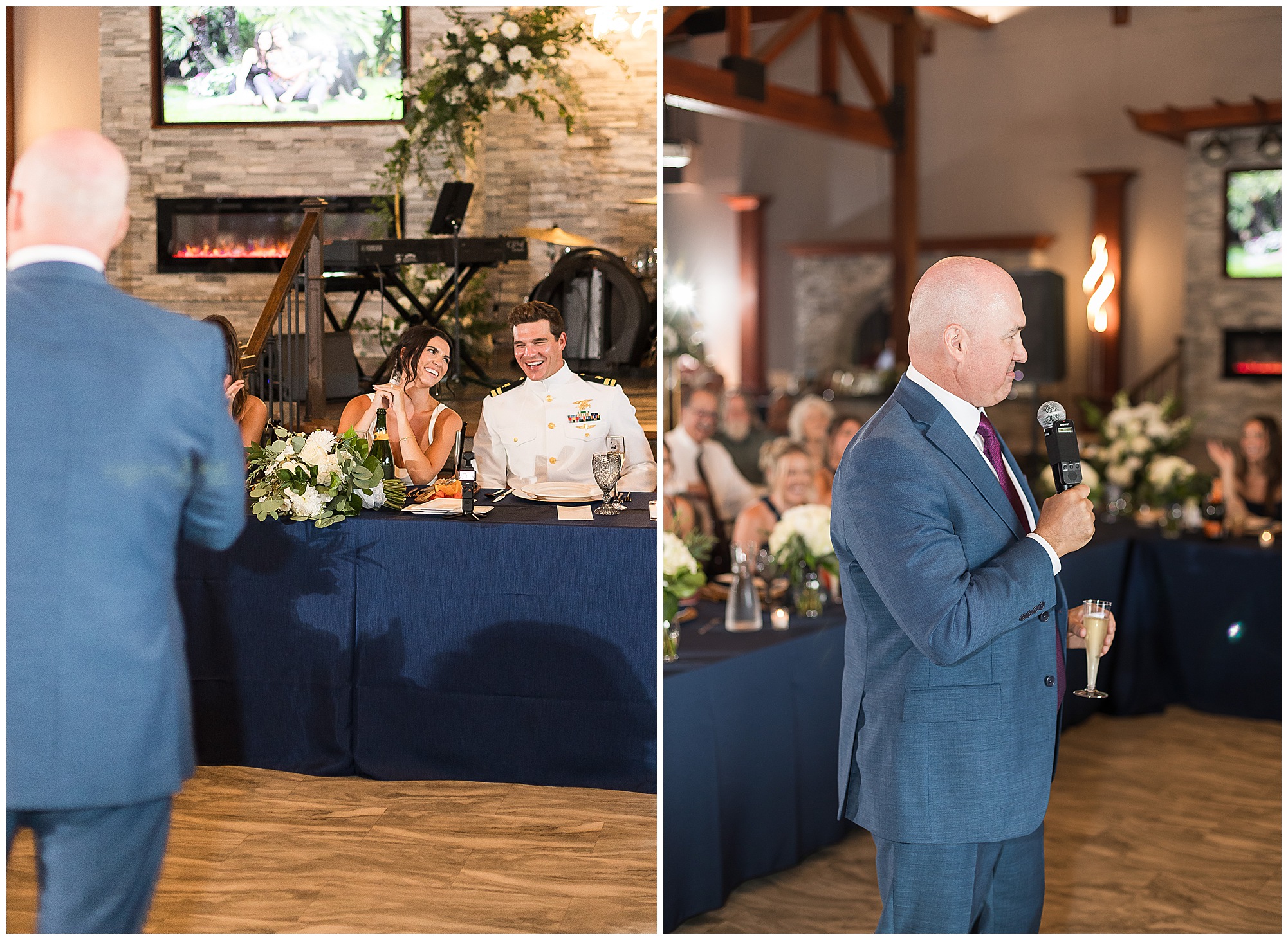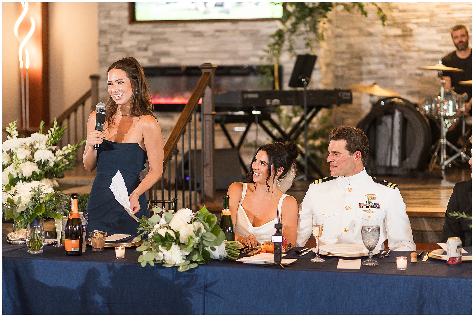 Before the party kicked off, we made our way to the Cathedral of the Immaculate Conception in Springfield for their ceremony, and wow… if you’ve ever seen that space, you know it’s incredible. But the moment that truly made the day memorable for me was Nate seeing Kelly for their emotional first look. Nate was in his full Navy dress whites, looking sharp and completely ready to see his bride. His emotions immediate got the best of him when seeing Kelly, which made the whole moment even more meaningful. Their ceremony included so many highlights of their faith, love, and honor for one another. After their full Catholic mass, the traditional Navy Arch of Swords took place right on the cathedral steps with Nate’s groomsmen in their matching Navy uniforms, —and yes, it was as amazing as it sounds!
